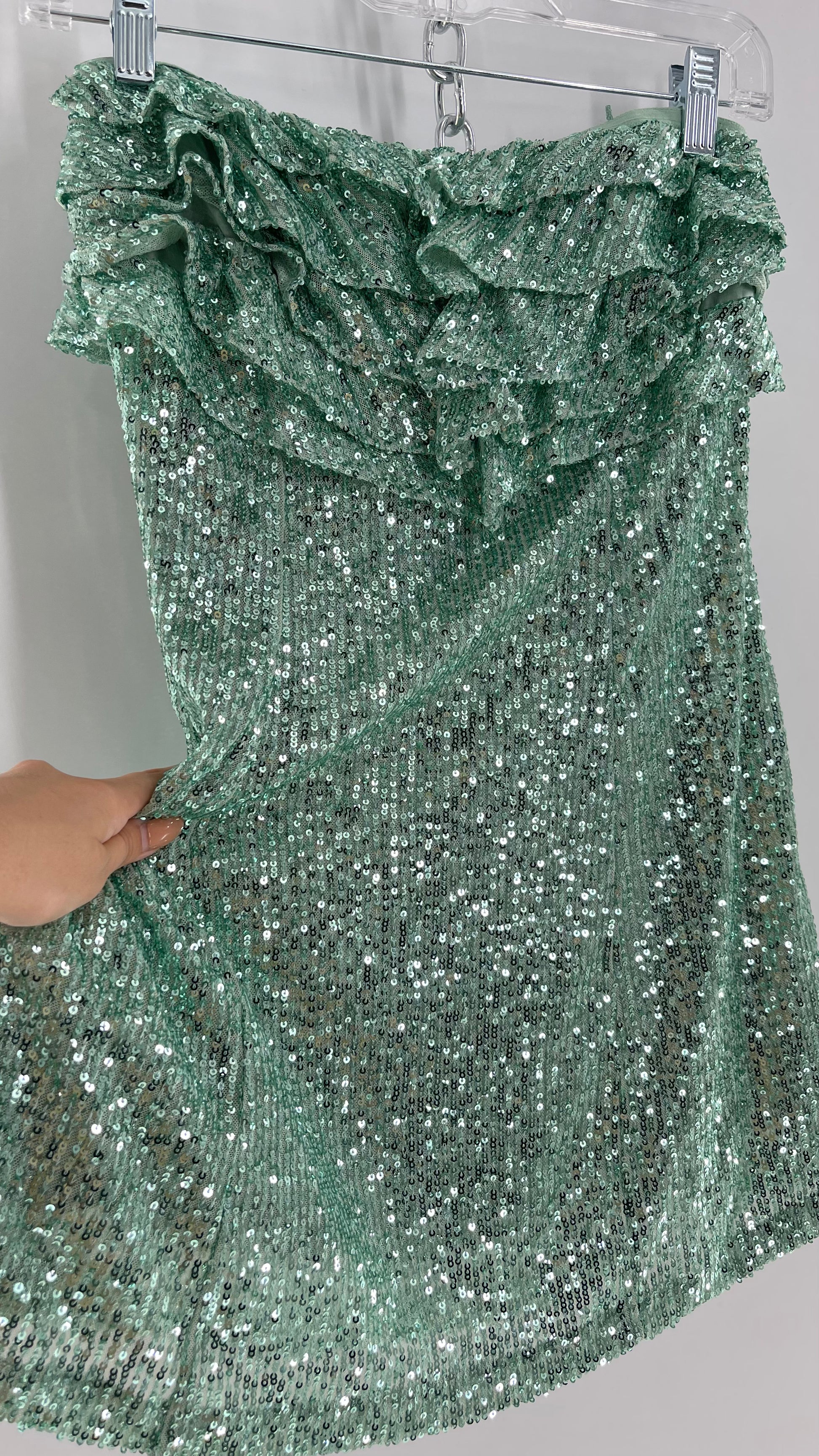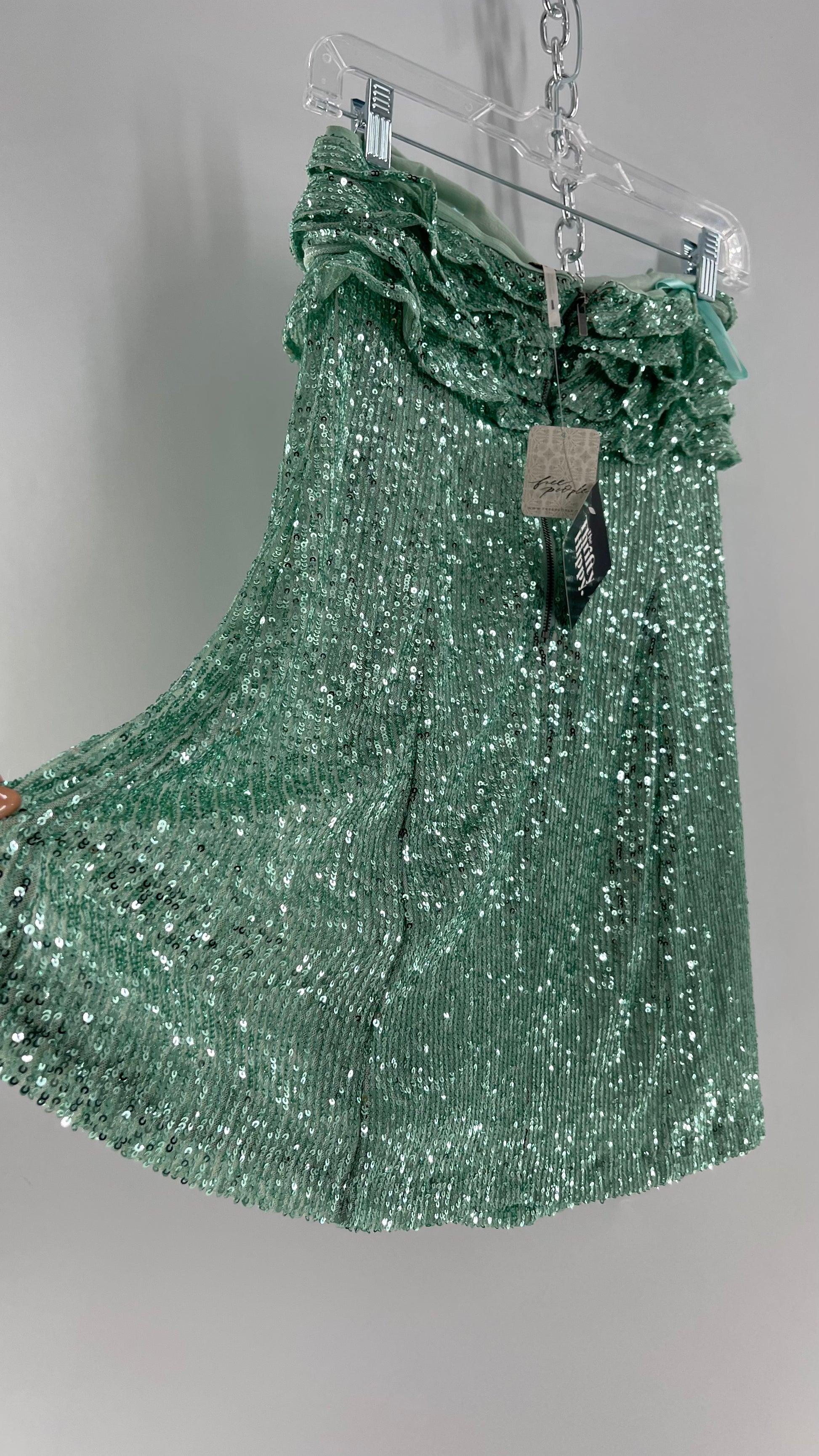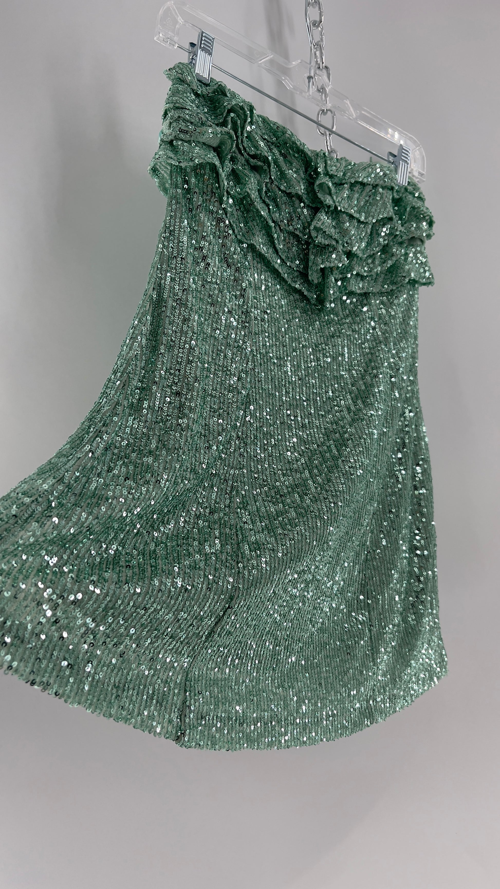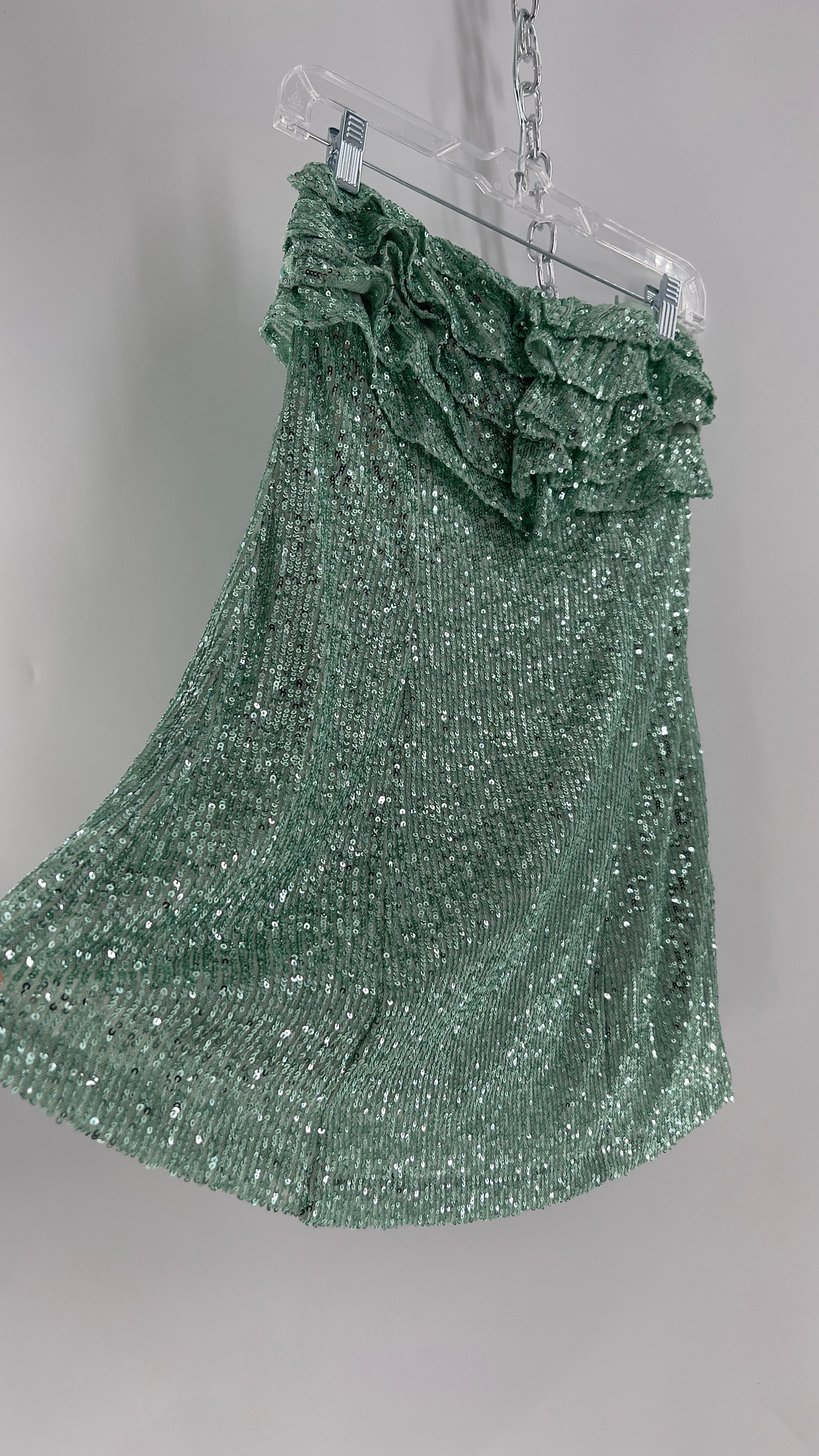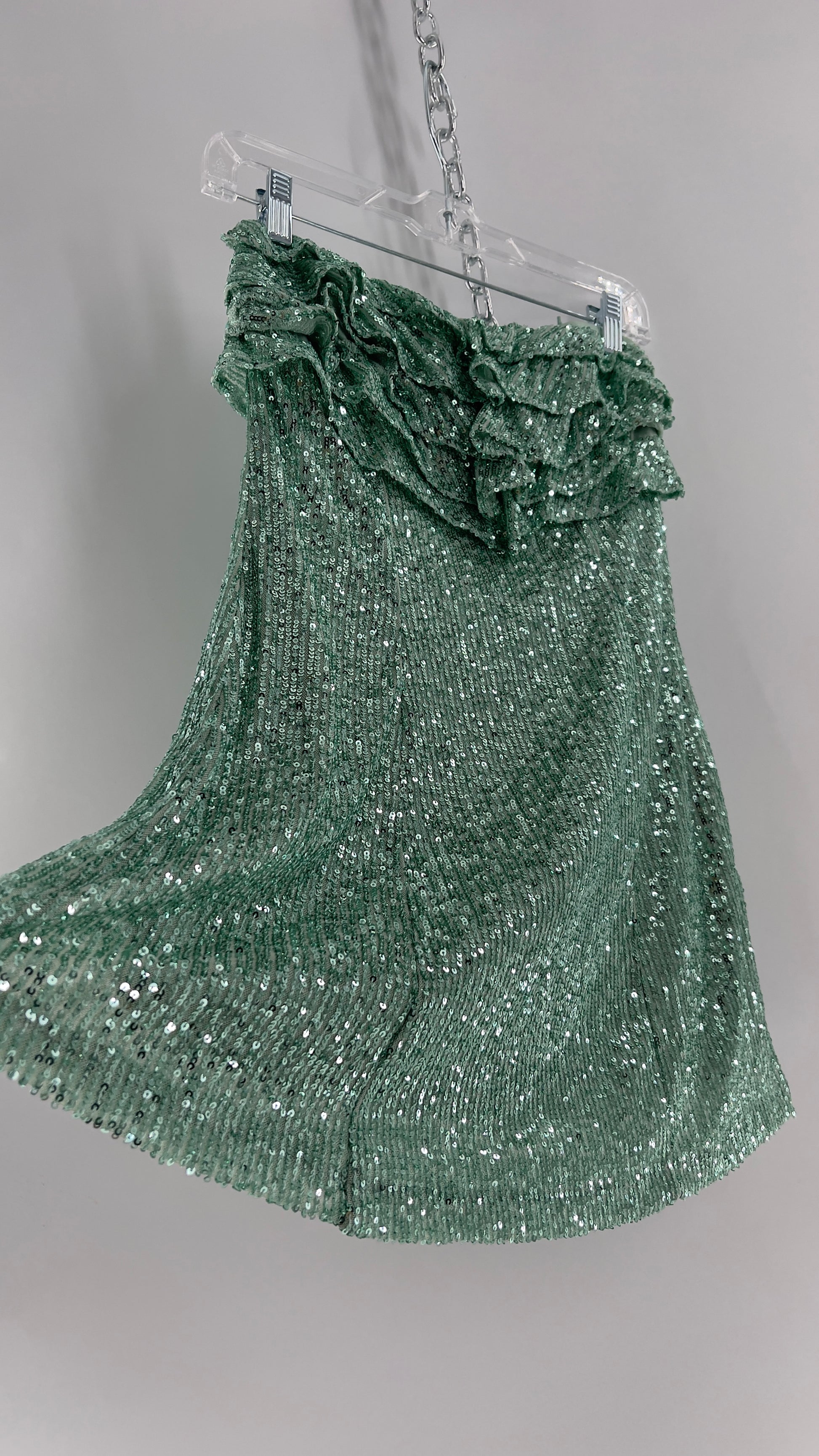 Free People Teal Sequin Ruffle Frida Tube Dress (2) |