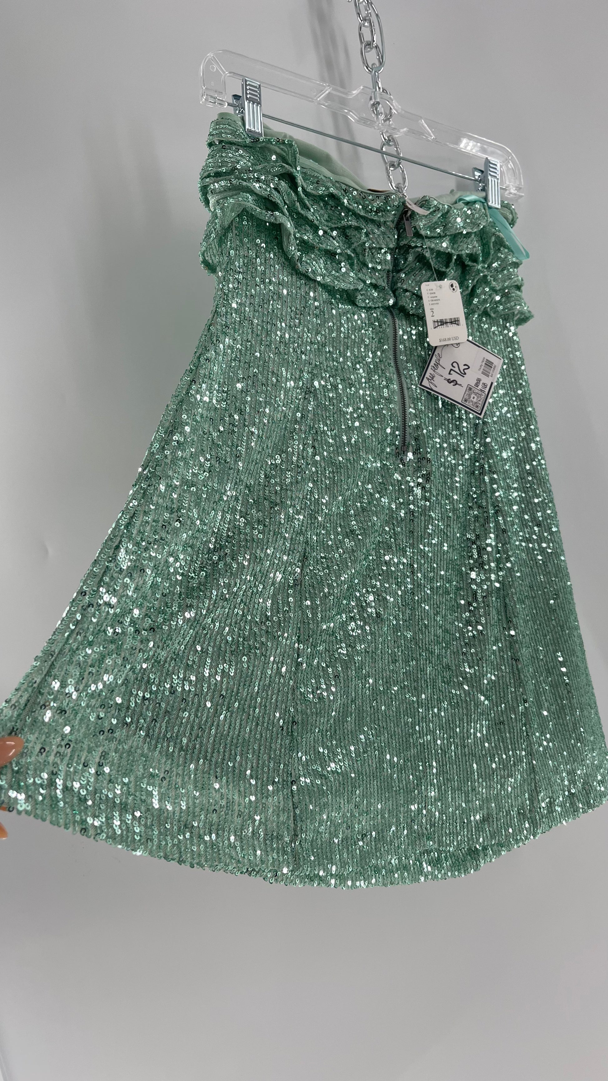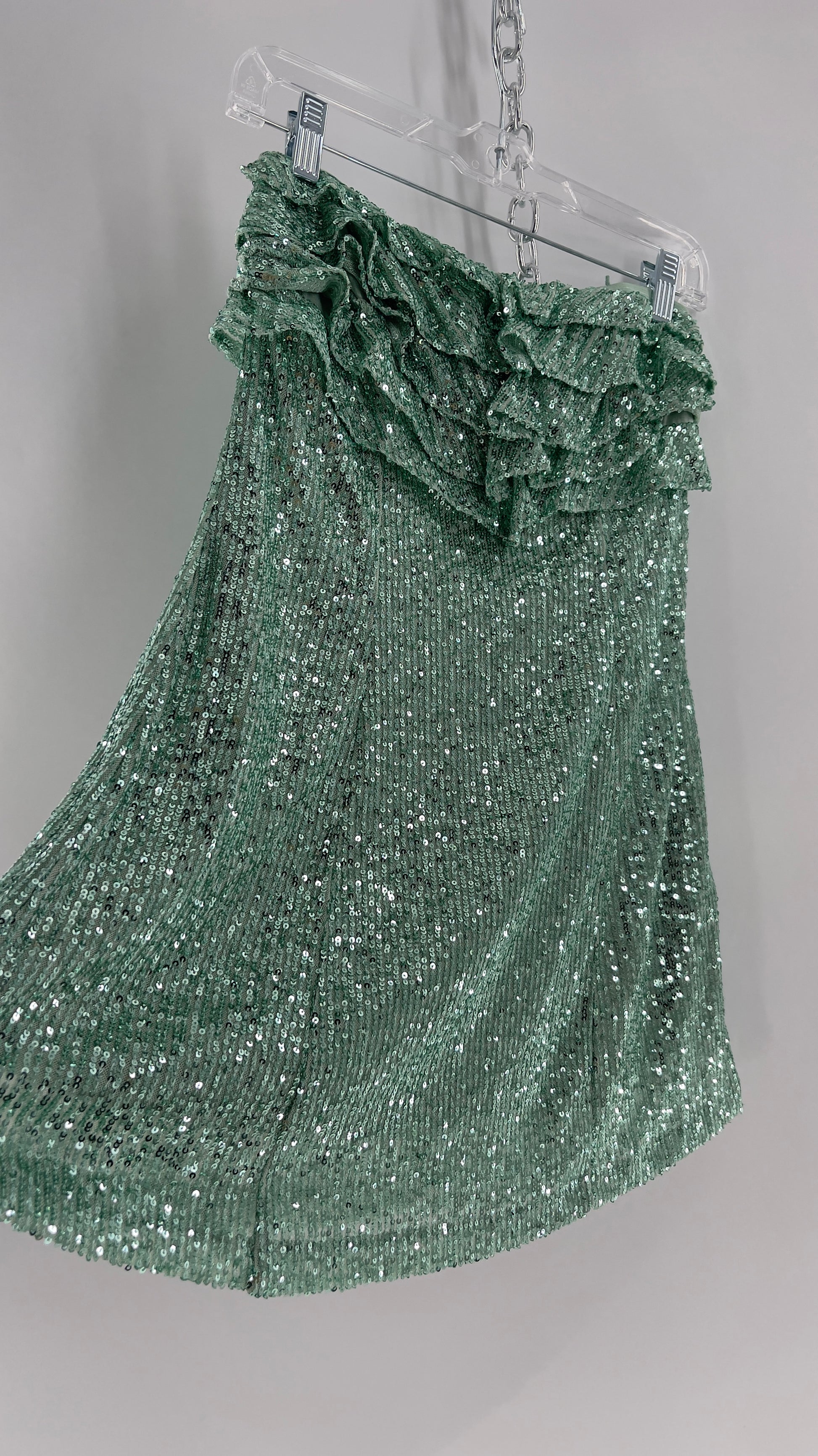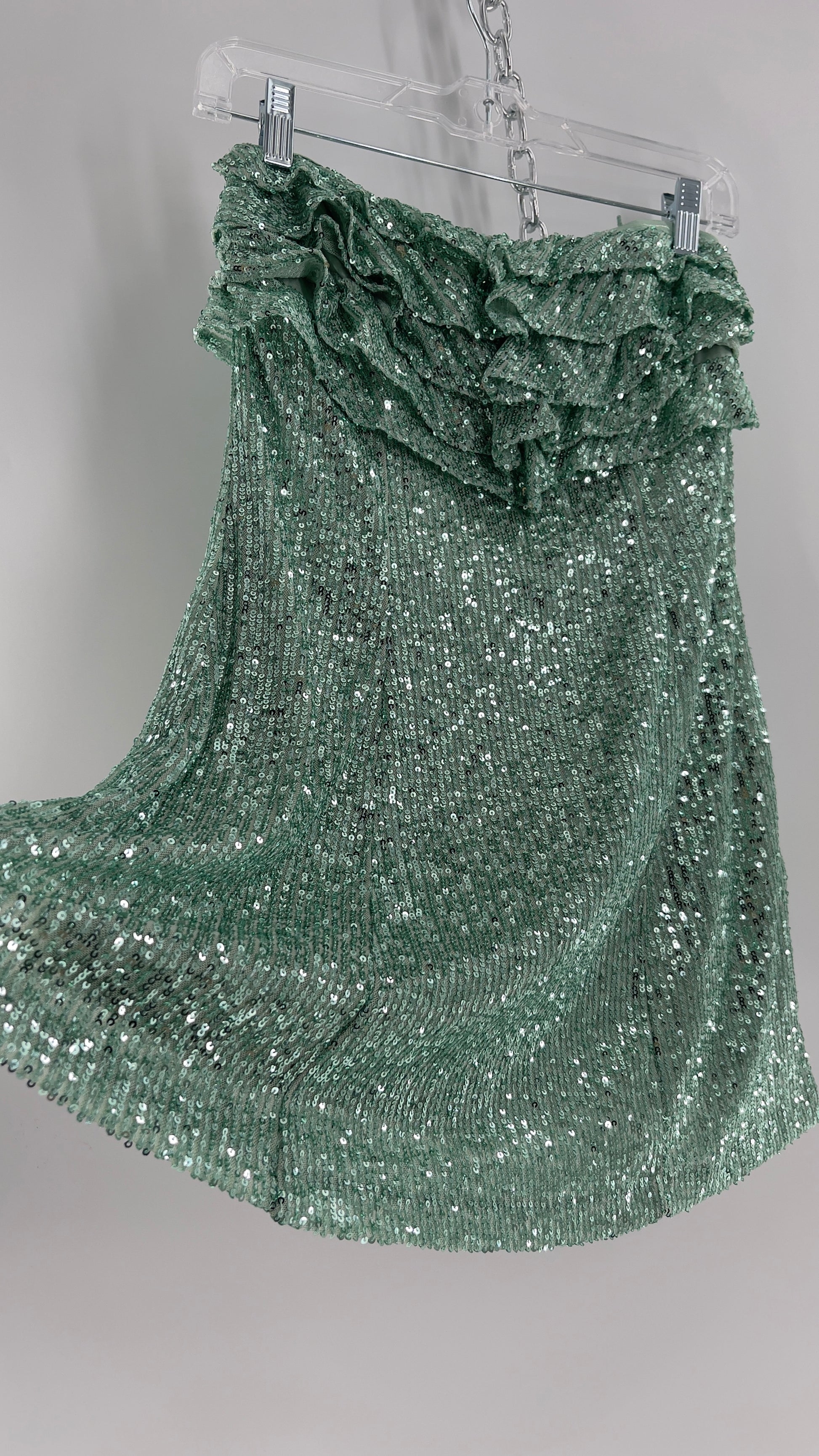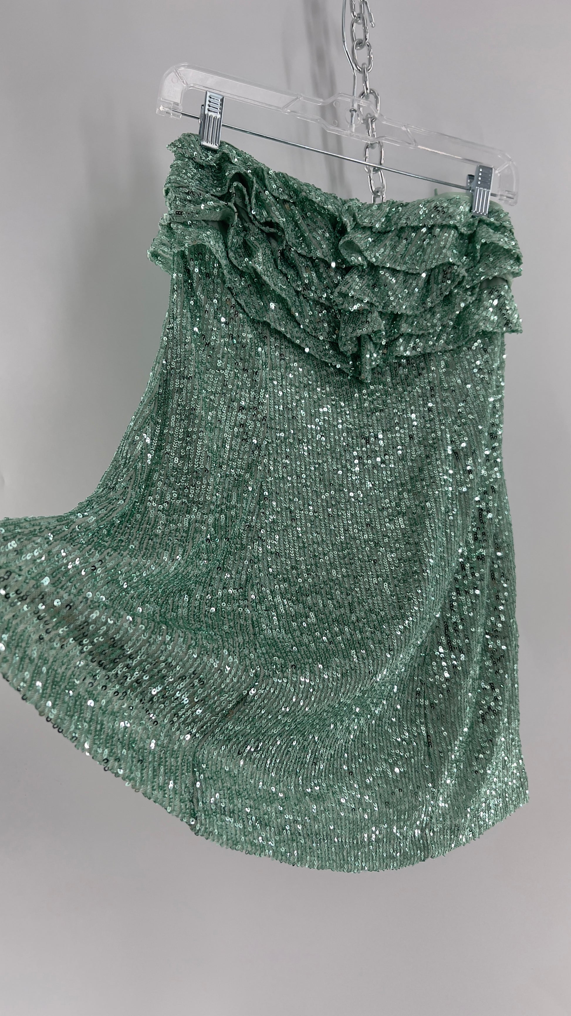 Free People Teal Sequin Ruffle Frida Tube Dress (2) |