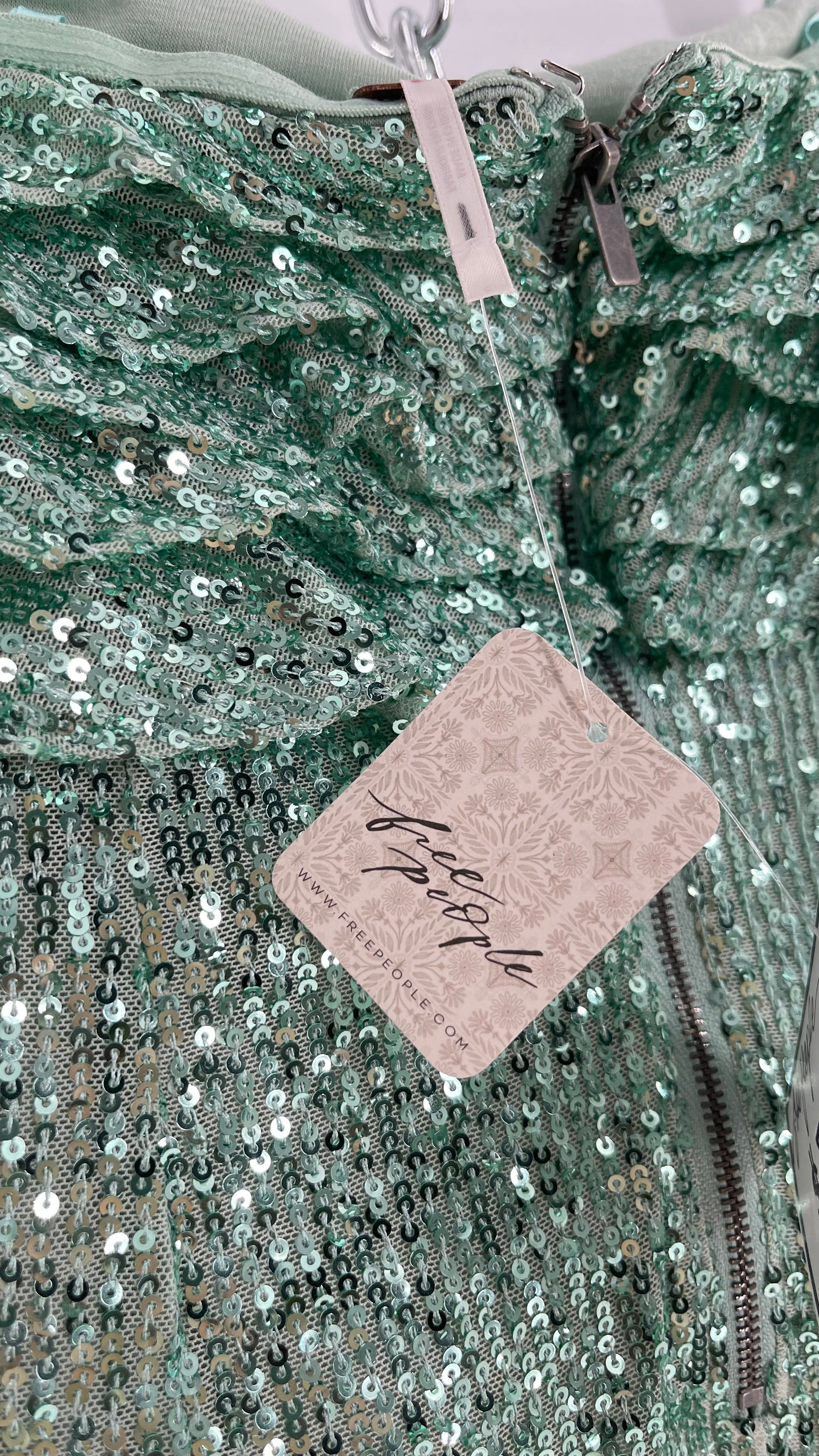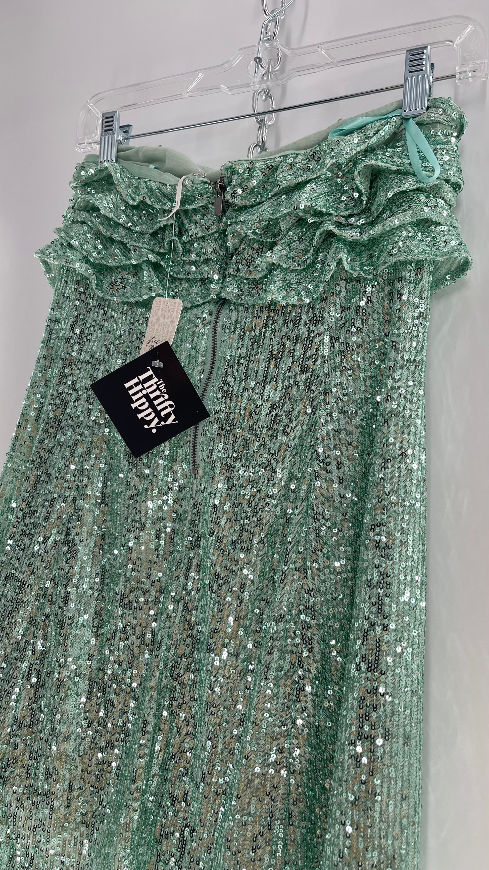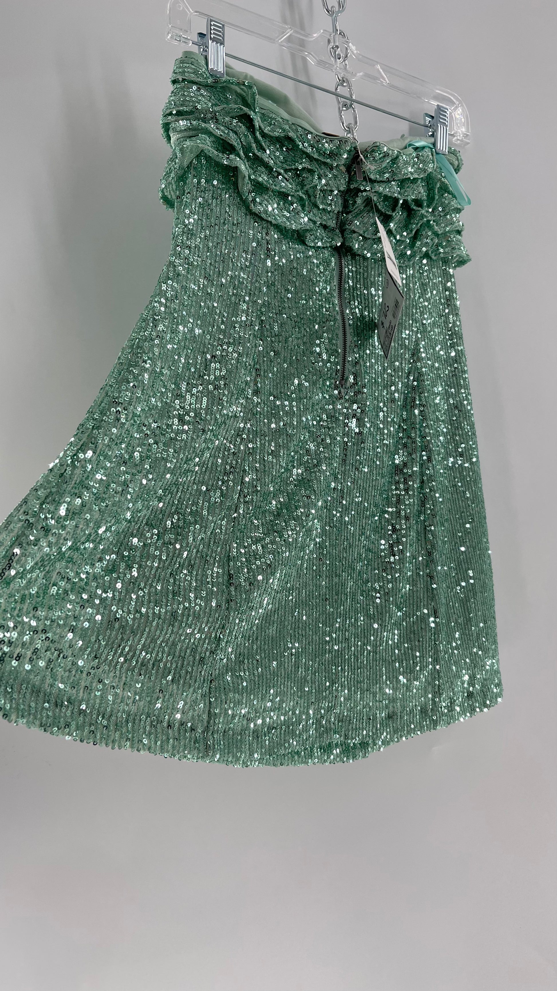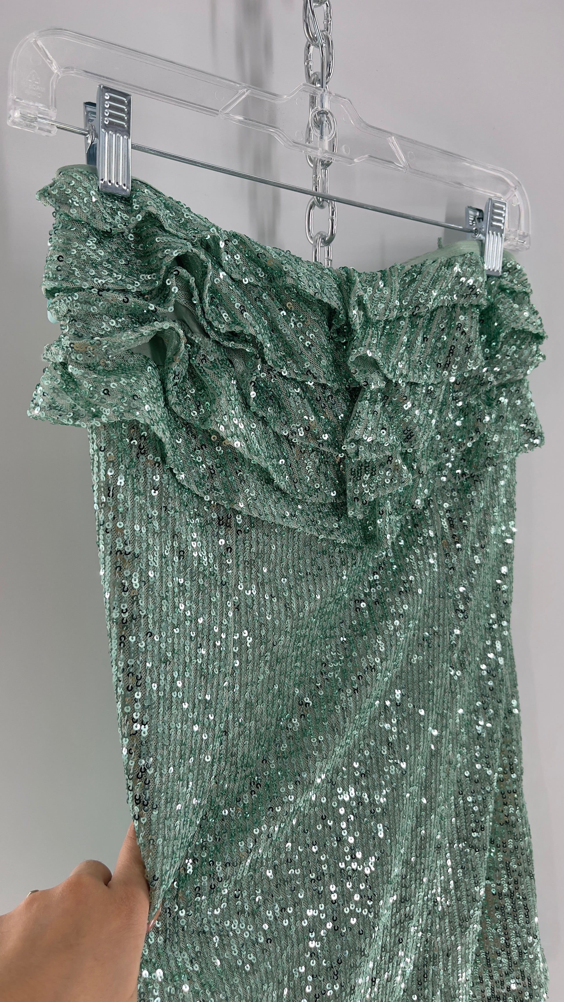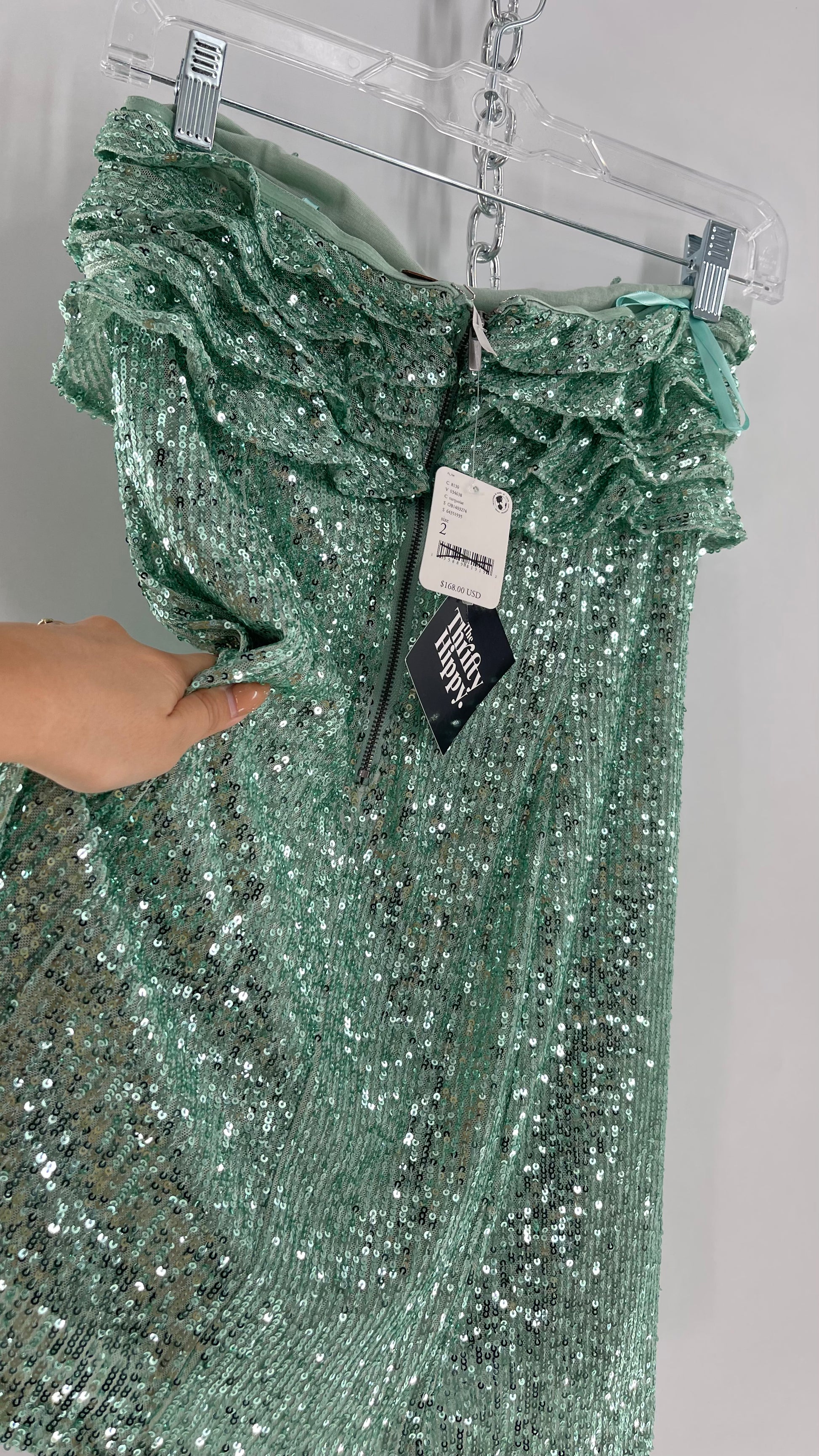 Free People Teal Sequin Ruffle Frida Tube Dress (2) |