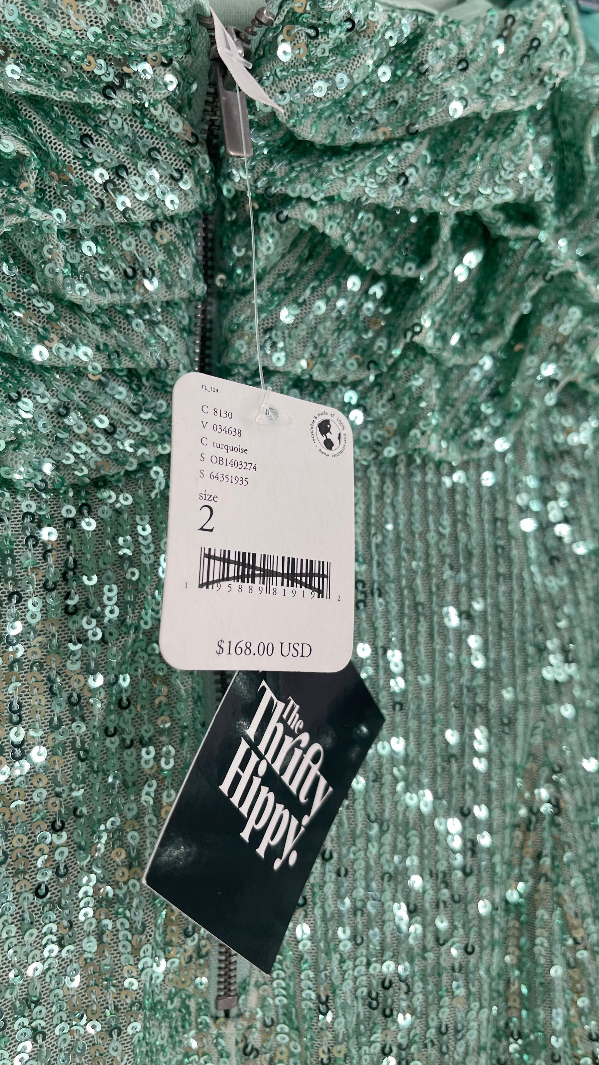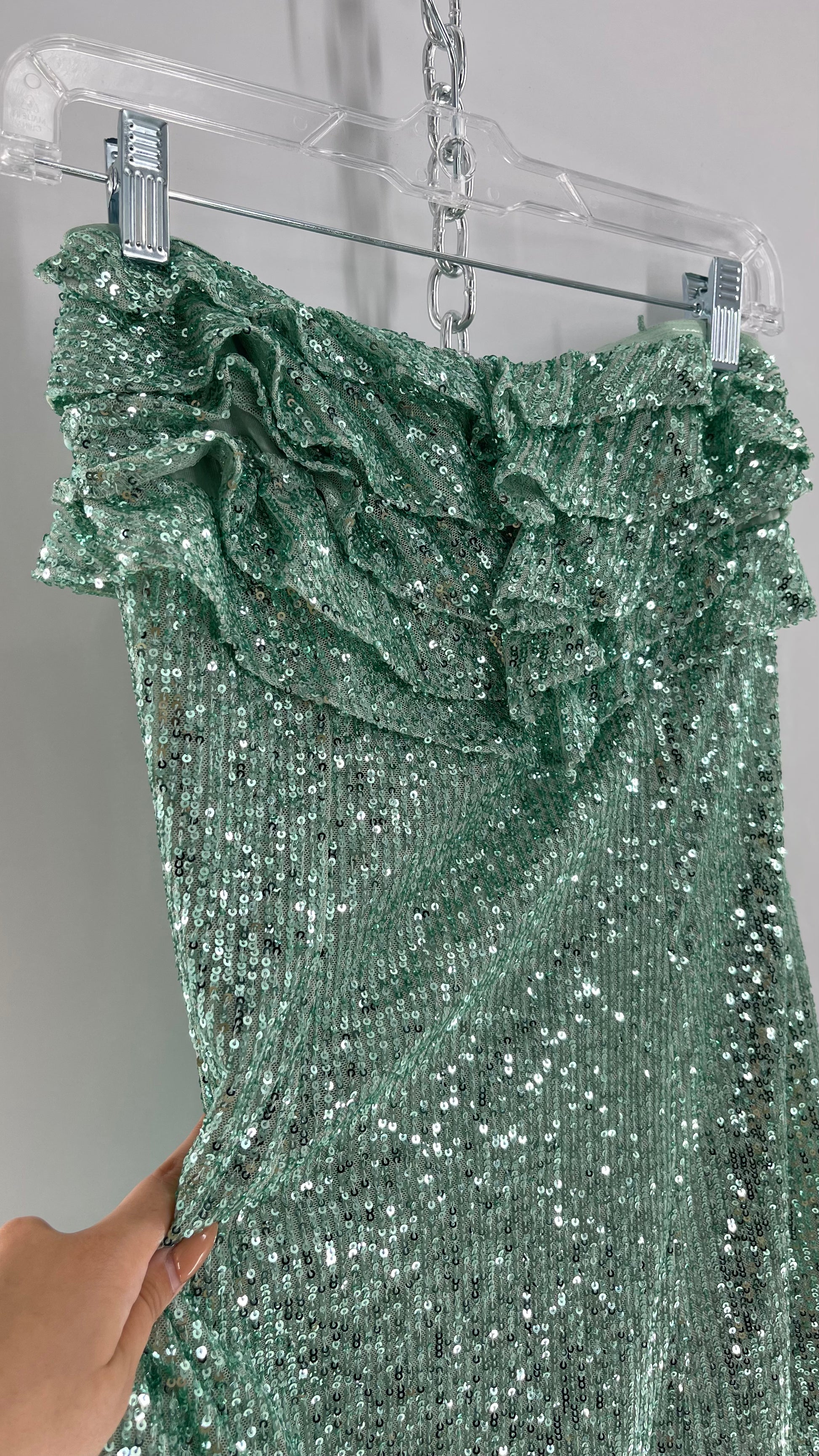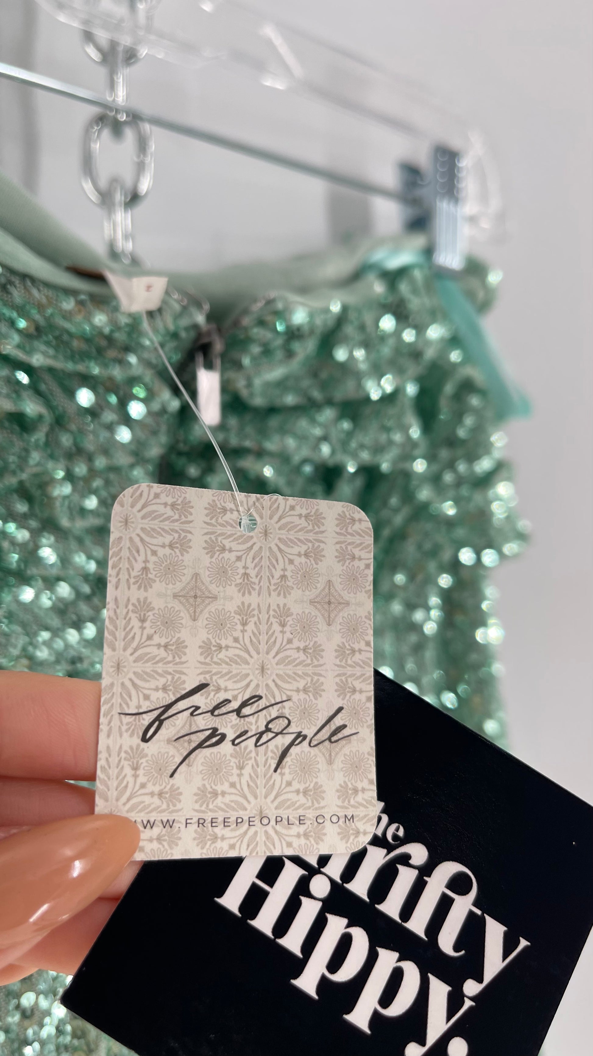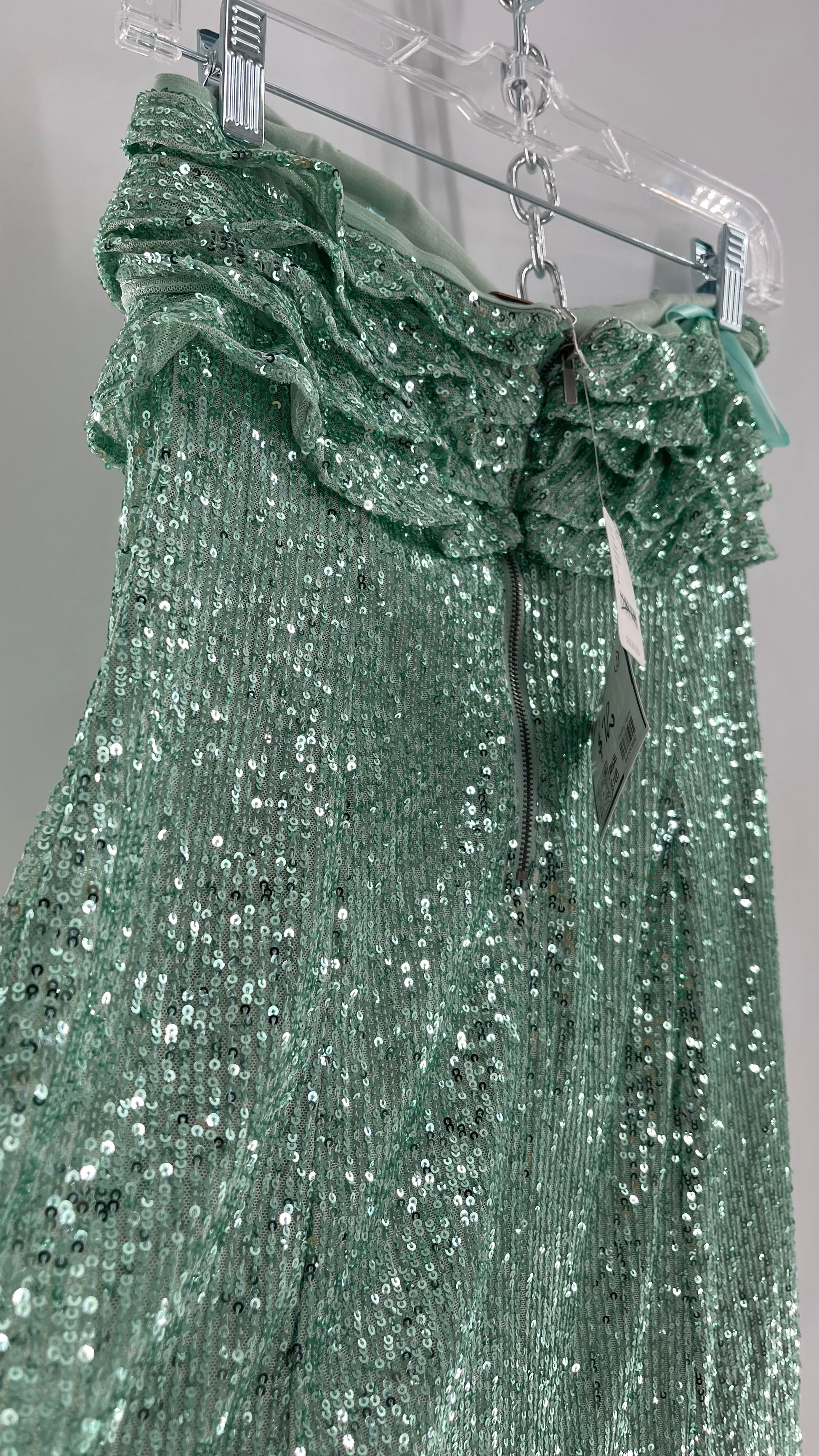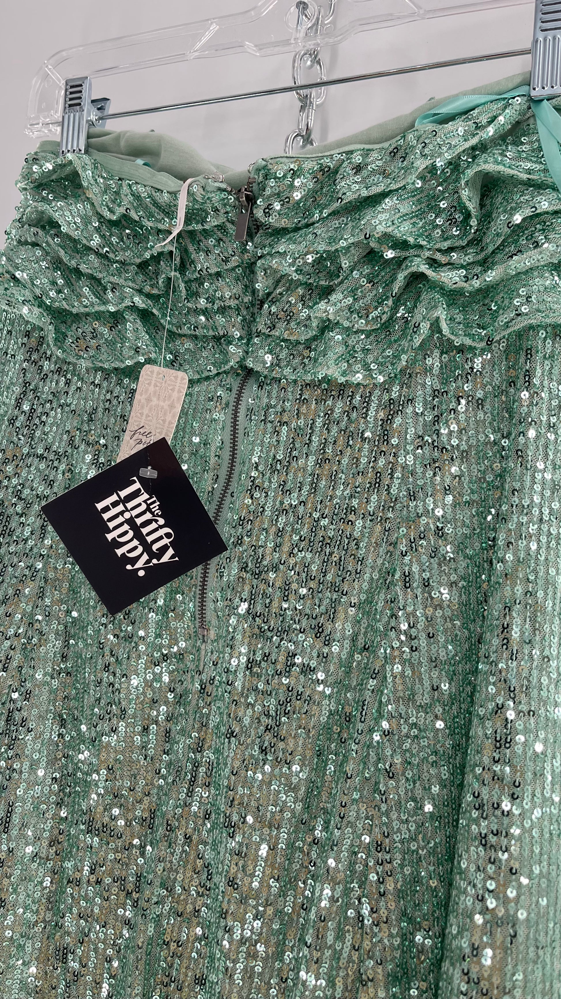 Free People Teal Sequin Ruffle Frida Tube Dress (2) |