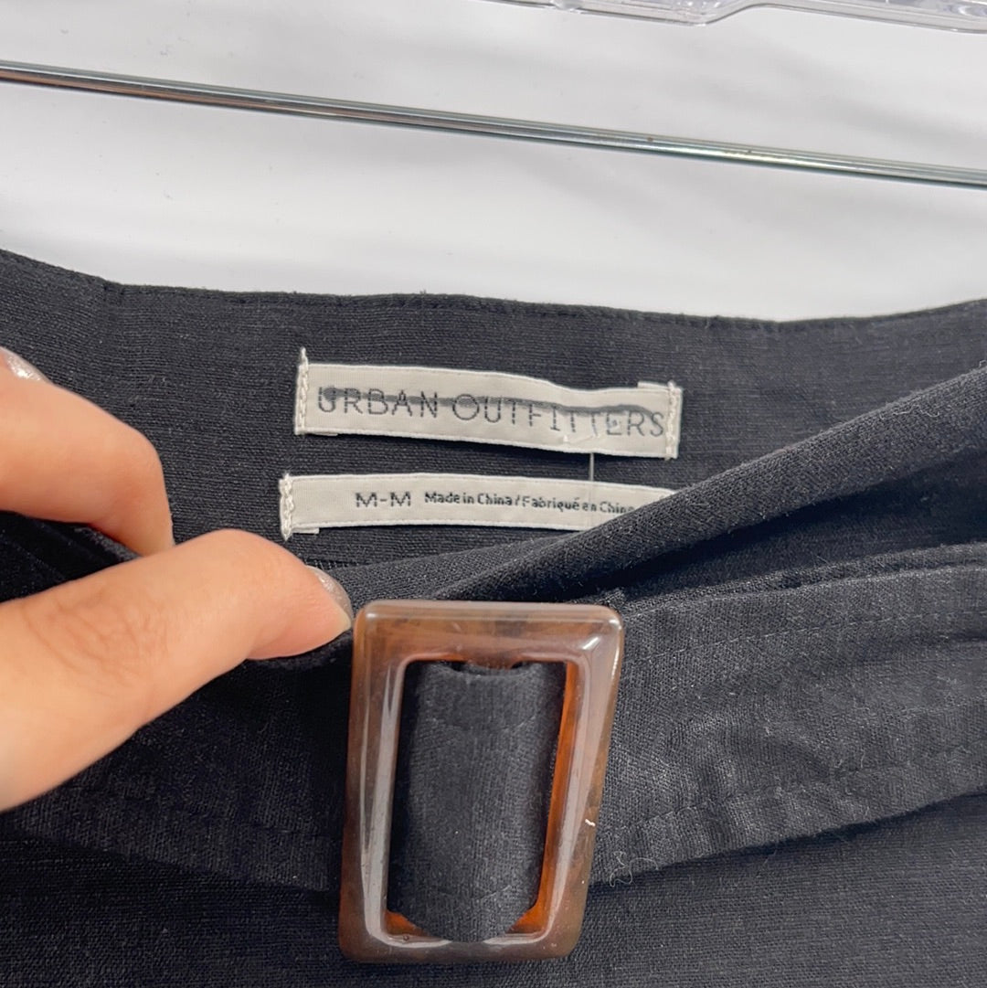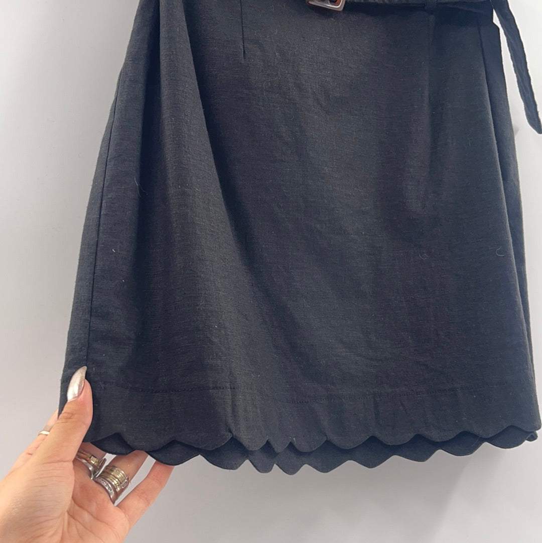 Urban Outfitters Black Linen Mini Skirt With Belt and Scalloped Hem (Size Medium)