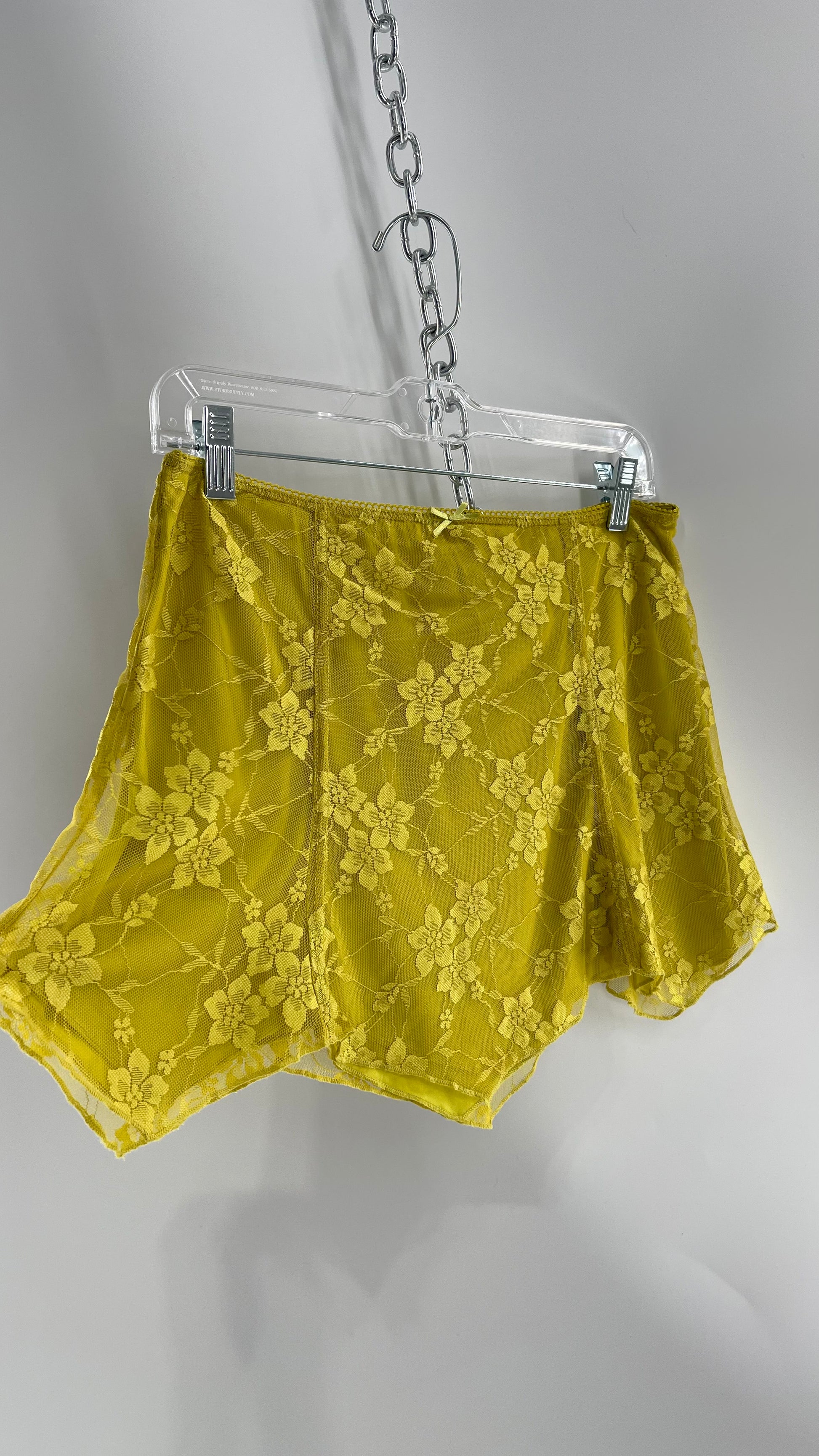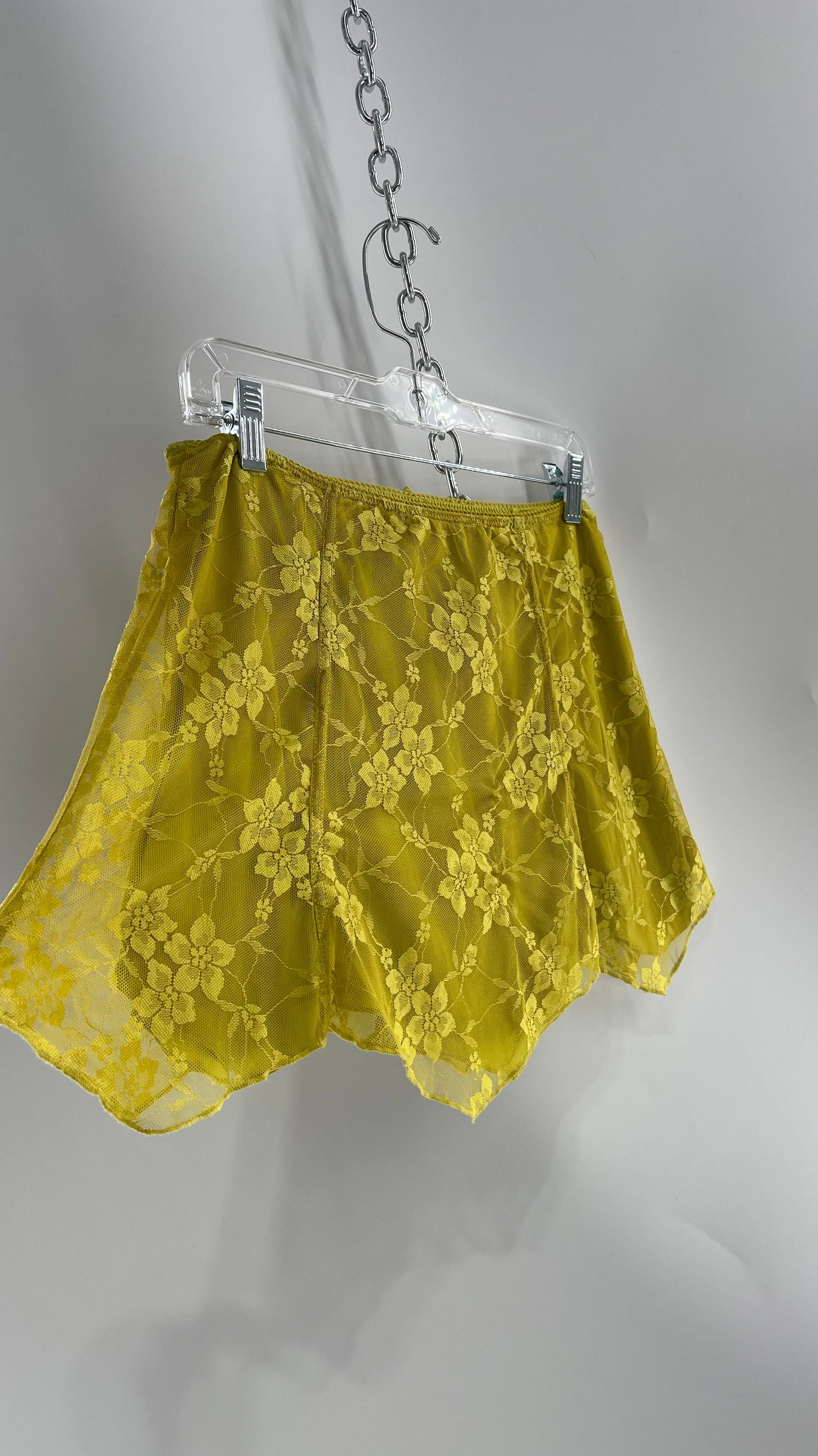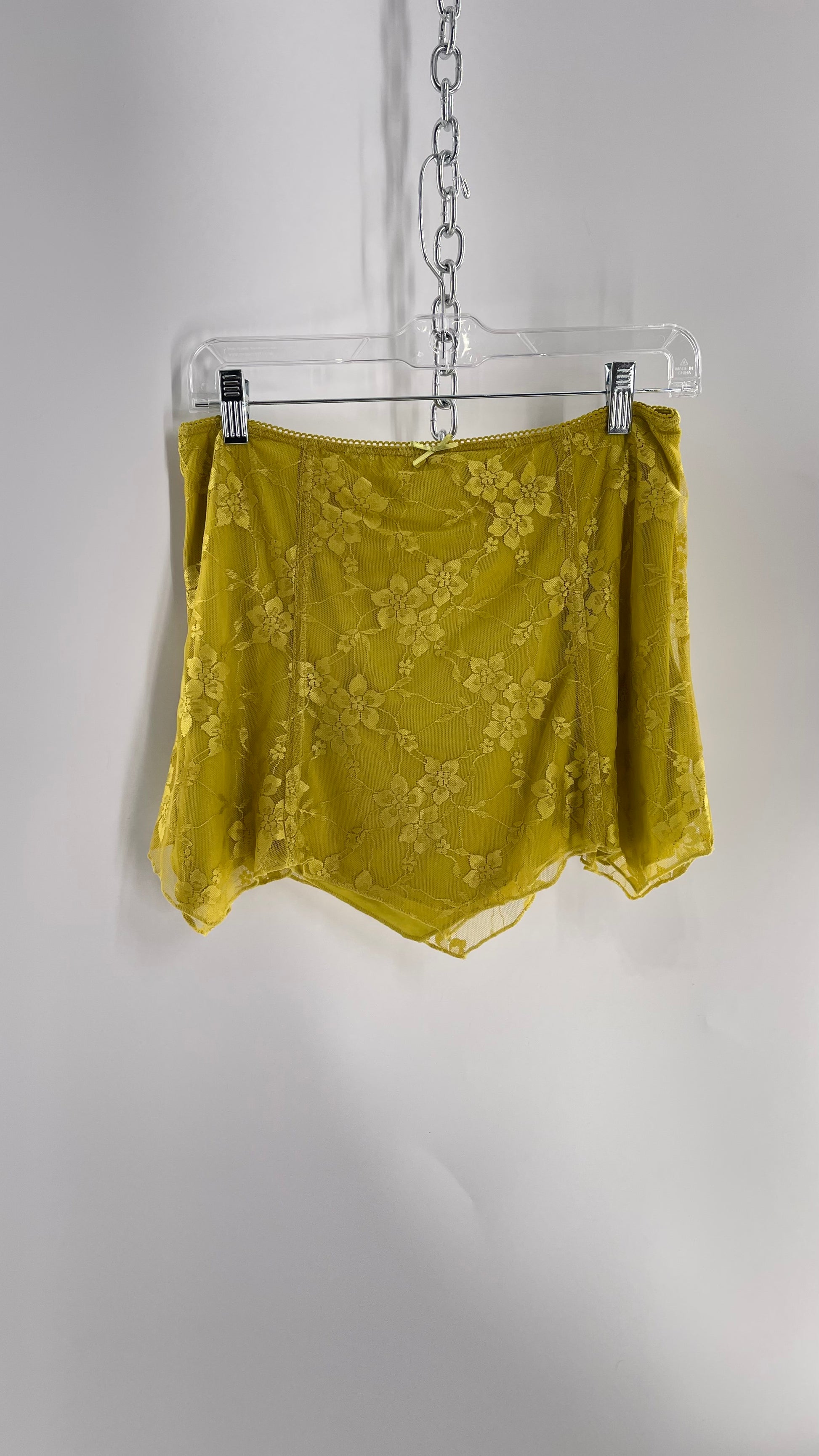 Urban Outfitters Green Lace Hankerchief Hem Mini Skirt (Medium)