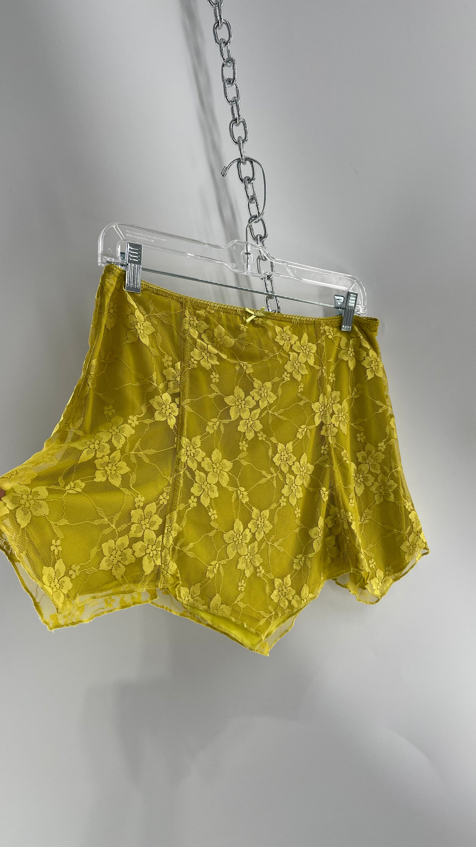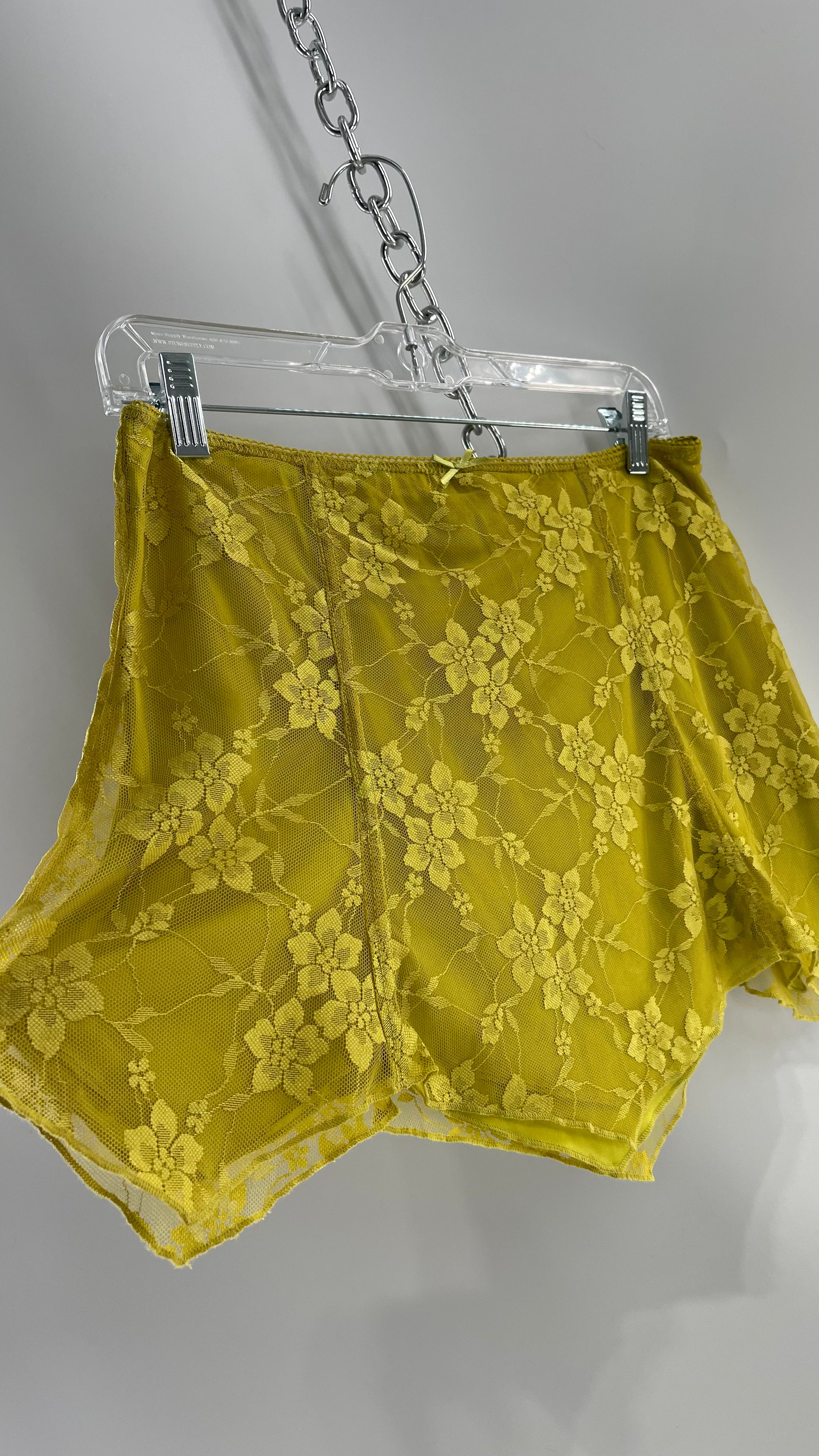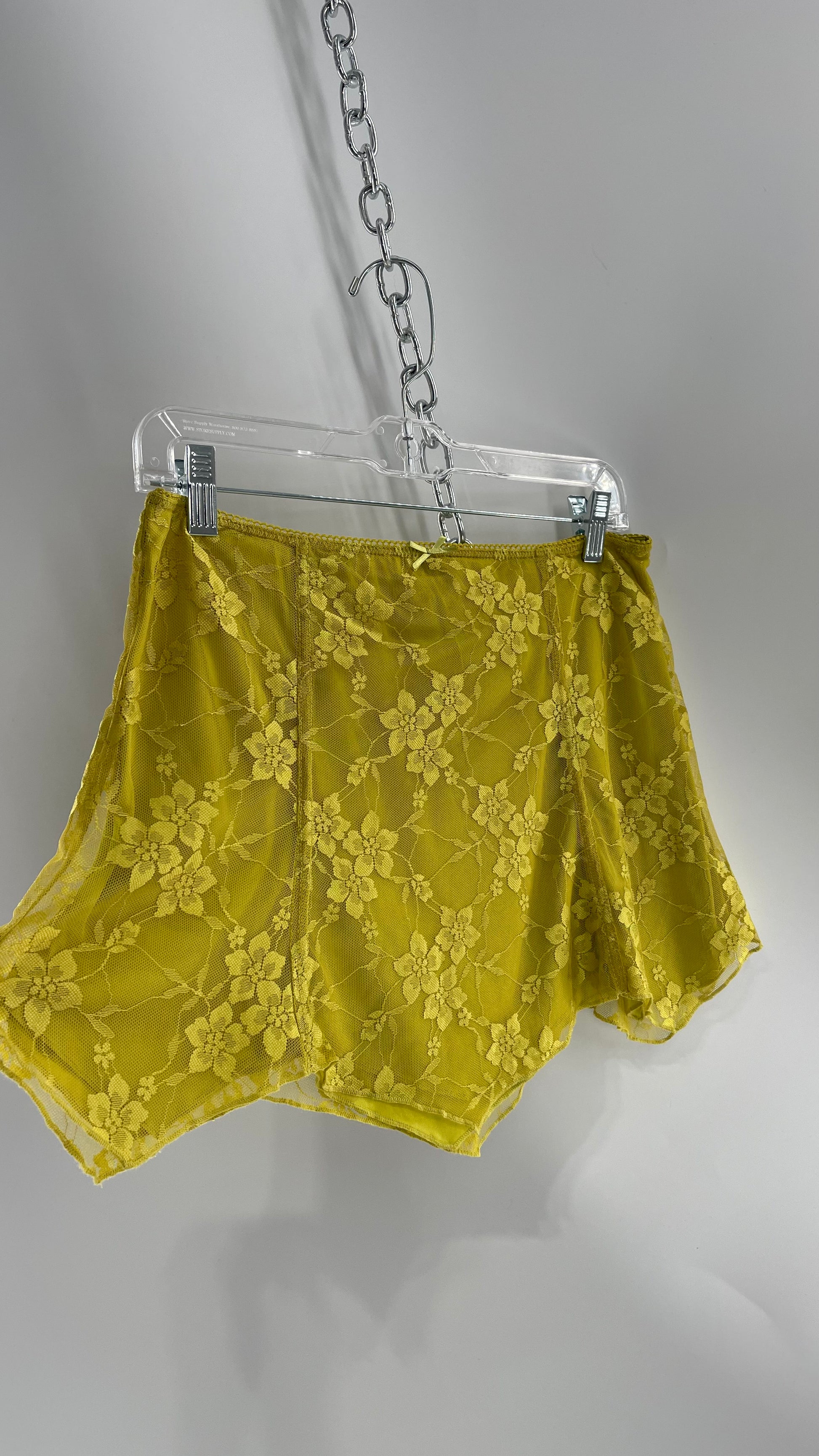 Urban Outfitters Green Lace Hankerchief Hem Mini Skirt (Medium)