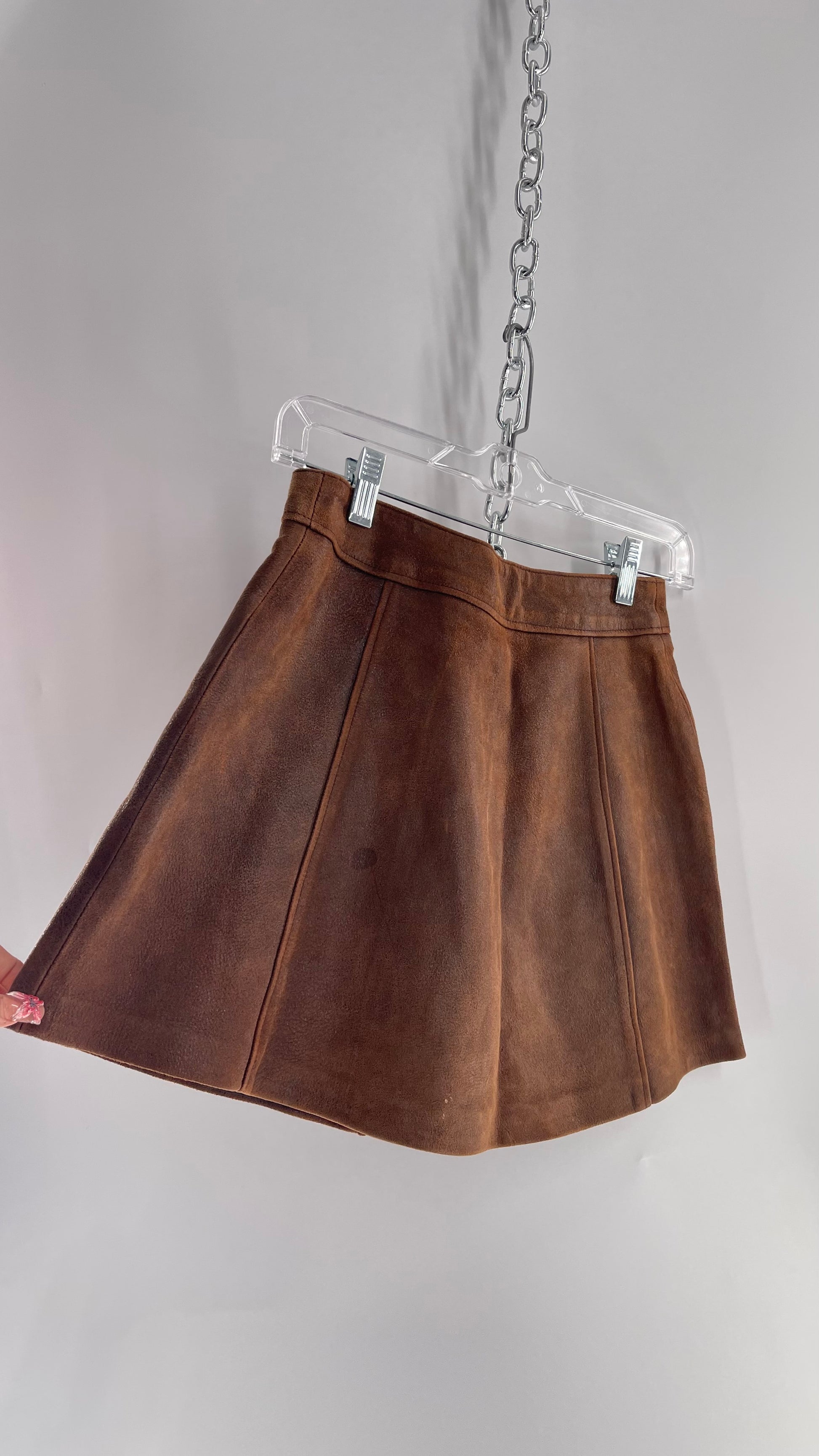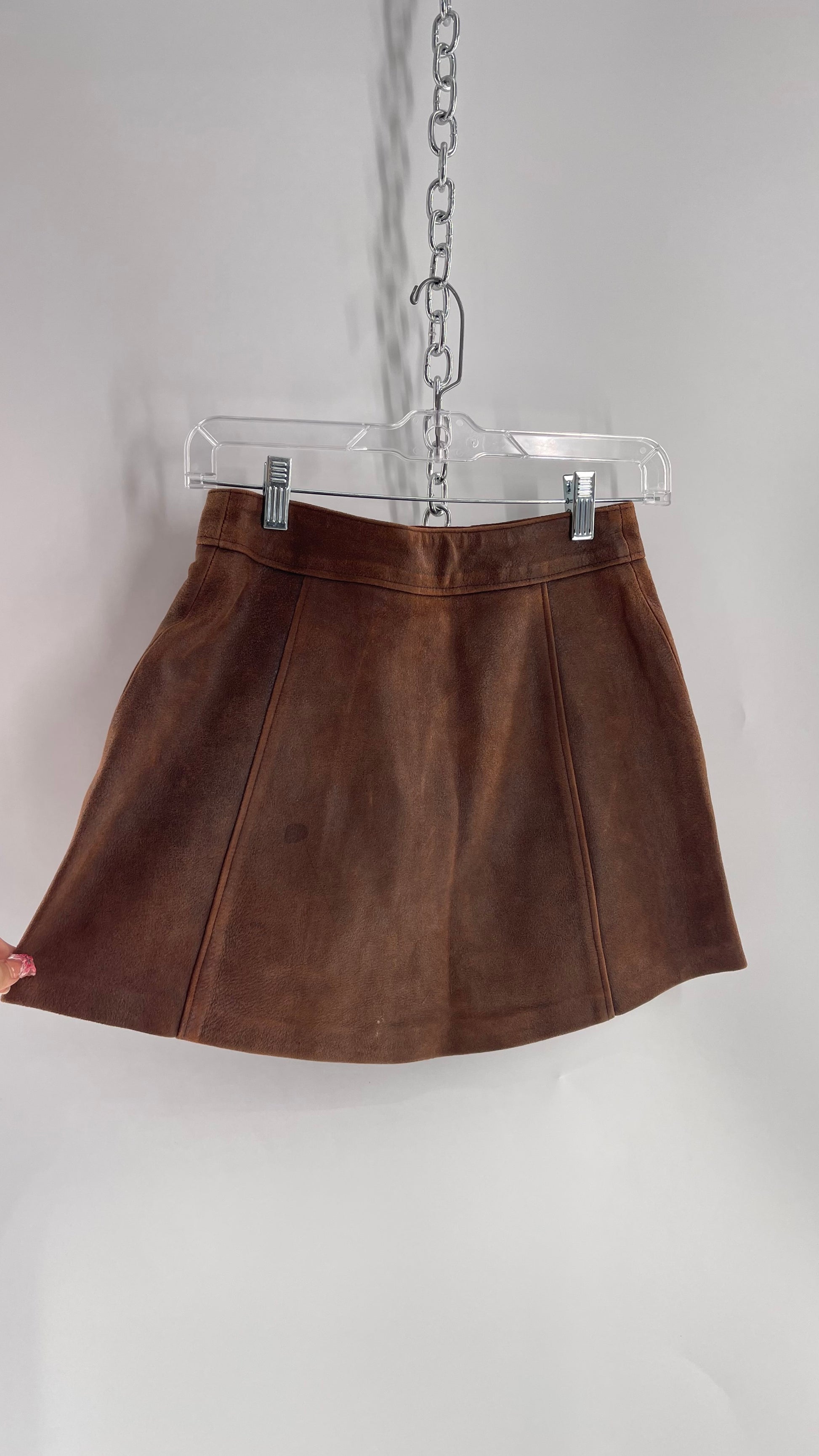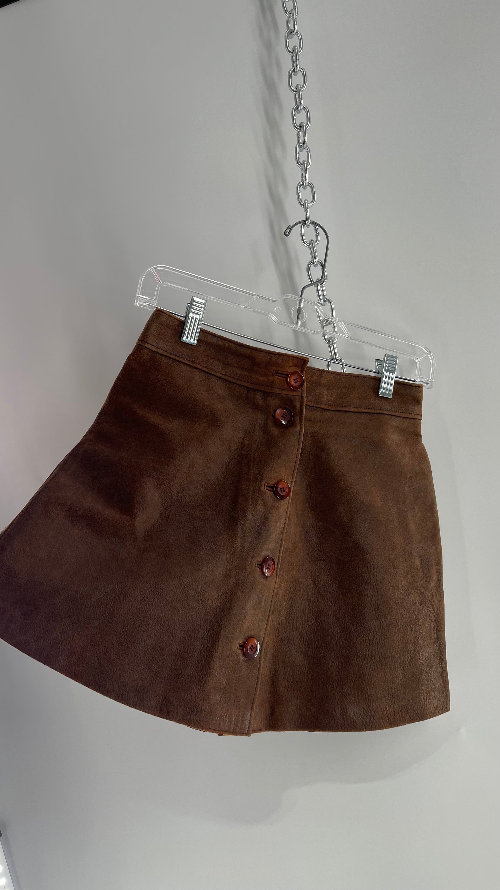 Vintage 1970s Brown Leather Button Front Mini Skirt (XS)