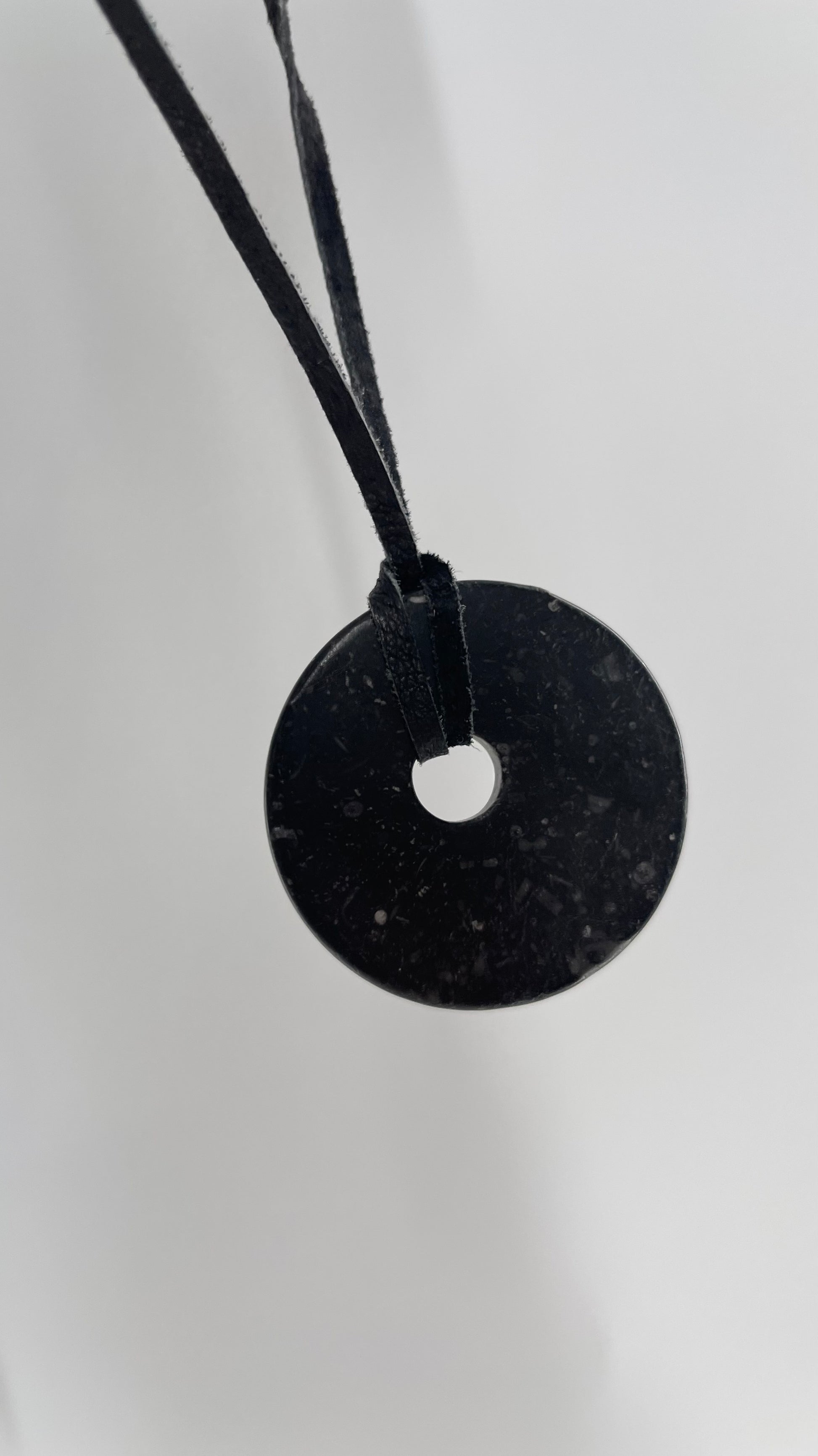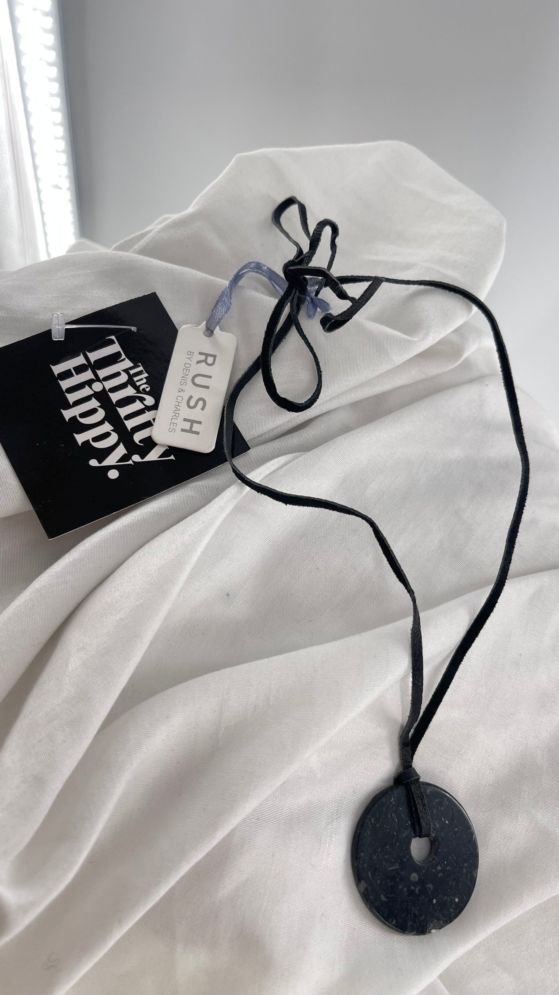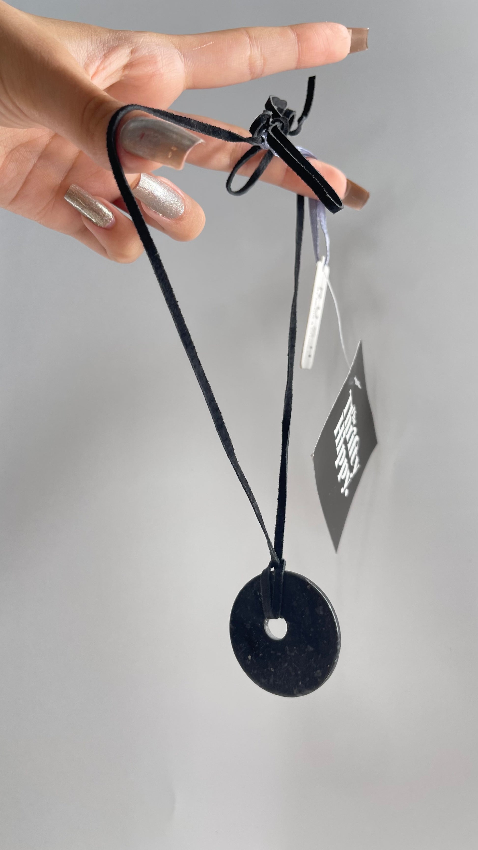 Deadstock Vintage Black Circular Stone Pendant Necklace Adjustable Length