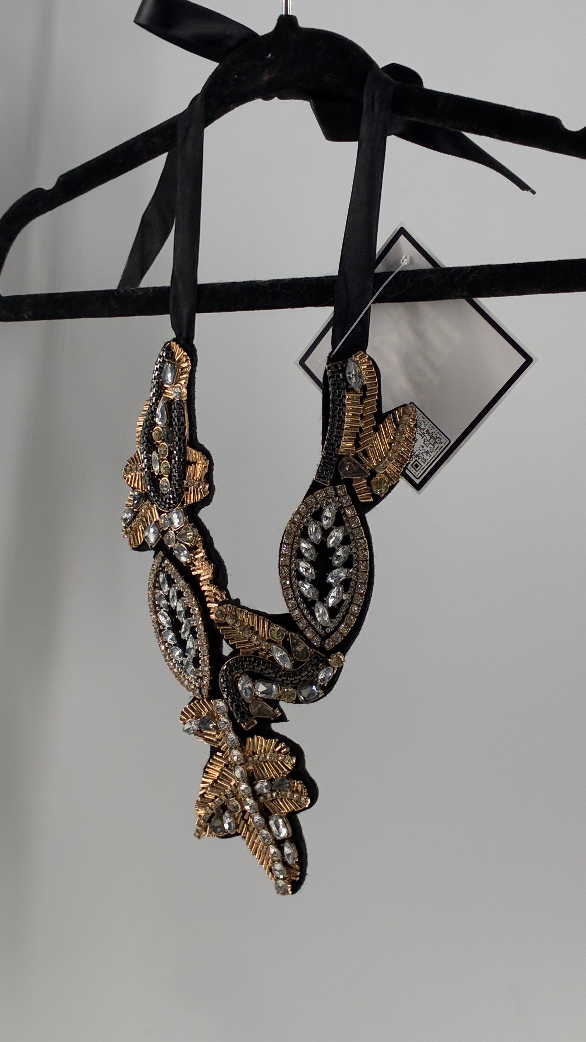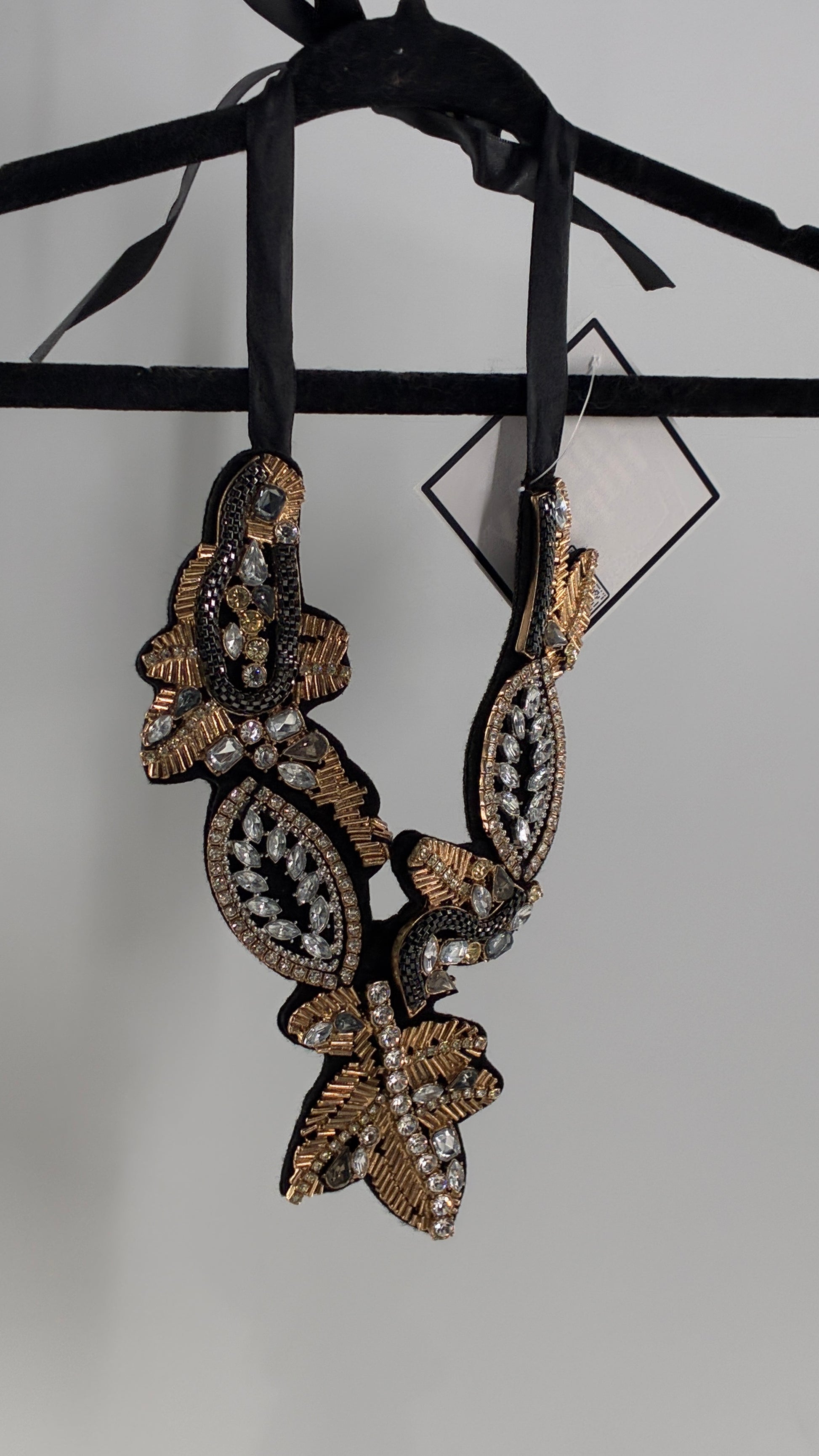 Vintage Ornate Beaded and Embroidered Adjustable Choker Necklace