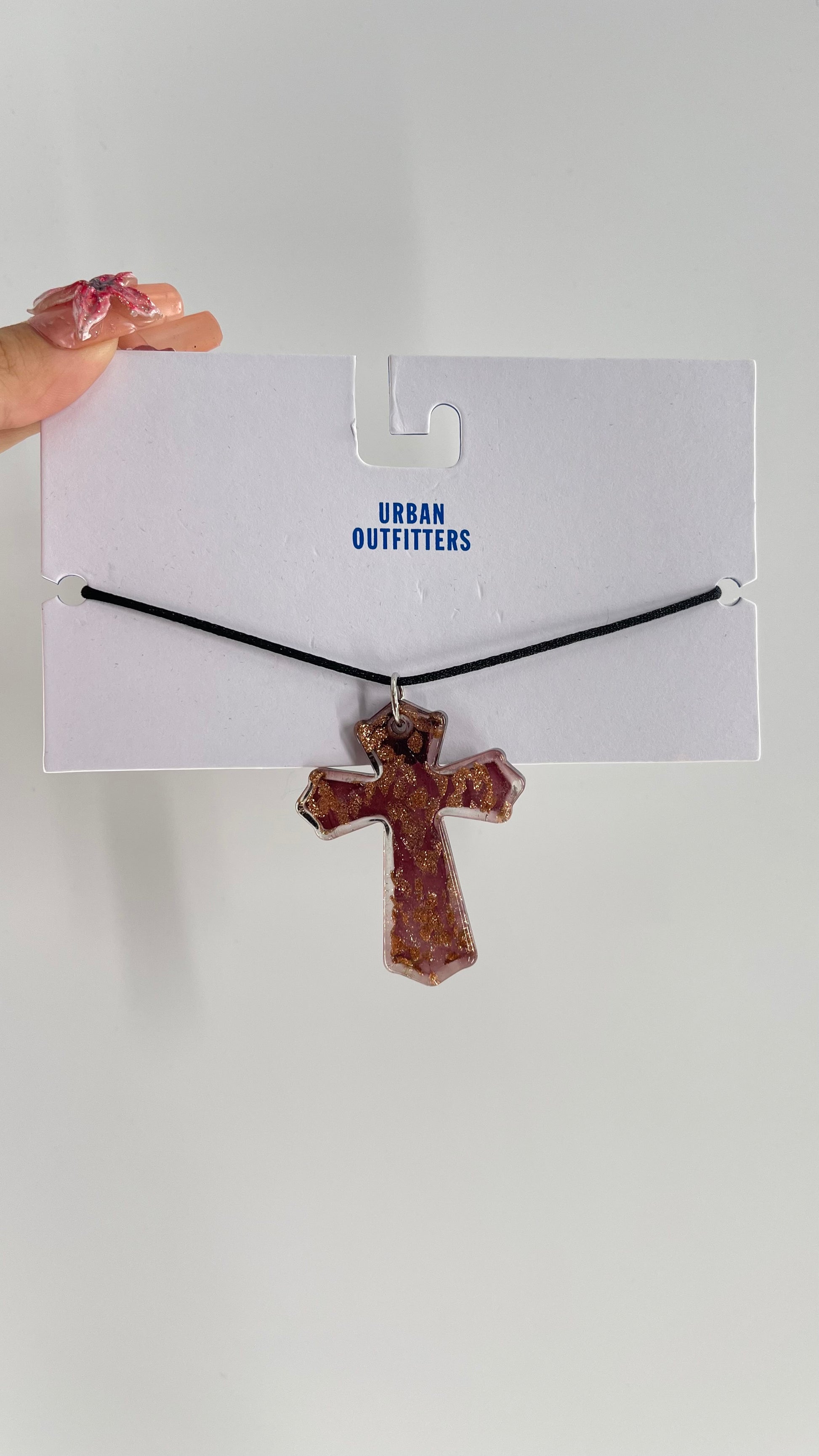Urban Outfitters Brown Metallic Glass Cross Choker Necklace