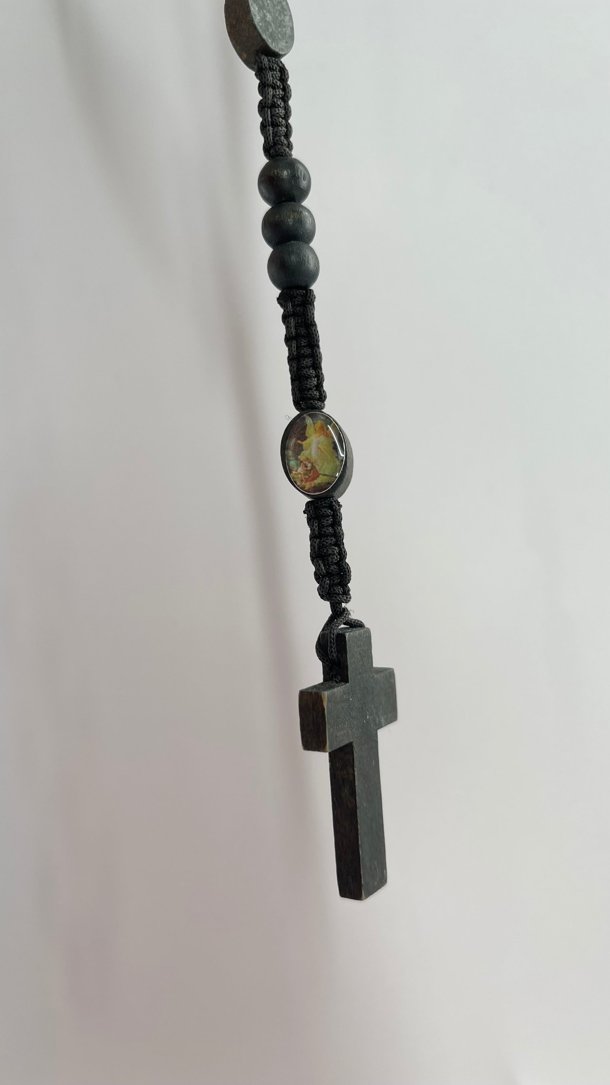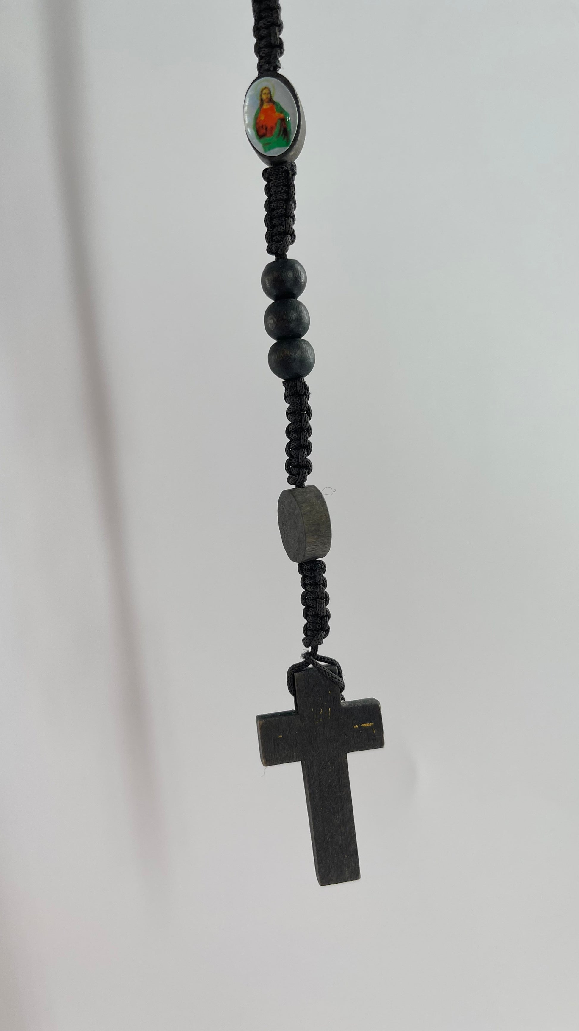 Vintage Black Rope Rosary Necklace Prayer Beads