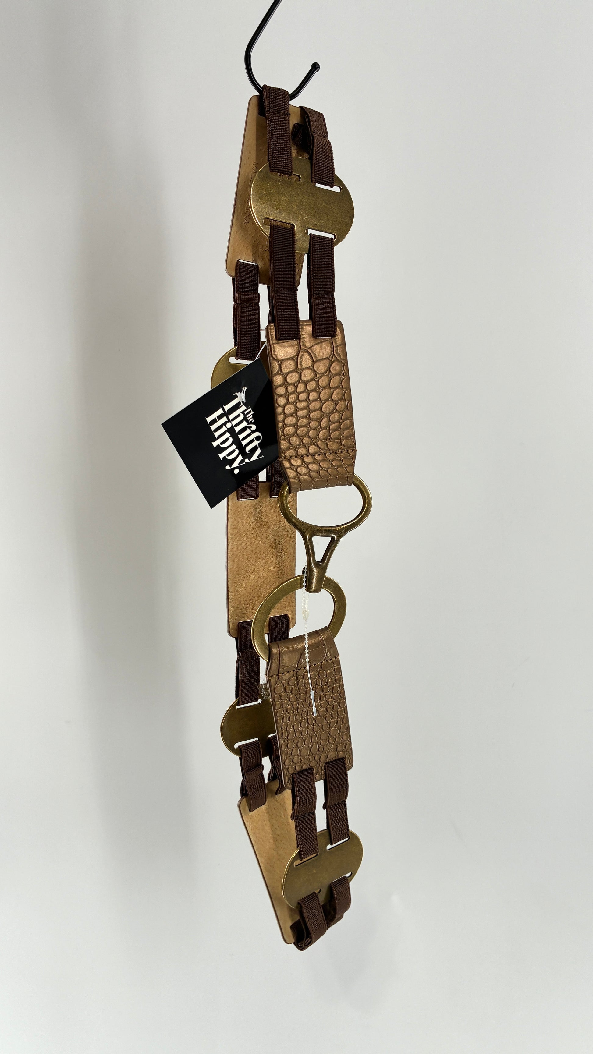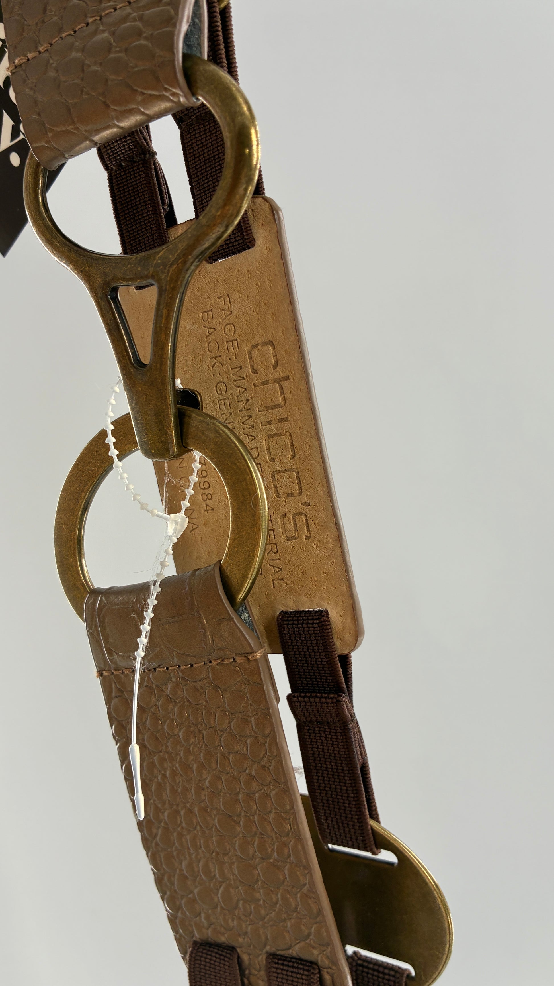 Vintage CHICO’s Bronze Embossed Leather and Metal Ring Belt