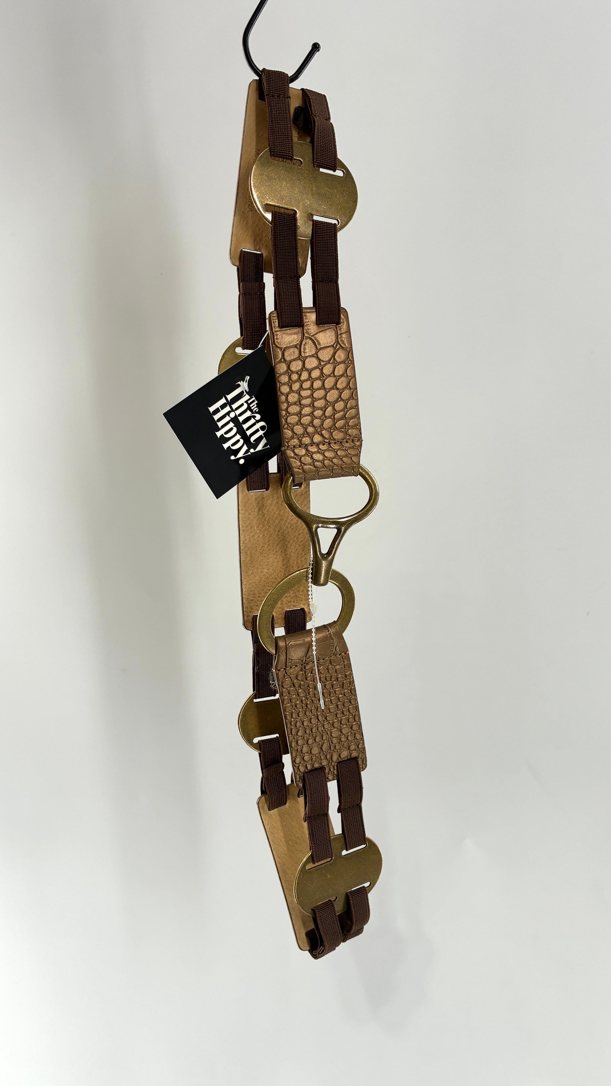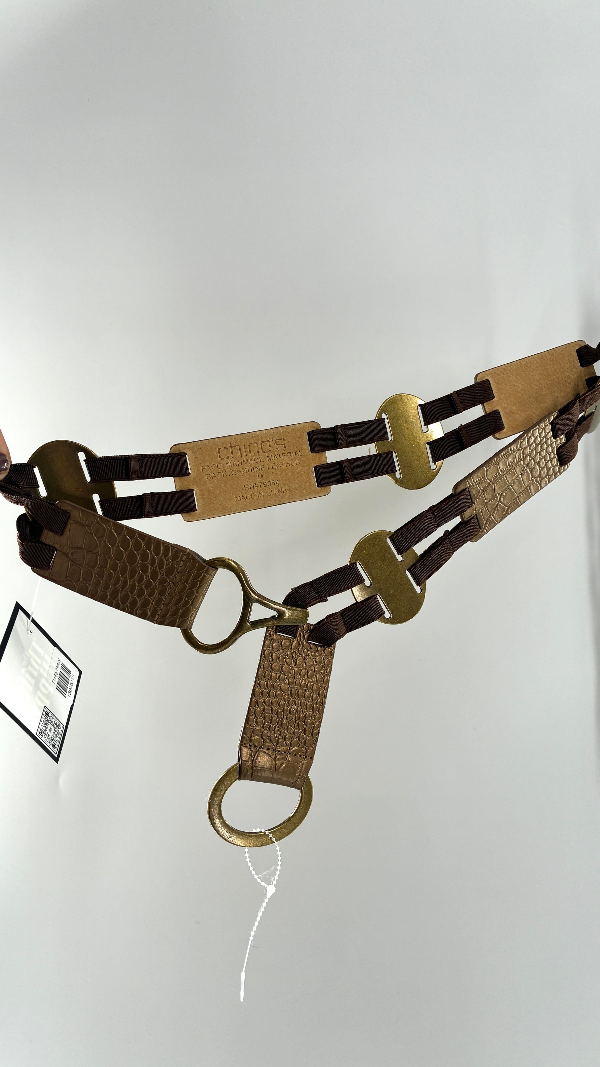 Vintage CHICO’s Bronze Embossed Leather and Metal Ring Belt (Medium)