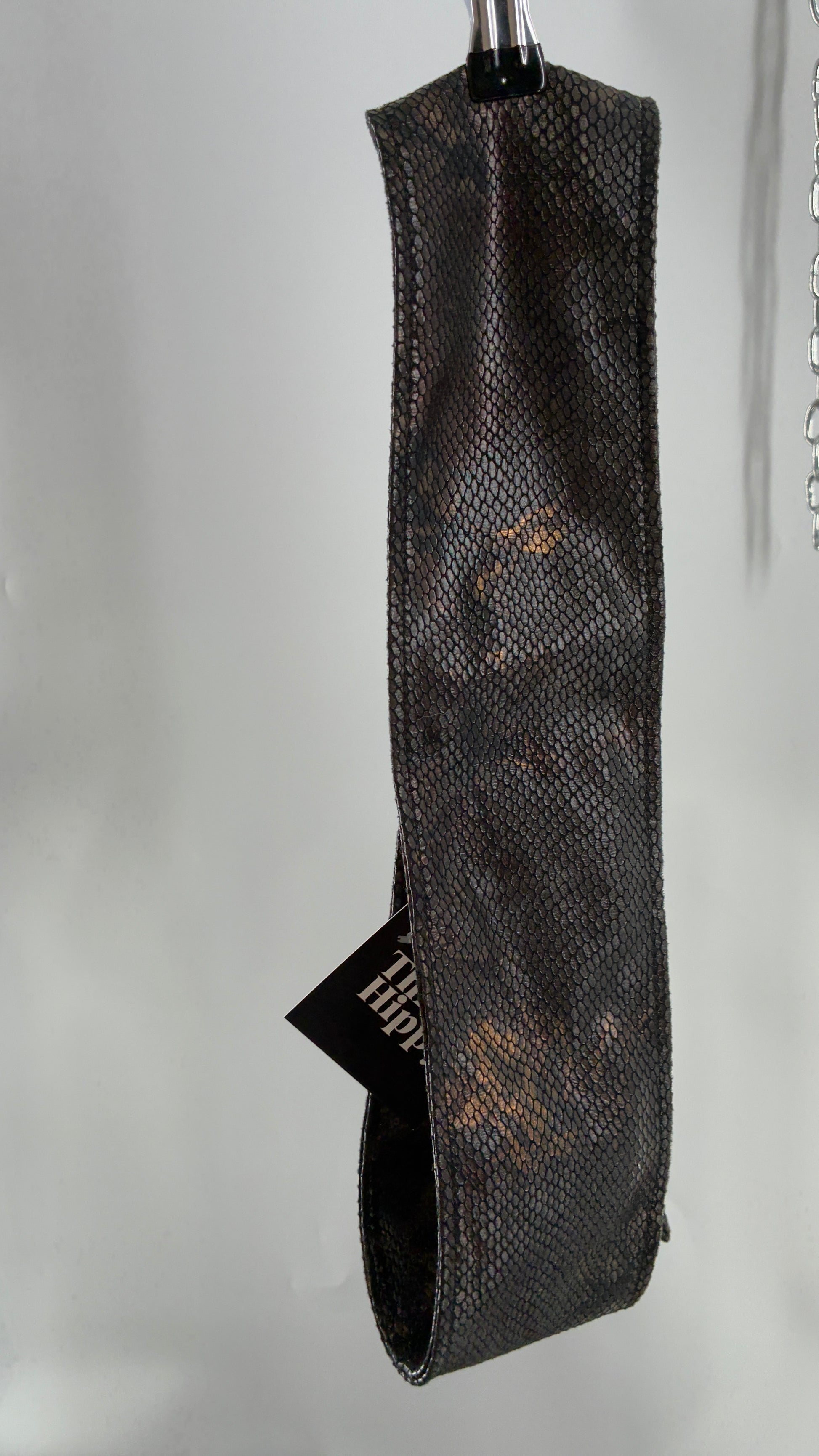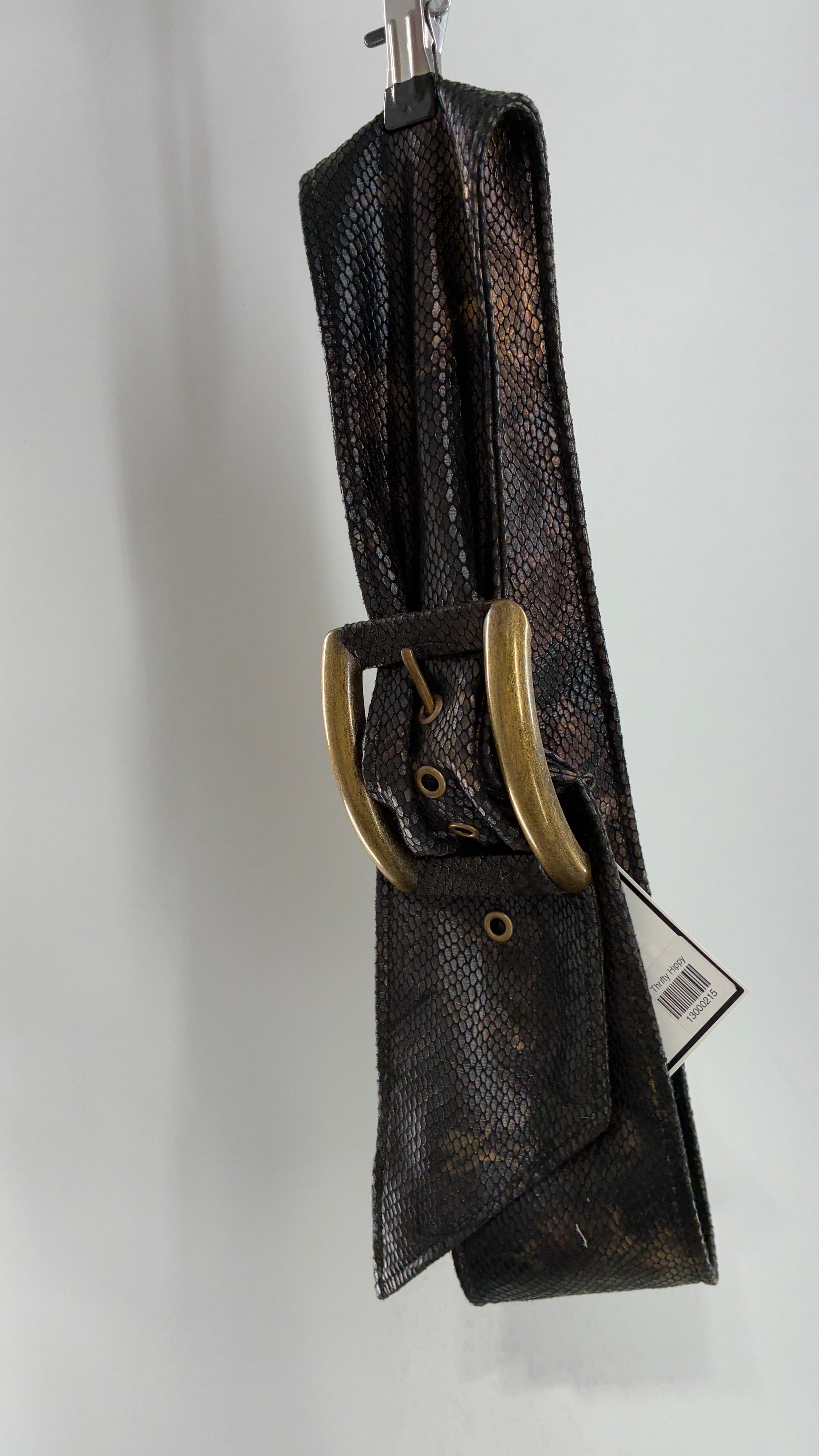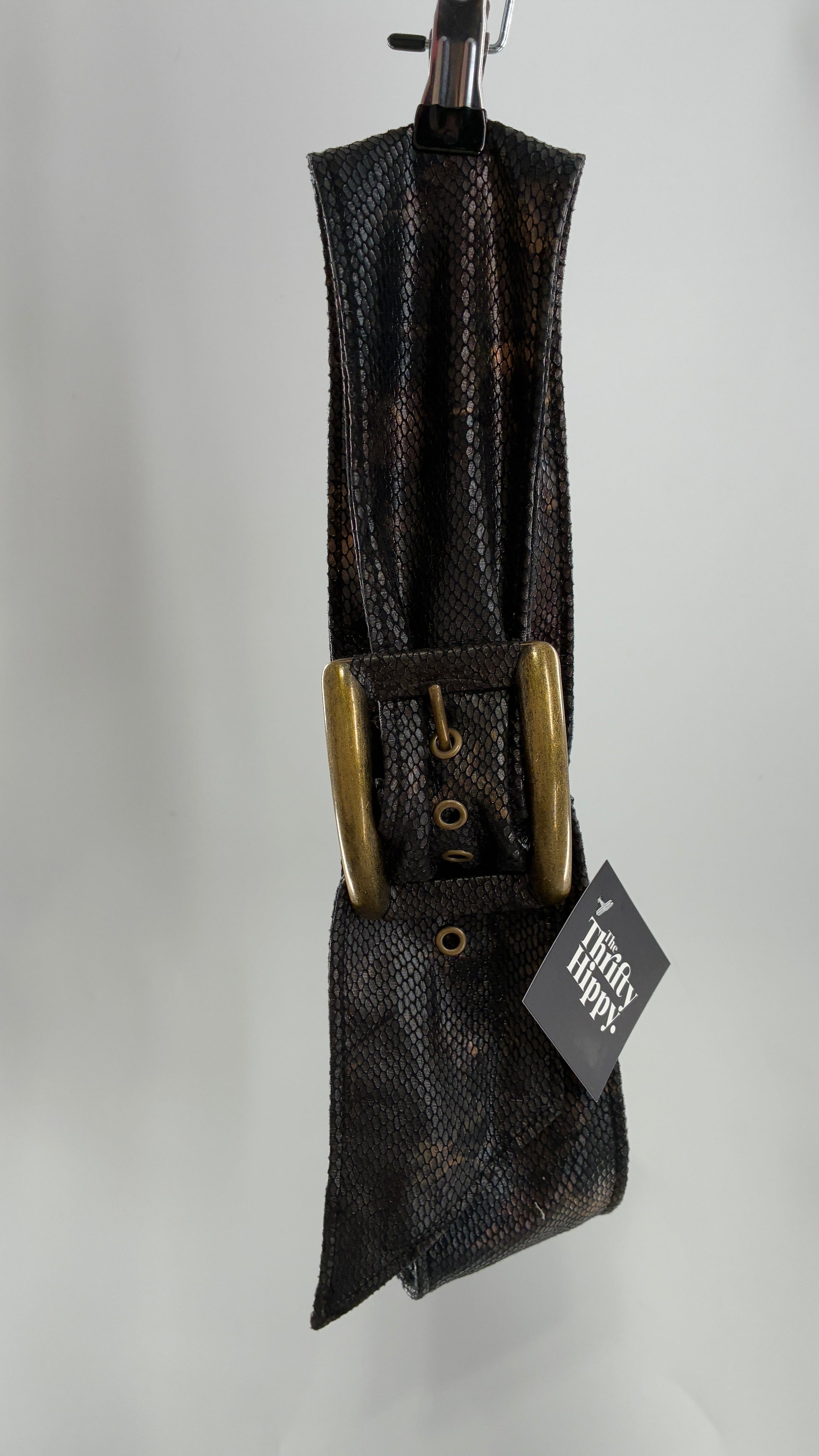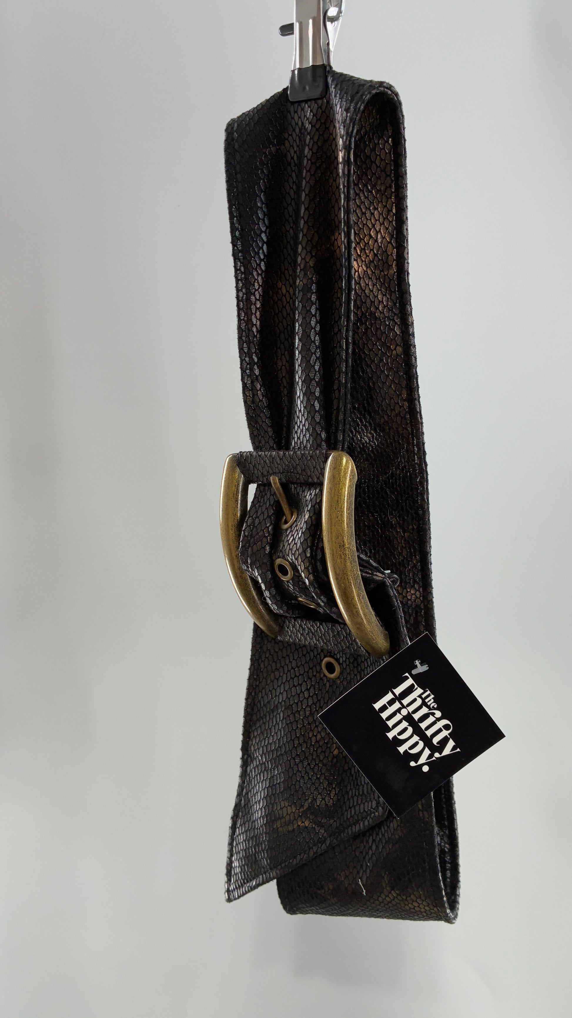 Vintage Snake Skin Patterned Wide Belt with Gold Brass Oversized Buckle