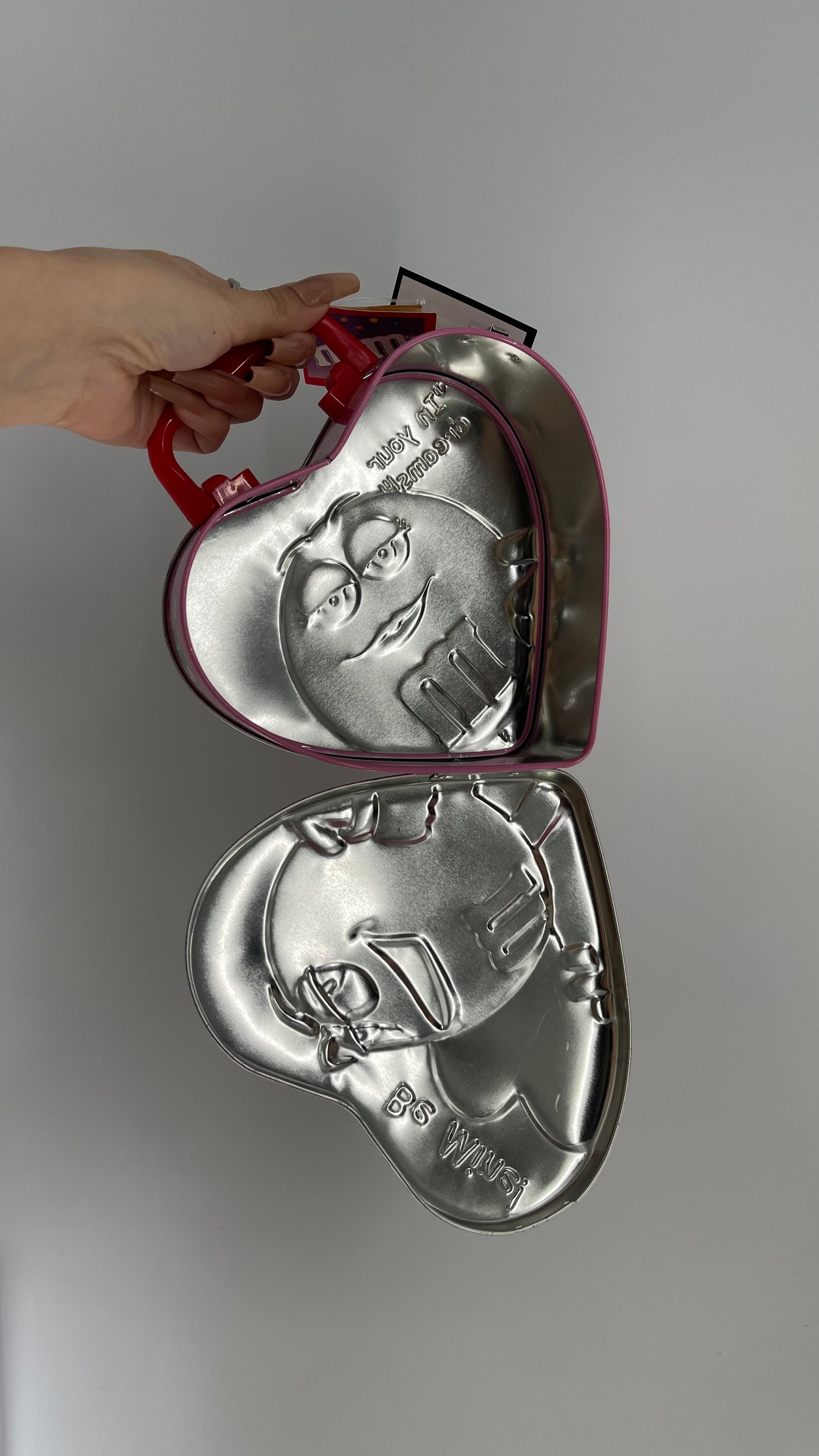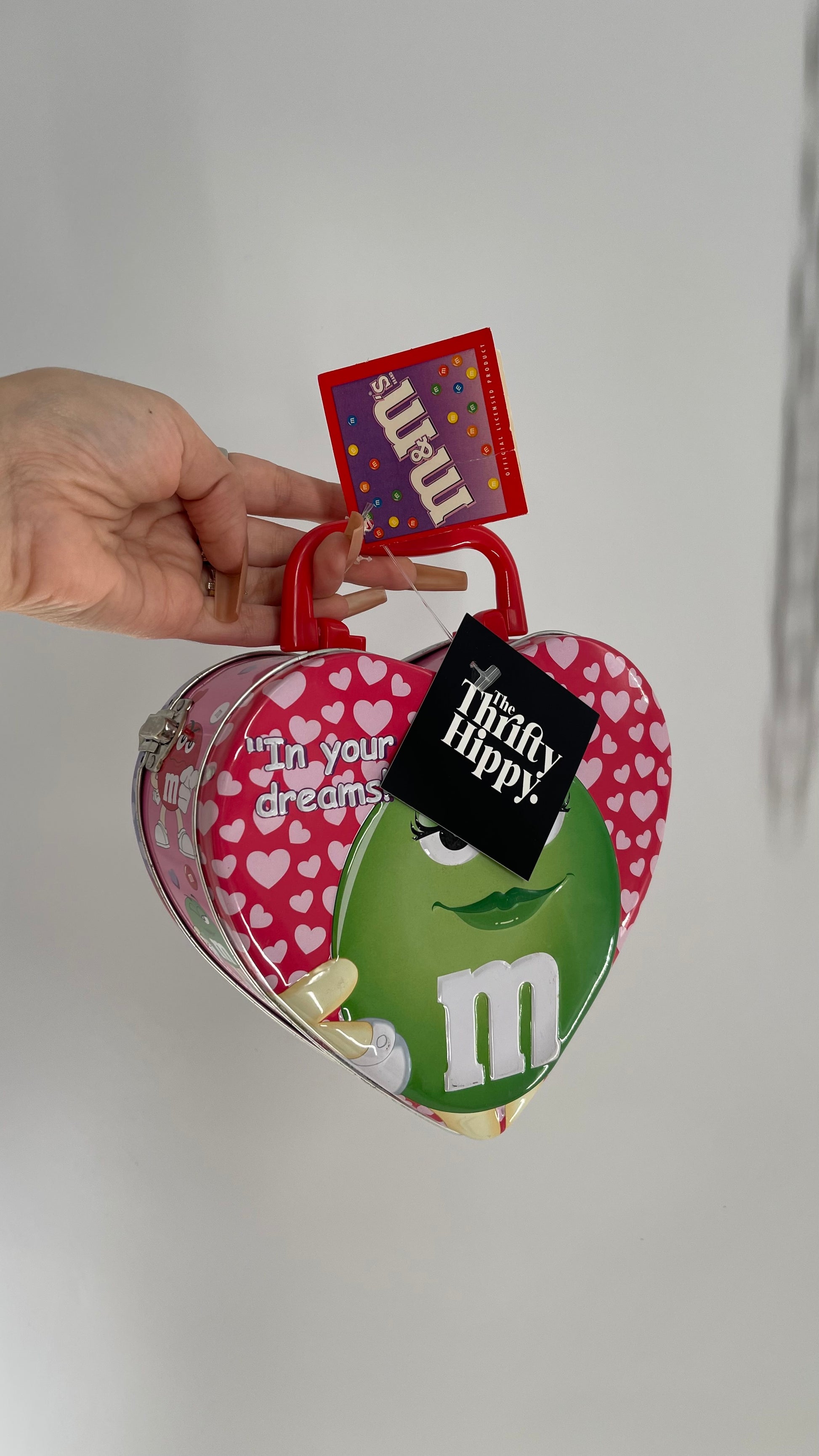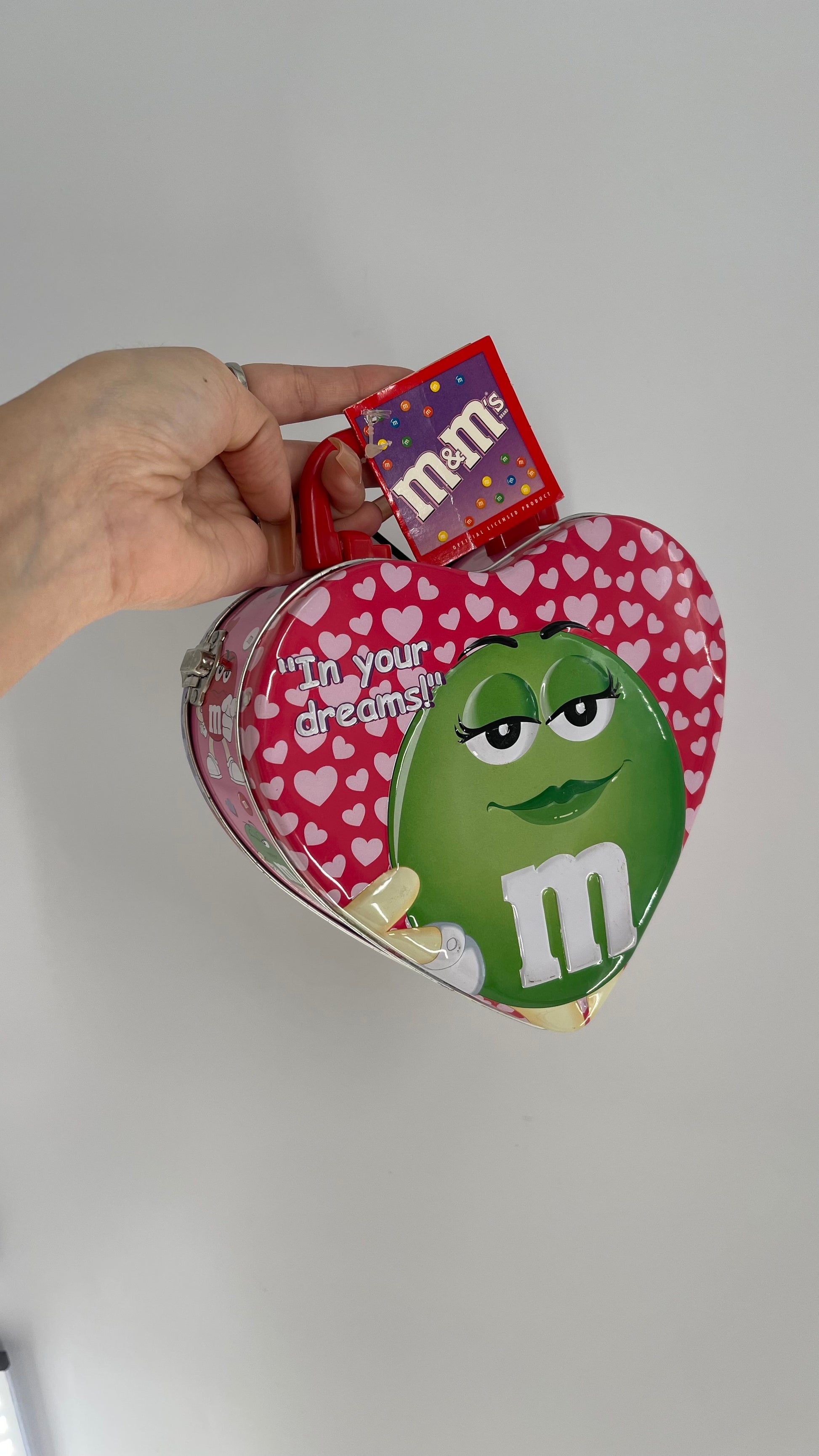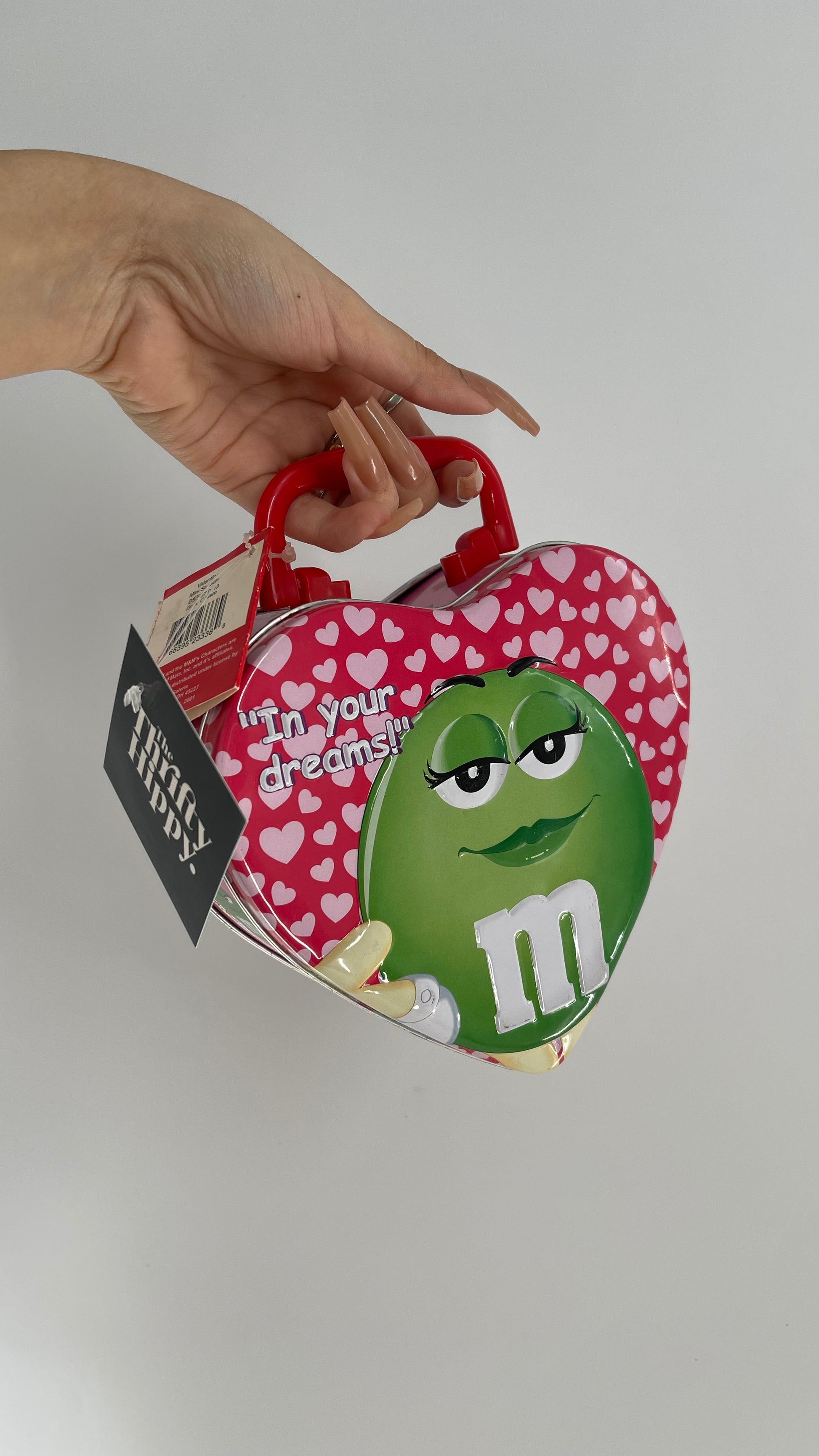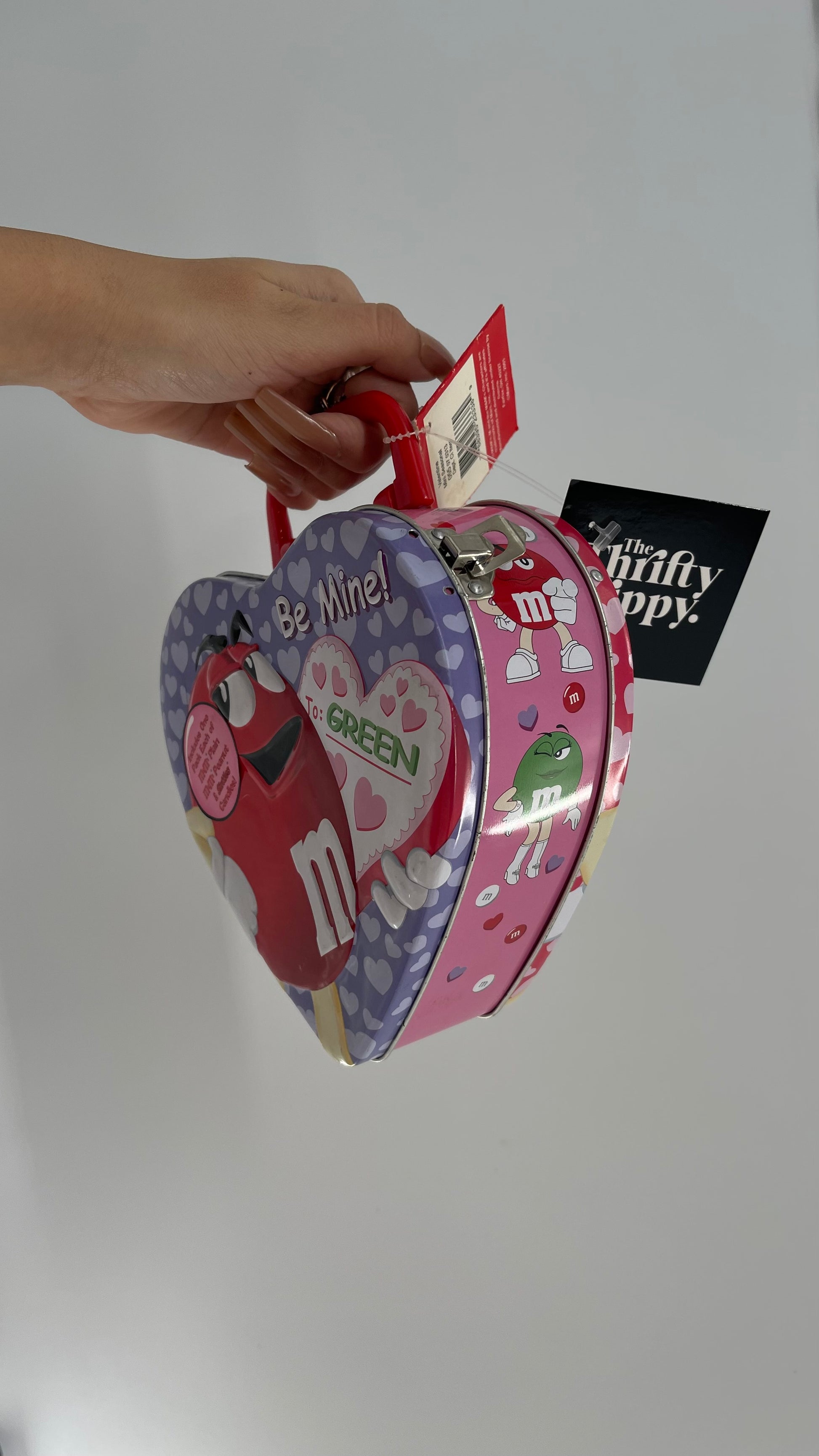 Deadstock Vintage M&M Tin Heart Shaped Lunch Box with “Be Mine” and “In Your Dreams” Embossed