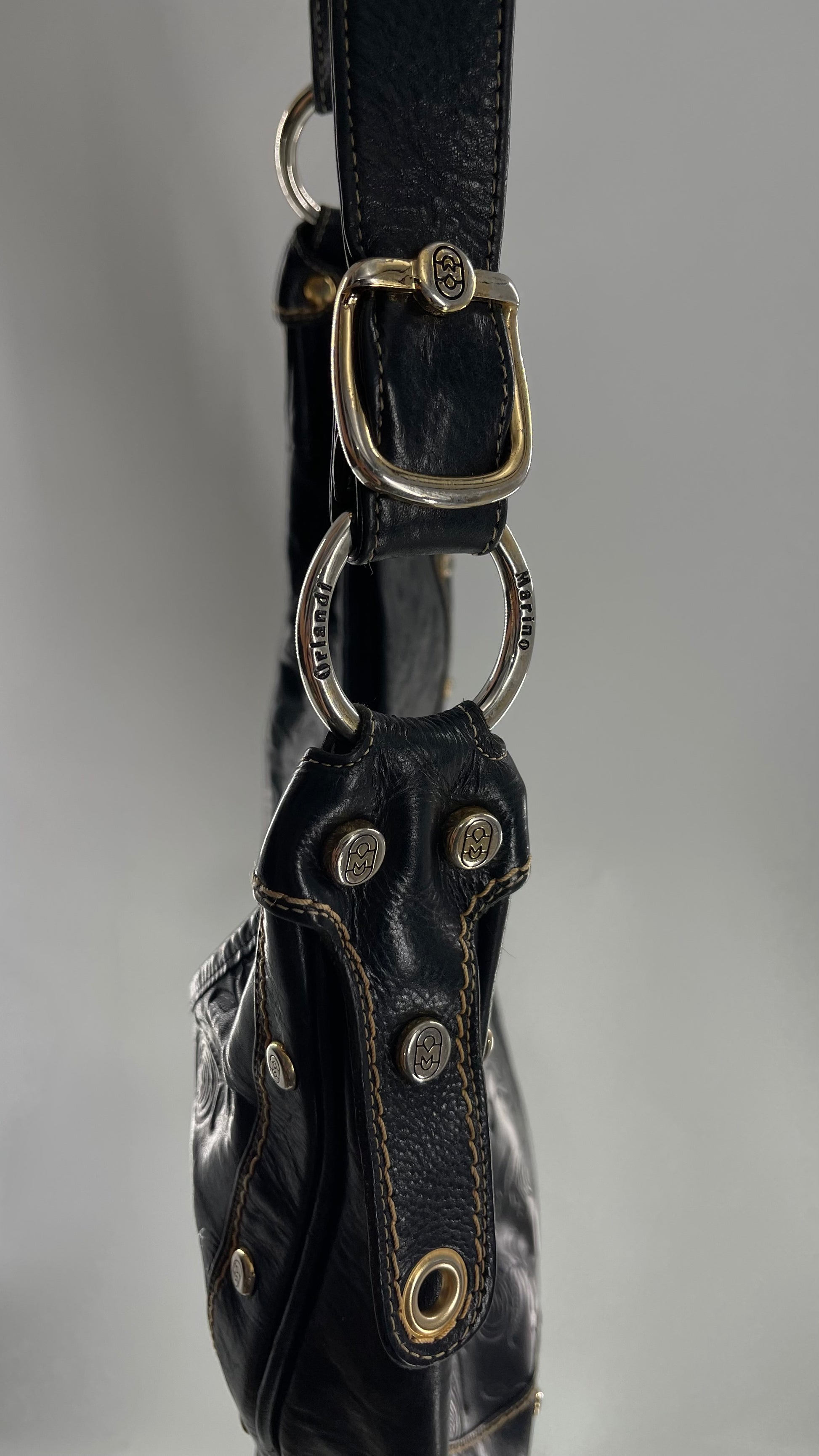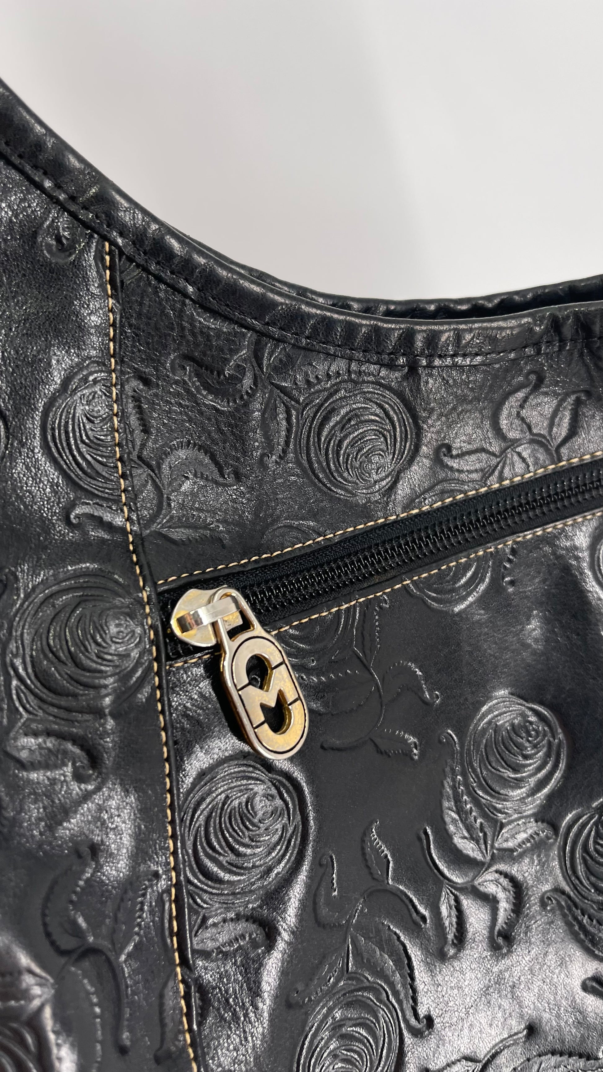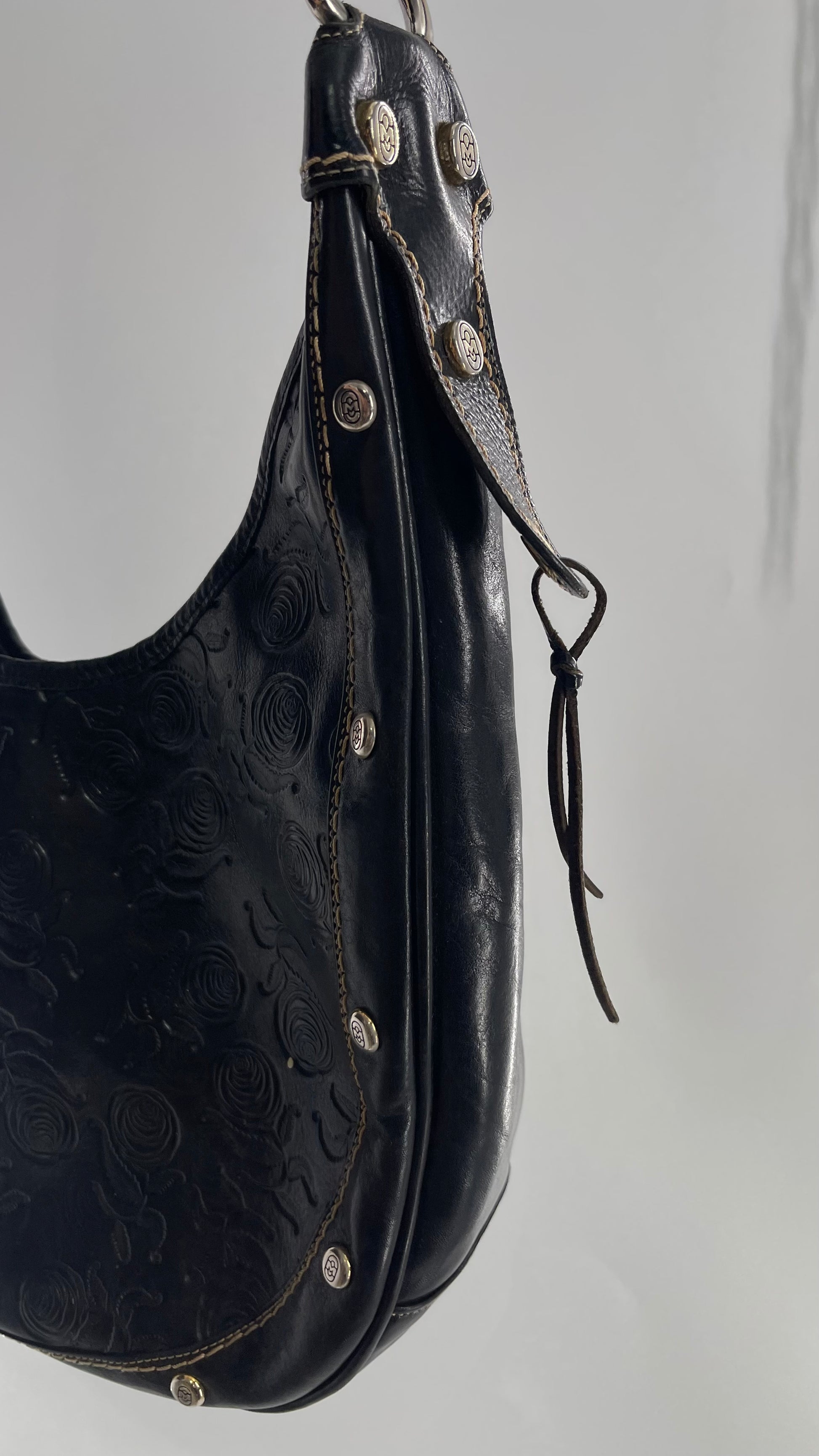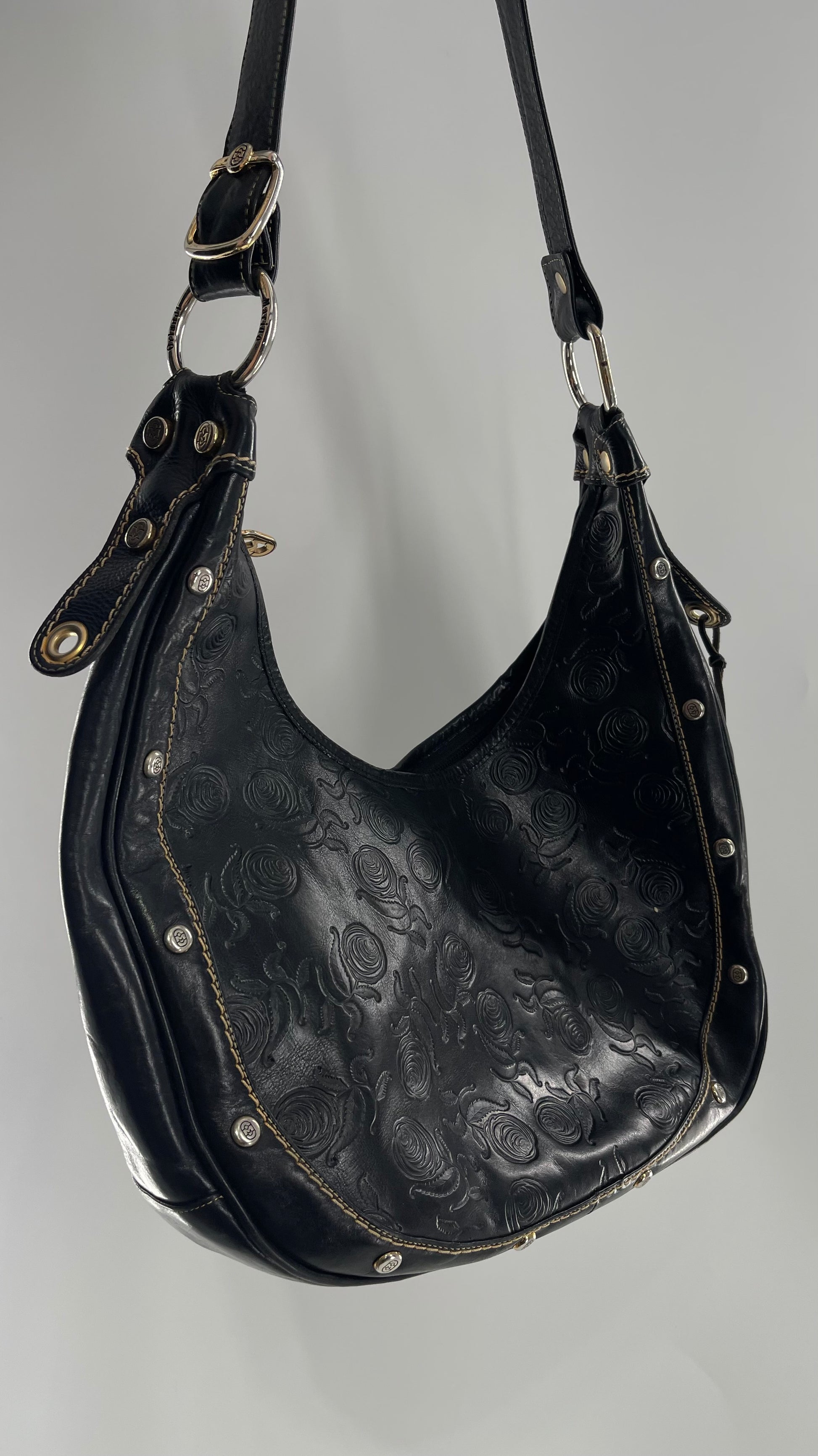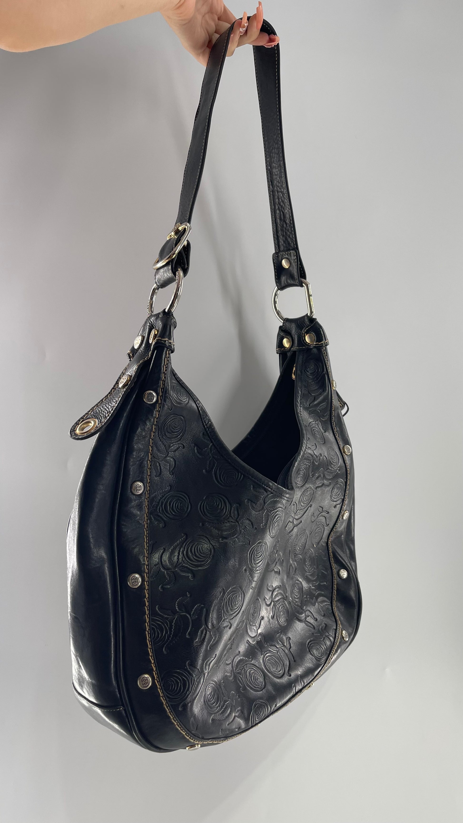 Vintage Marino Orlandi Black Leather Embossed Rose Studded Satchel Bag