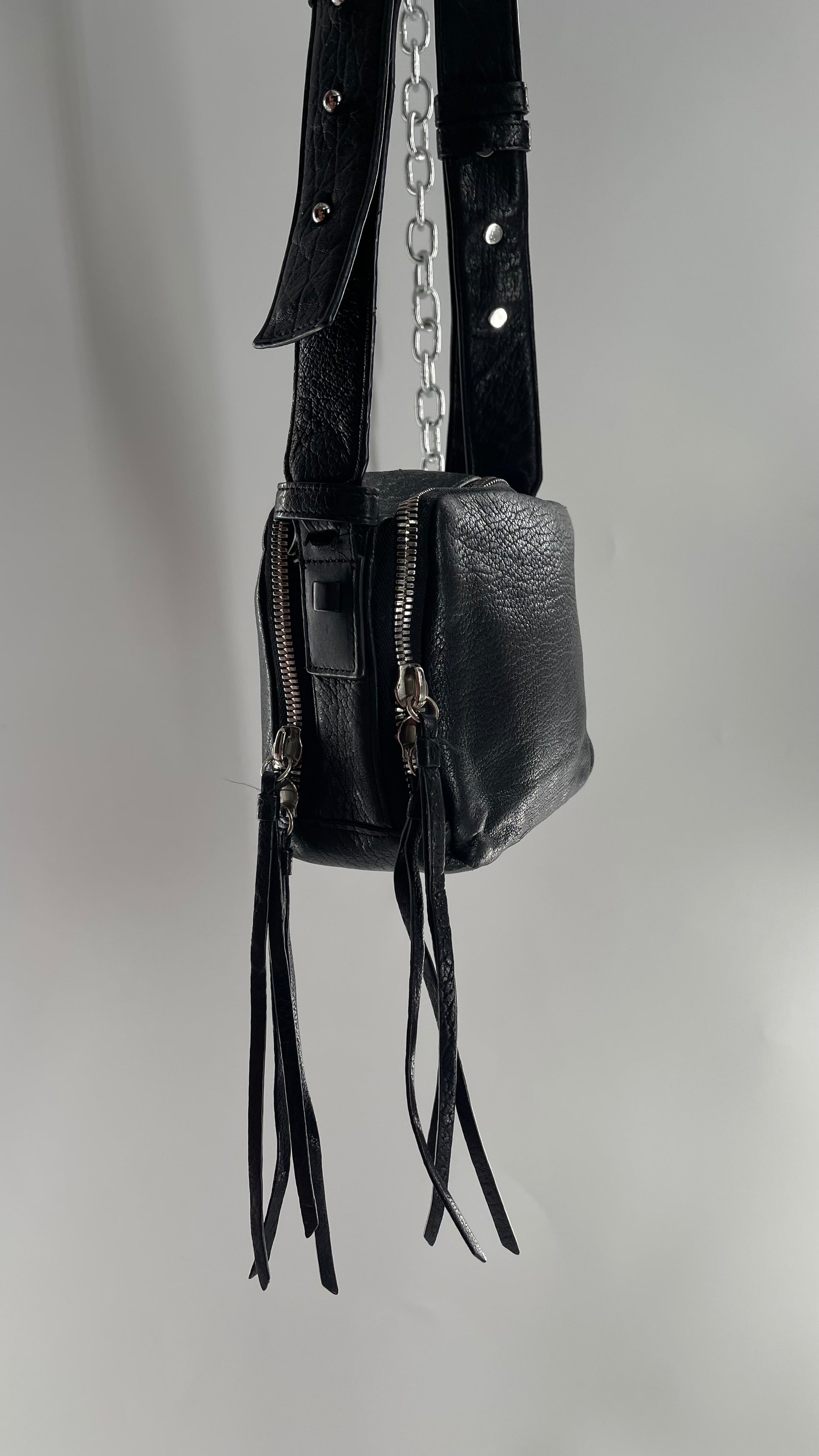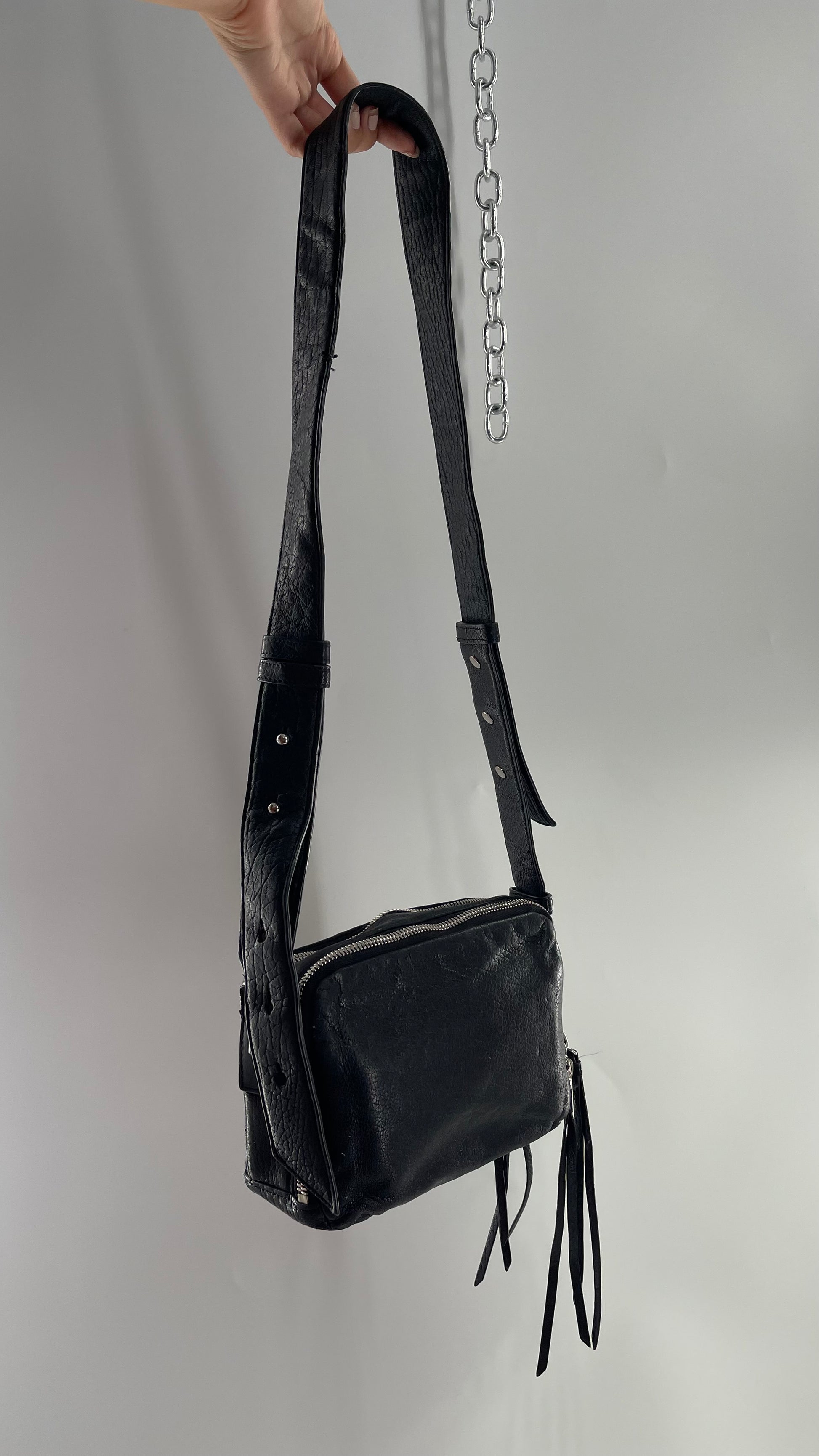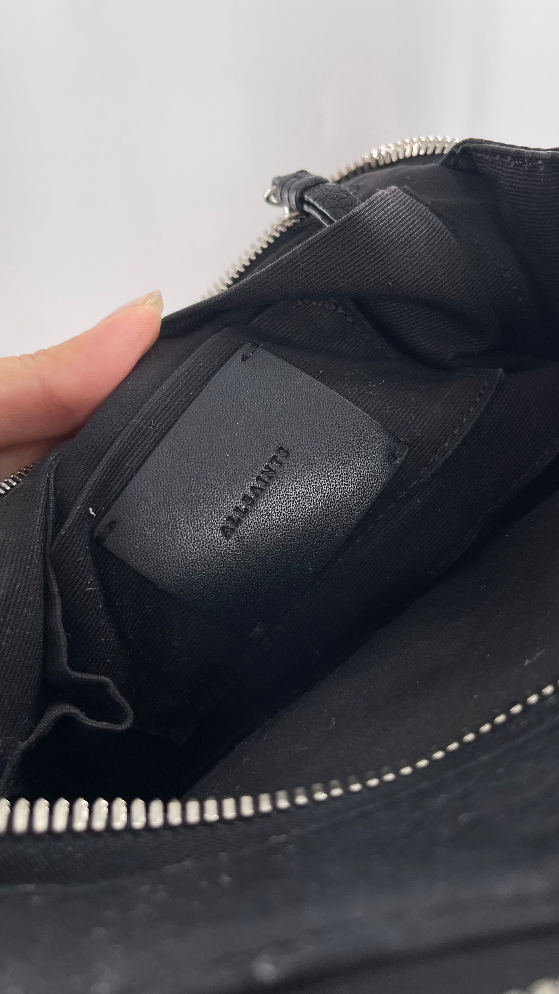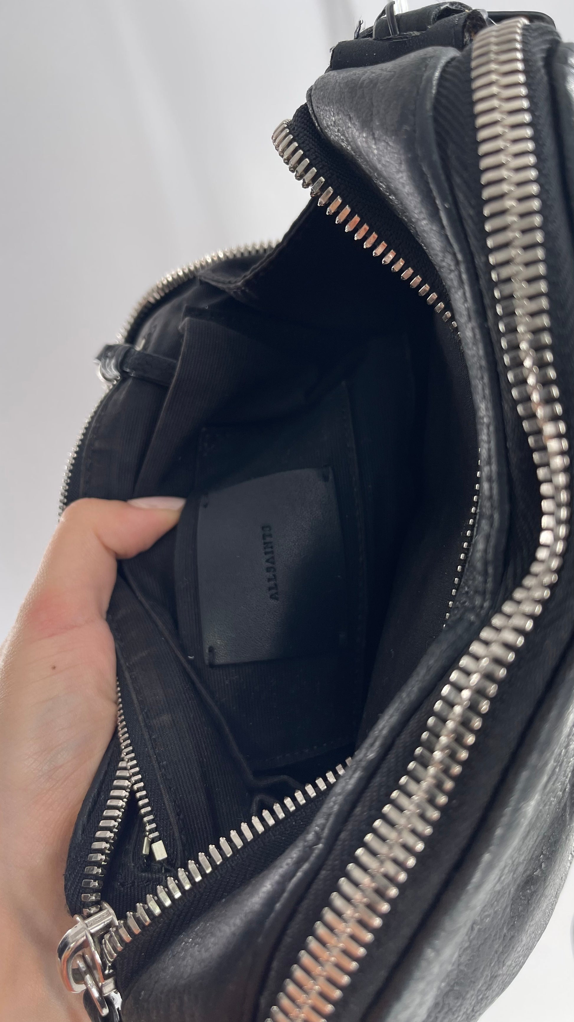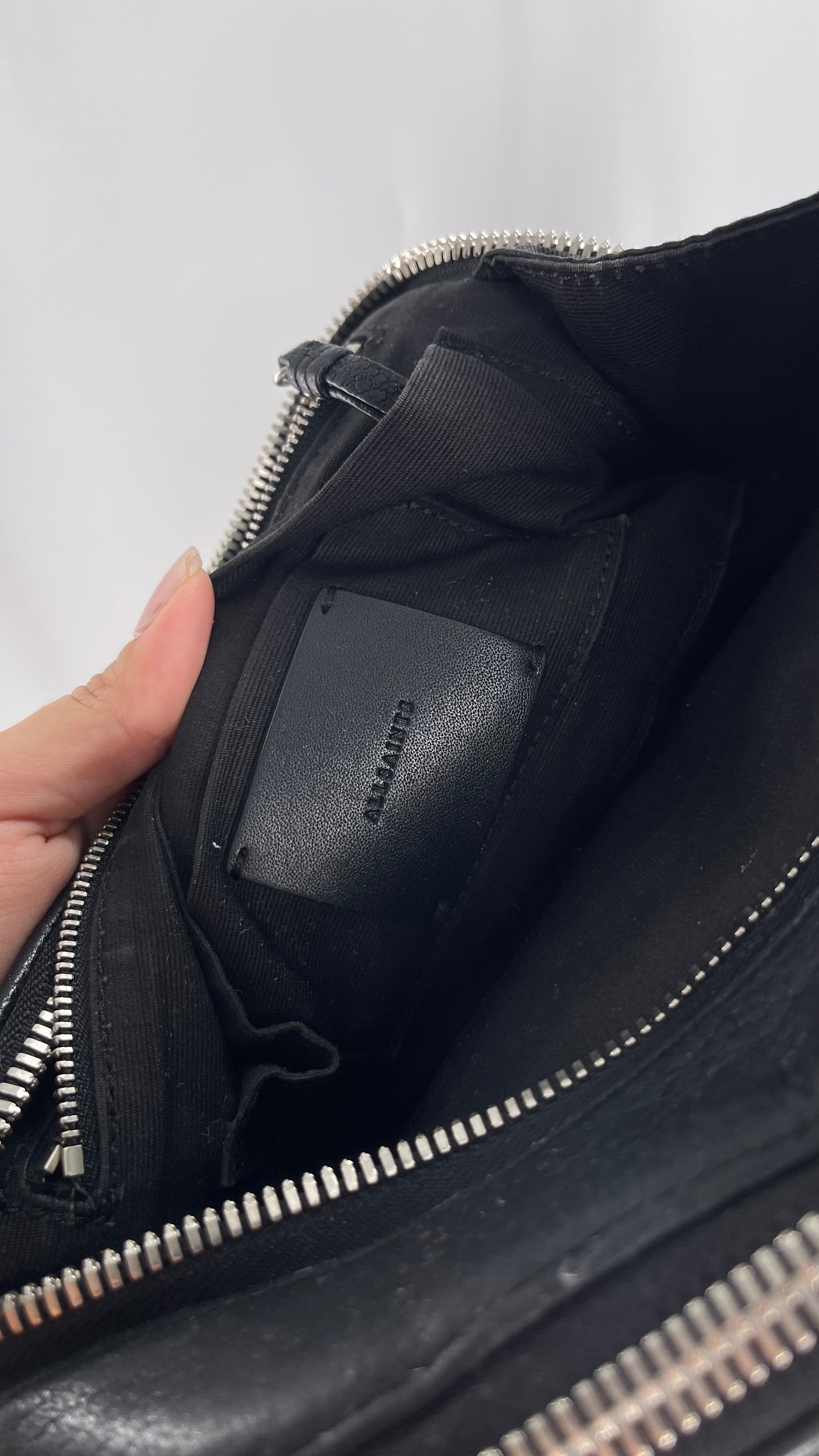 ALL SAINTS Black Leather Zippered Bag