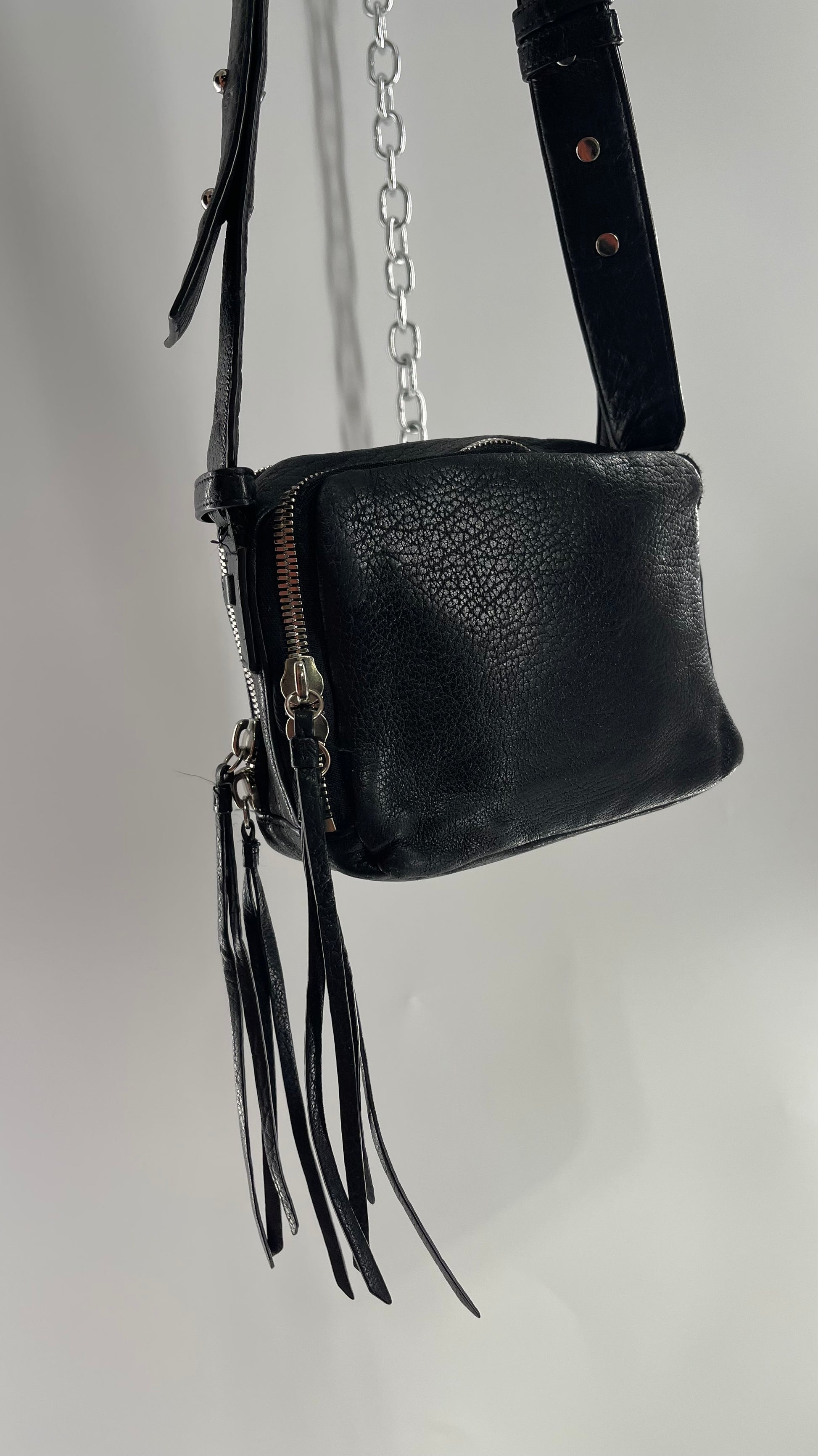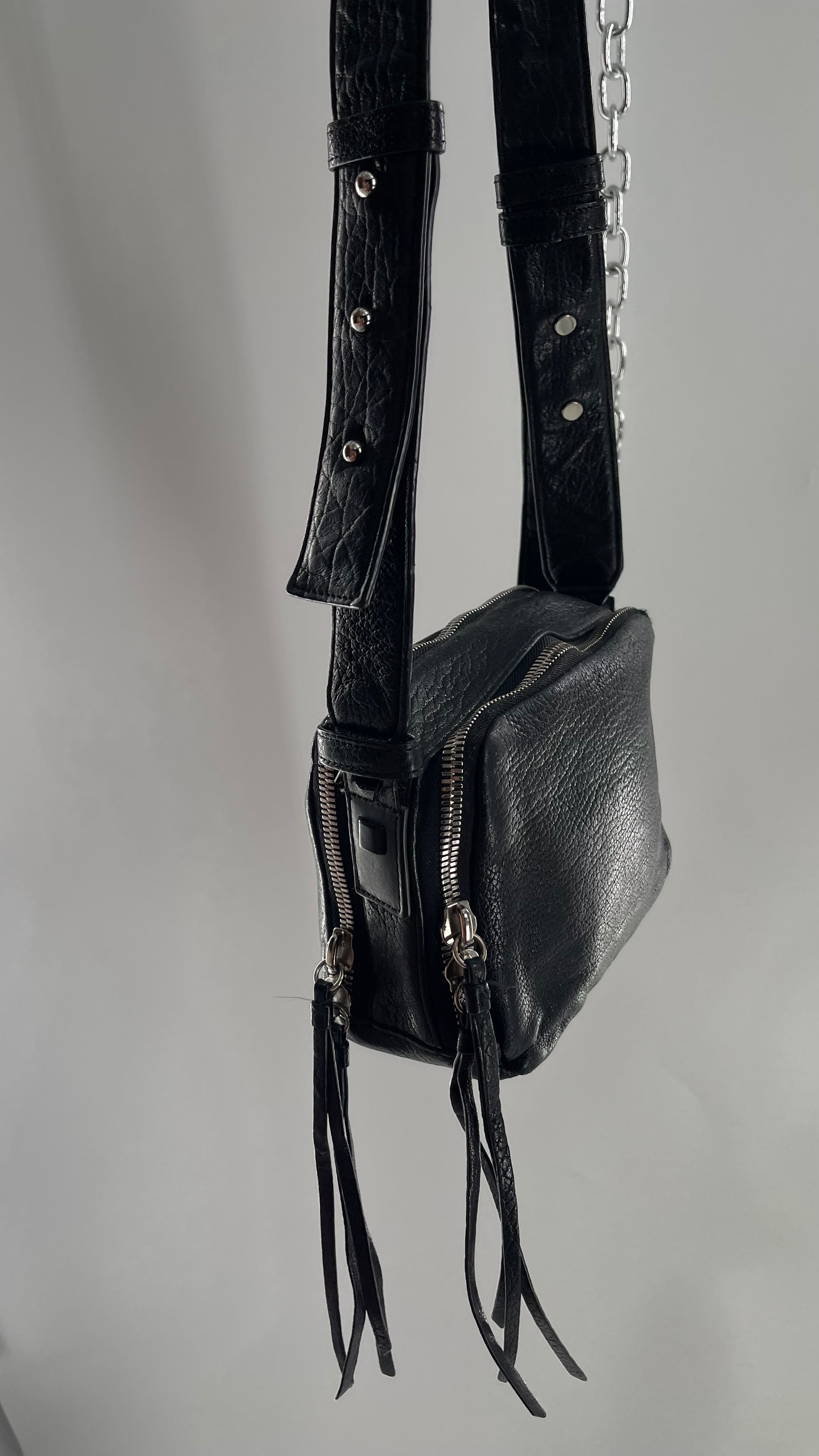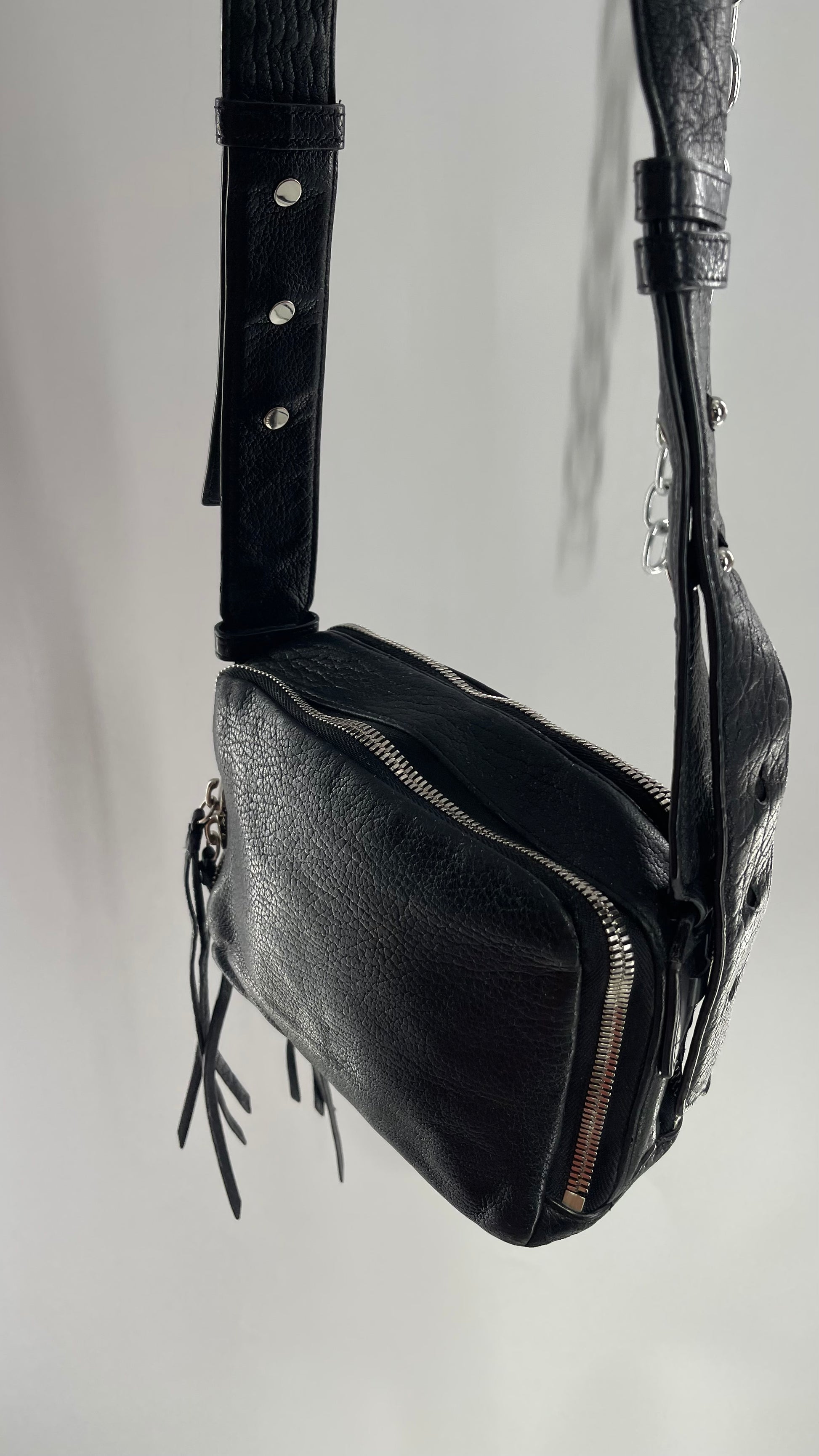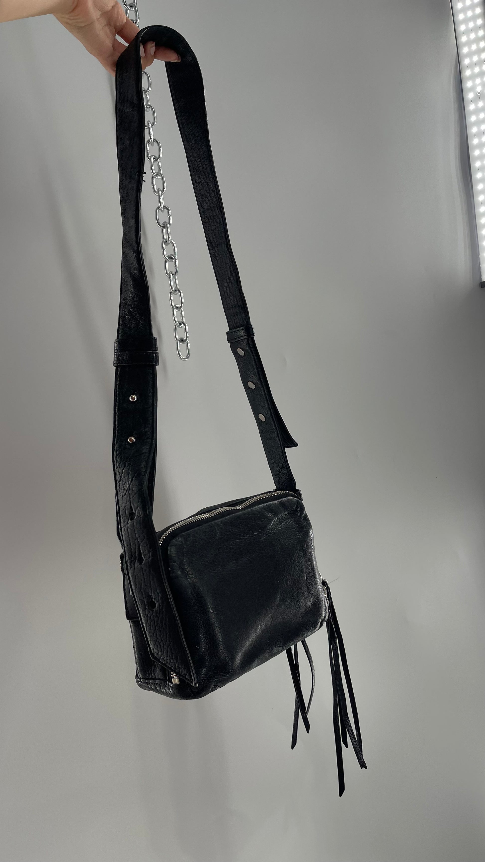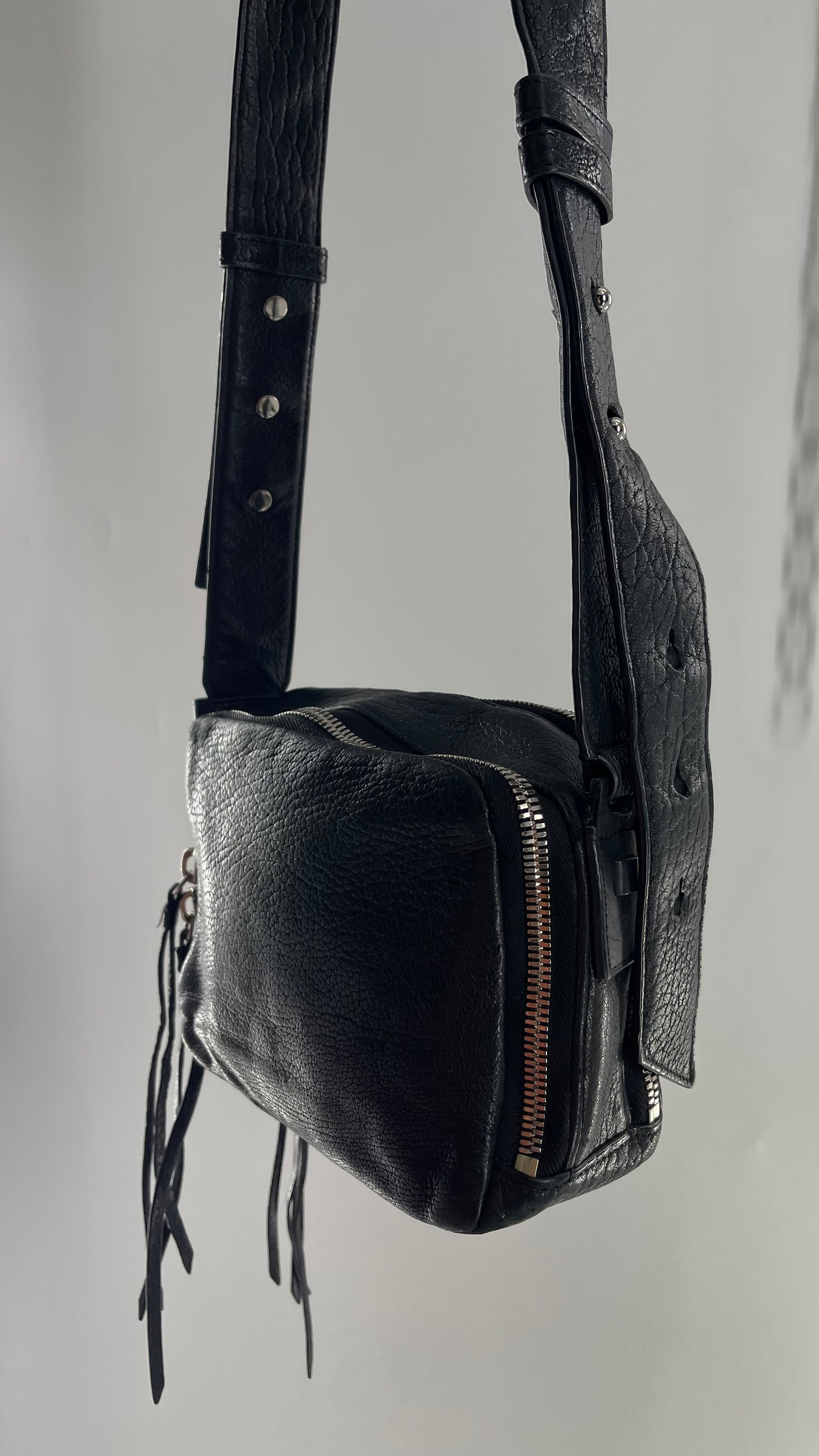 ALL SAINTS Black Leather Zippered Bag