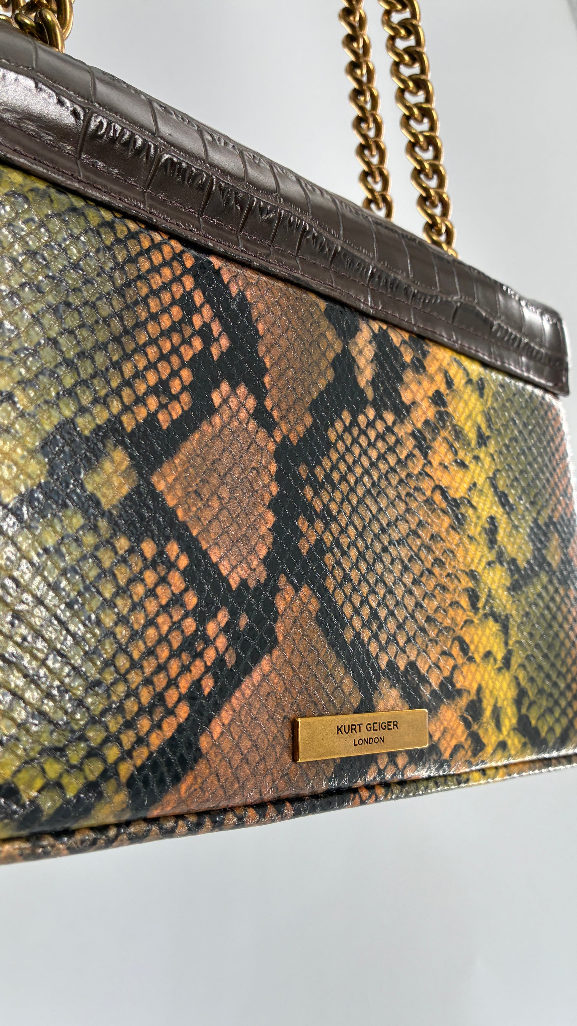 KURT GEIGER London Purse with Heavy Brass Chain, and Crocodile/Snakeskin