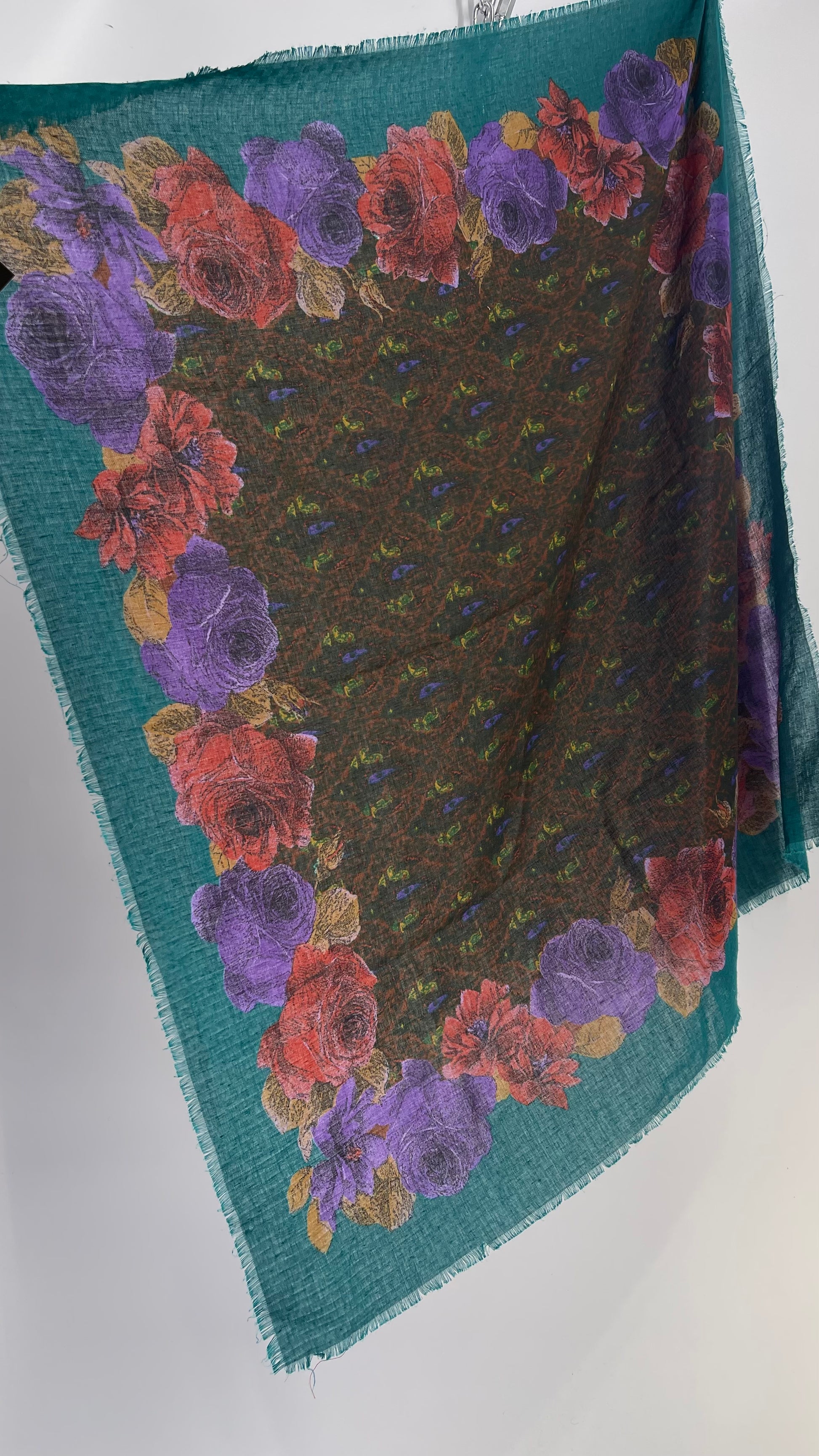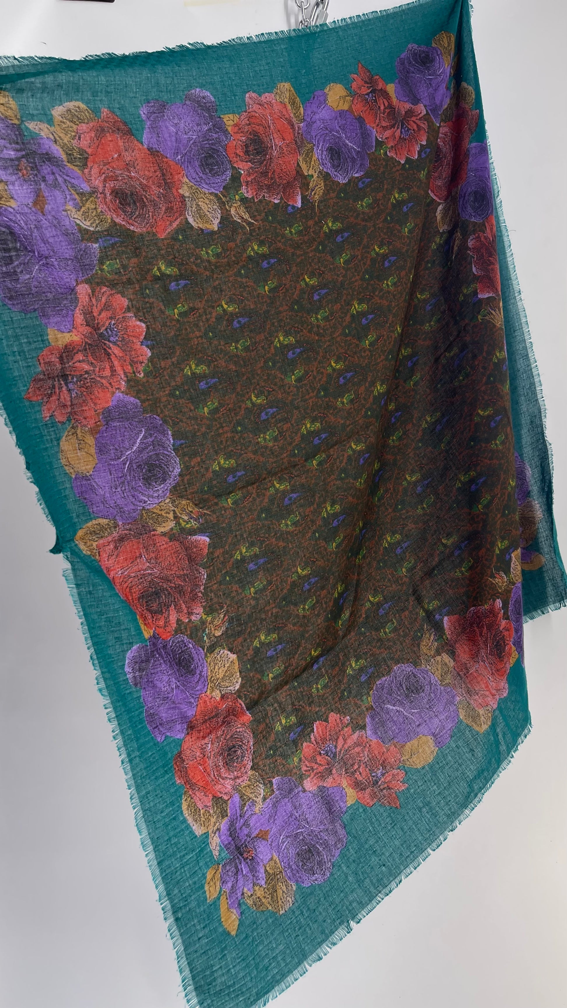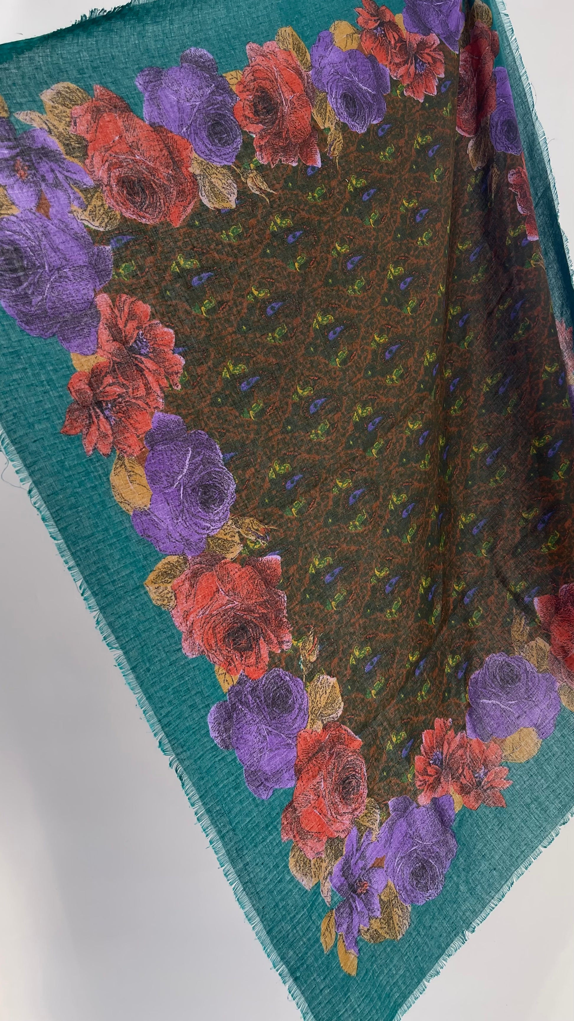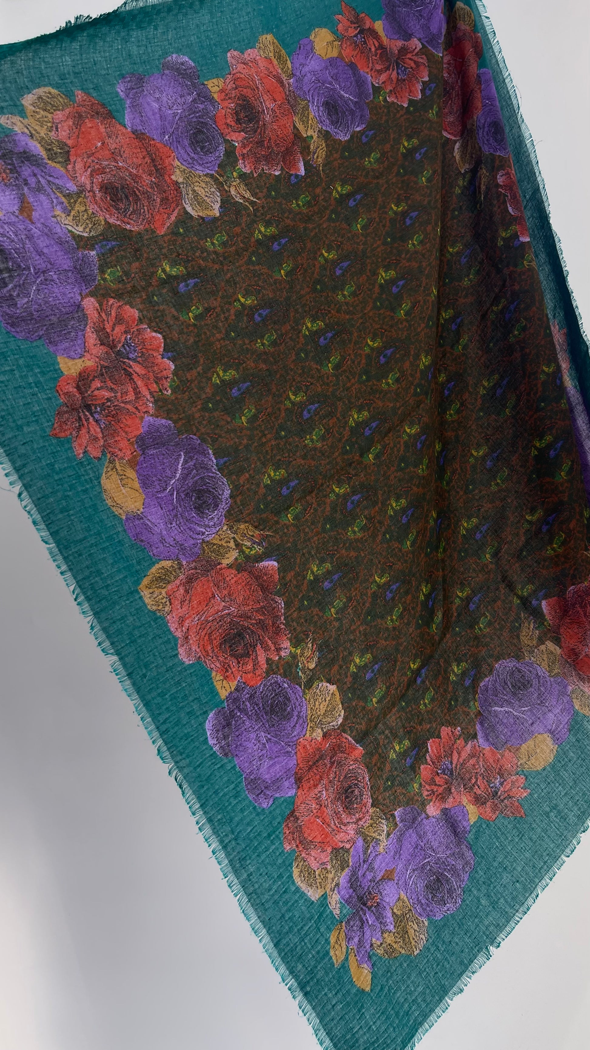 Vintage Jewel Tone Floral Scarf