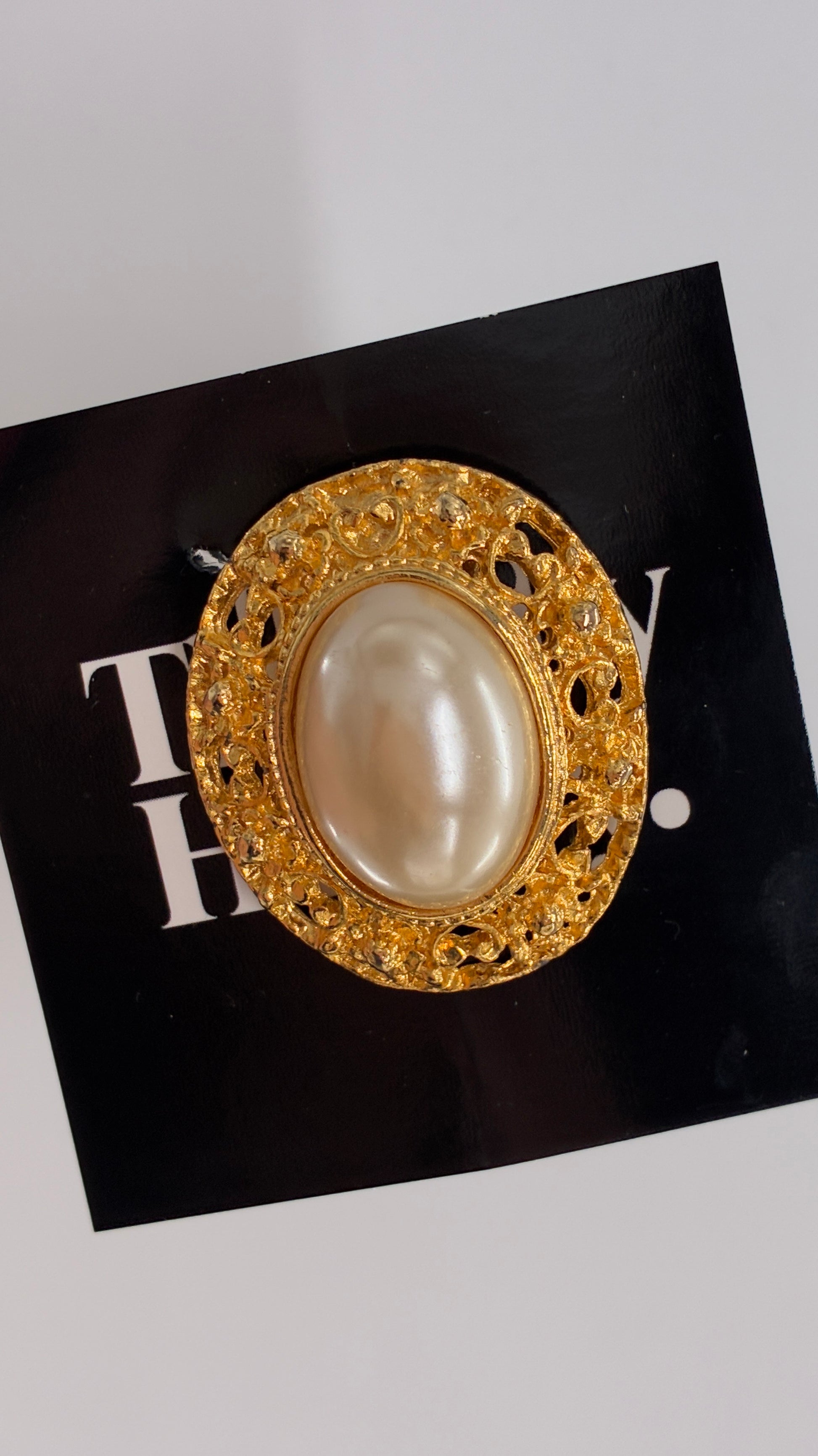 Vintage Ornate Gold Border, Pearl Scarf Ring