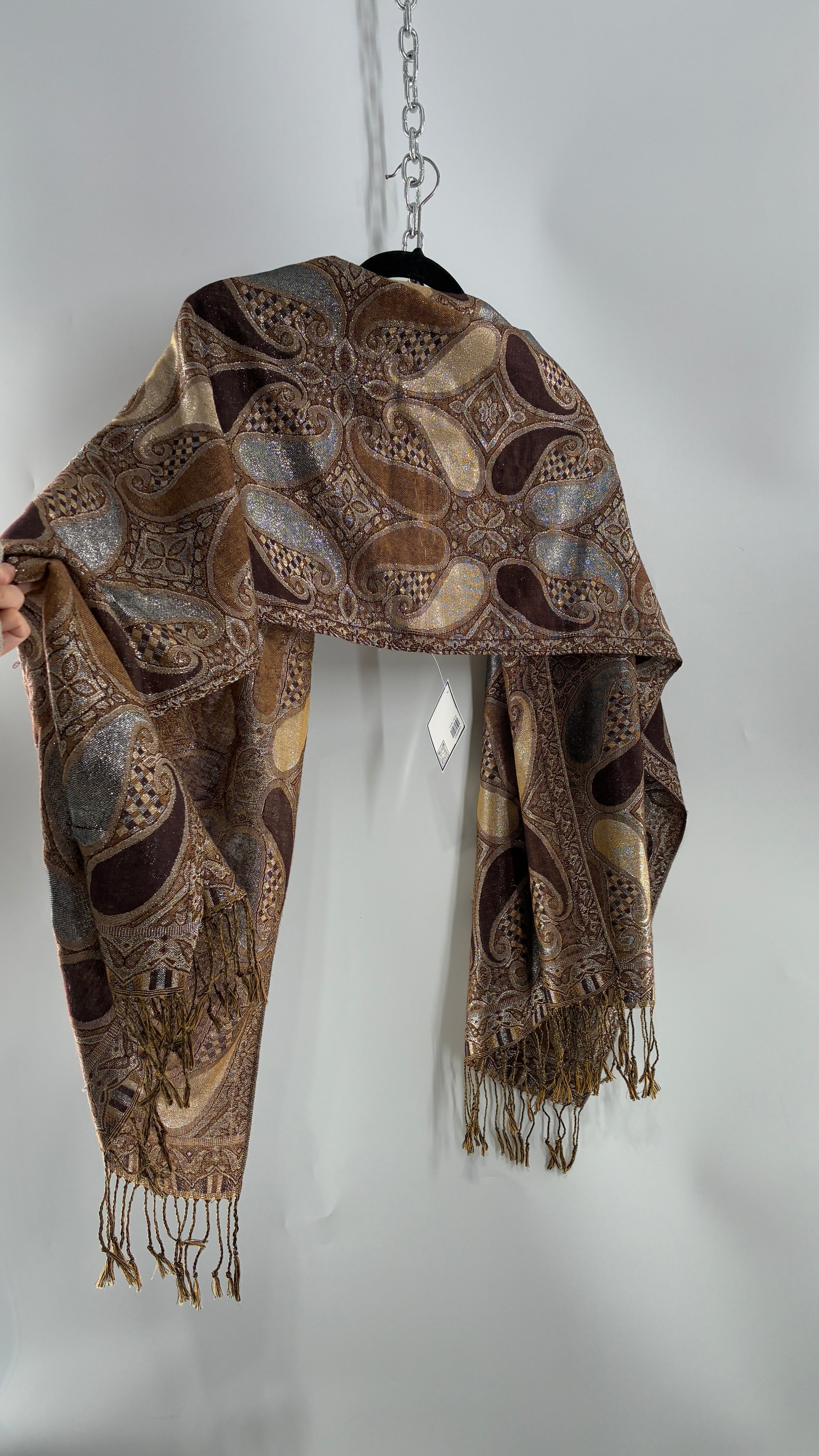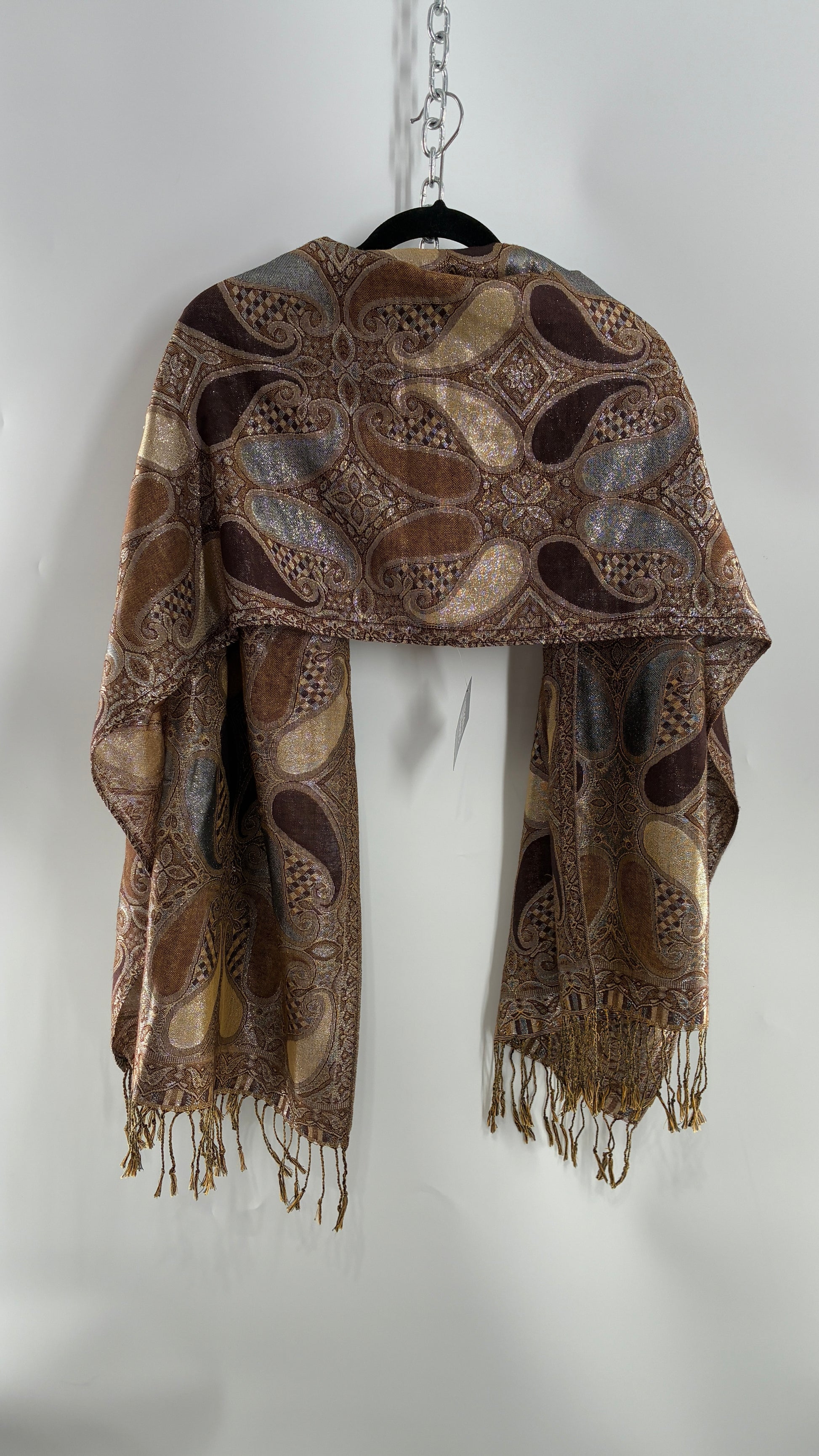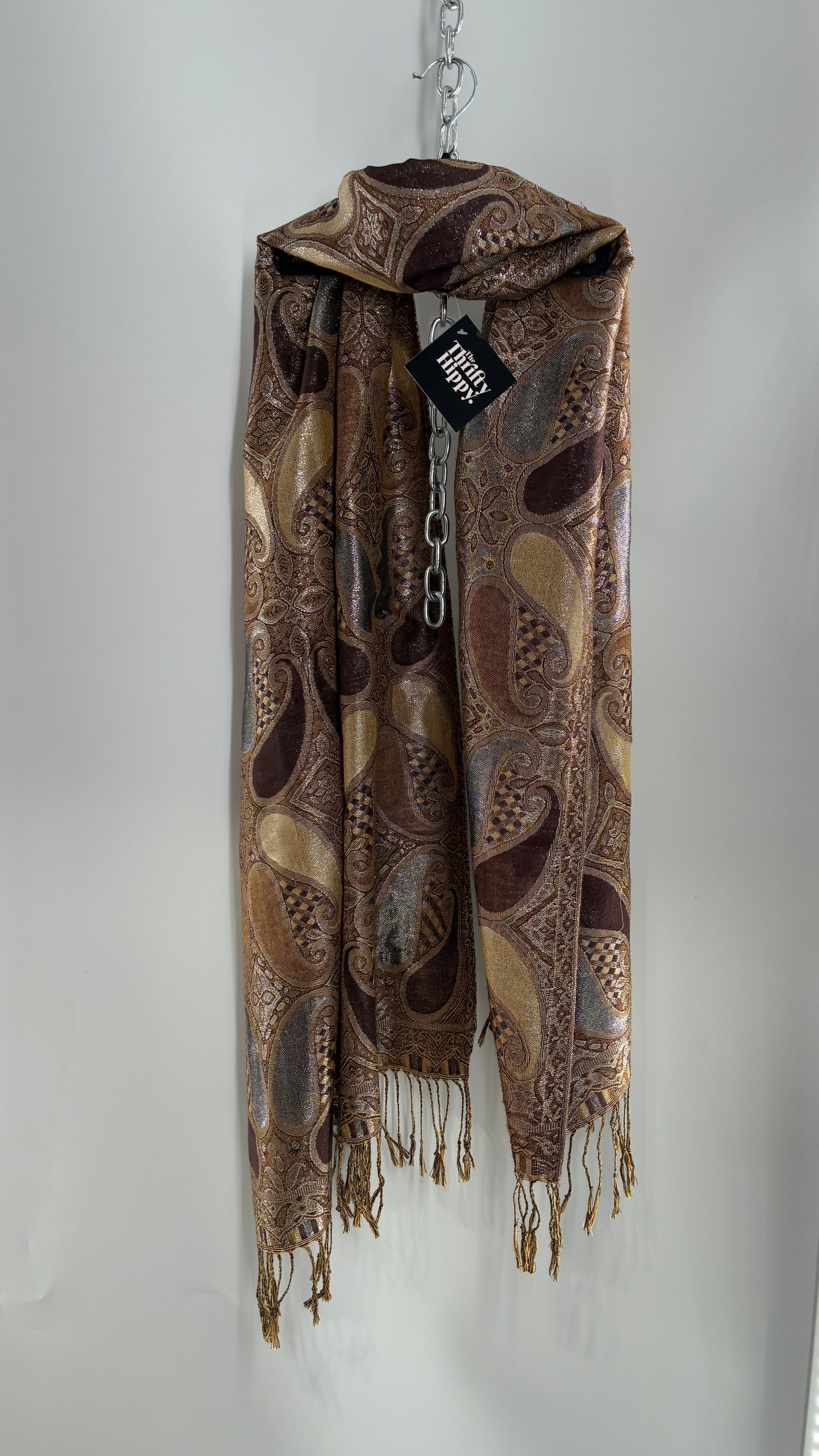 Vintage Paisley Metallic Knit Bronze and Silver Scarf