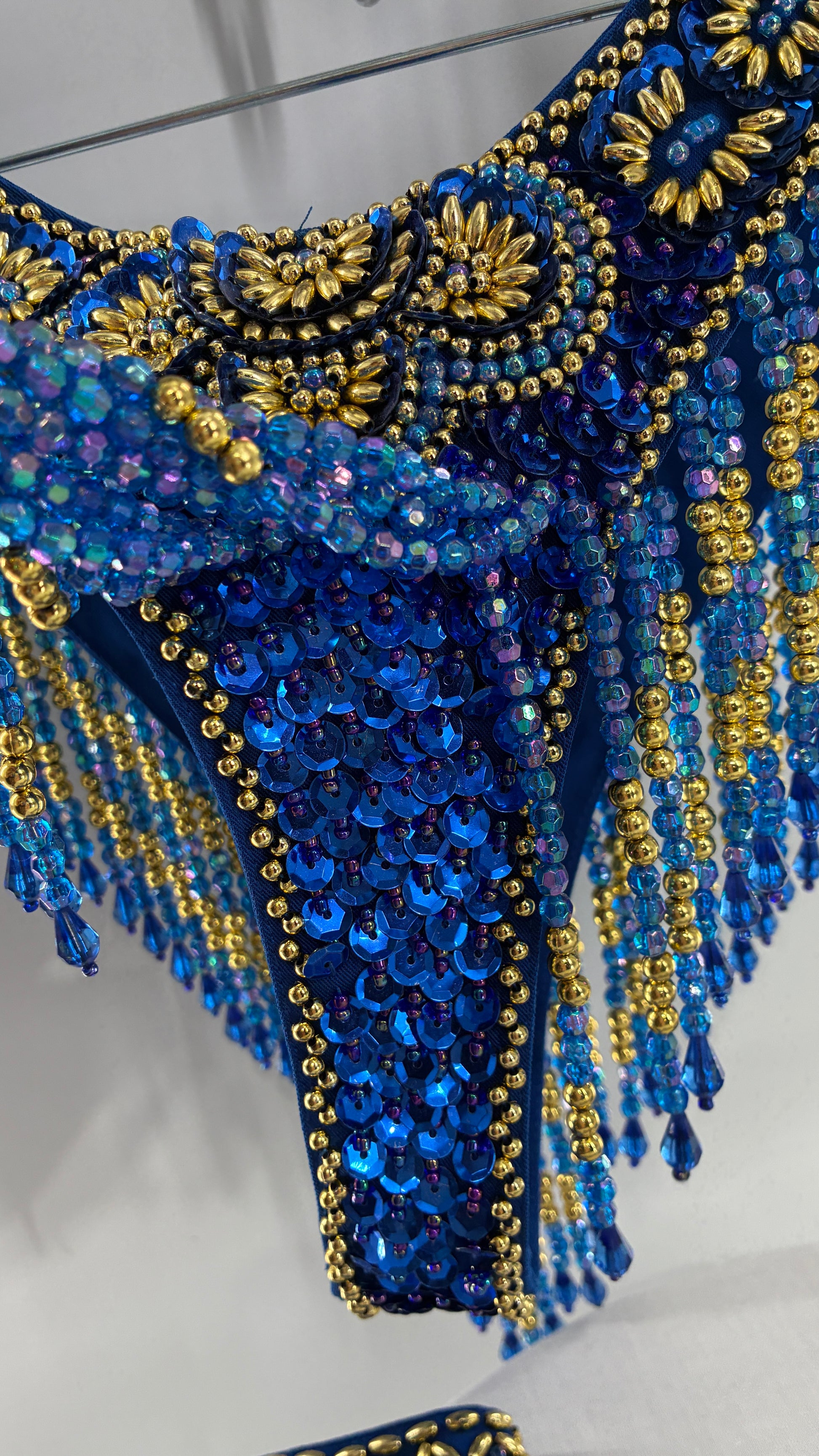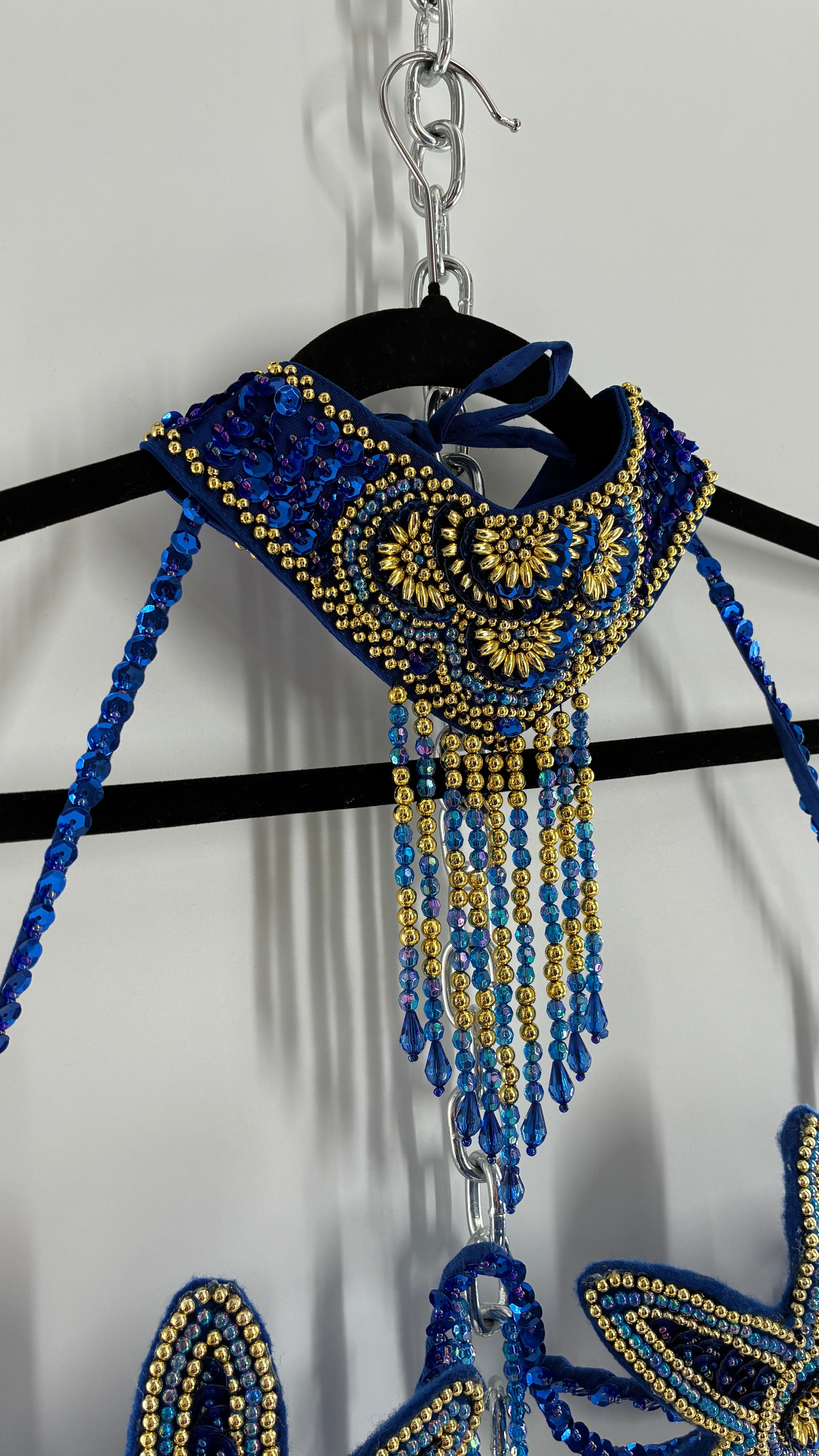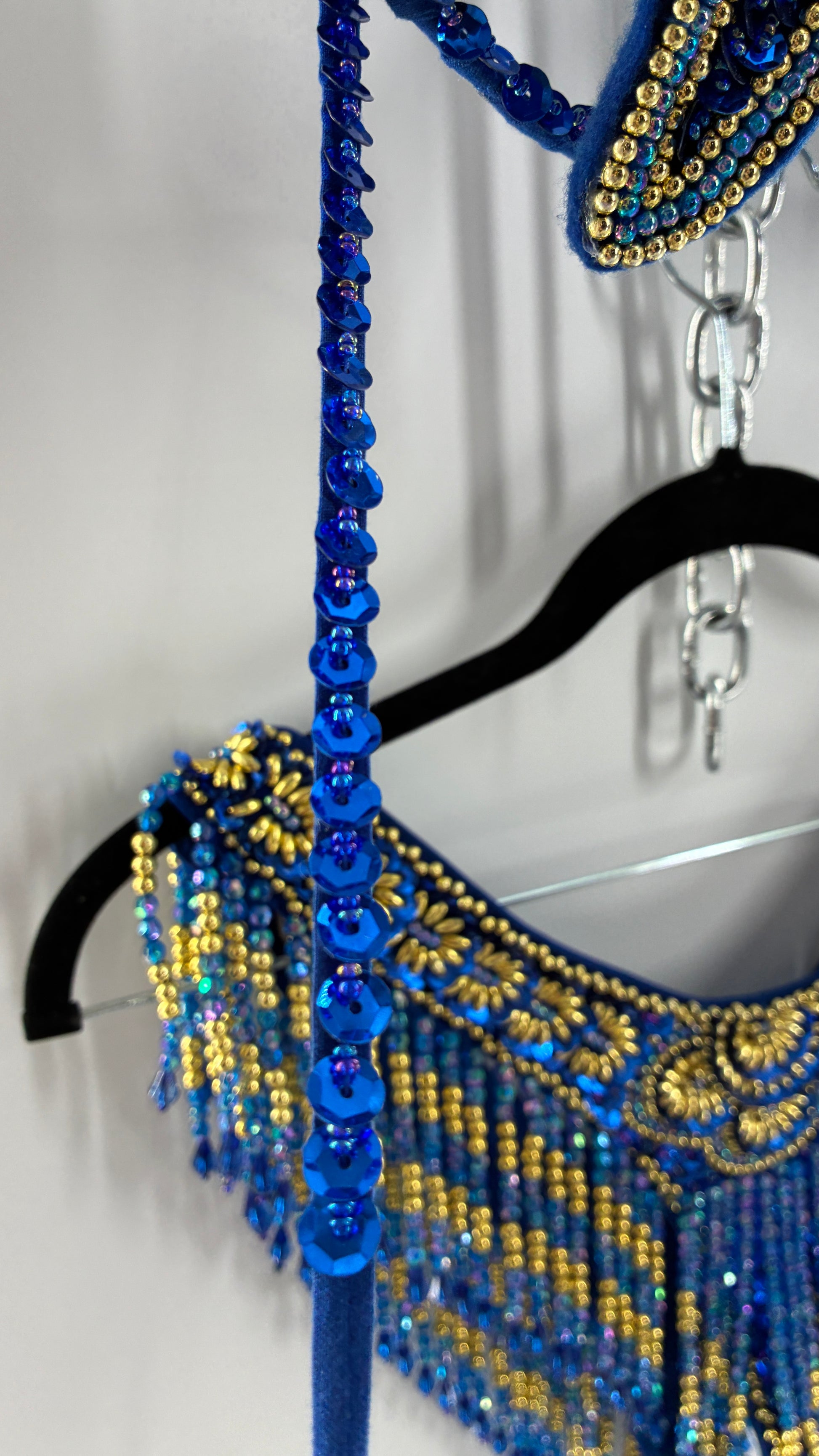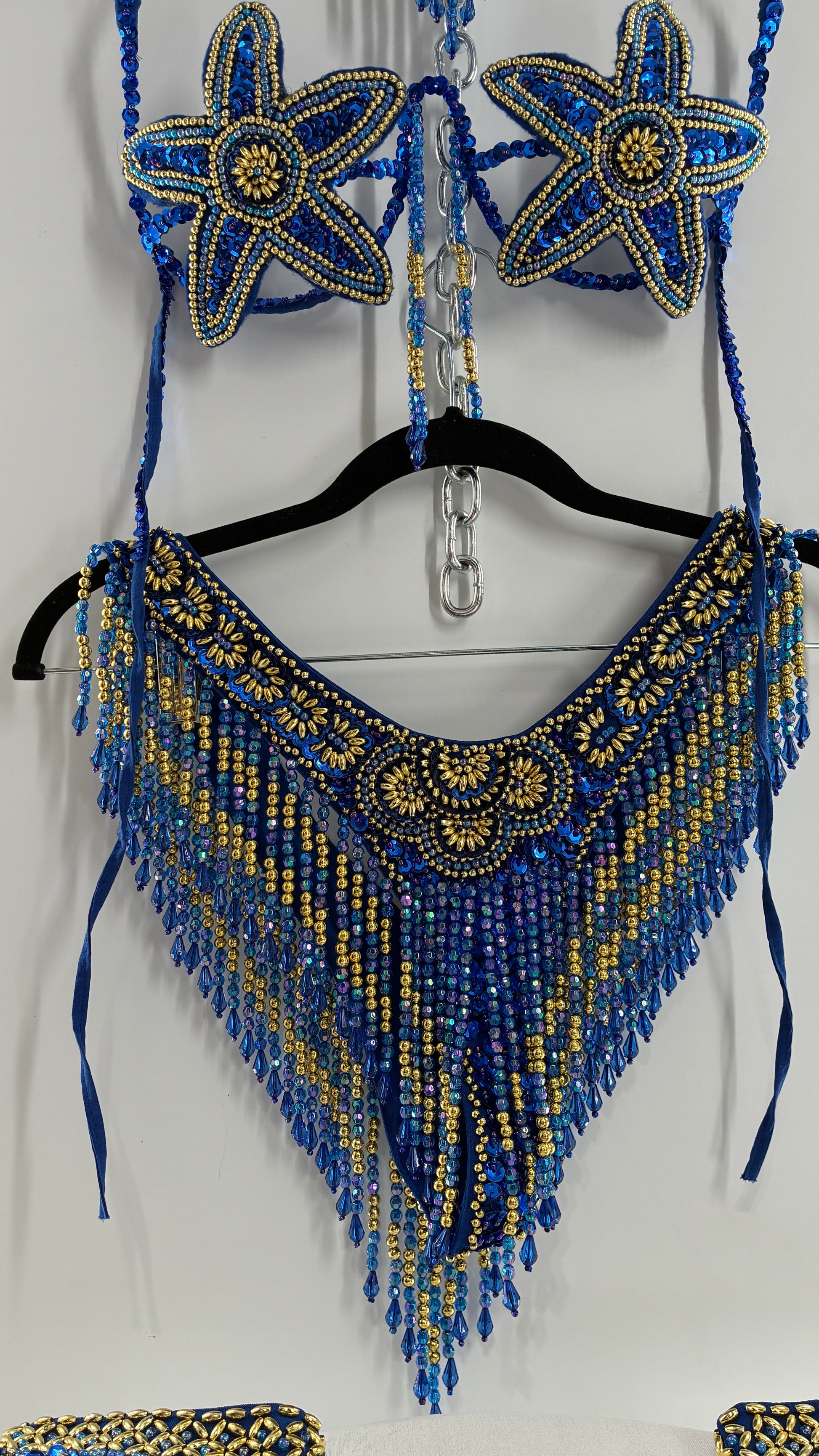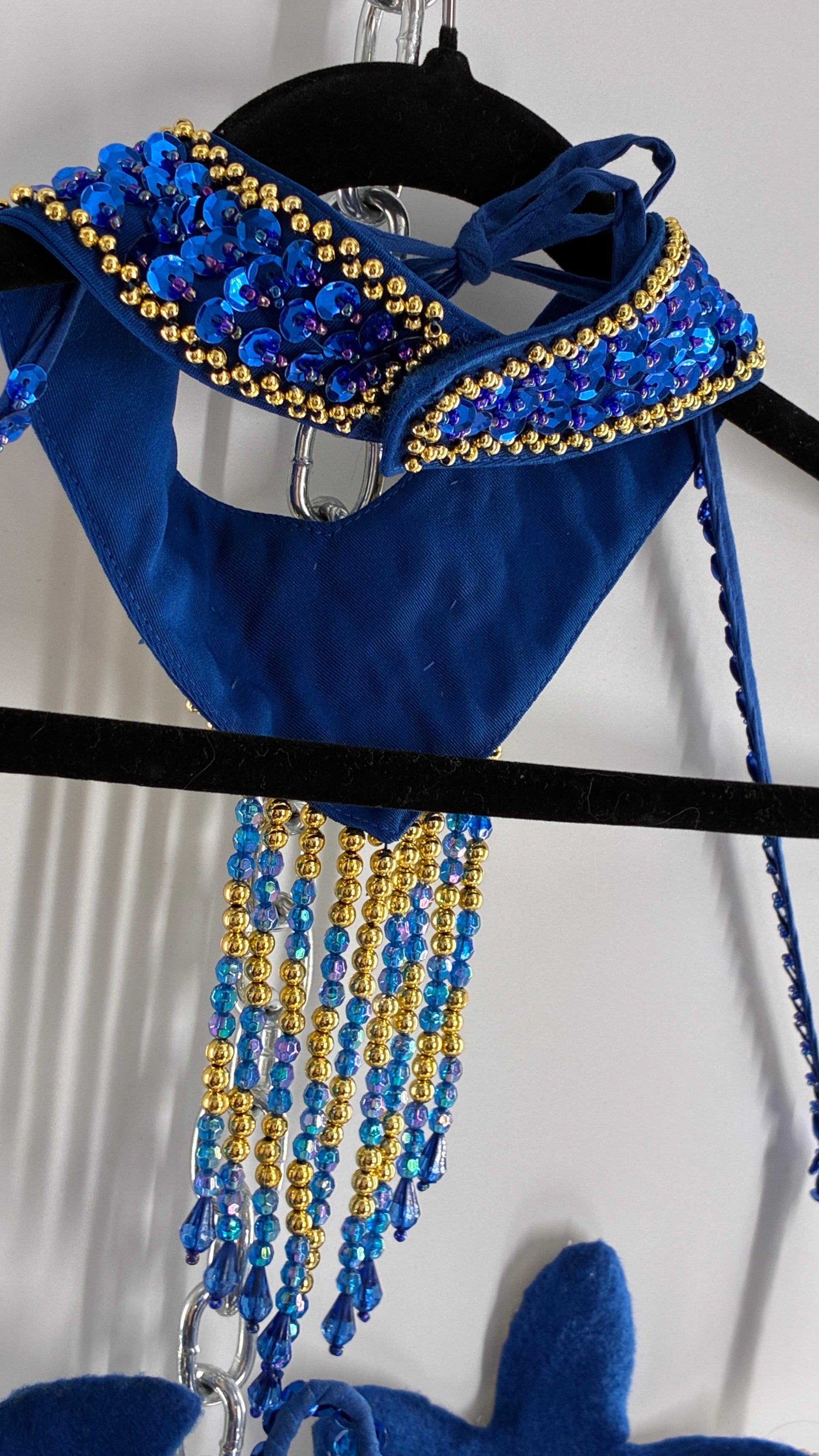 Vintage Royal Blue and Gold Beaded Belly Dancing Set