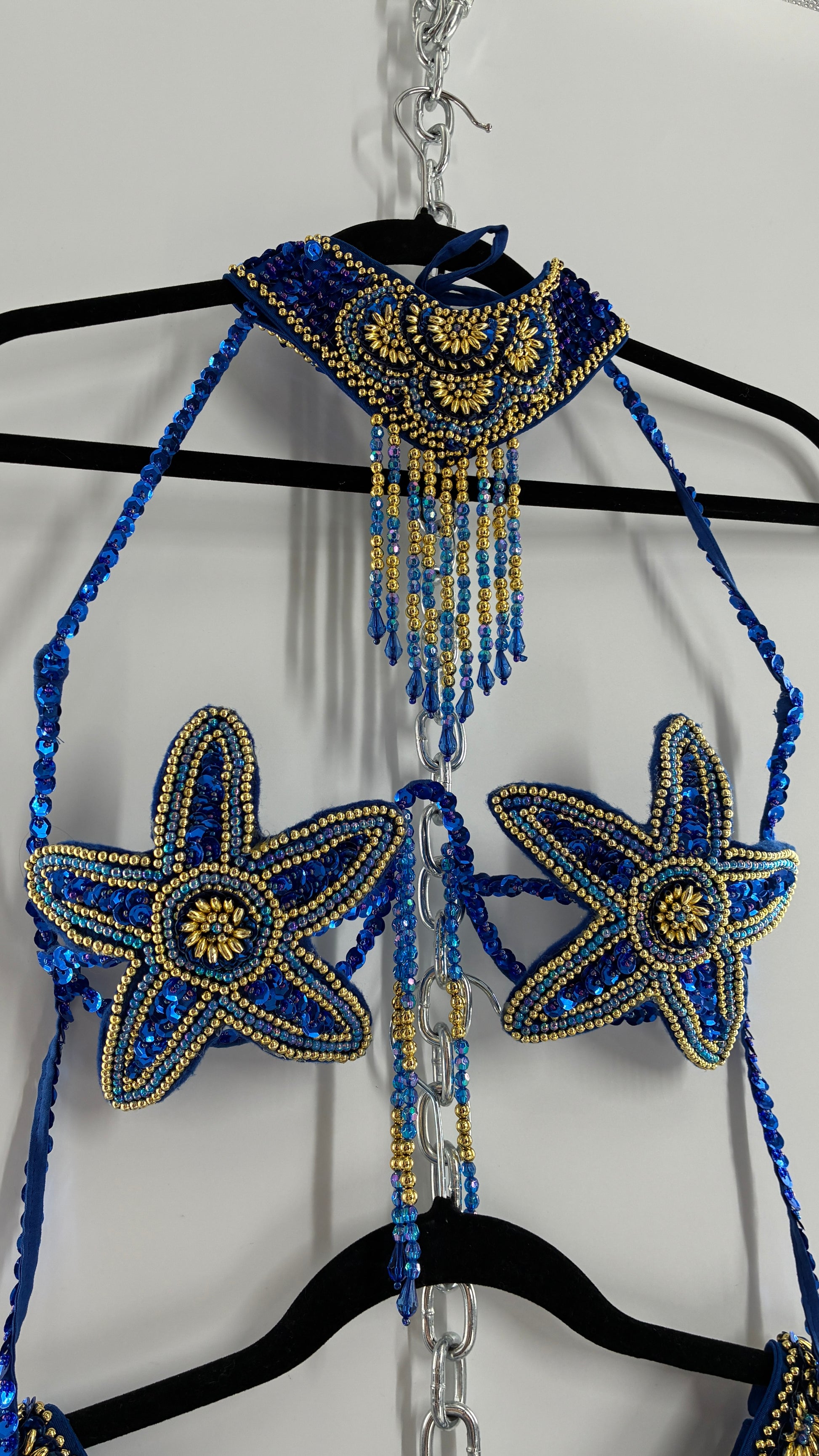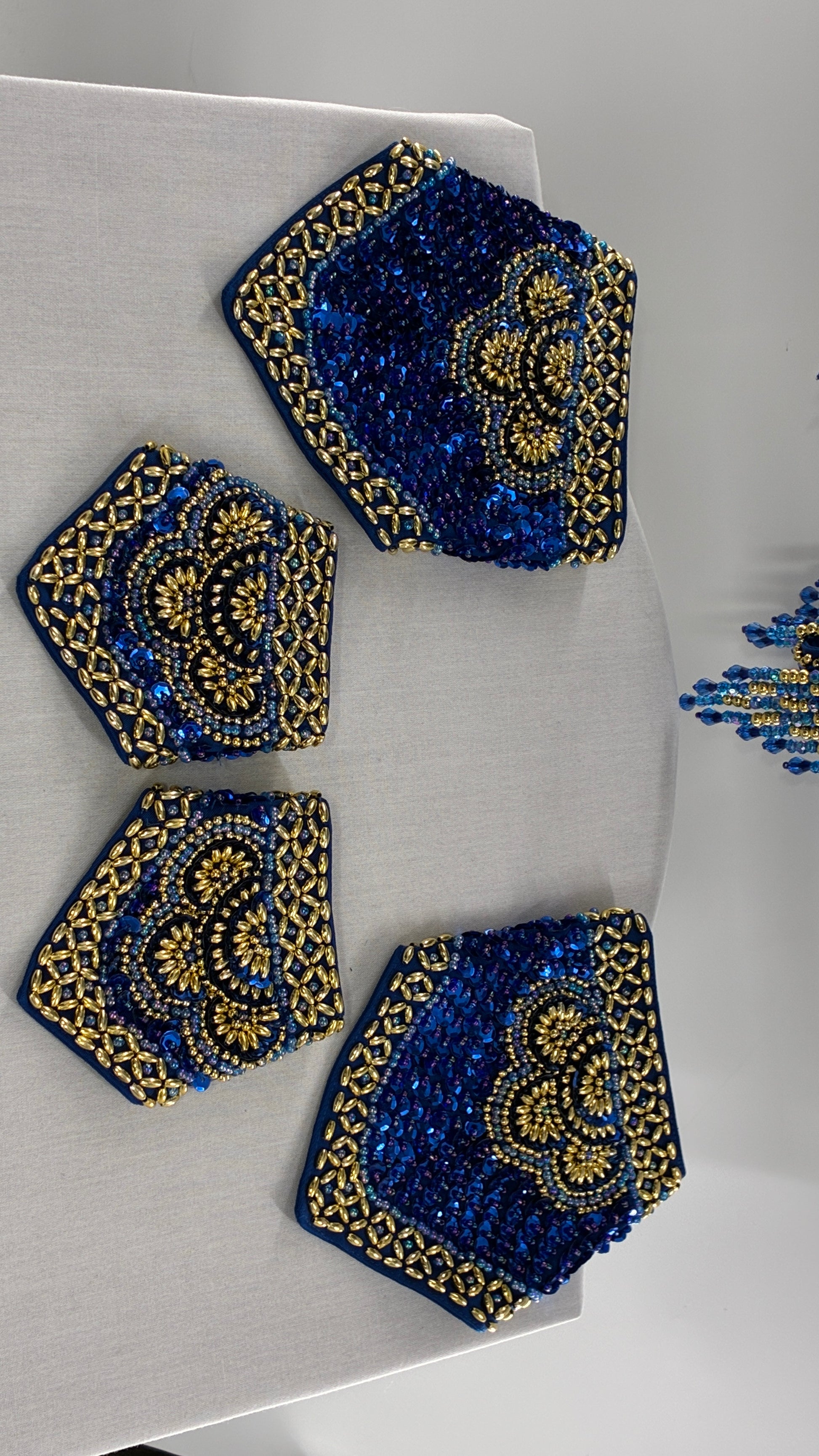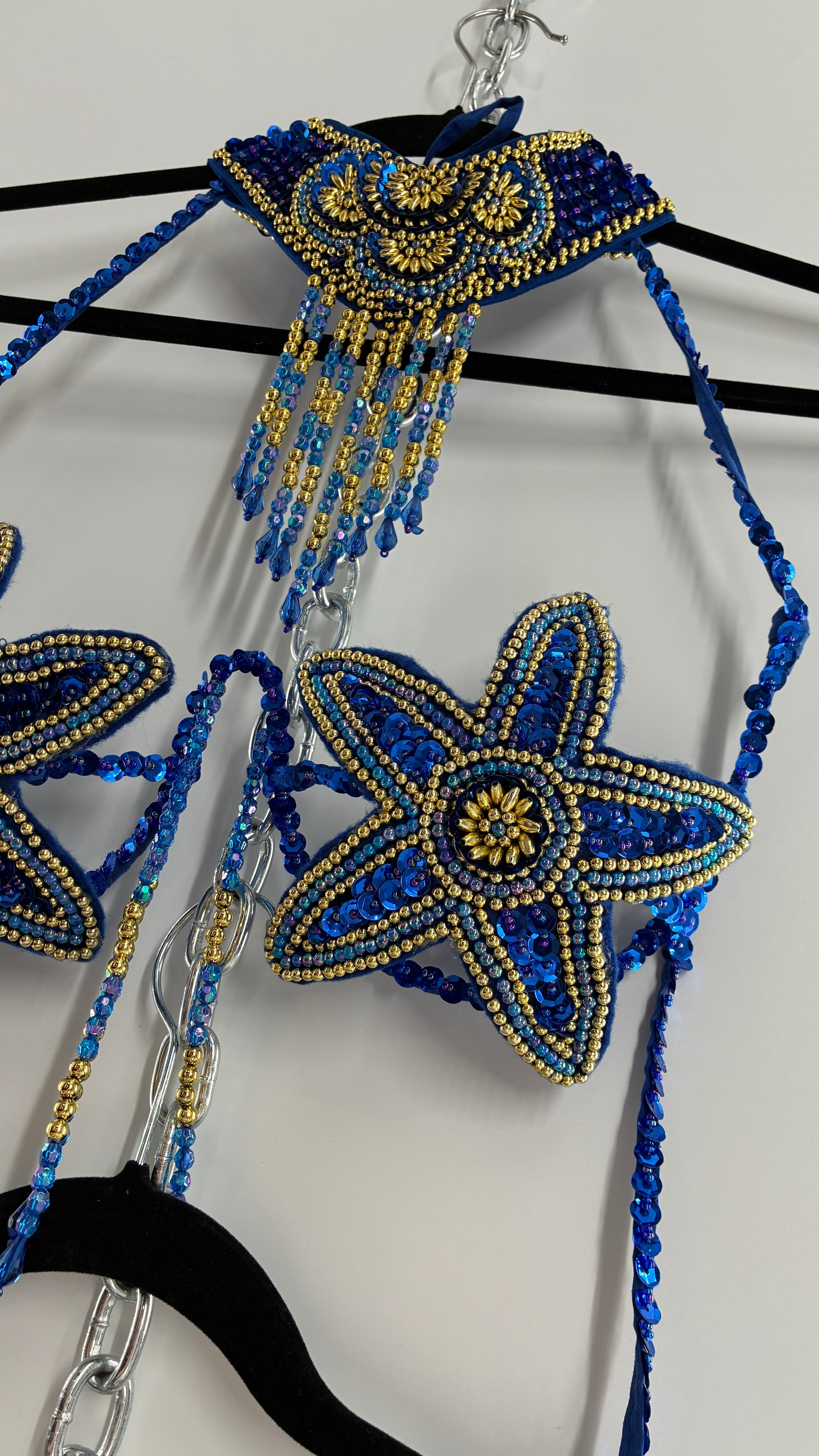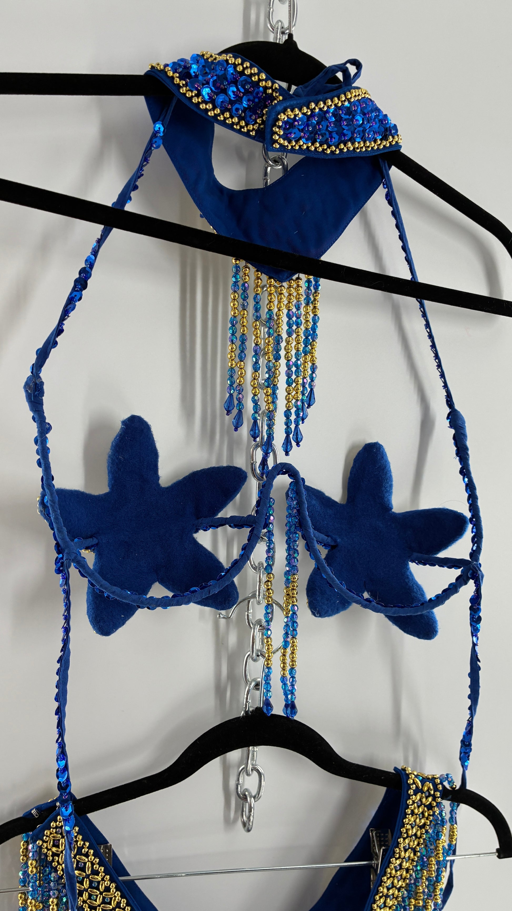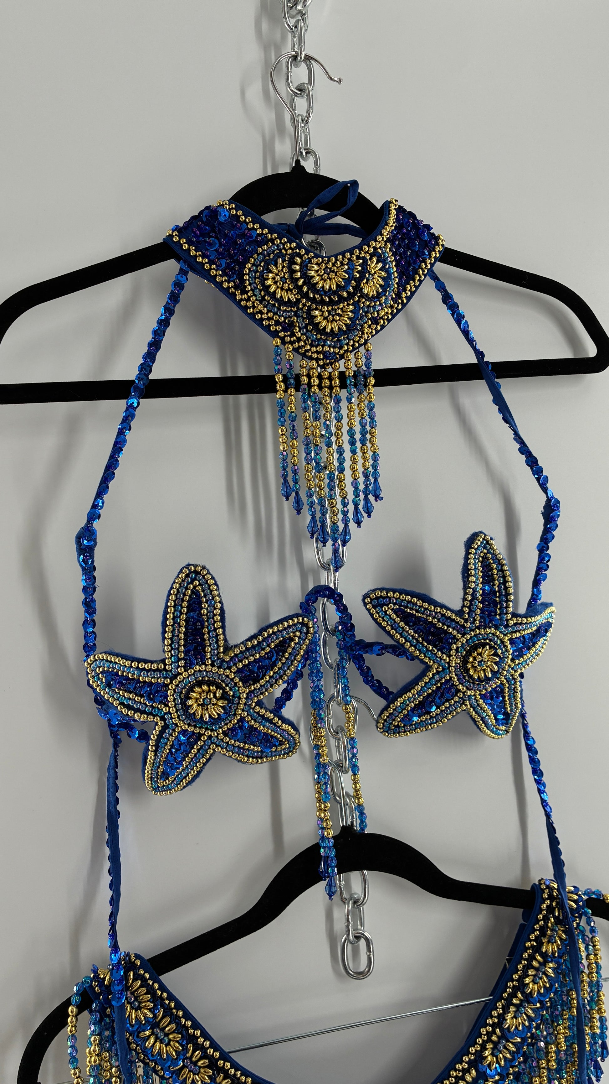 Vintage Royal Blue and Gold Beaded Belly Dancing Set