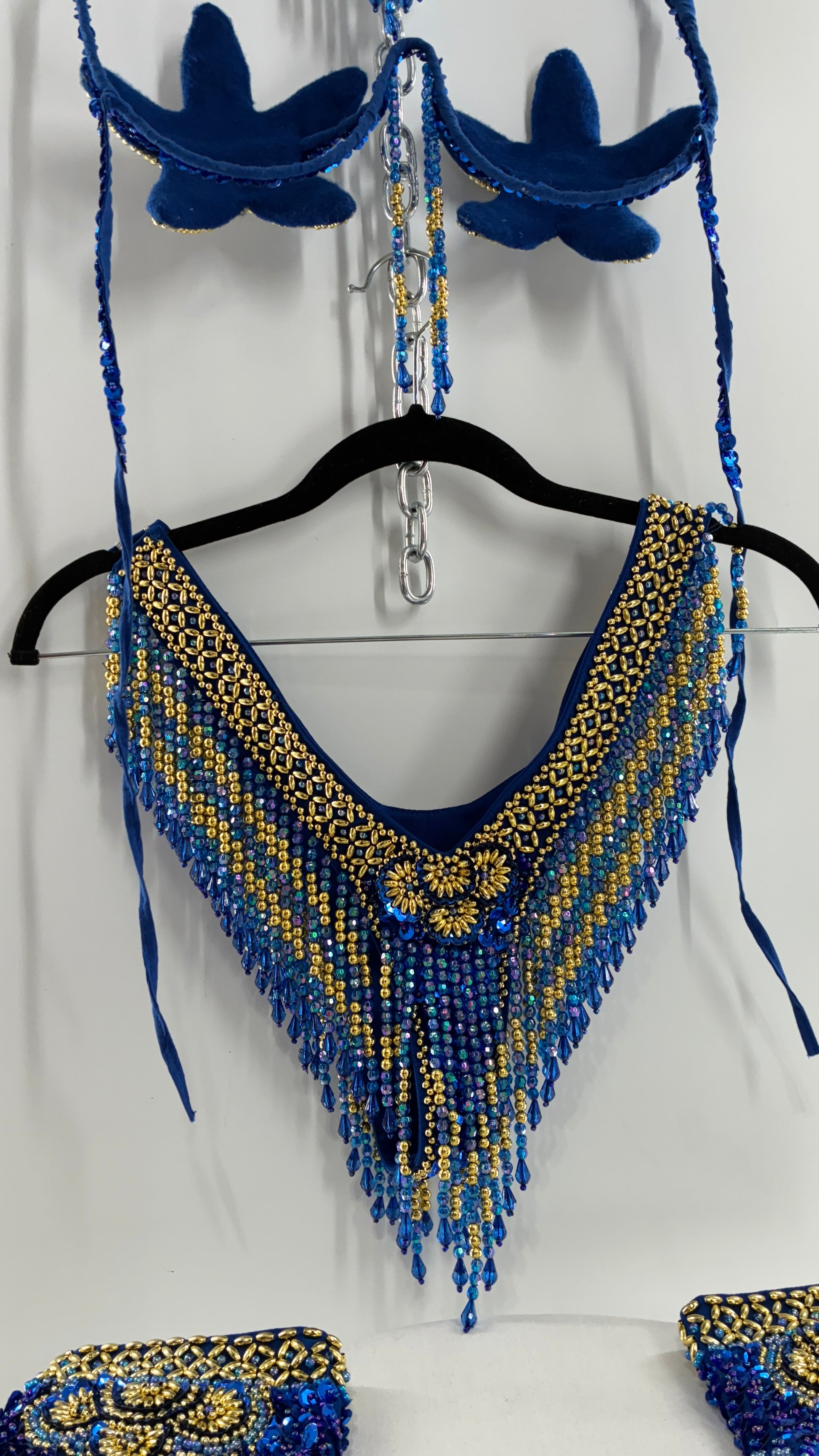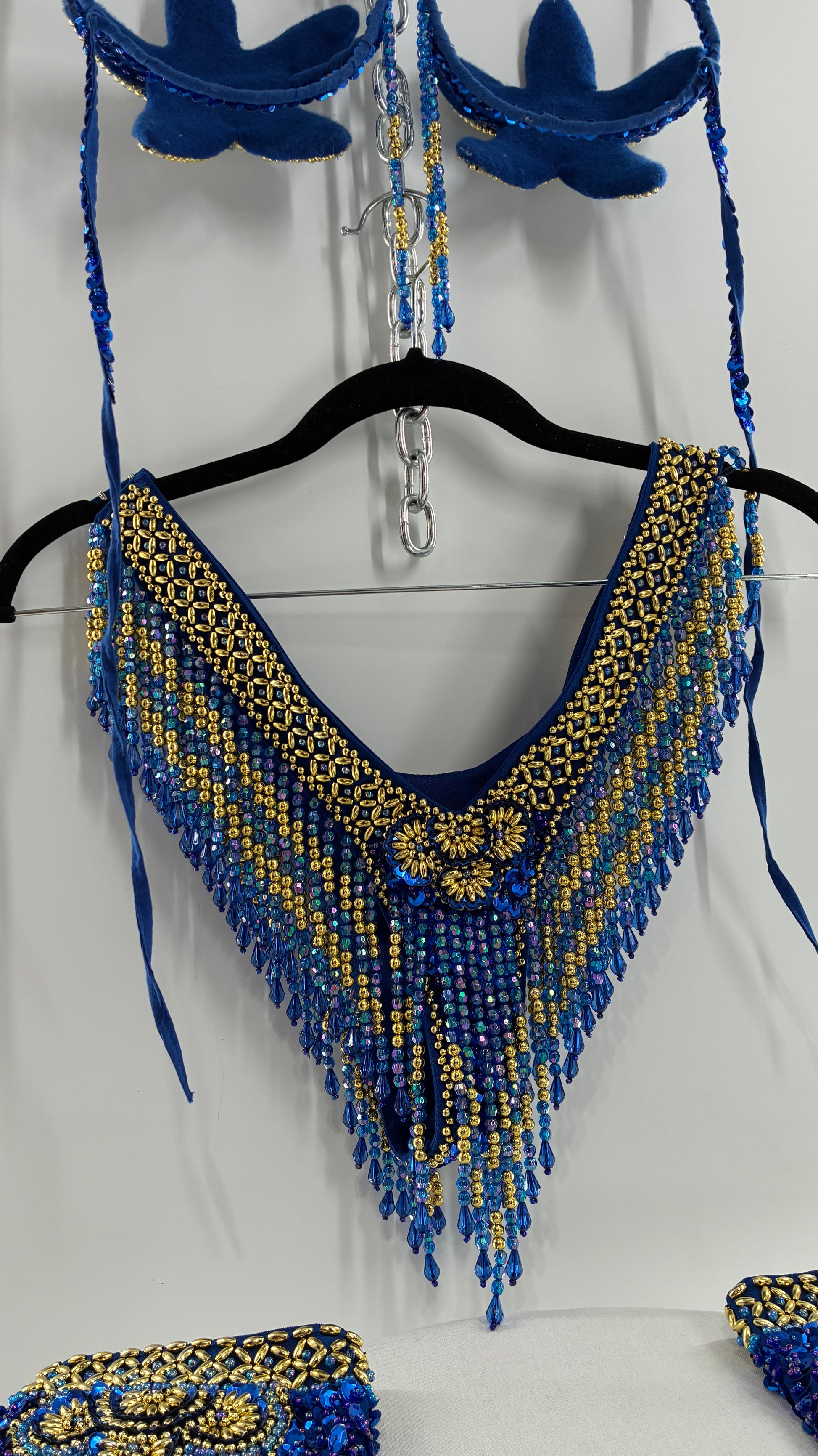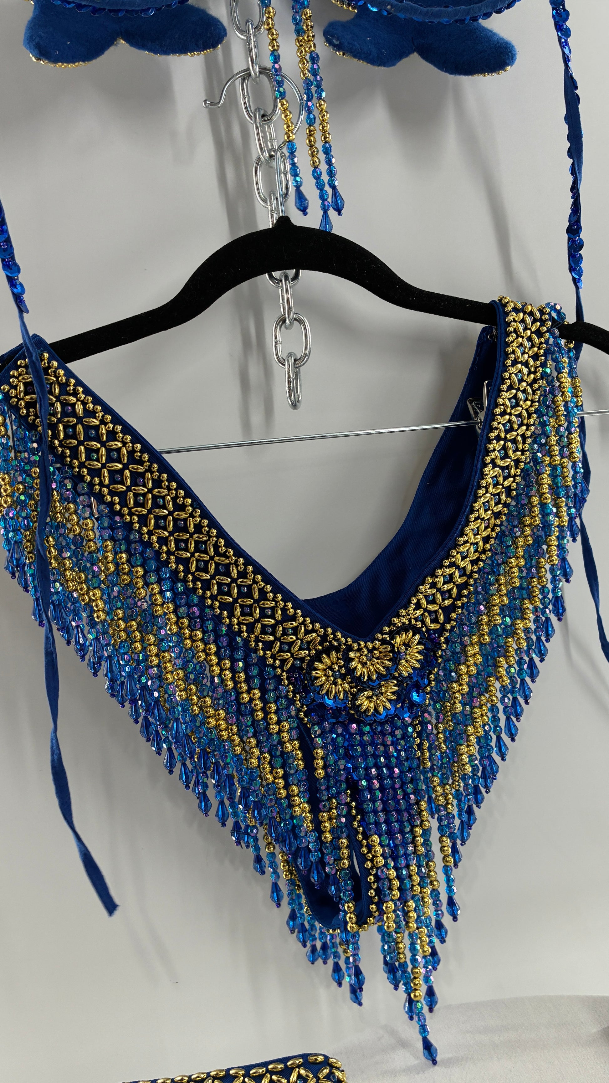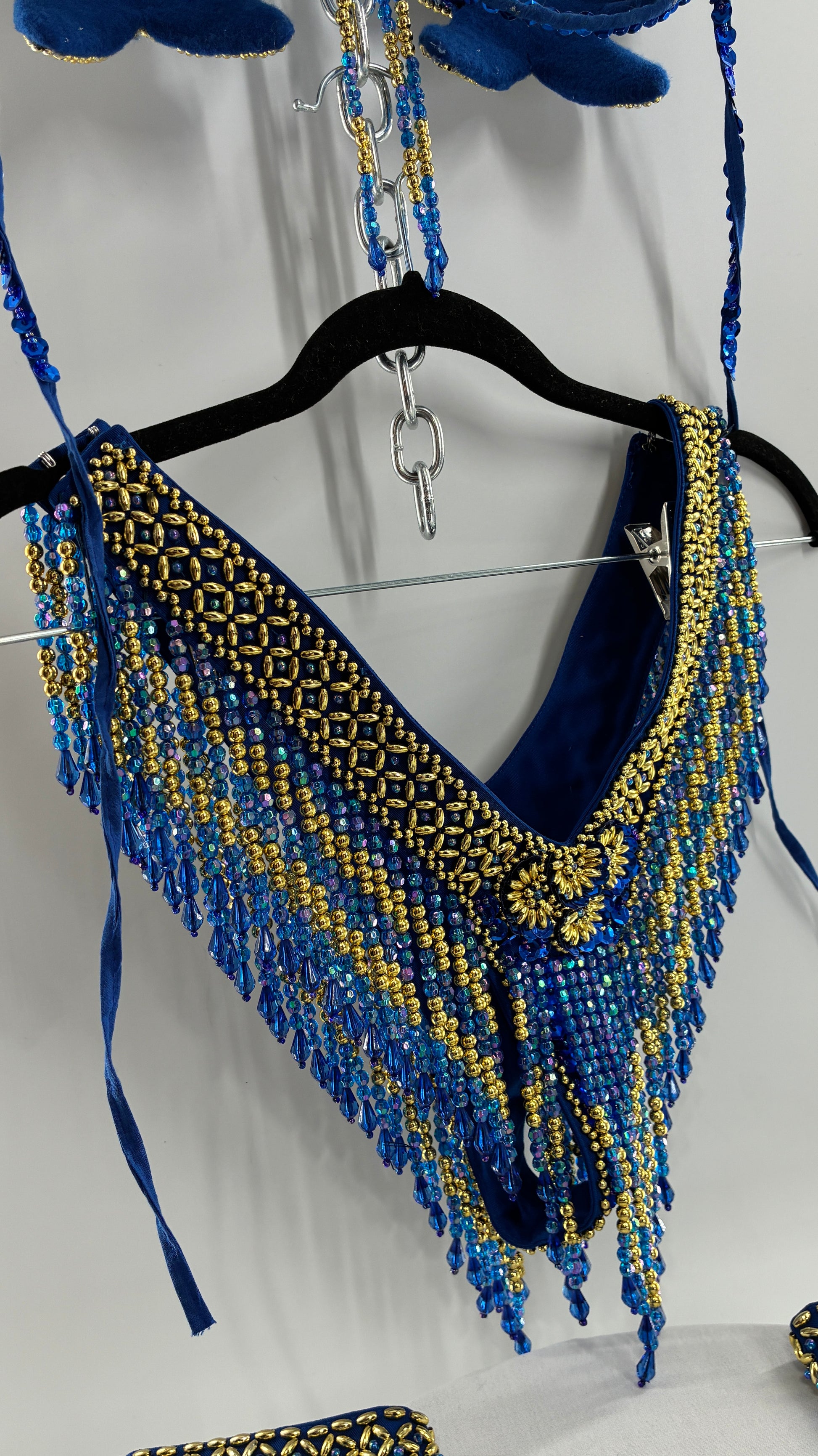 Vintage Royal Blue and Gold Beaded Belly Dancing Five Piece Set