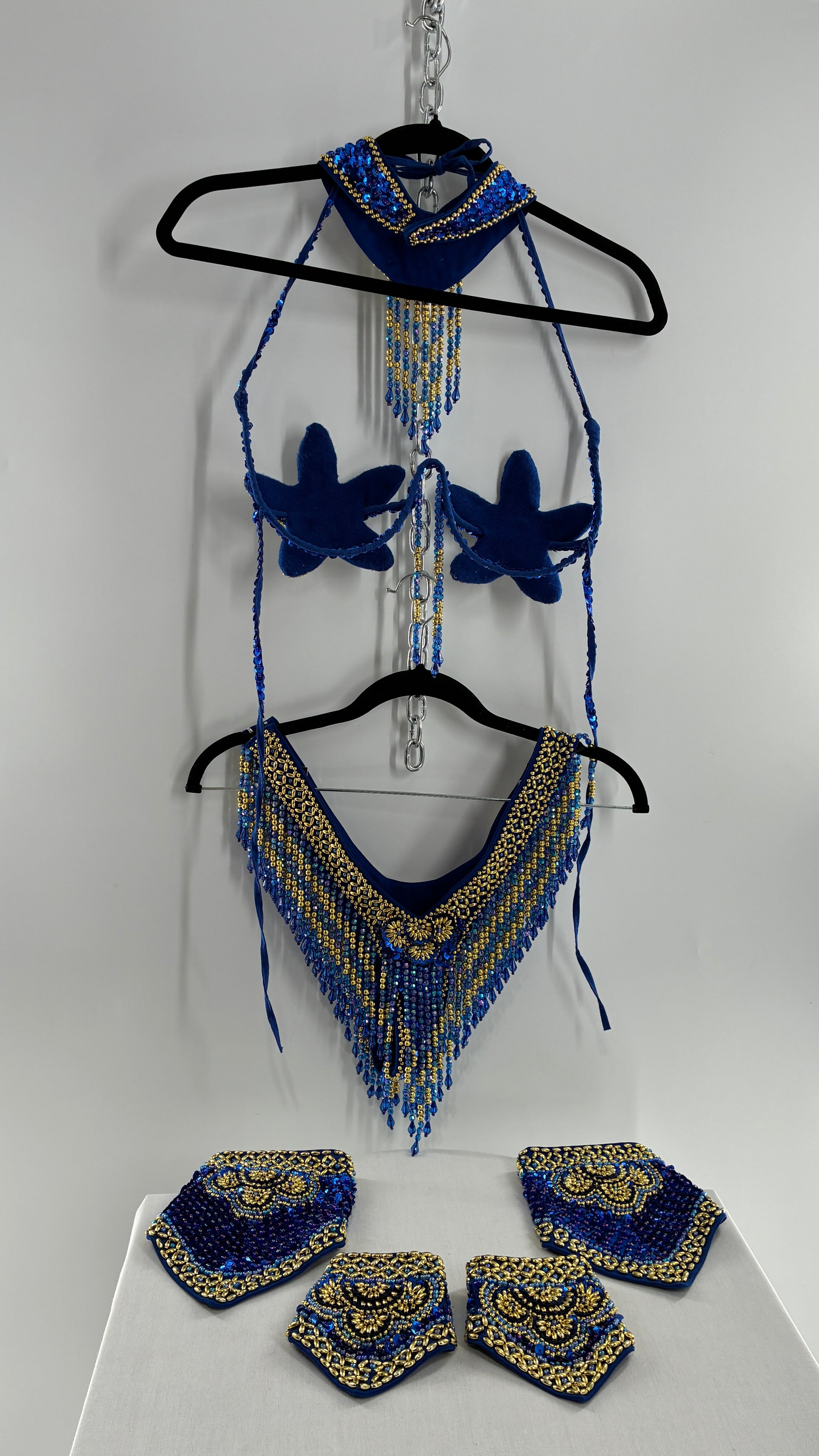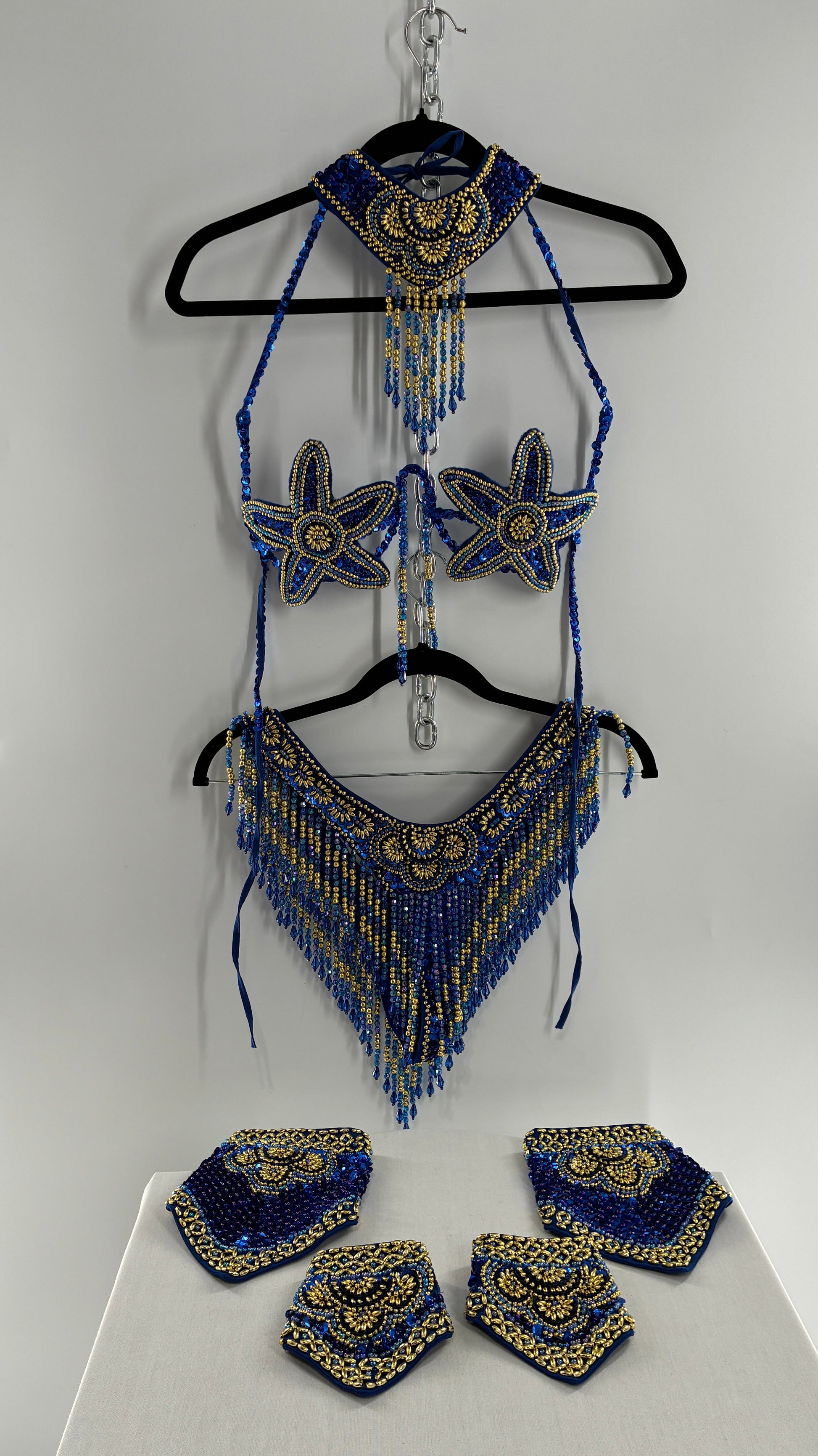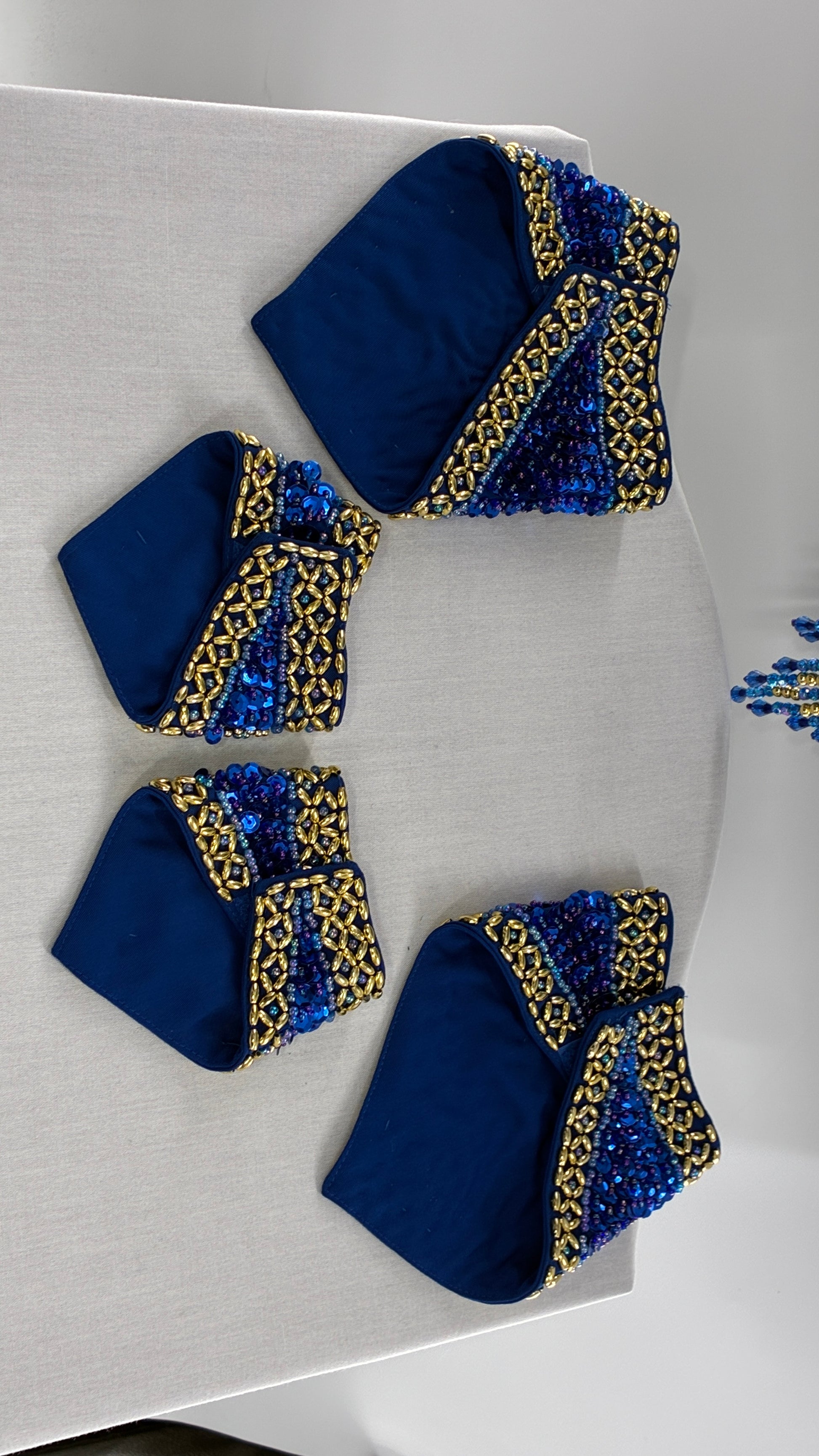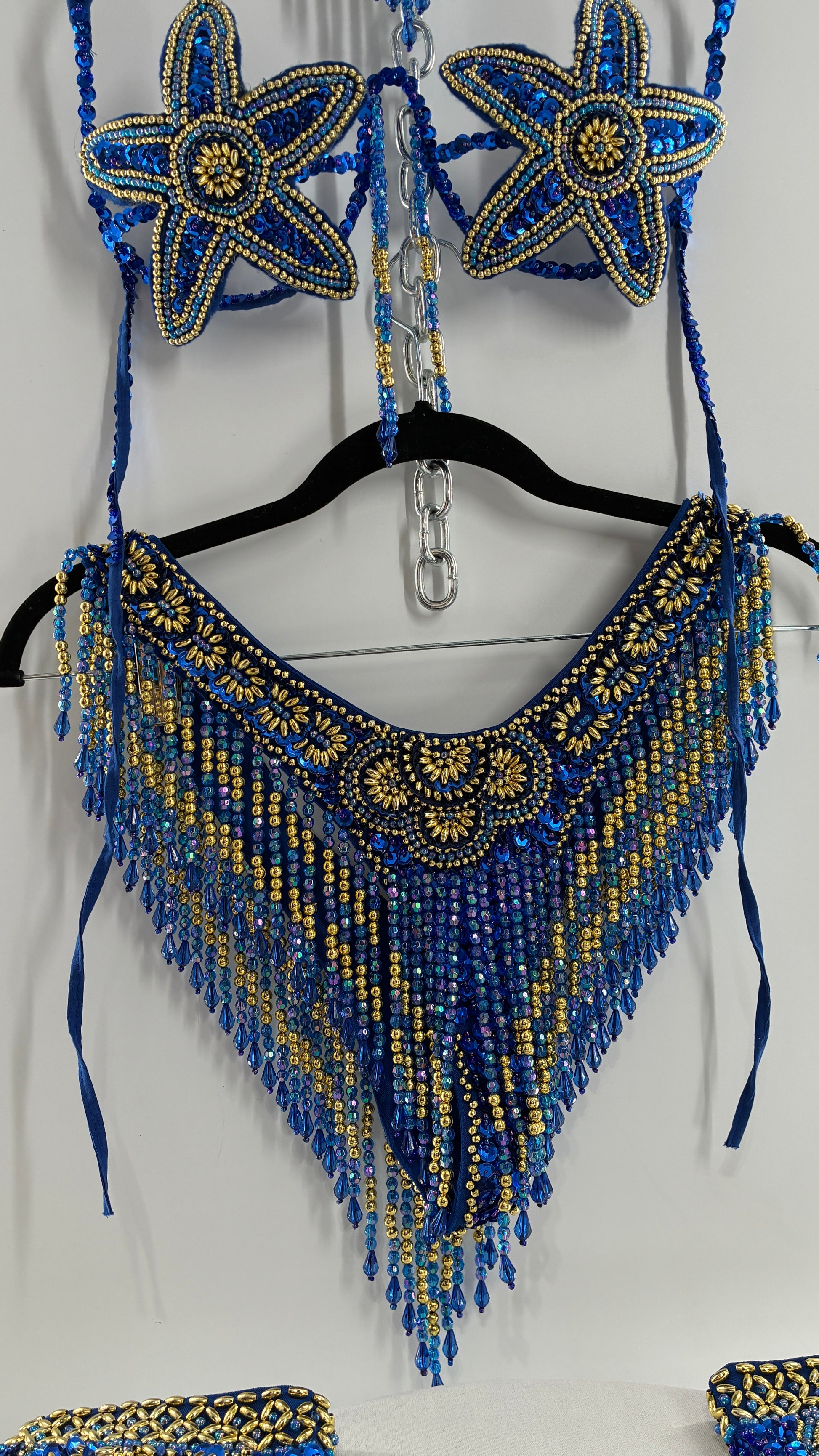 Vintage Royal Blue and Gold Beaded Belly Dancing Five Piece Set