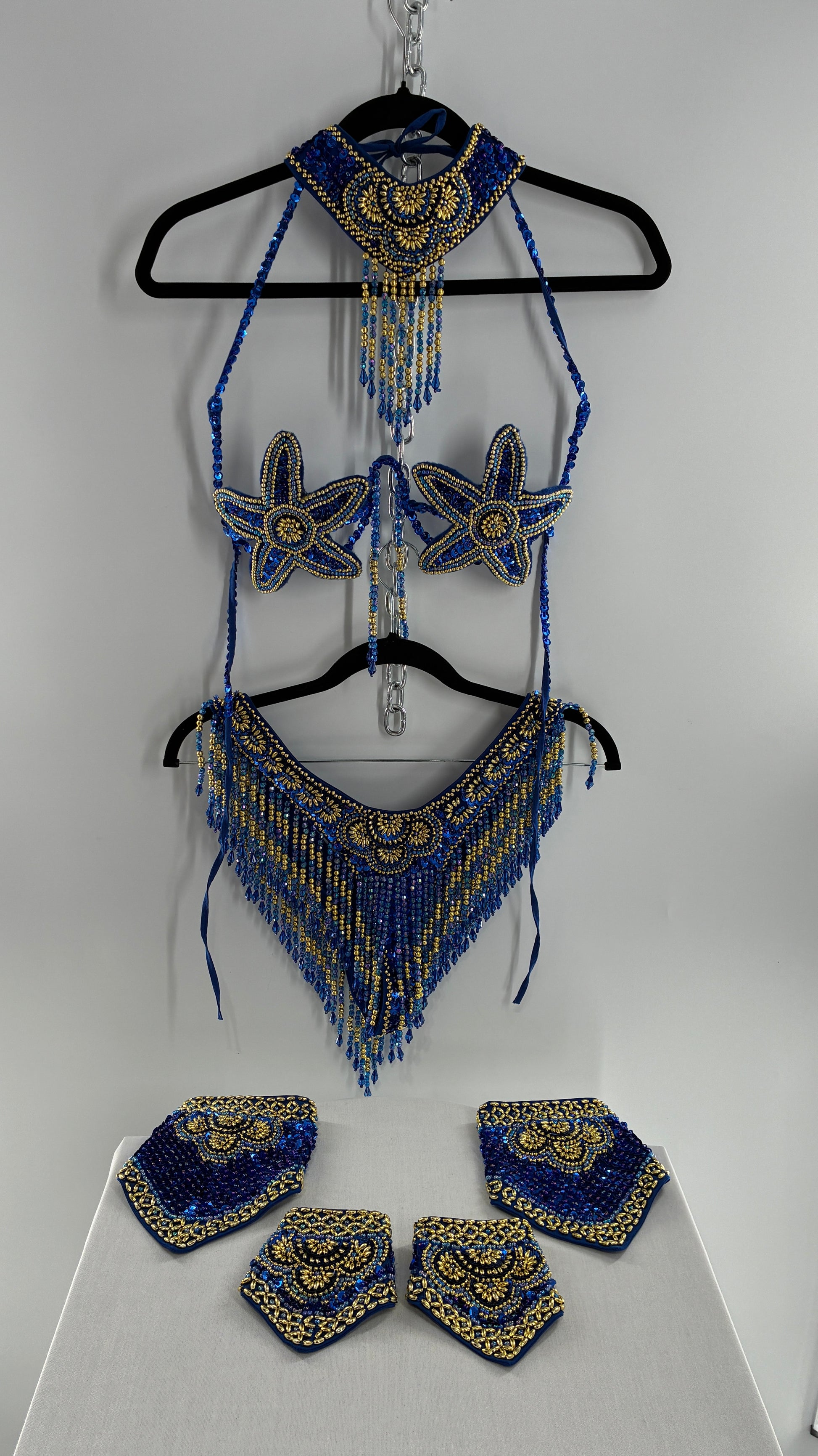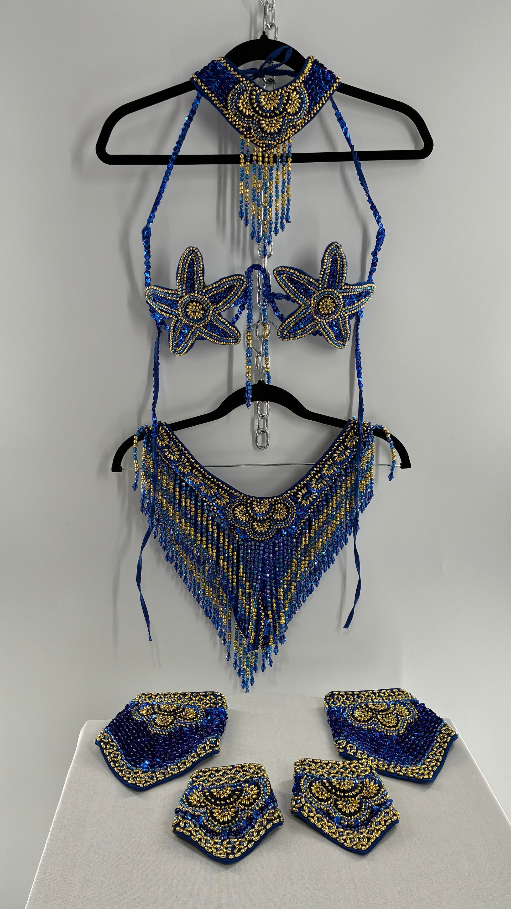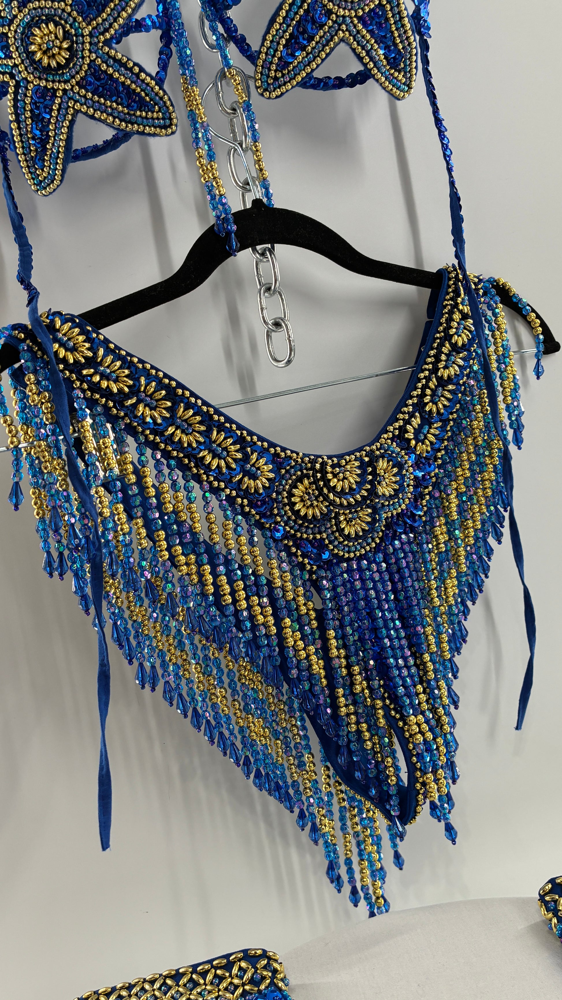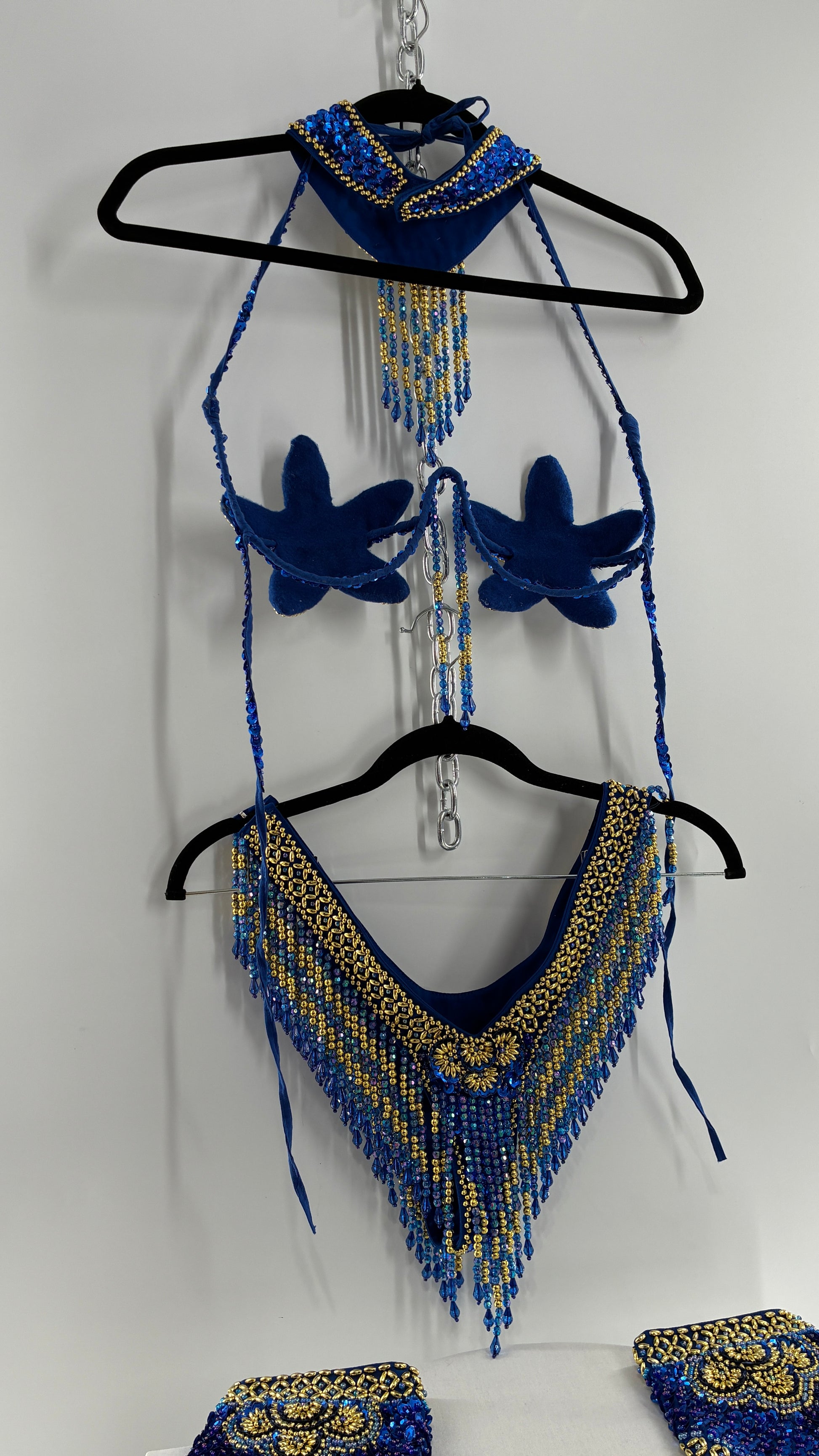 Vintage Royal Blue and Gold Beaded Belly Dancing Five Piece Set
