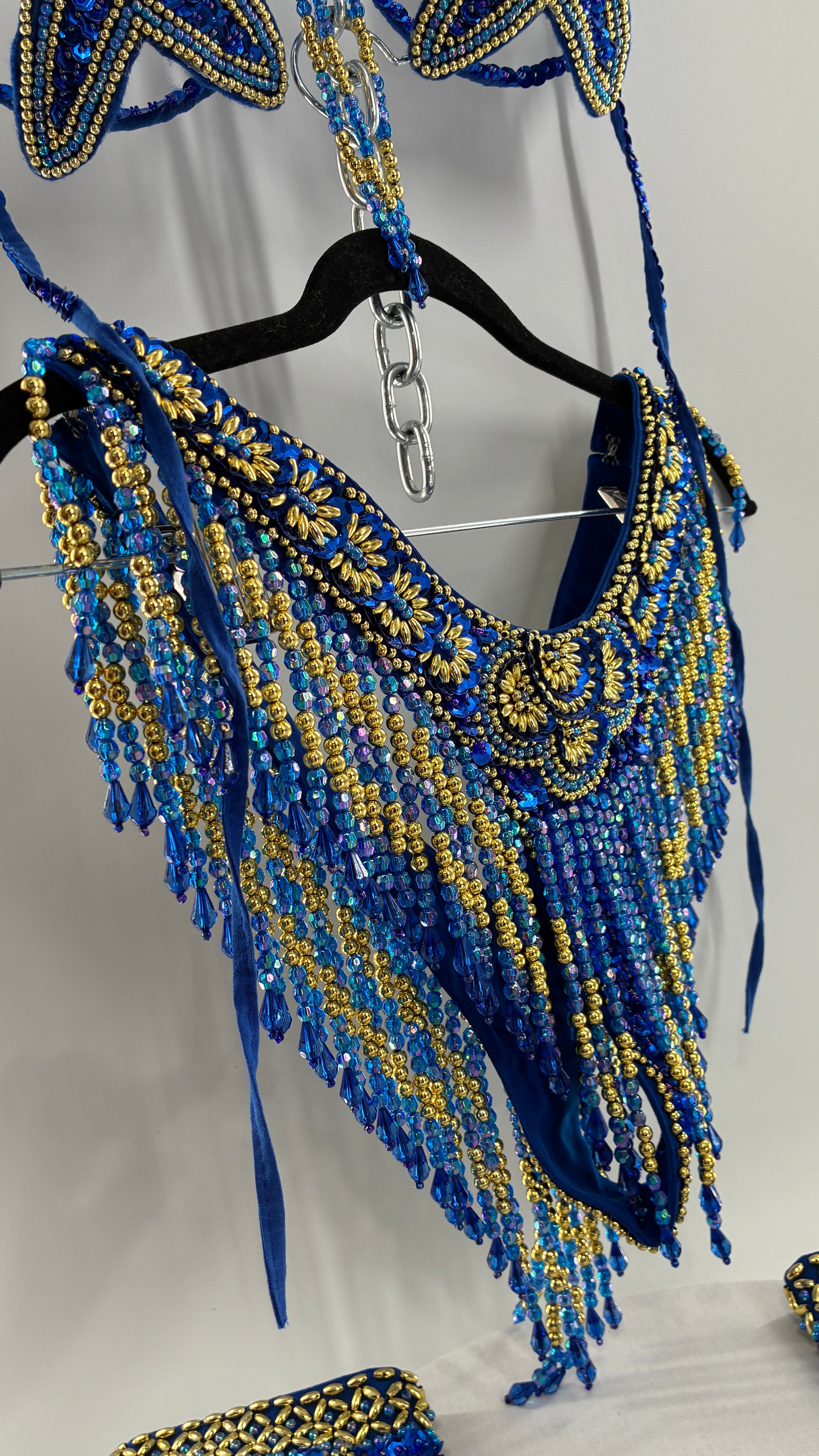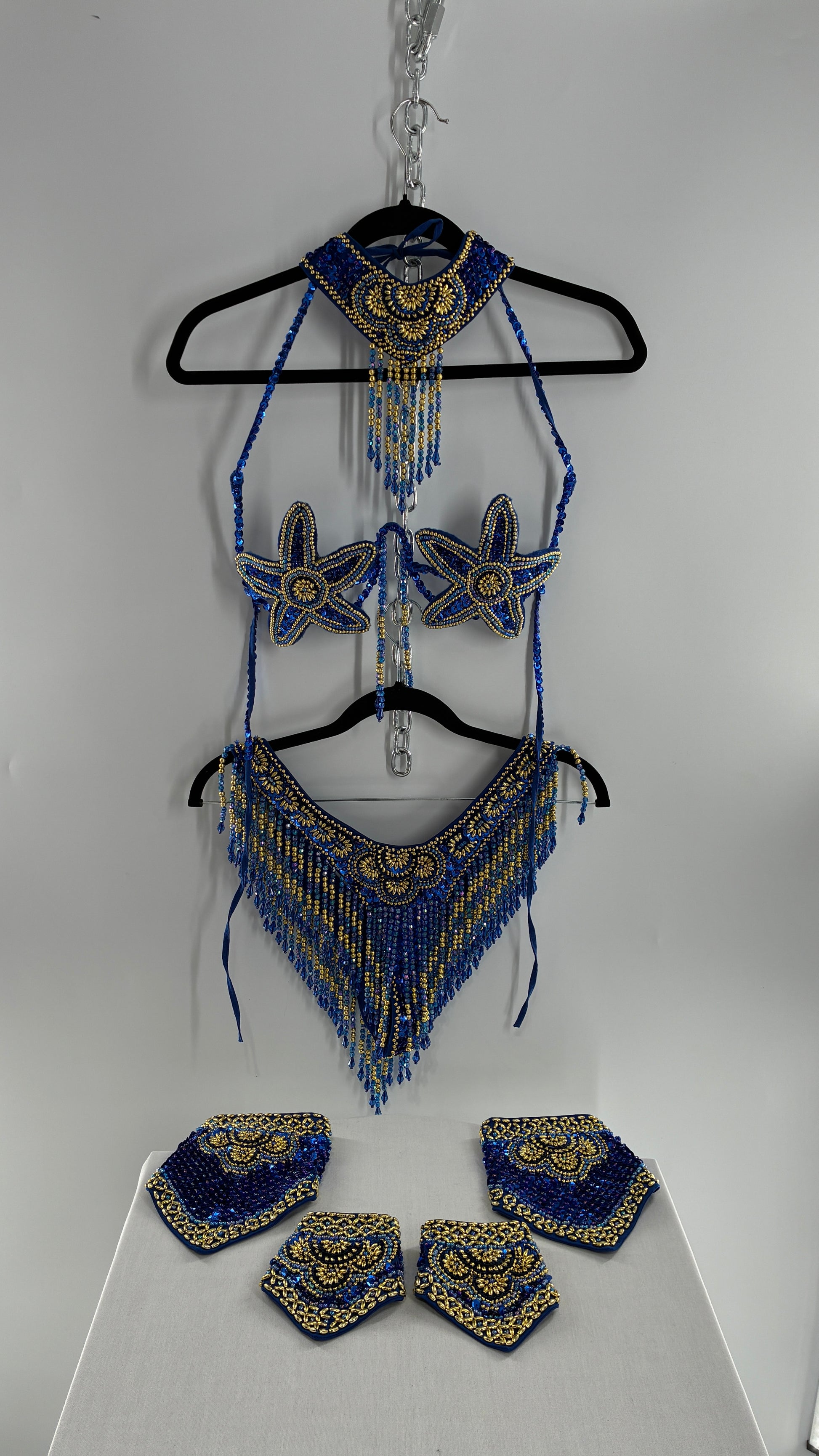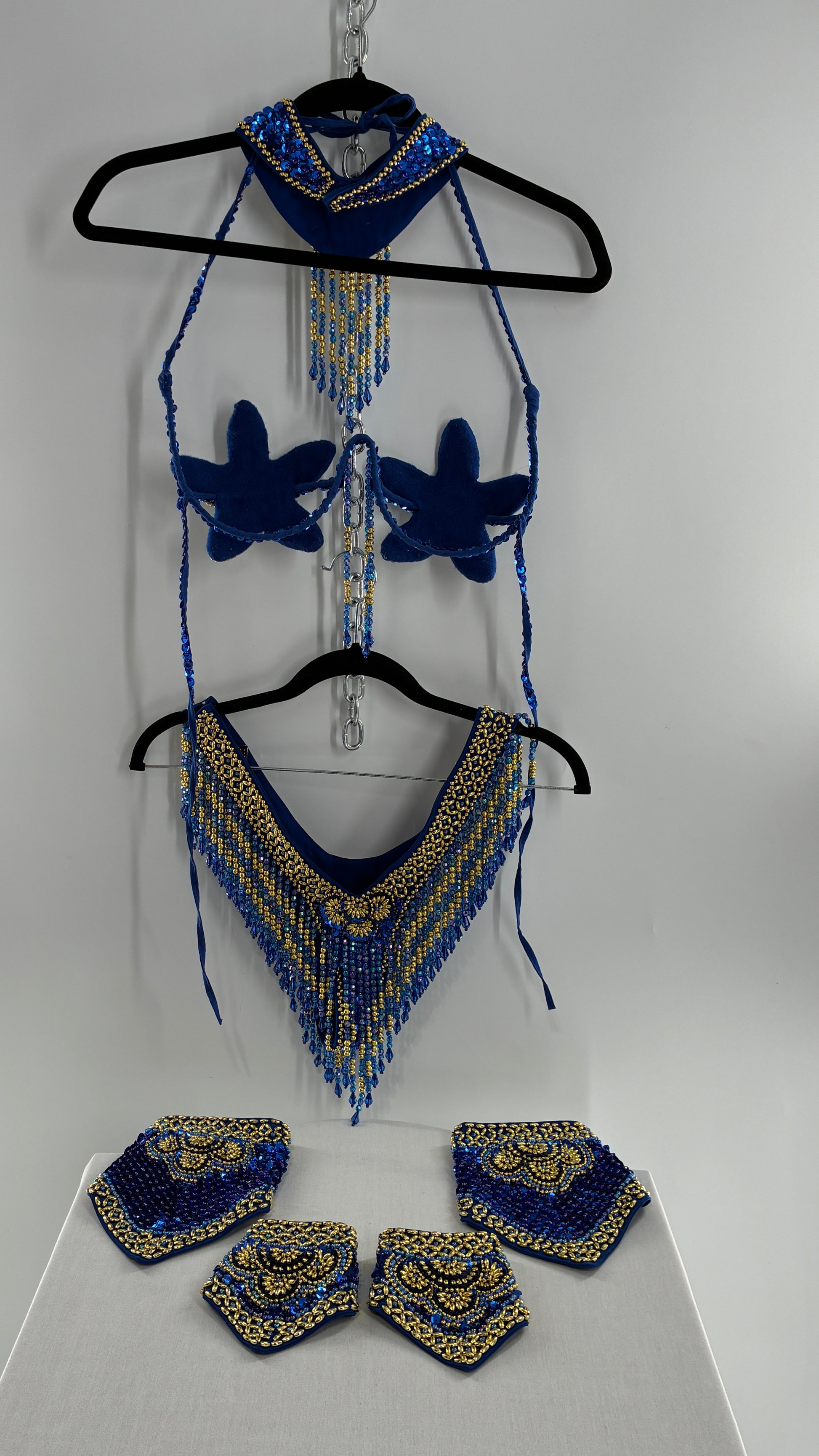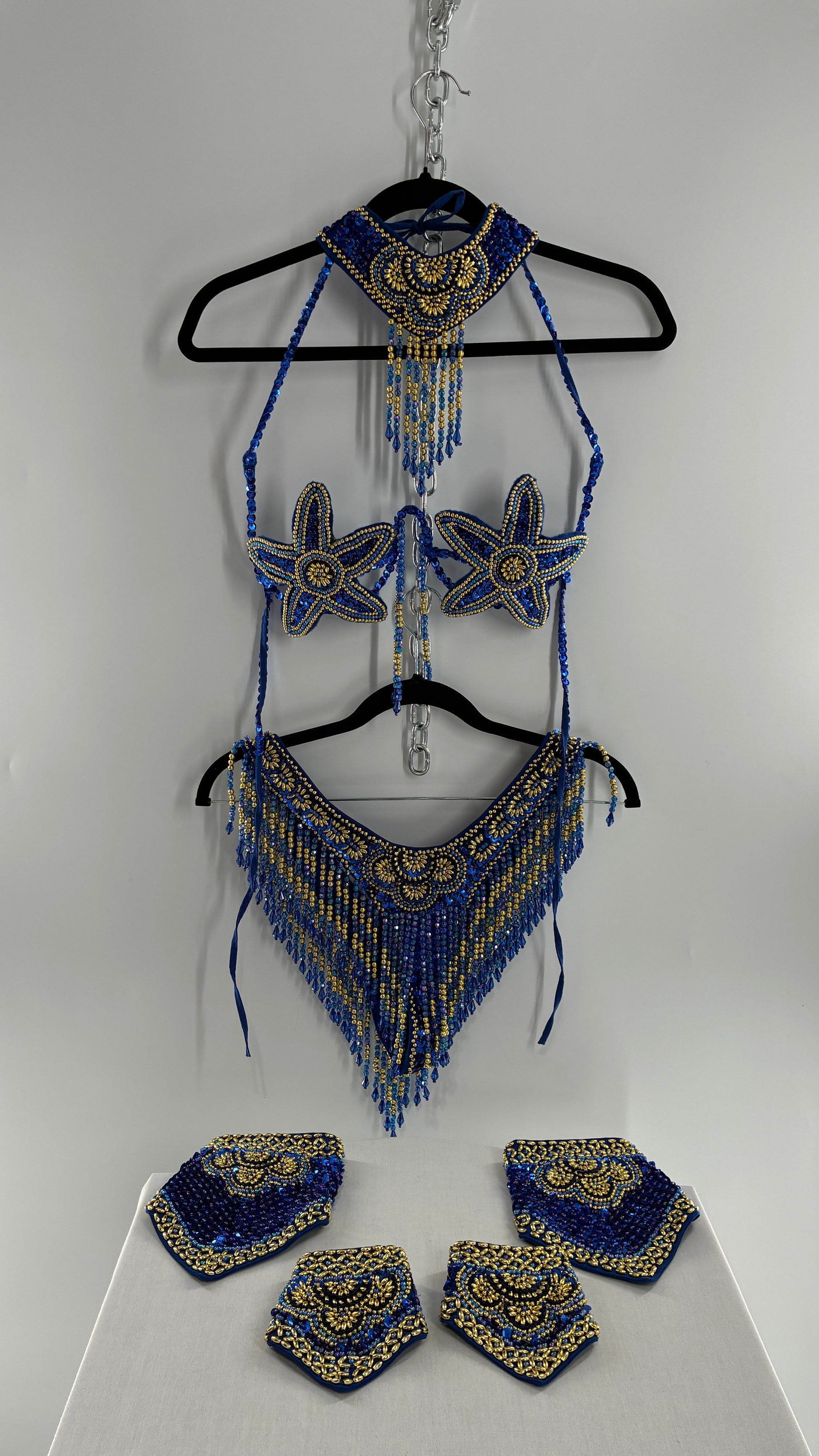 Vintage Royal Blue and Gold Beaded Belly Dancing Five Piece Set