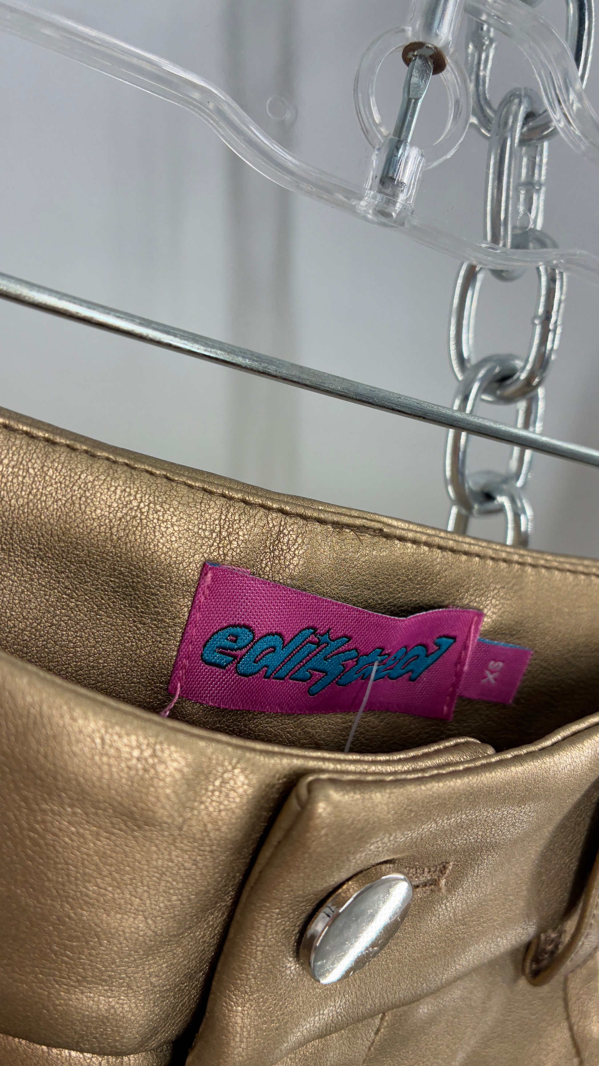 EDIKTED Gold Vegan Leather Low Waisted Hot Shorts (XS)