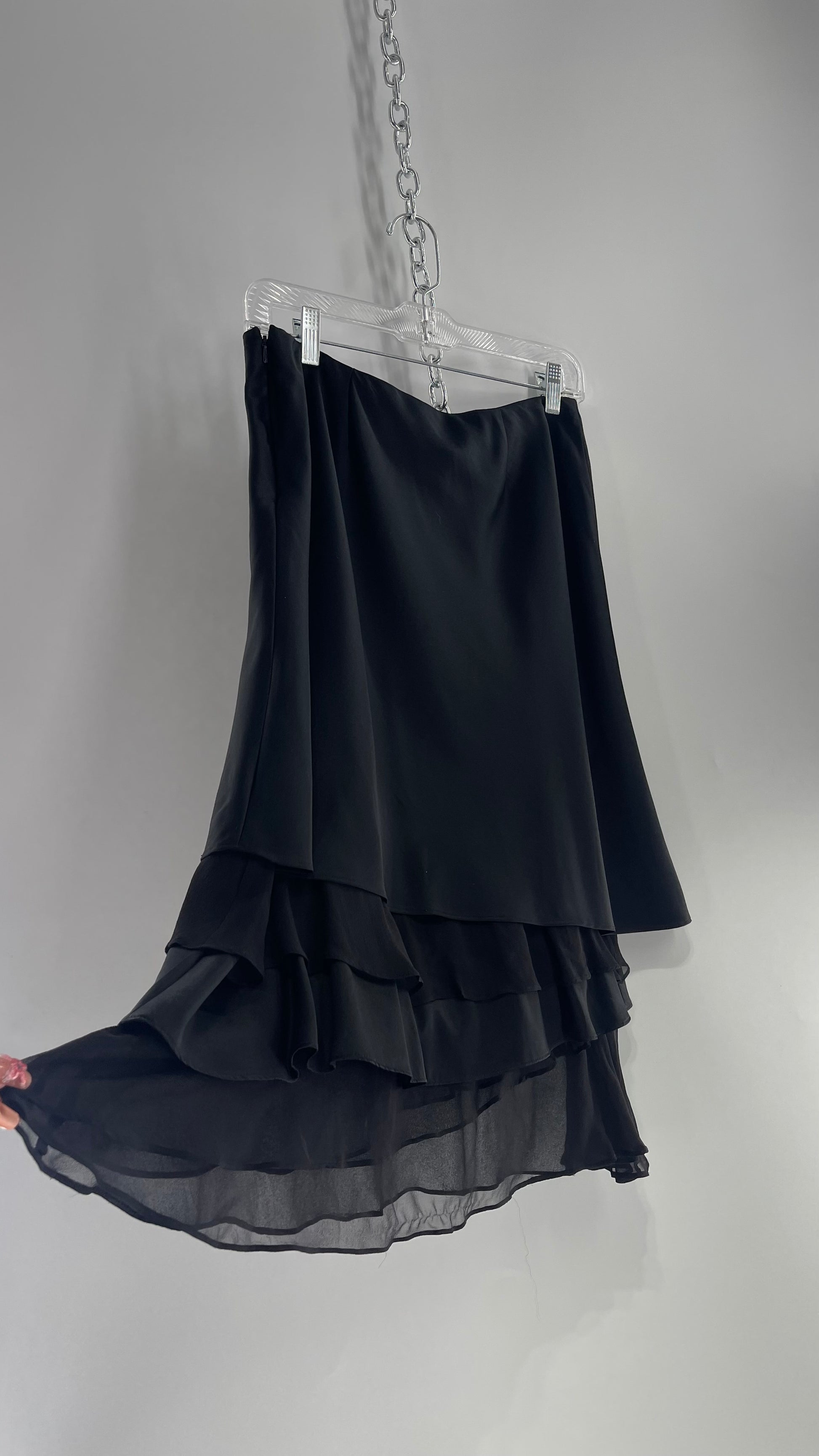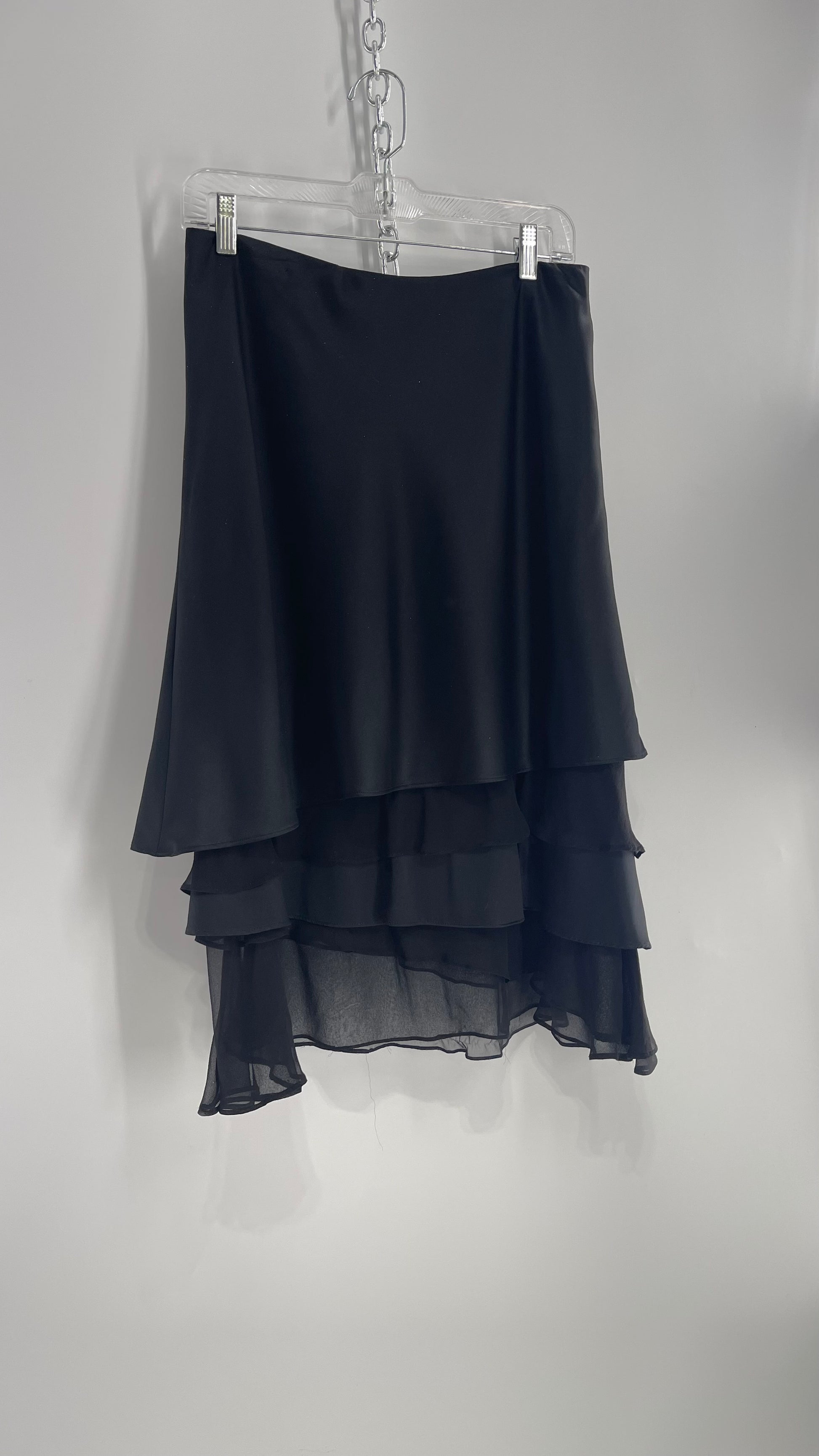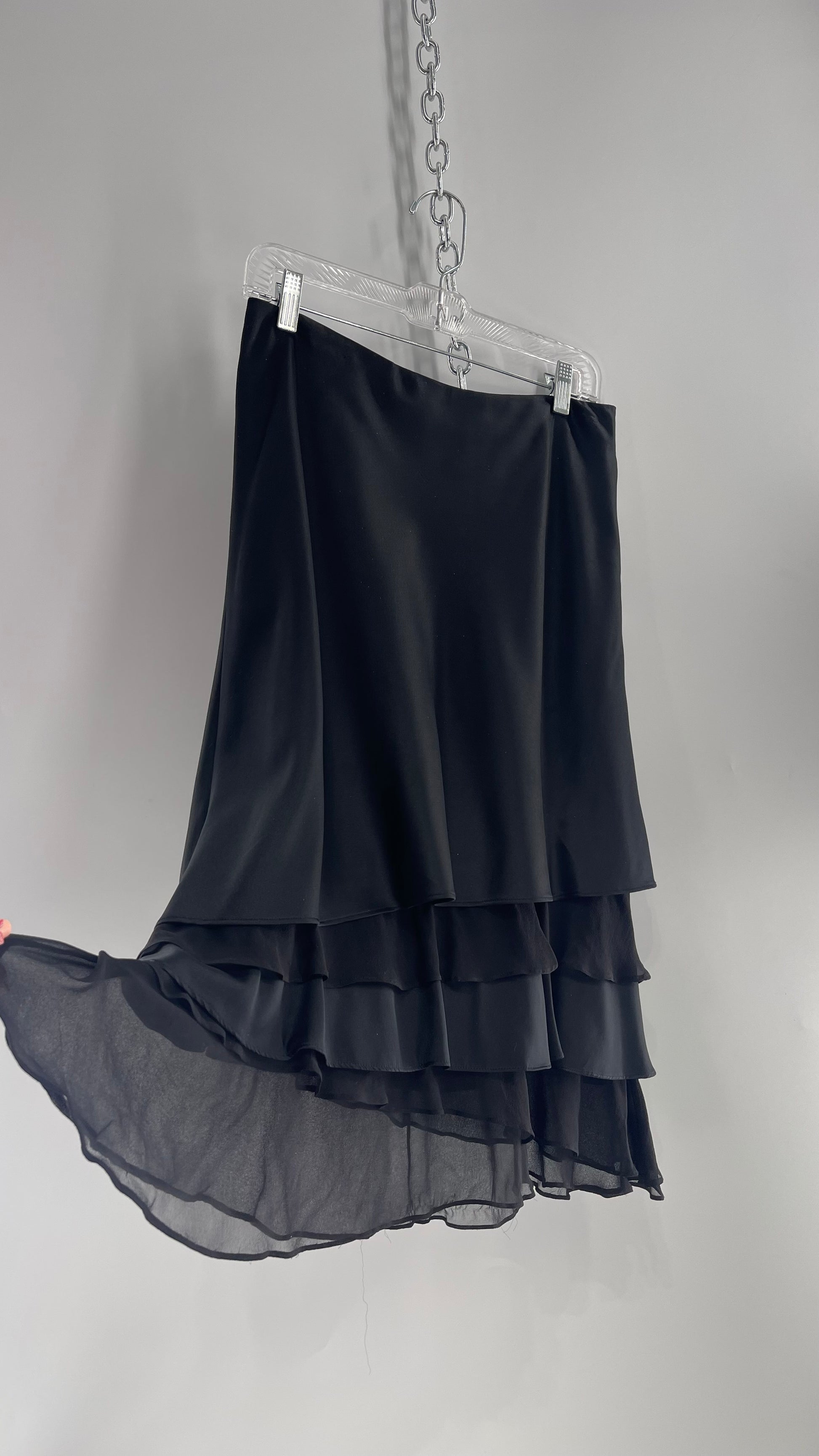 Vintage RIMINI Black Silky Skirt with Ruffled Layered Hem
