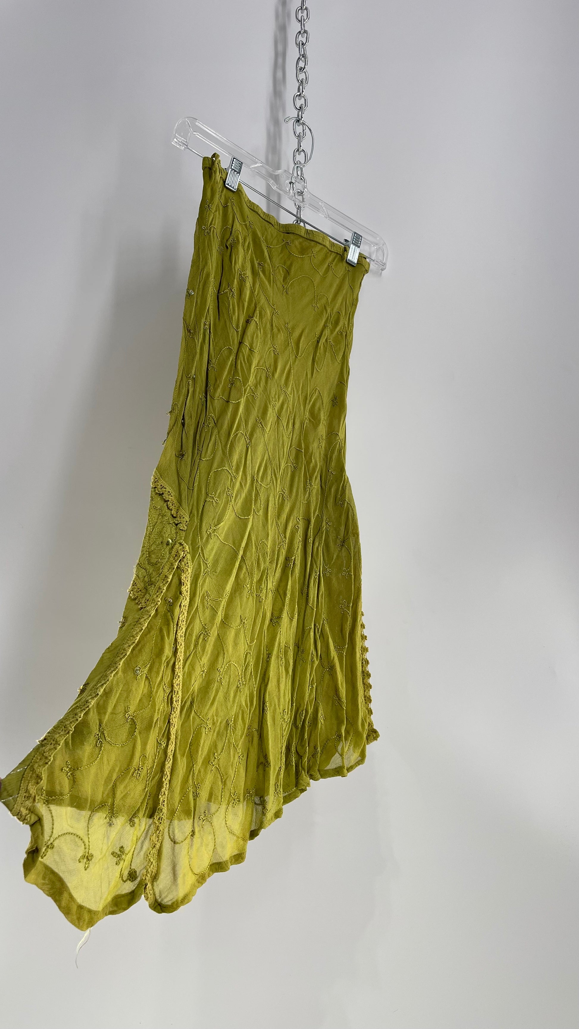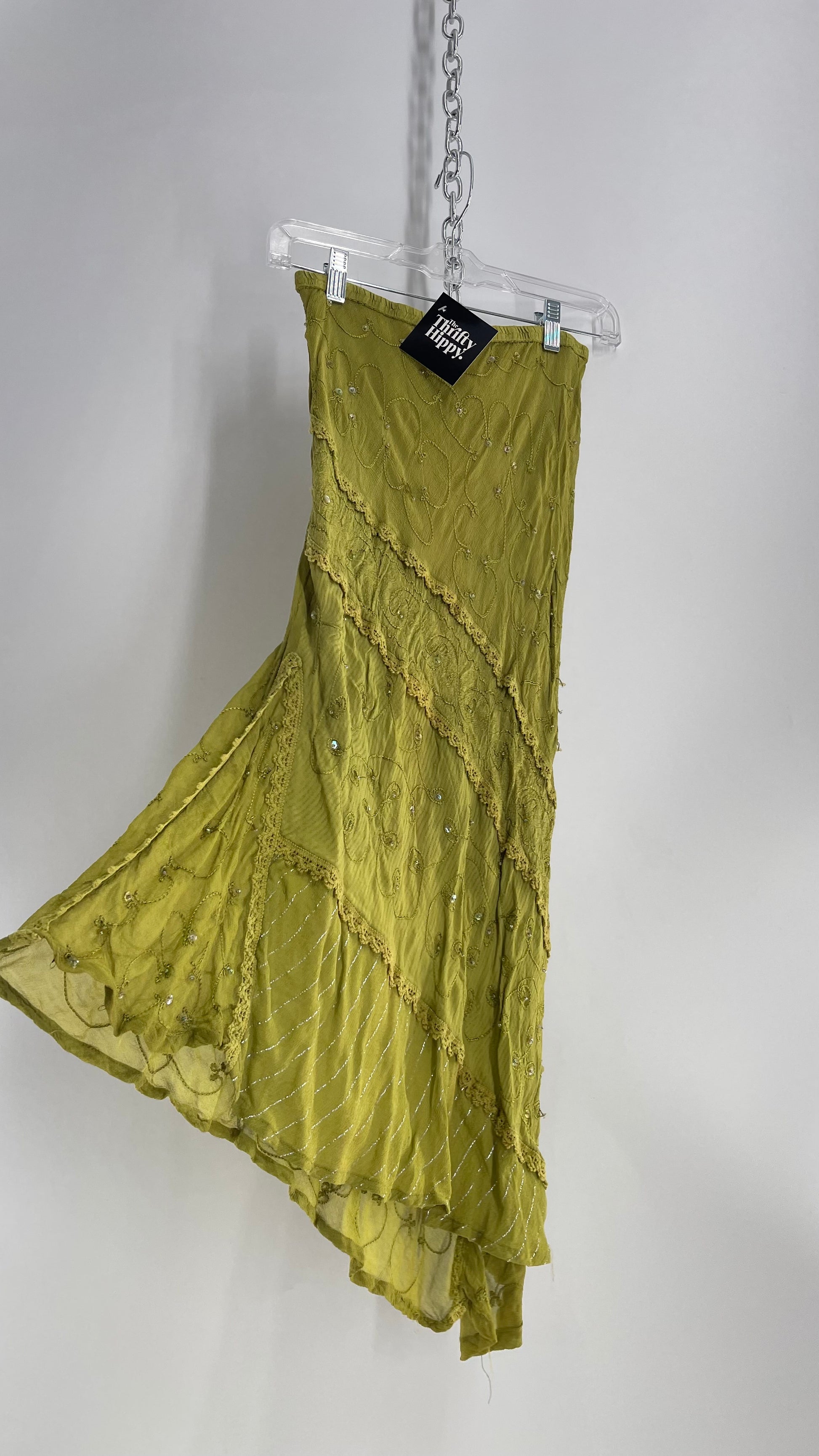 Vintage JAPNA Green Embroidered Sequin Lace Skirt 100% Viscose (S/M)