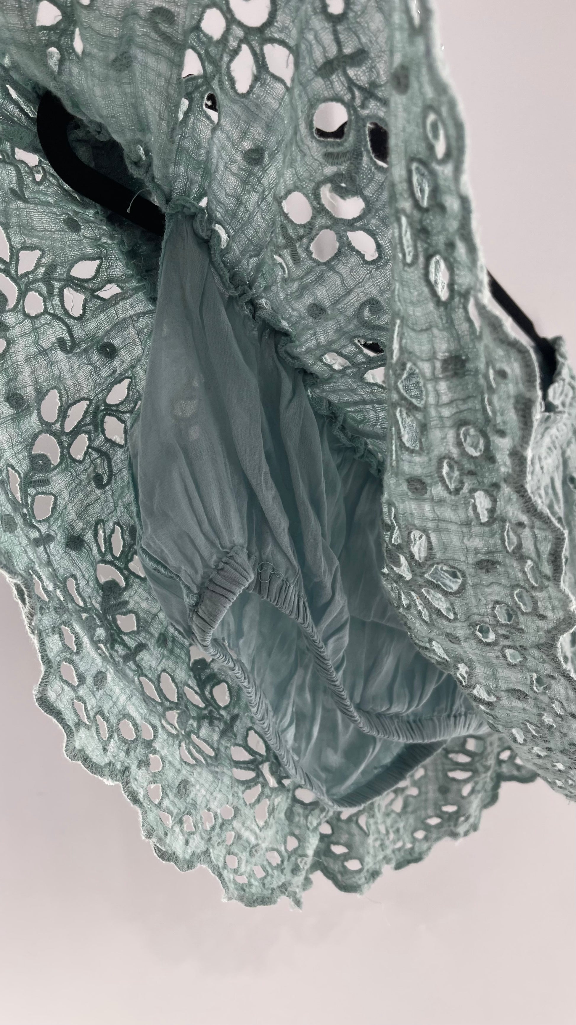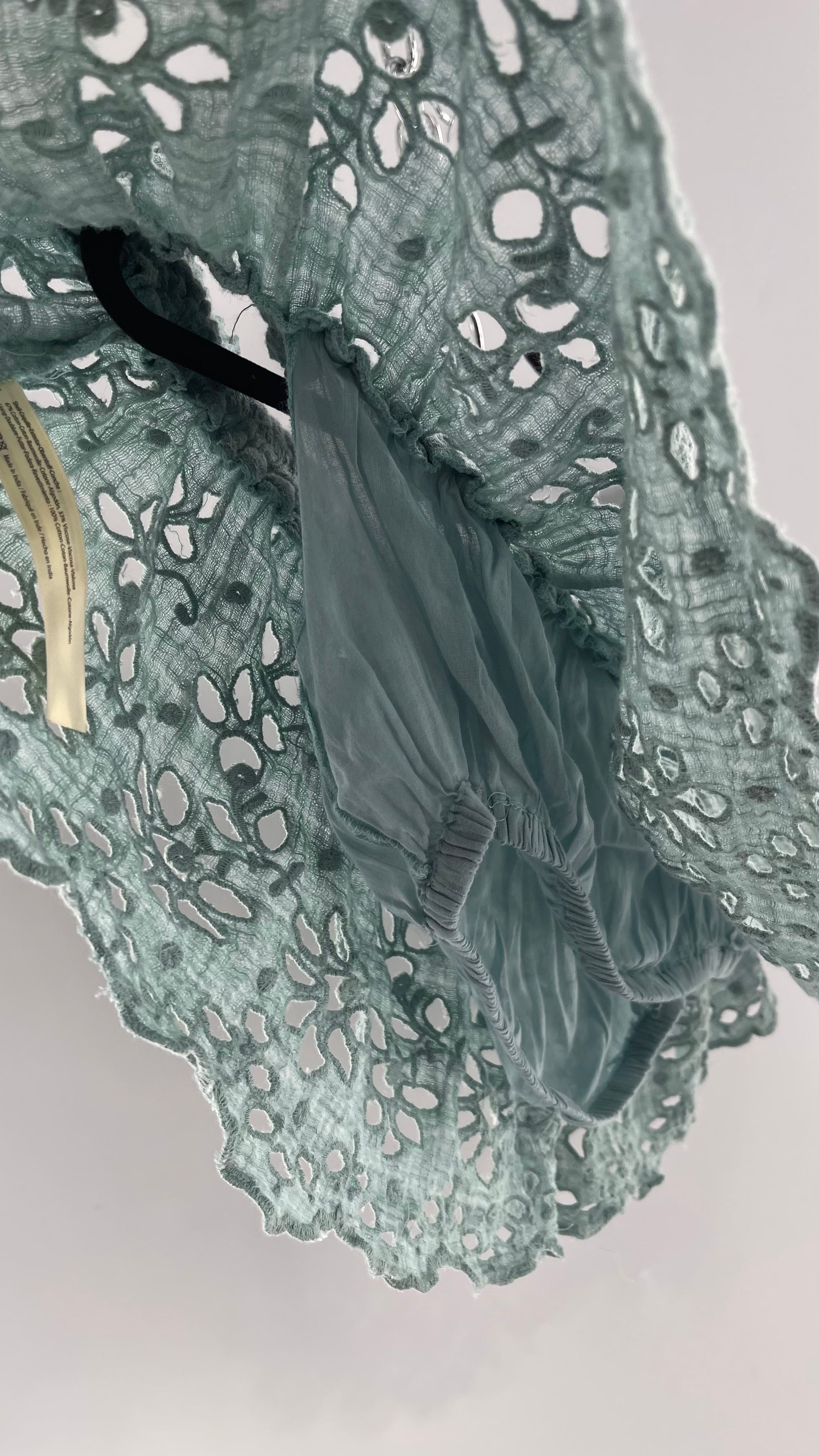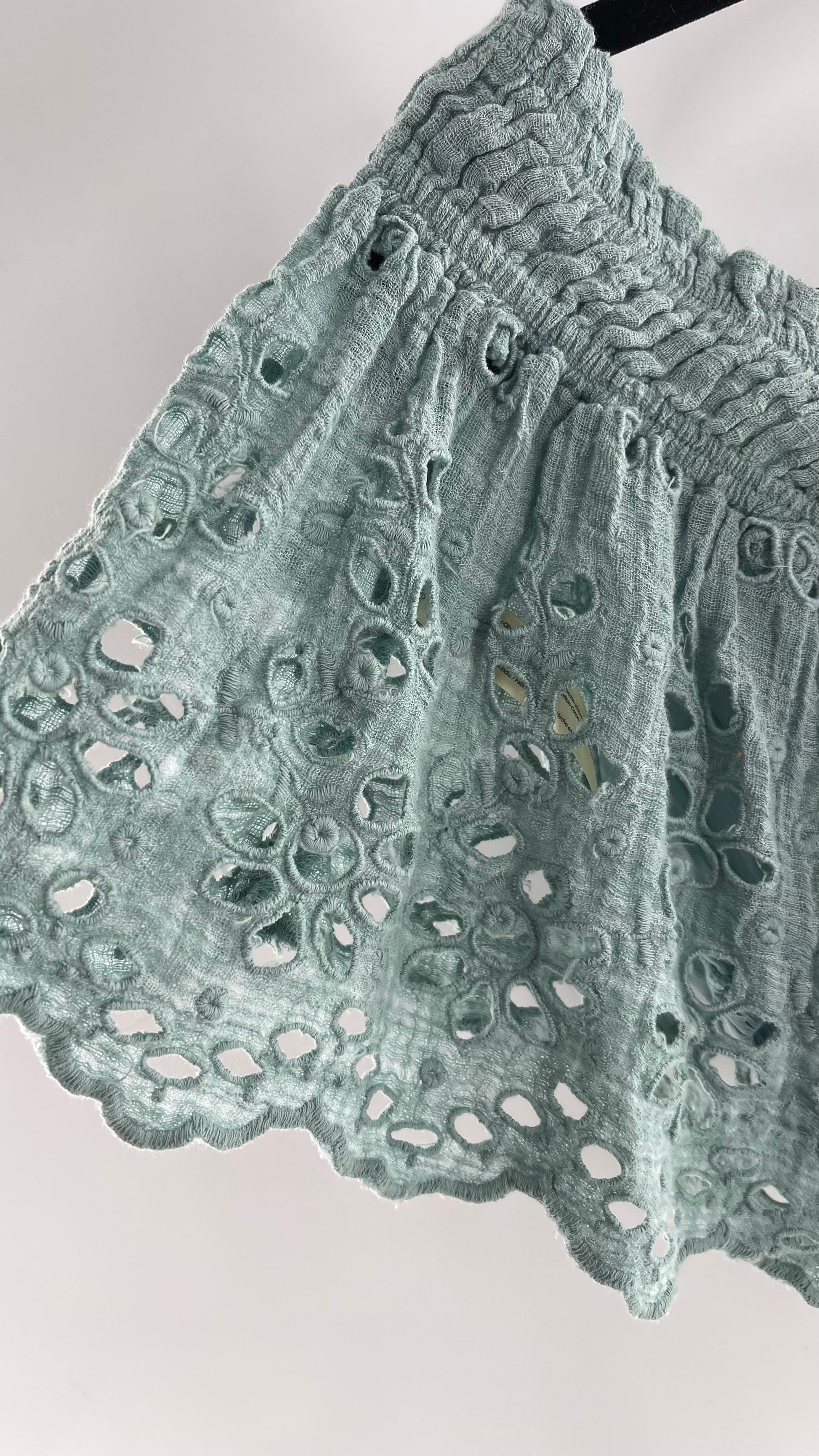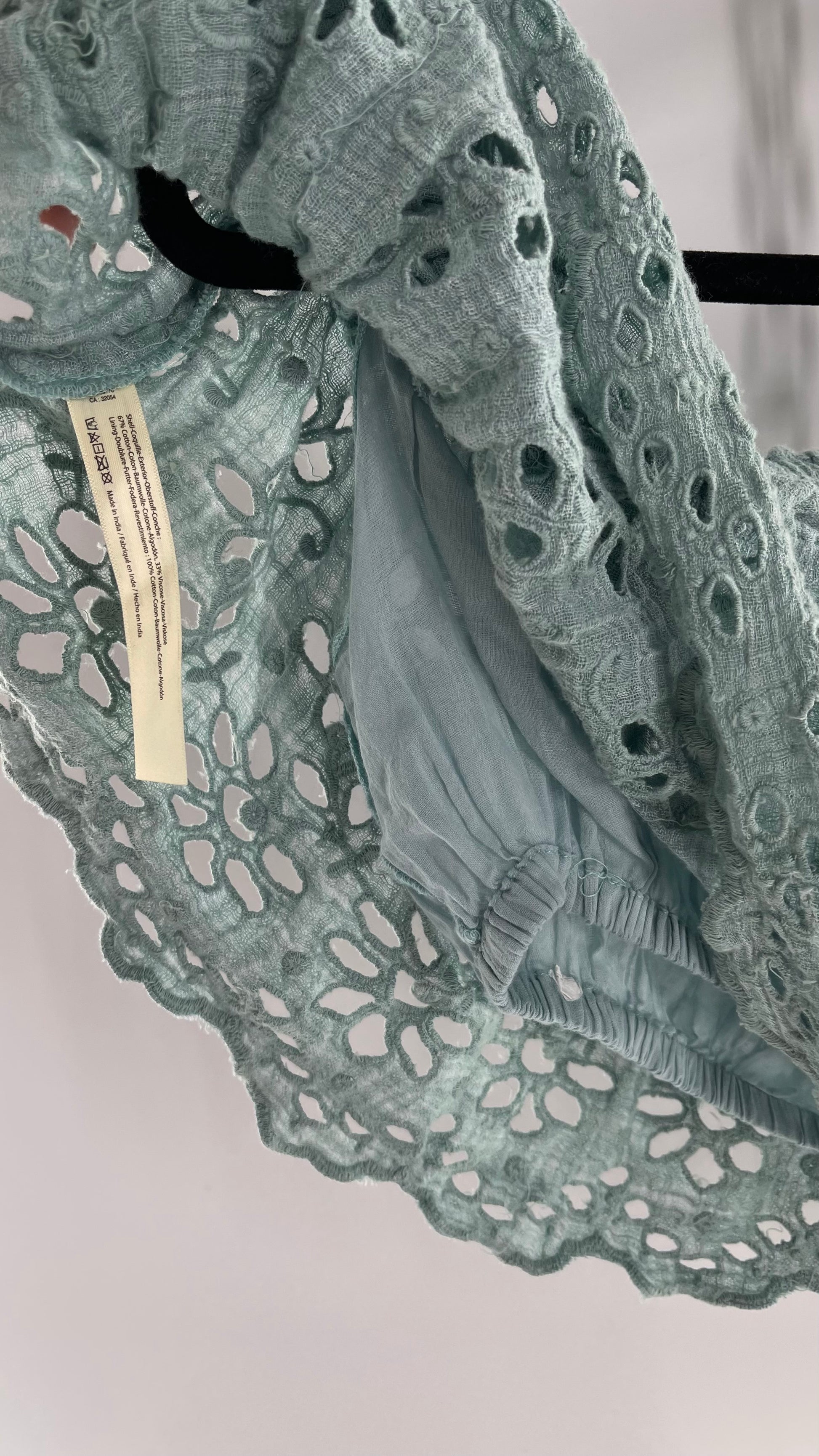 Free People Eyelet Cotton Teal Blue Off the Shoulder Ruffle Bandeau (Medium)
