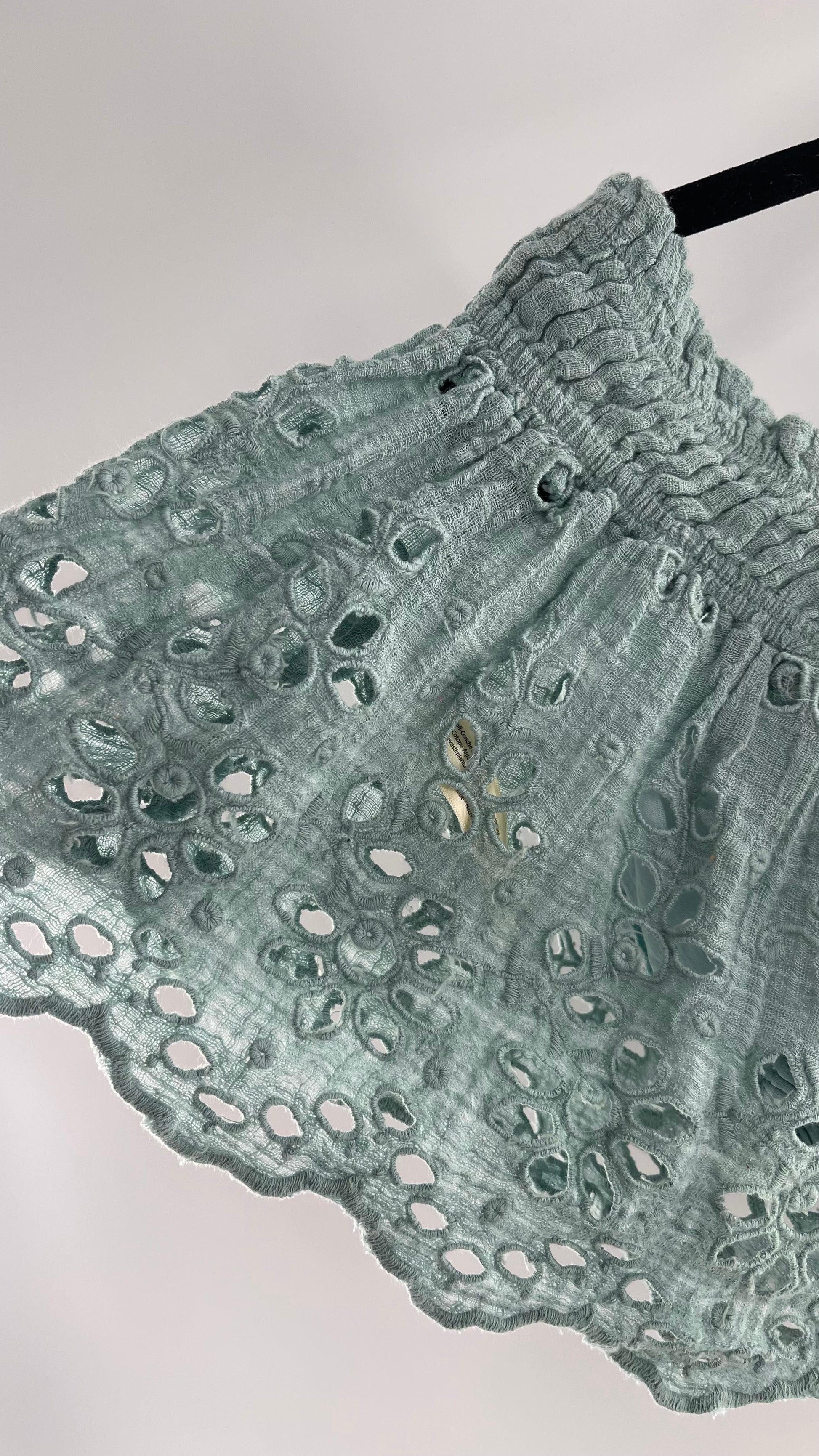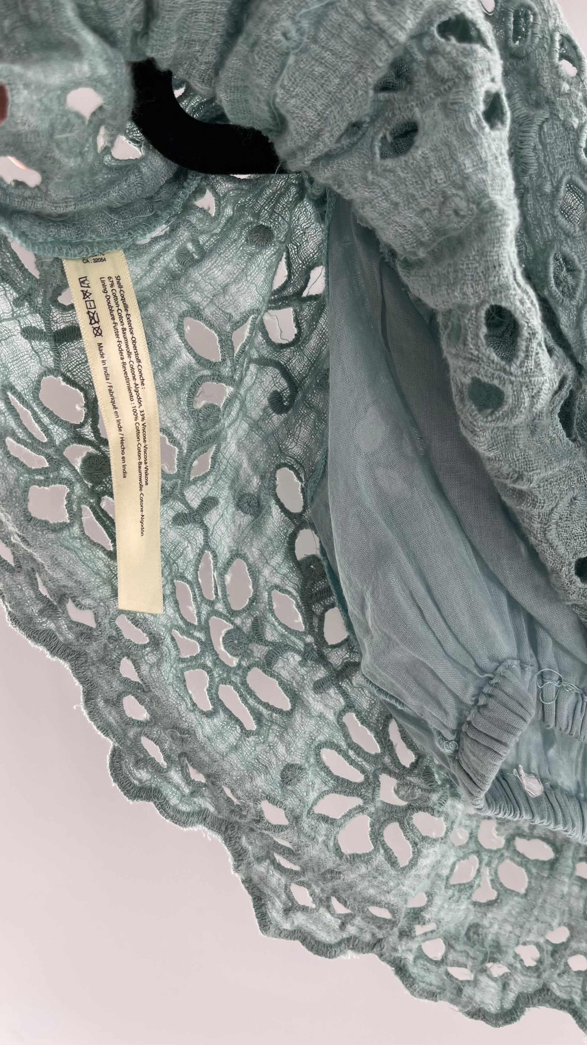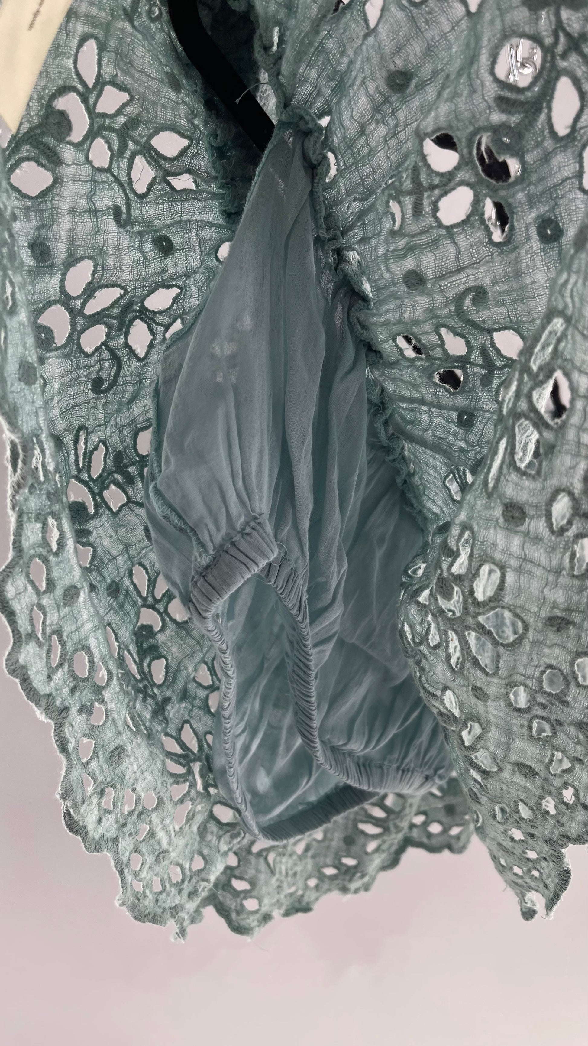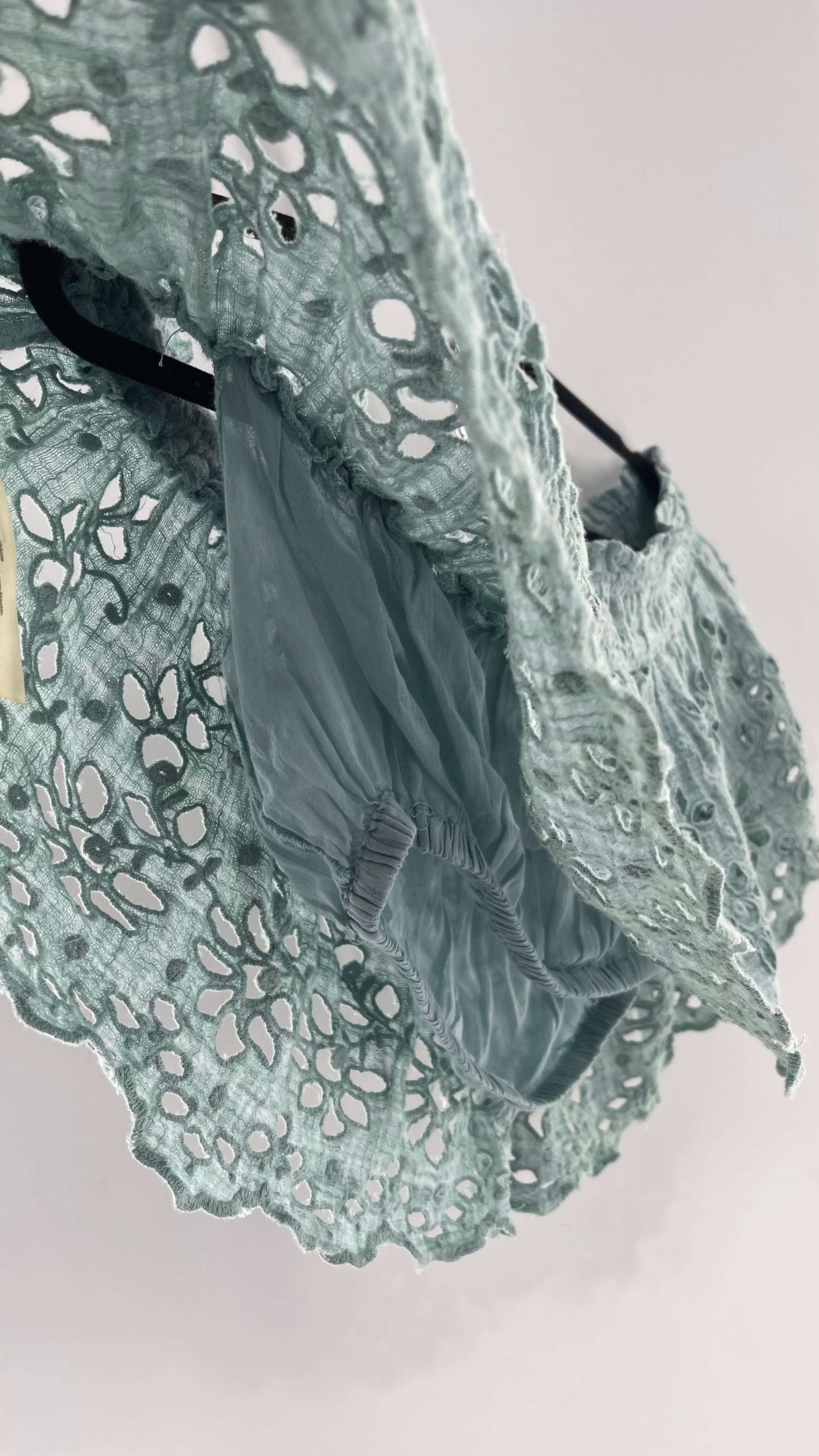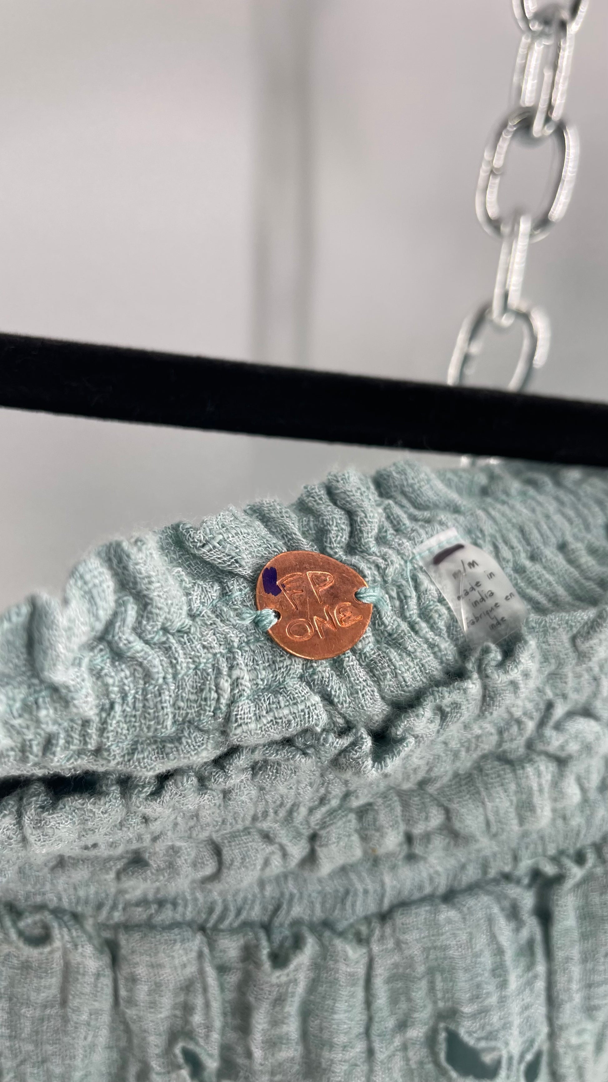 Free People Eyelet Cotton Teal Blue Off the Shoulder Ruffle Bandeau (Medium)