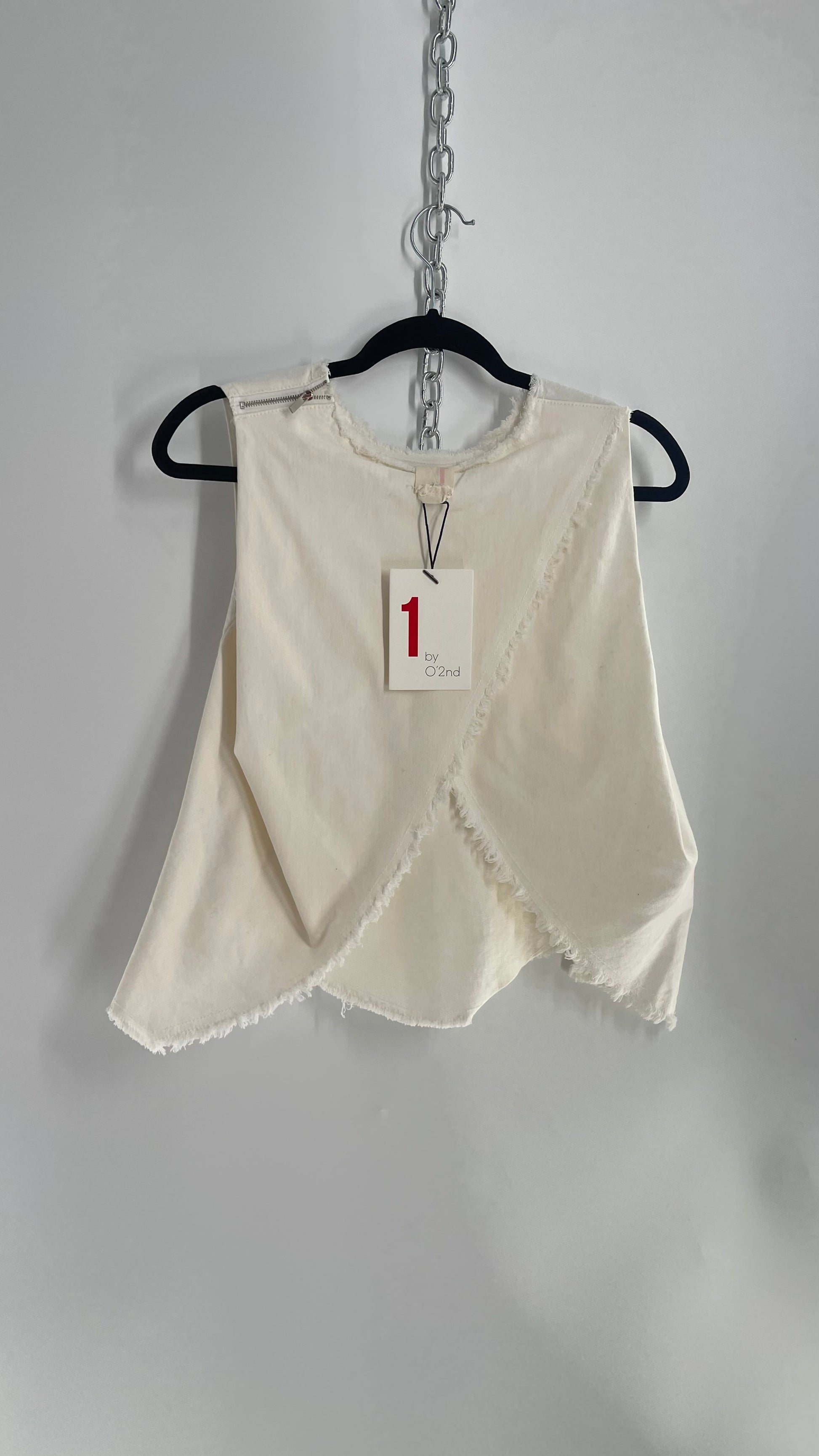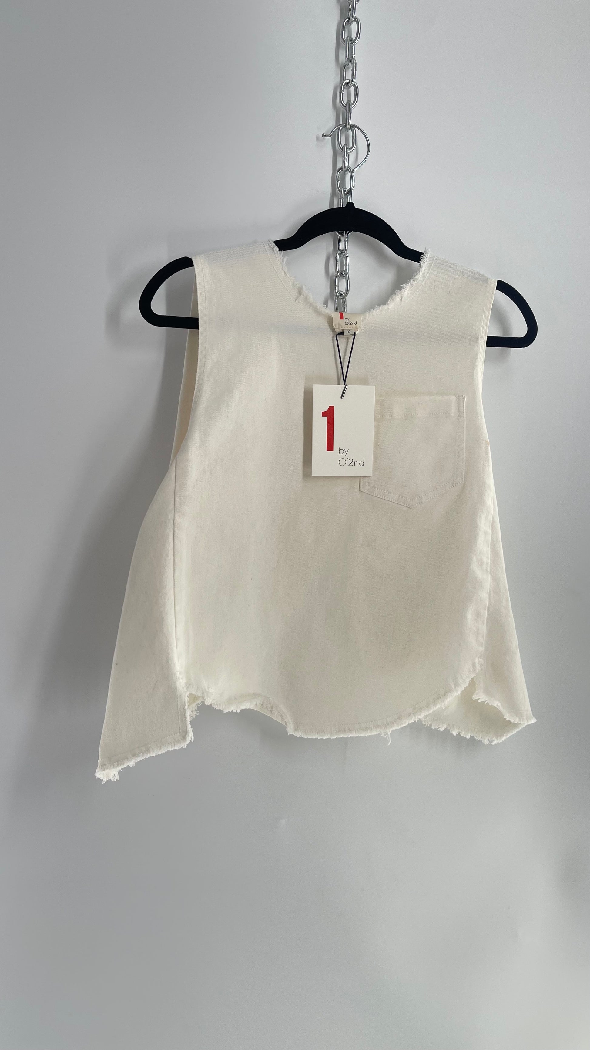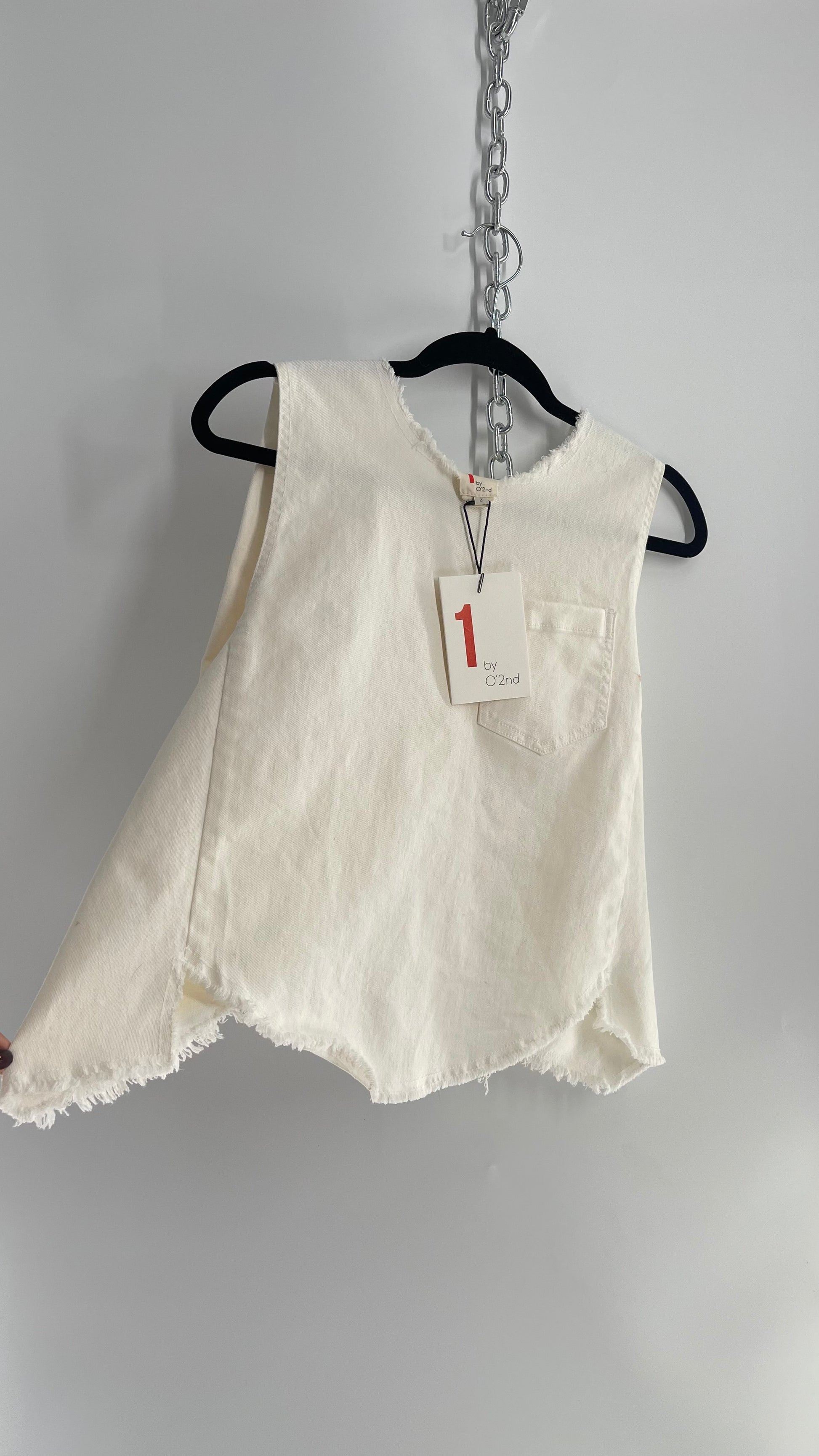 1 by 0’2nd White Denim Sleeveless Cross Over Back Top with Tags Attached