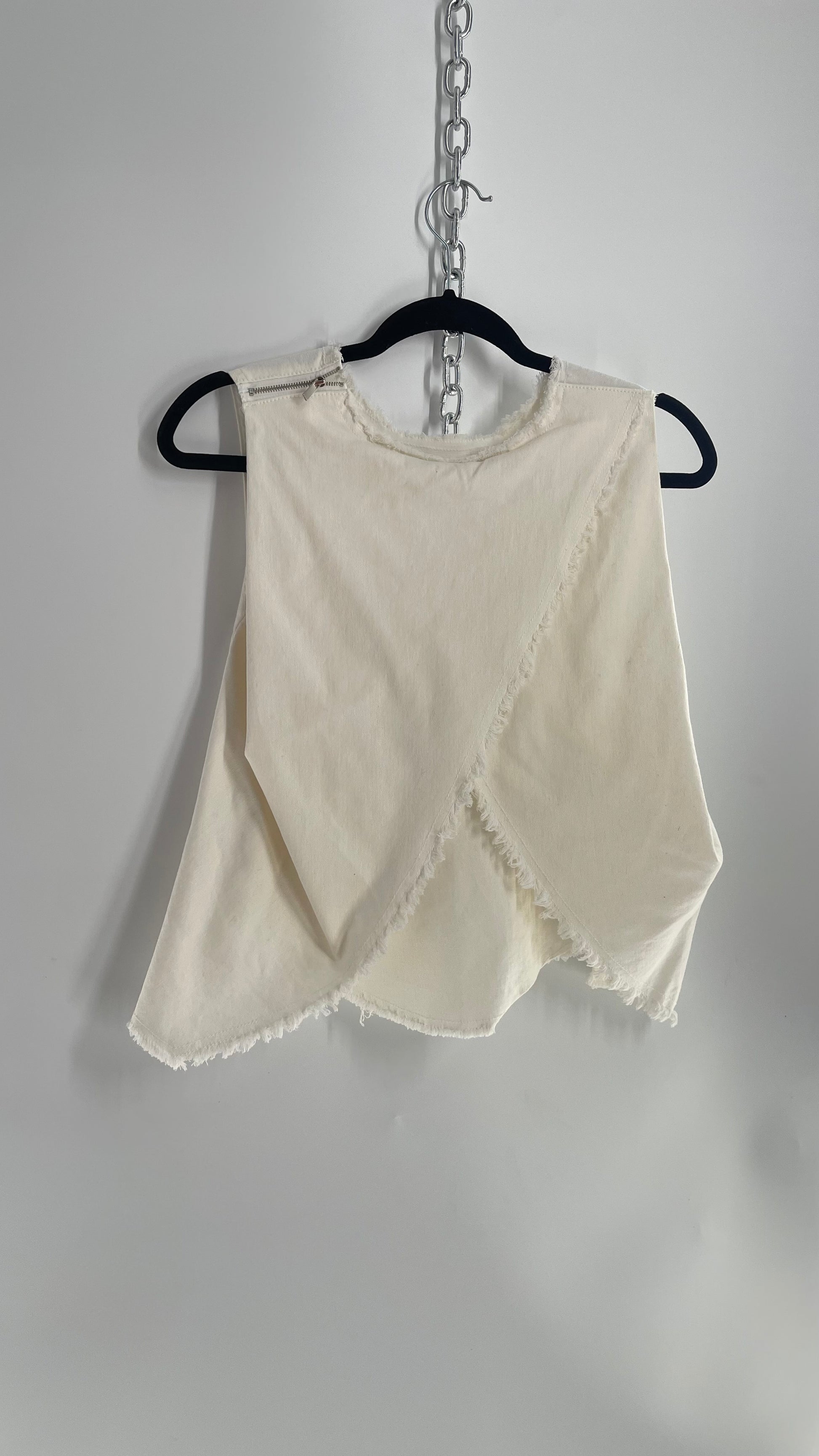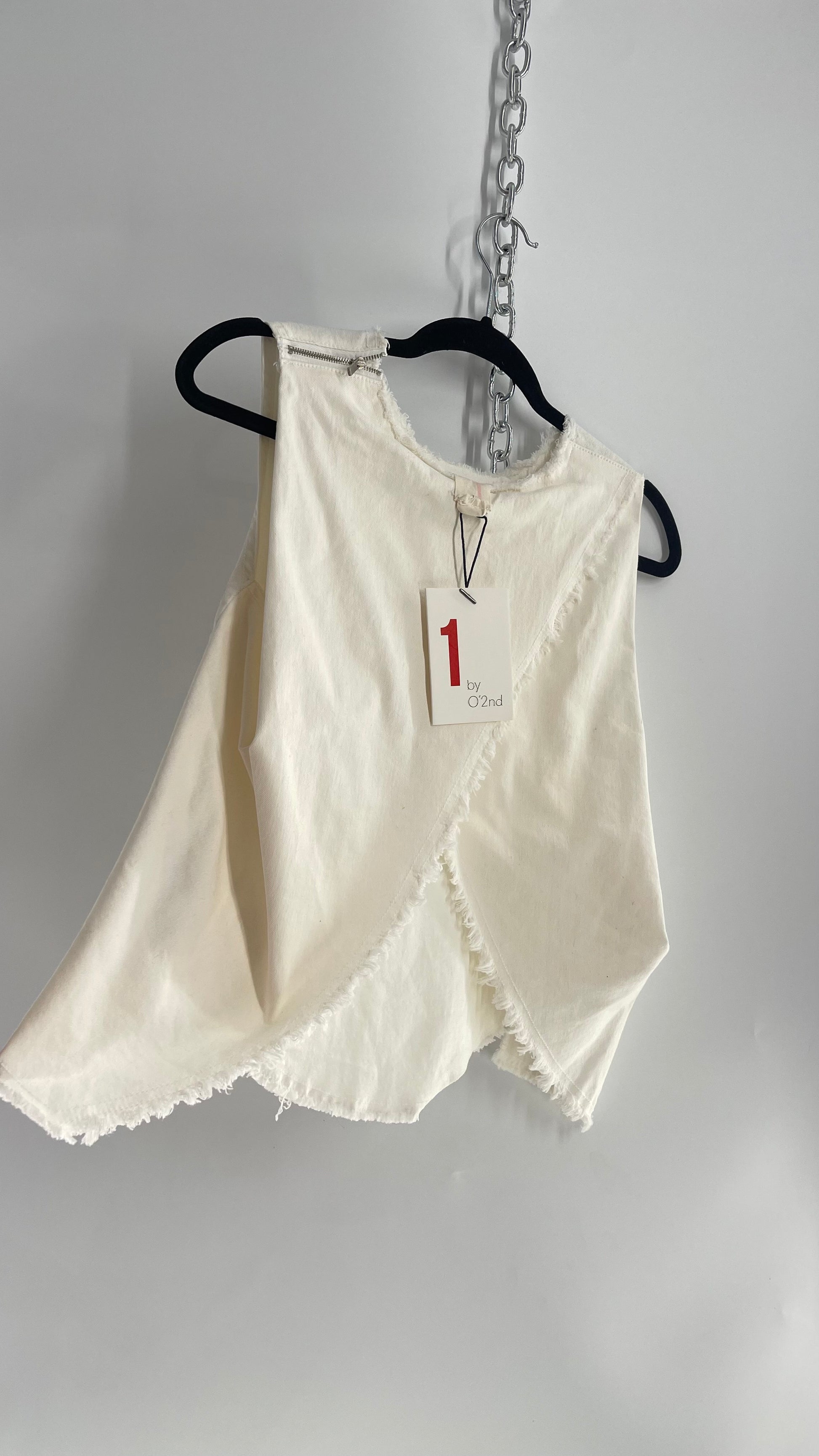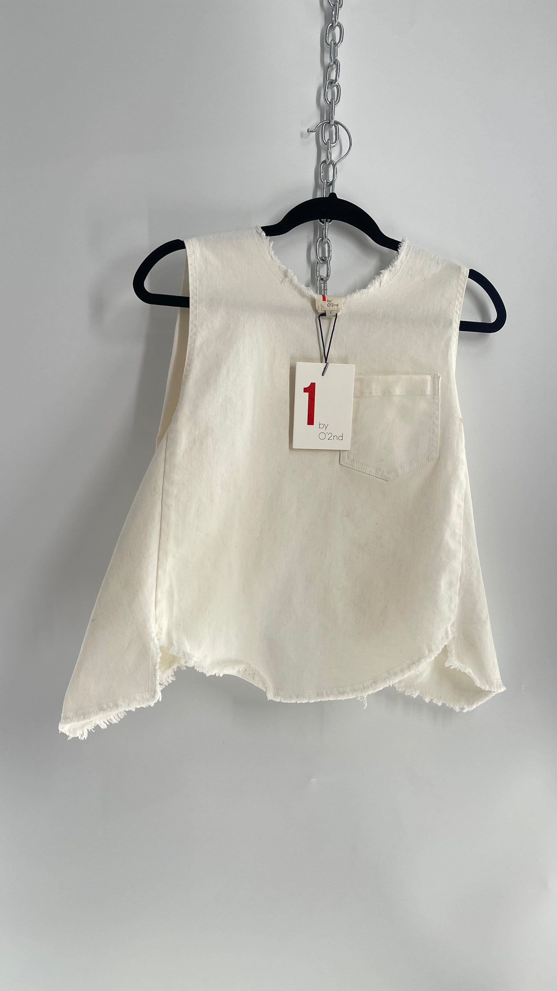1 by 0’2nd White Denim Sleeveless Cross Over Back Top with Tags Attached