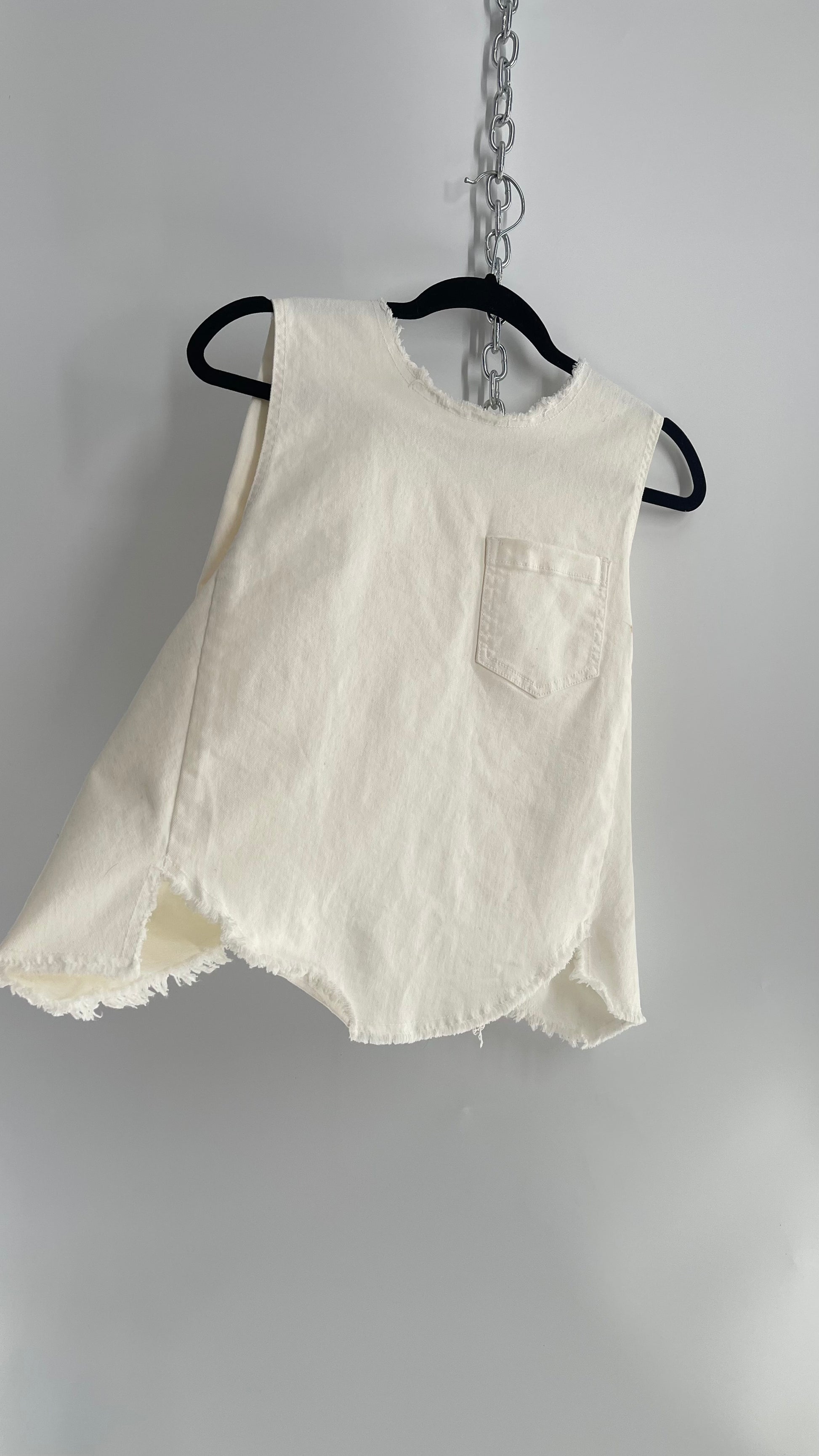 Anthropologie 1 by 0’2nd White Denim Sleeveless Cross Over Back Top with Tags Attached (2)