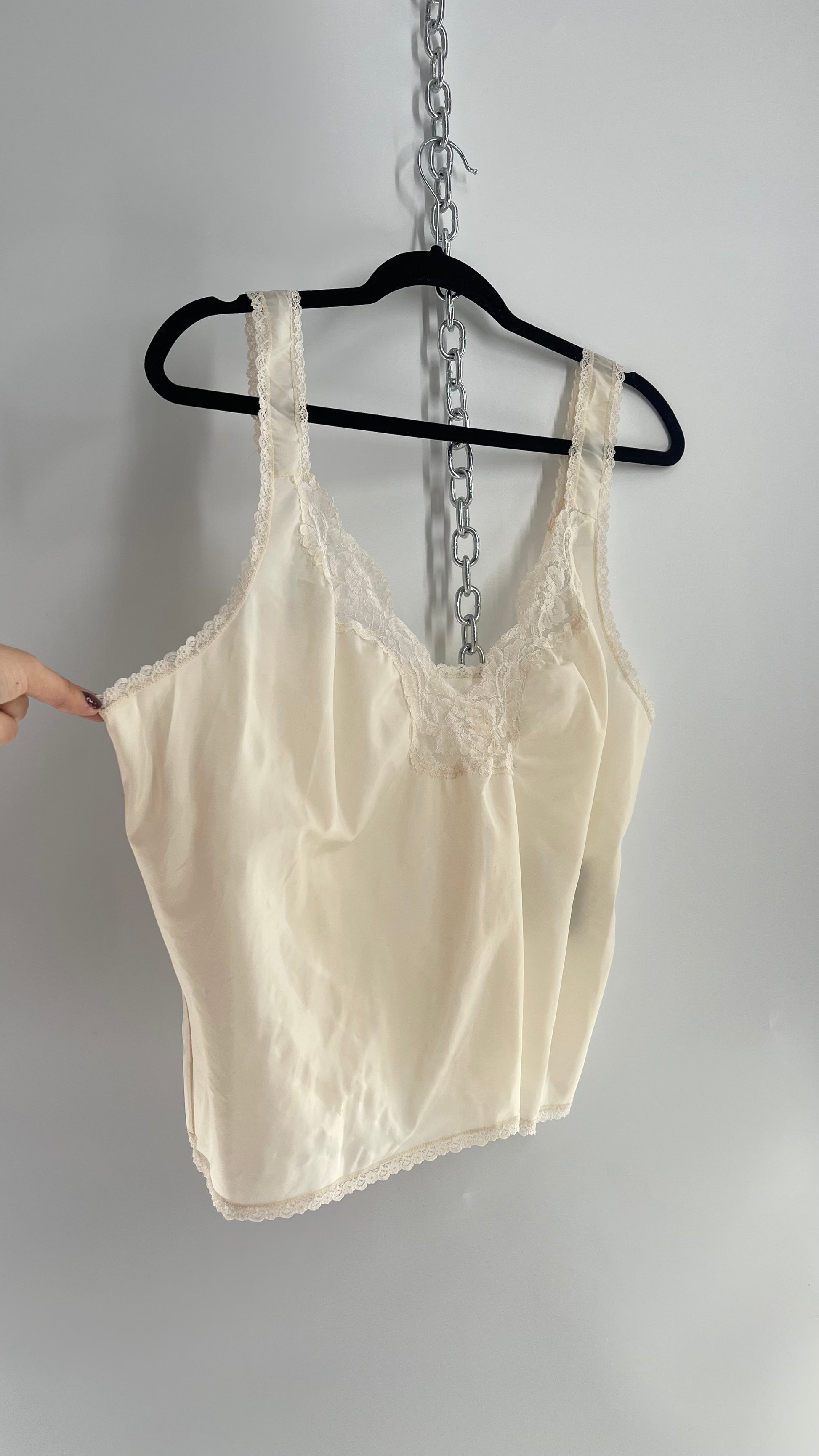 Vintage Lady Barbizon Waist Crop Lace Trim Tank (XL)