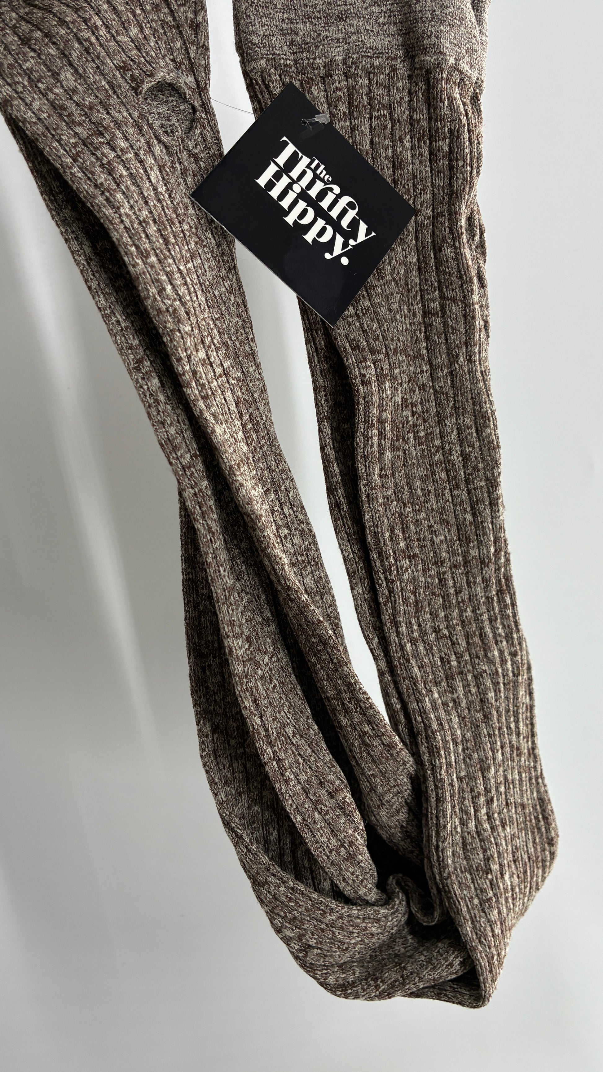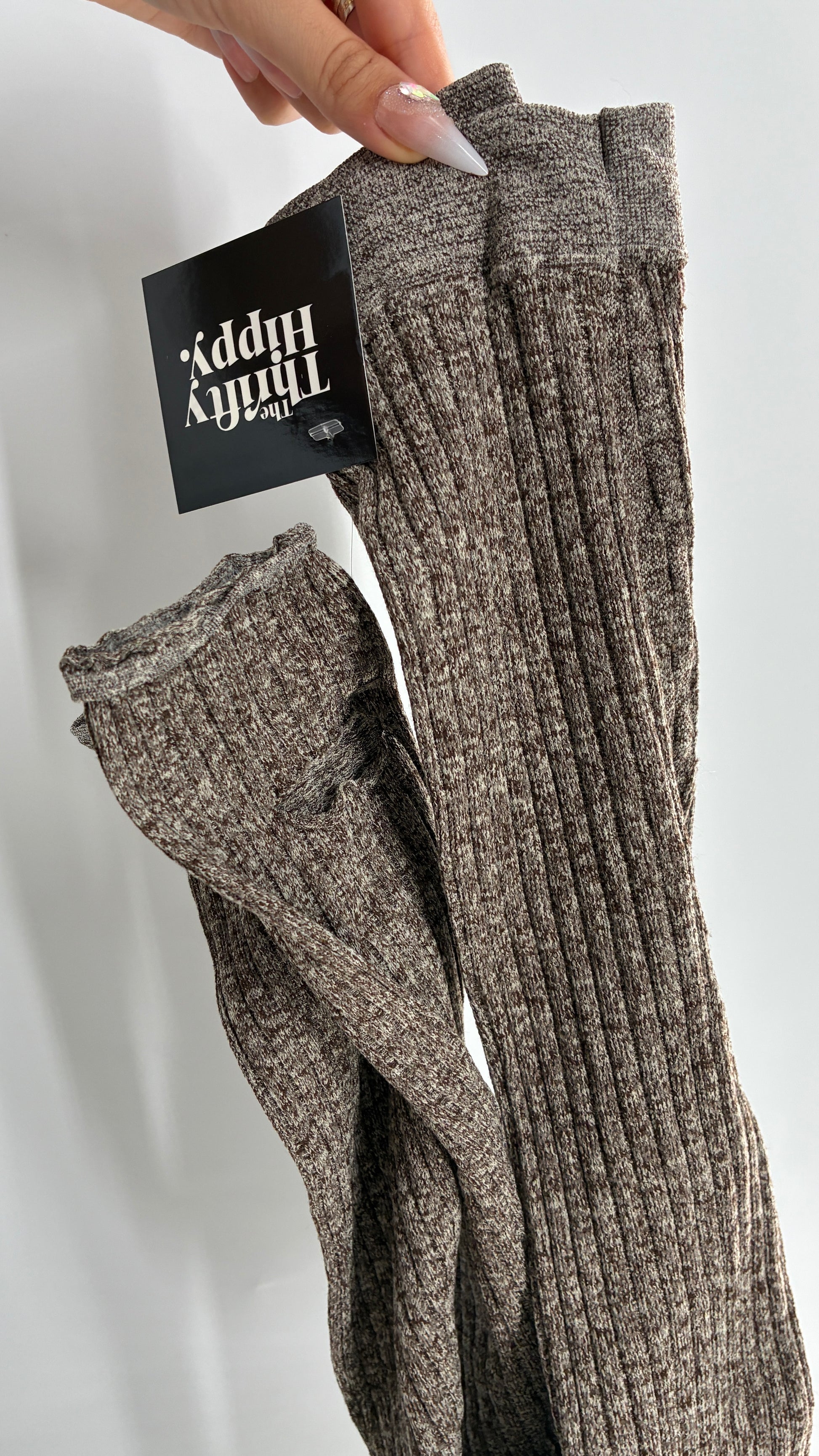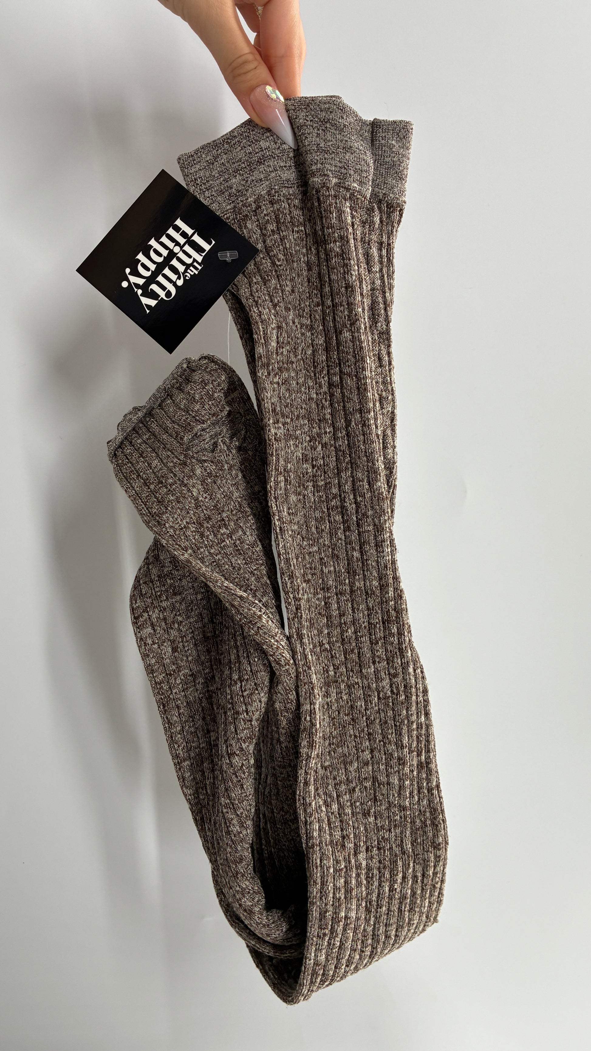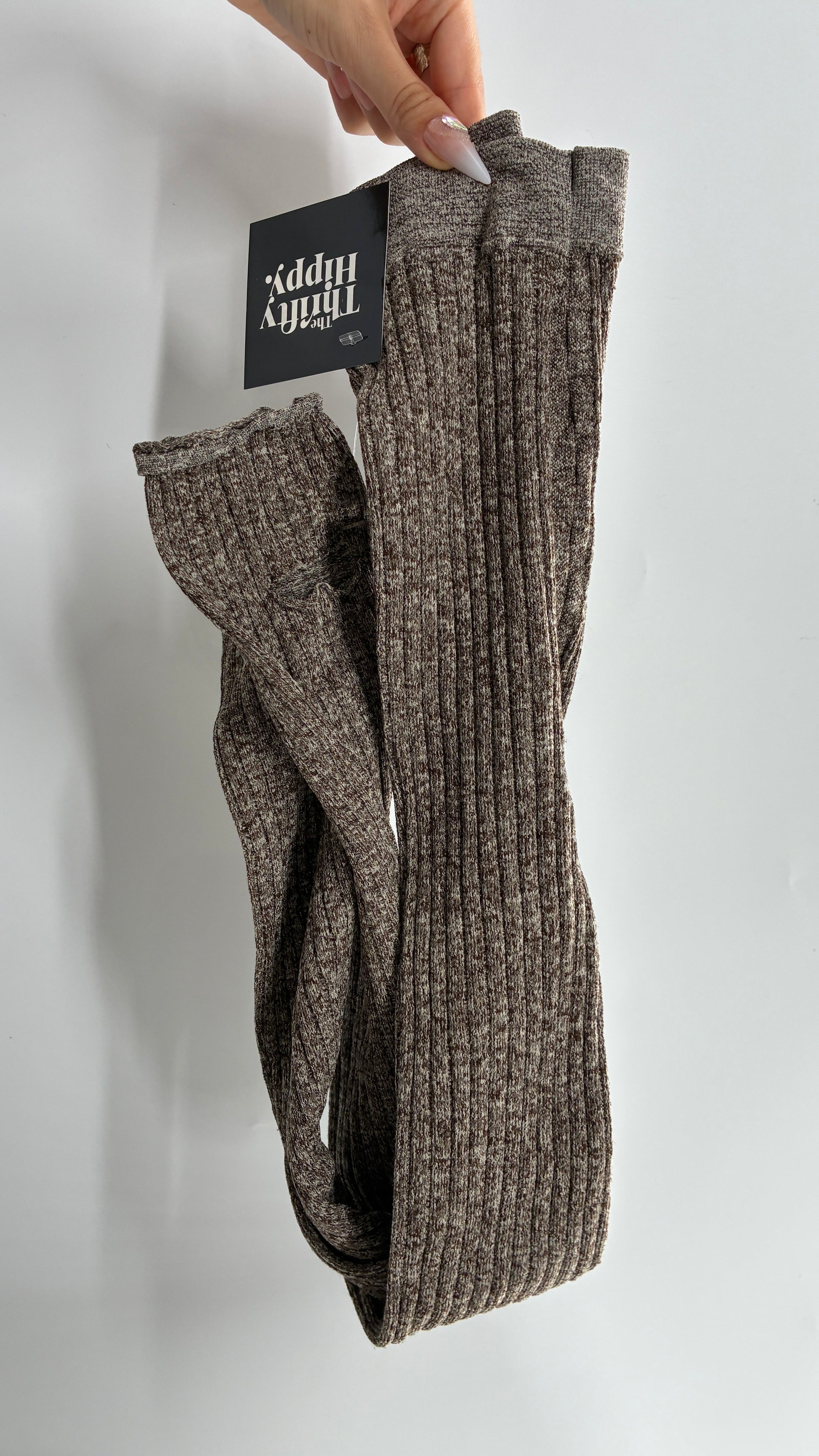 NWOT Brown Taupe Ribbed Knit Footless Tights