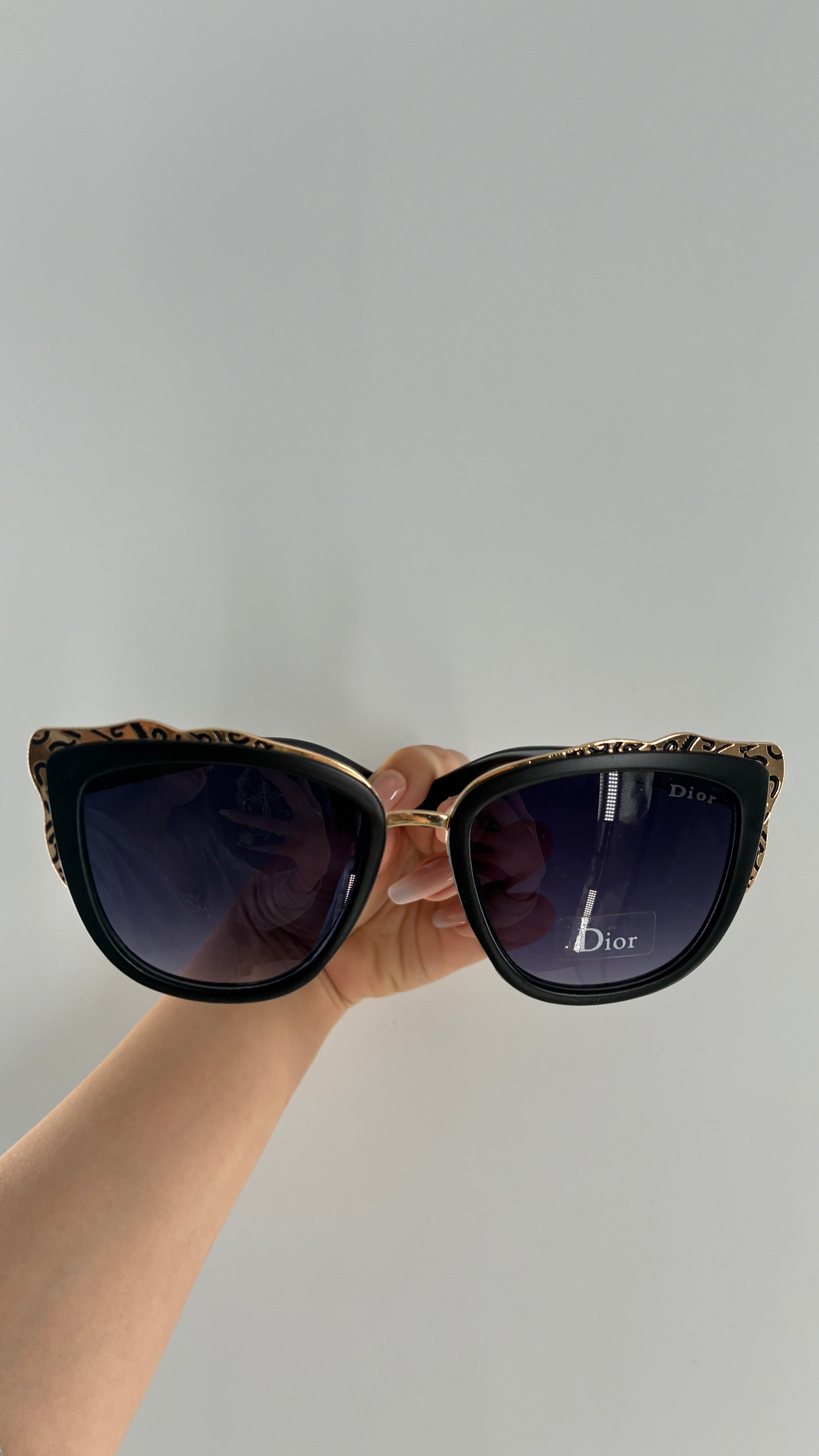 Vintage DIOR Matte Black Sunglasses with Engraved Gold Detailing *Unauthenticated