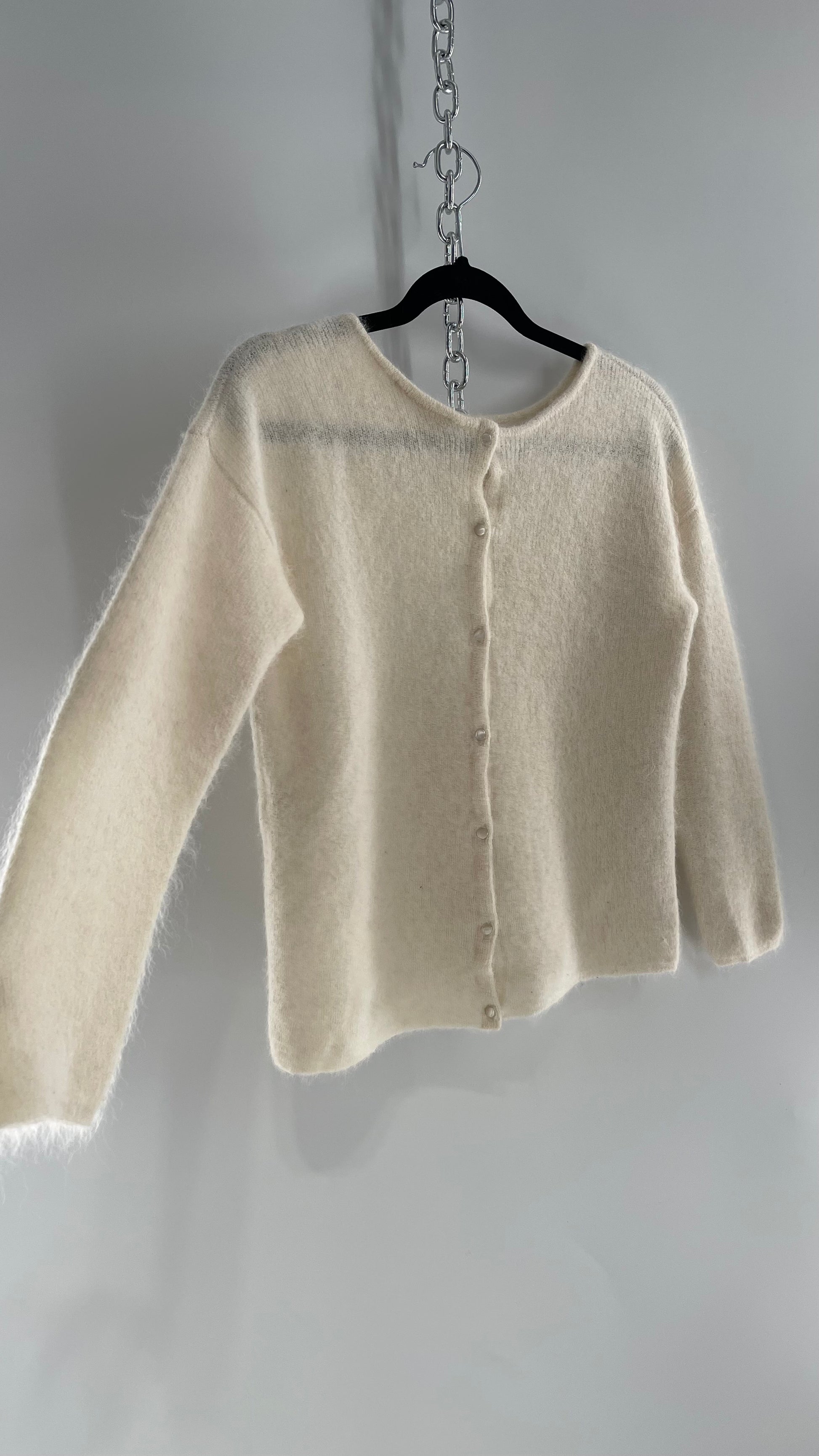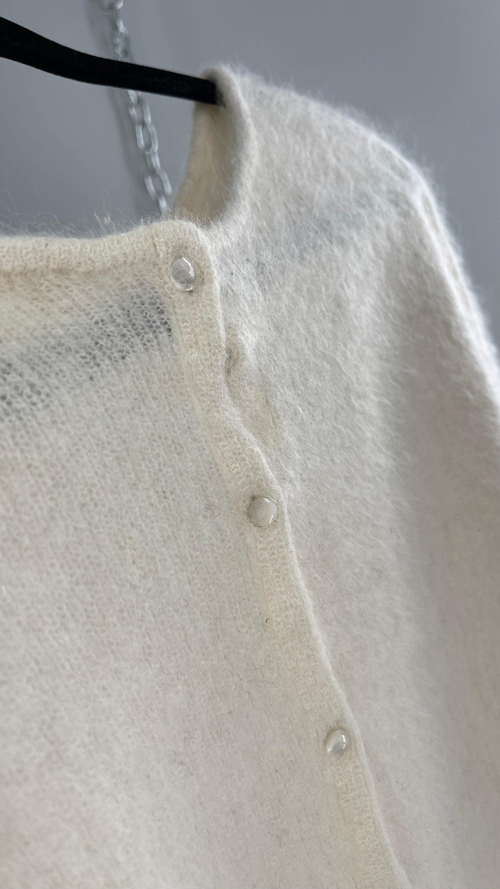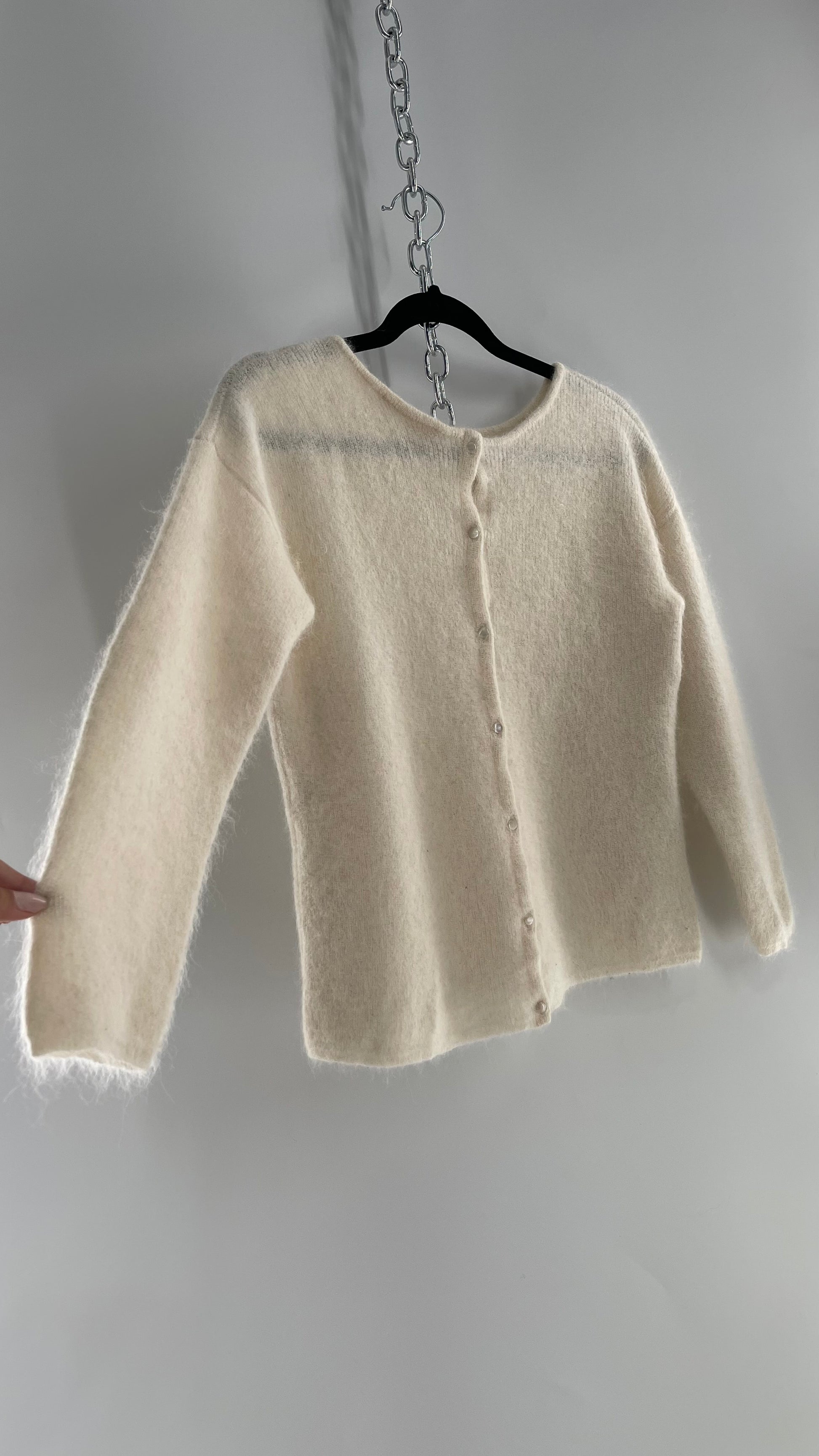 Vintage La Maille Sézane PARIS Rue Saint Fiagre White Alpaca/Mohair Button Back Cardigan (Medium)