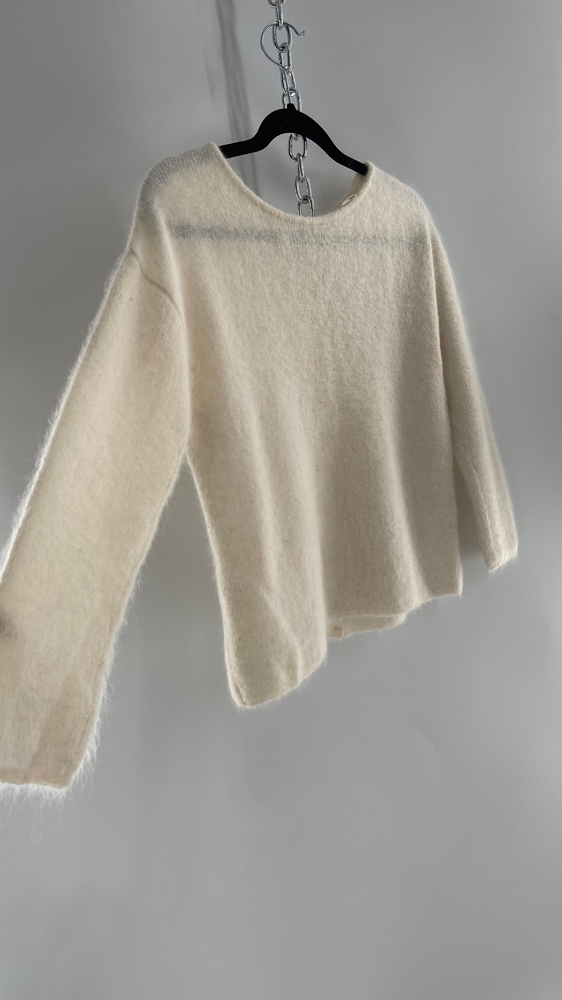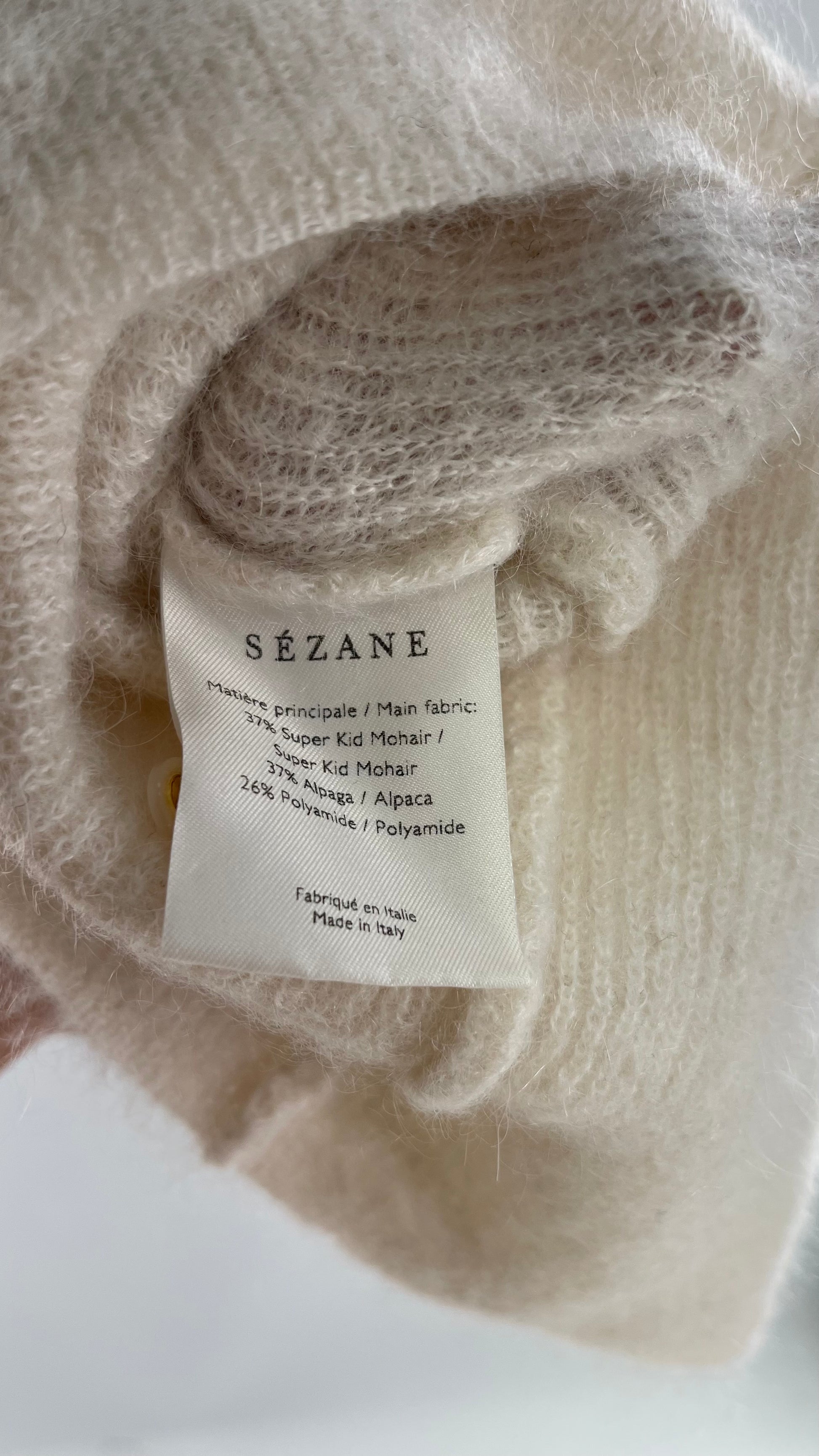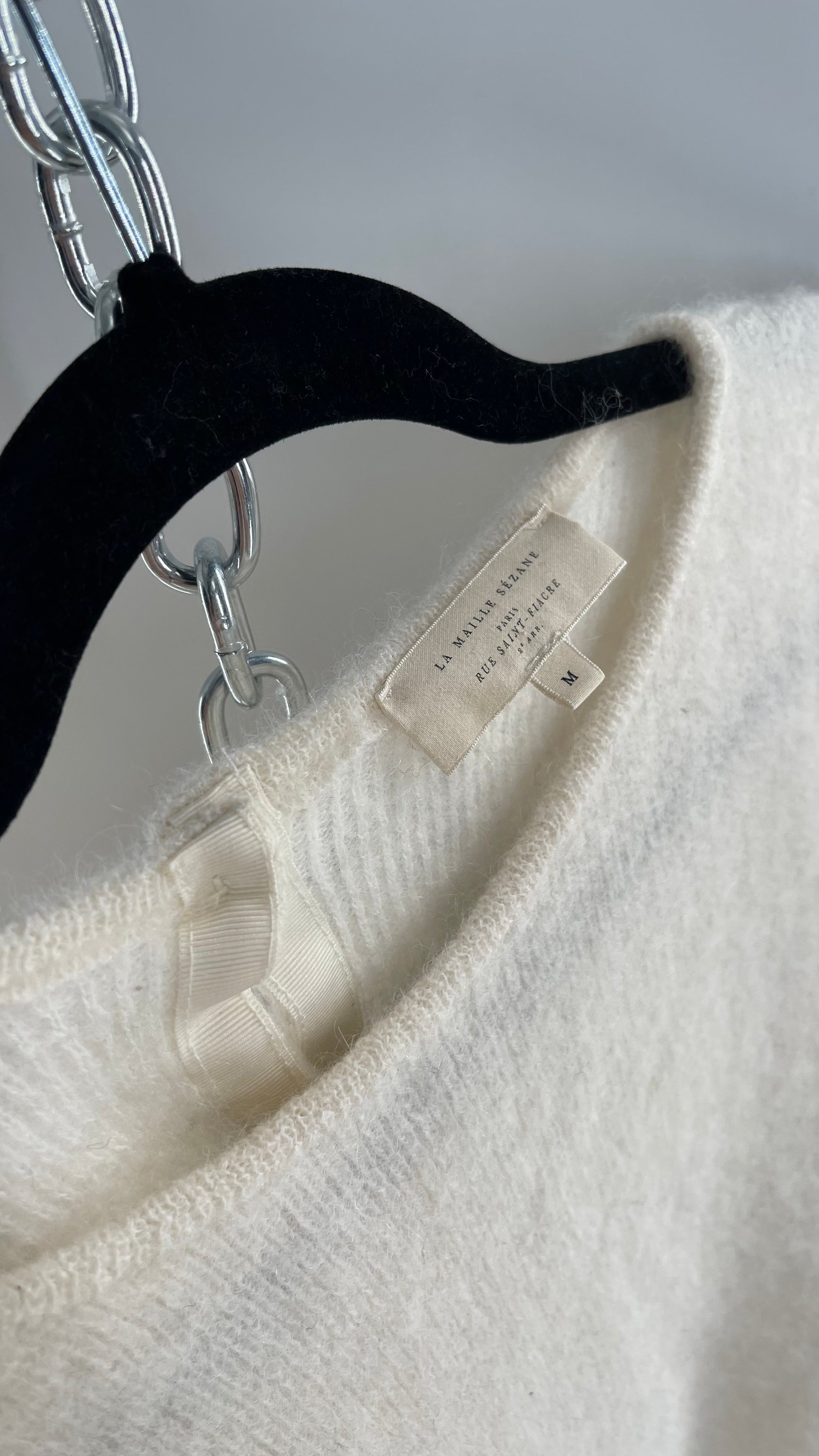 Vintage La Maille Sézane PARIS Rue Saint Fiagre White Alpaca/Mohair Button Back Cardigan (Medium)