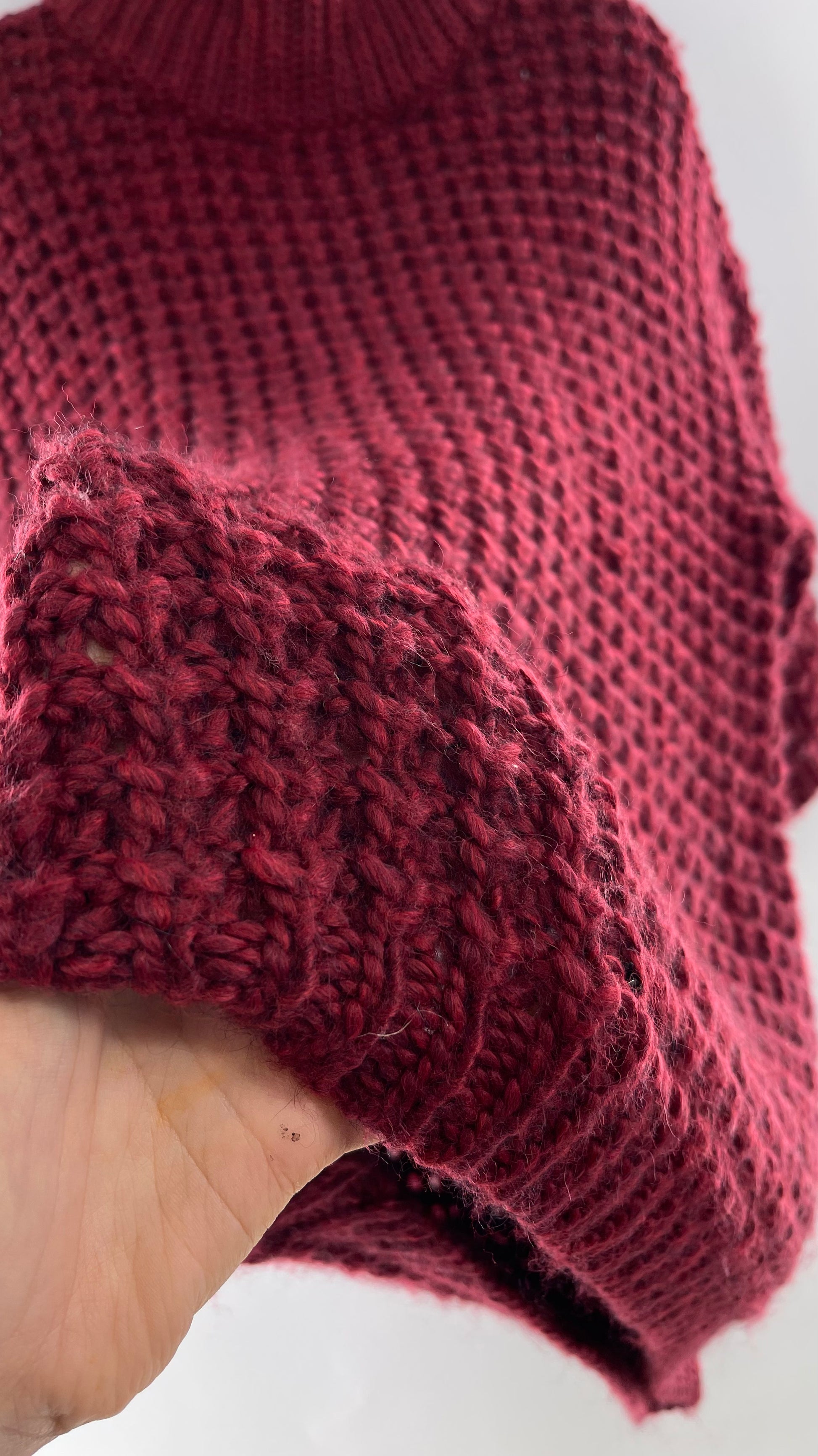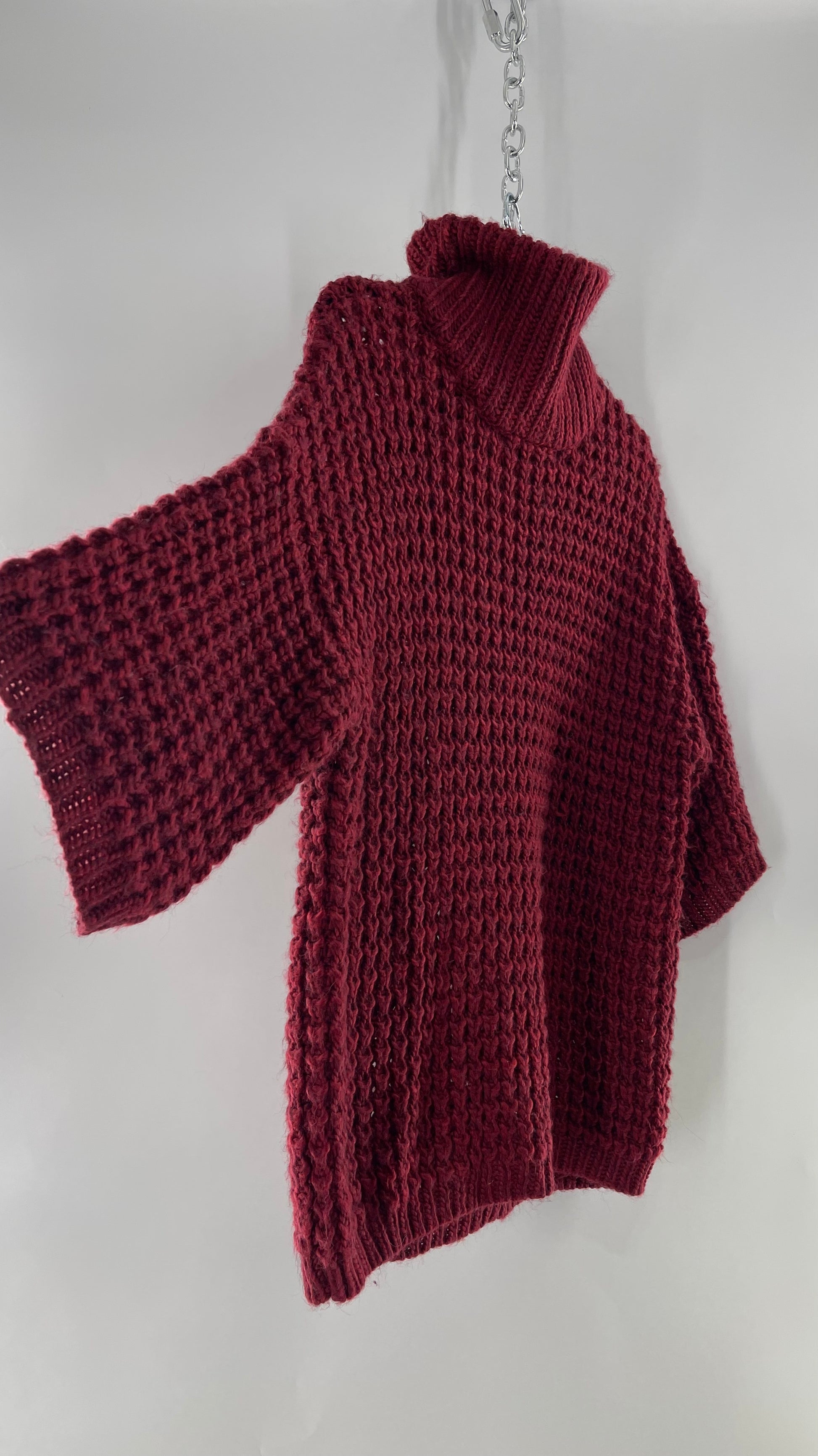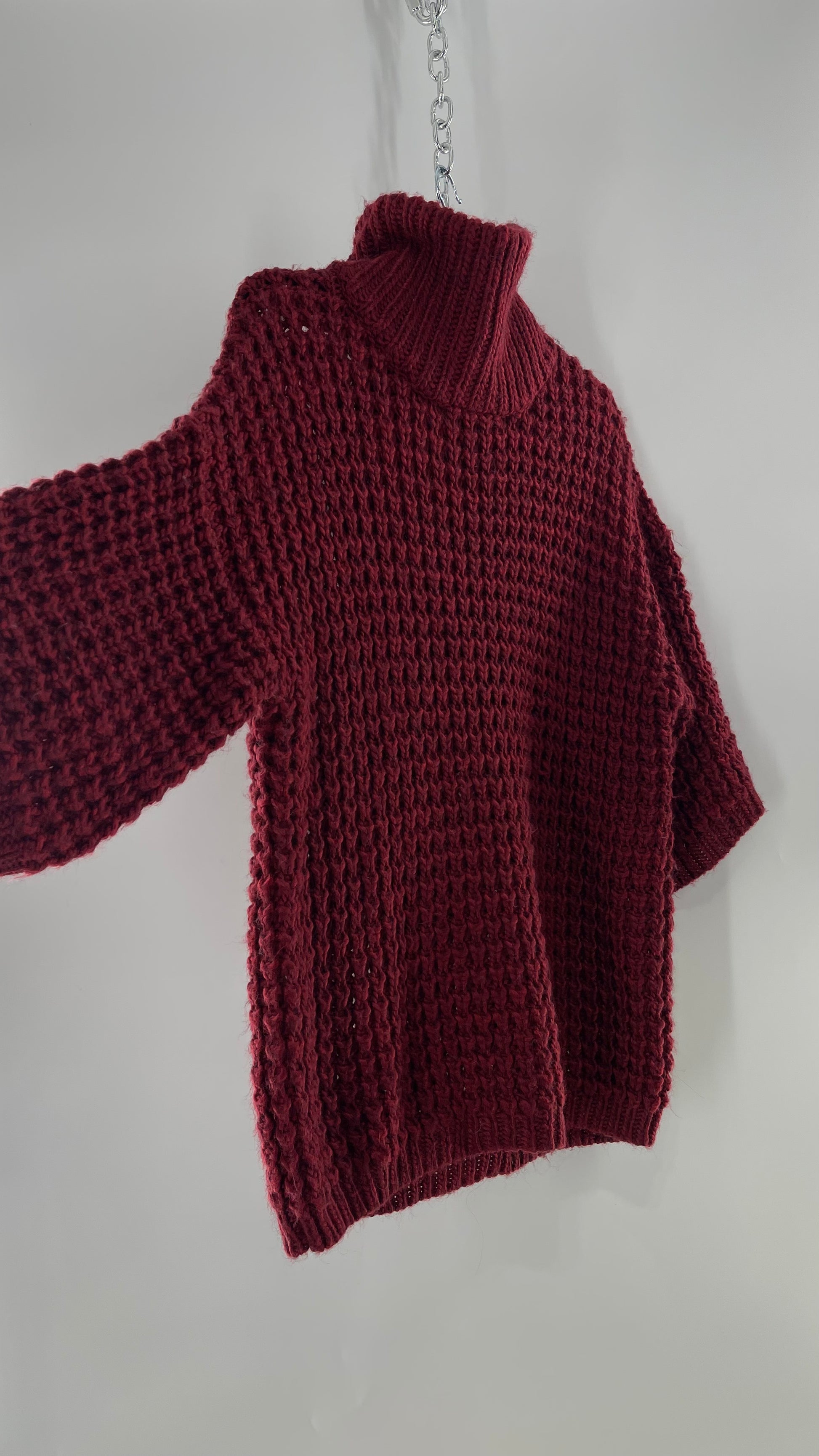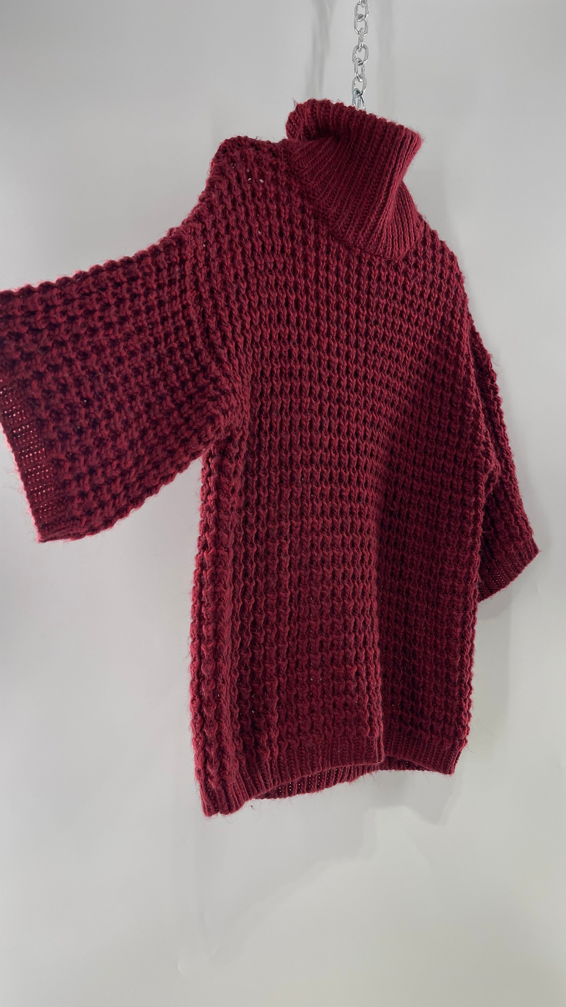 Anthropologie Thick Knit Burgundy/Maroon Short Sleeve Slouchy Turtle/Mock Neck Sweater (Large)