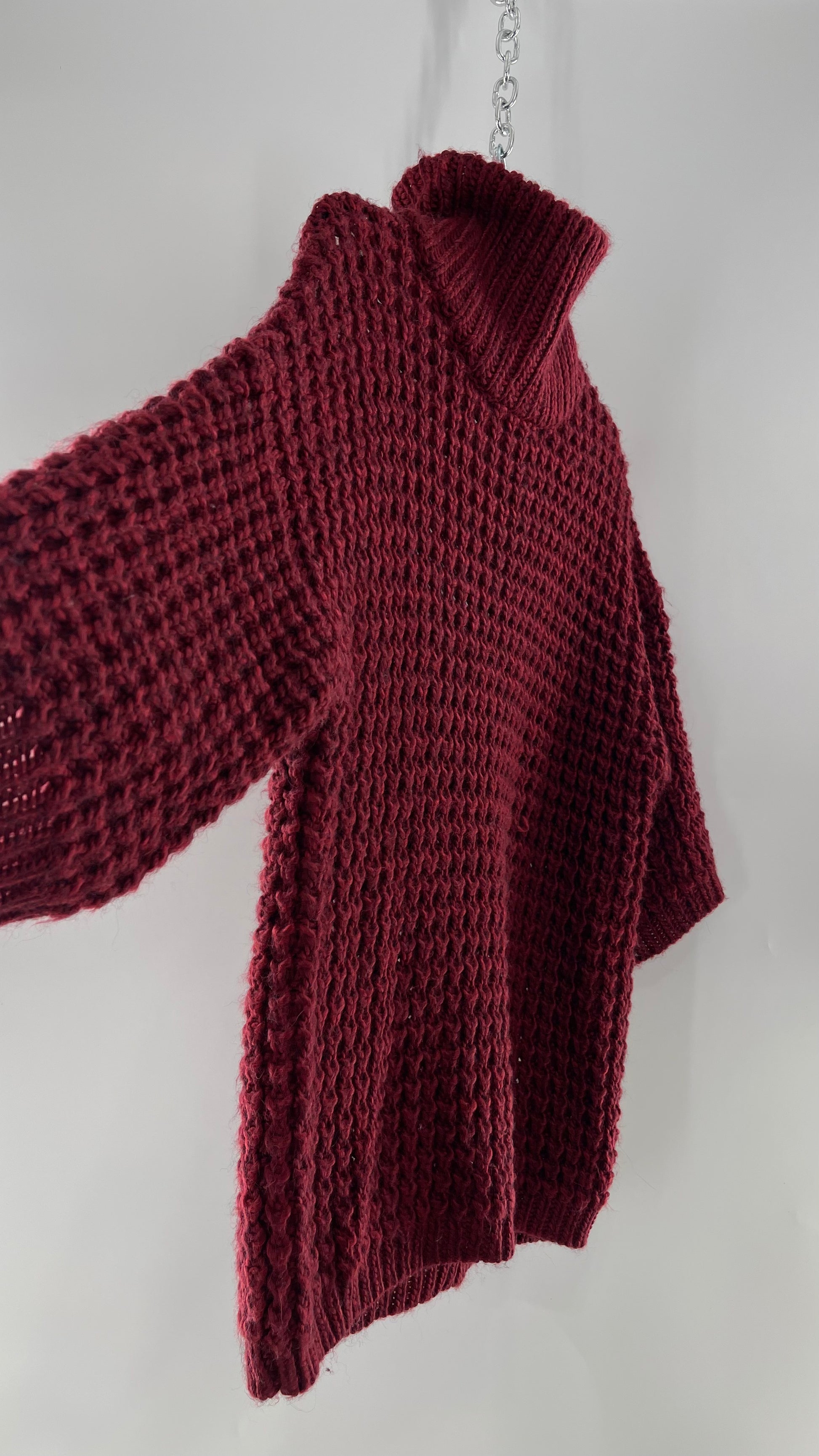 Anthropologie Thick Knit Burgundy/Maroon Short Sleeve Slouchy Turtle/Mock Neck Sweater (Large) |