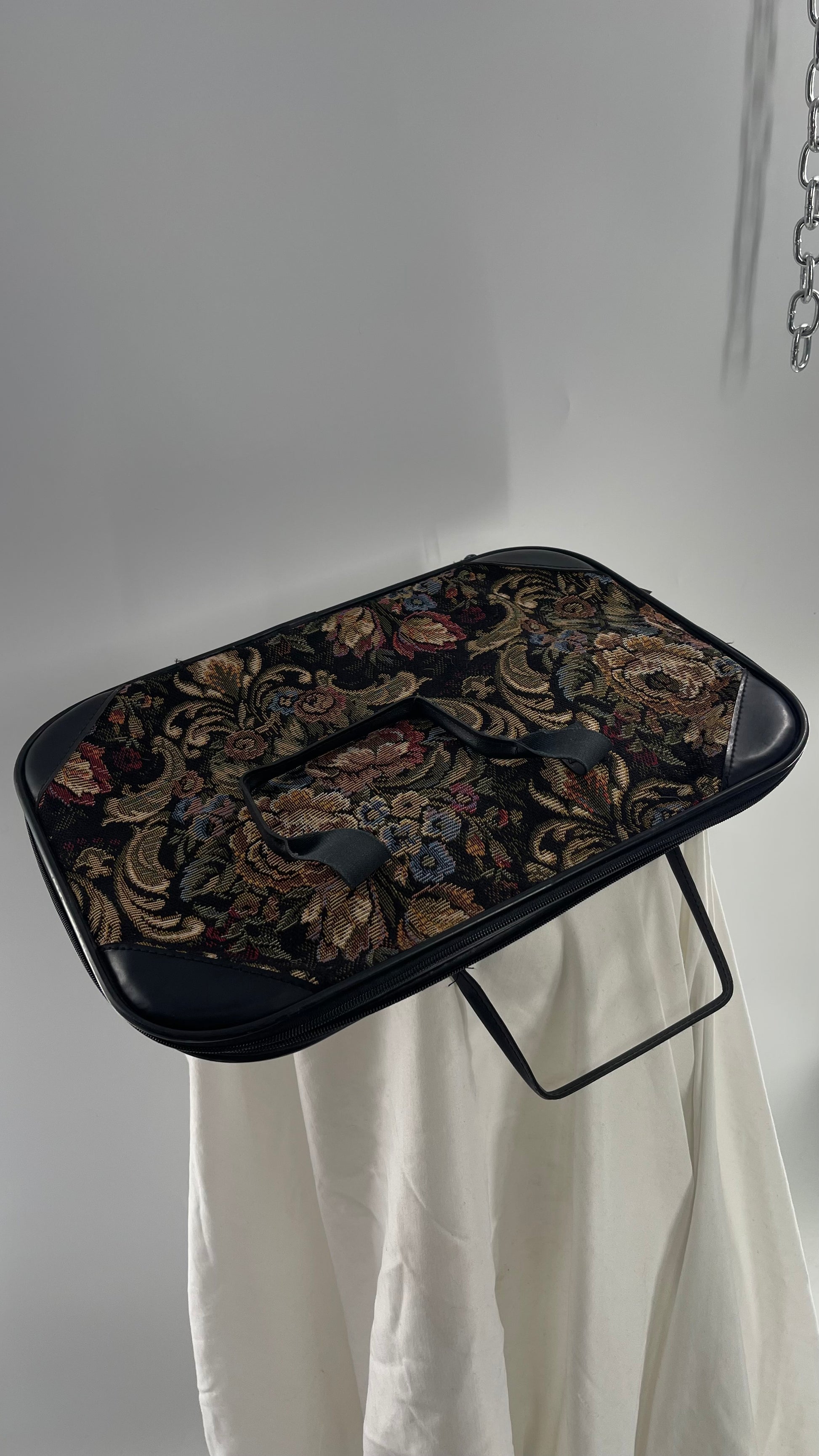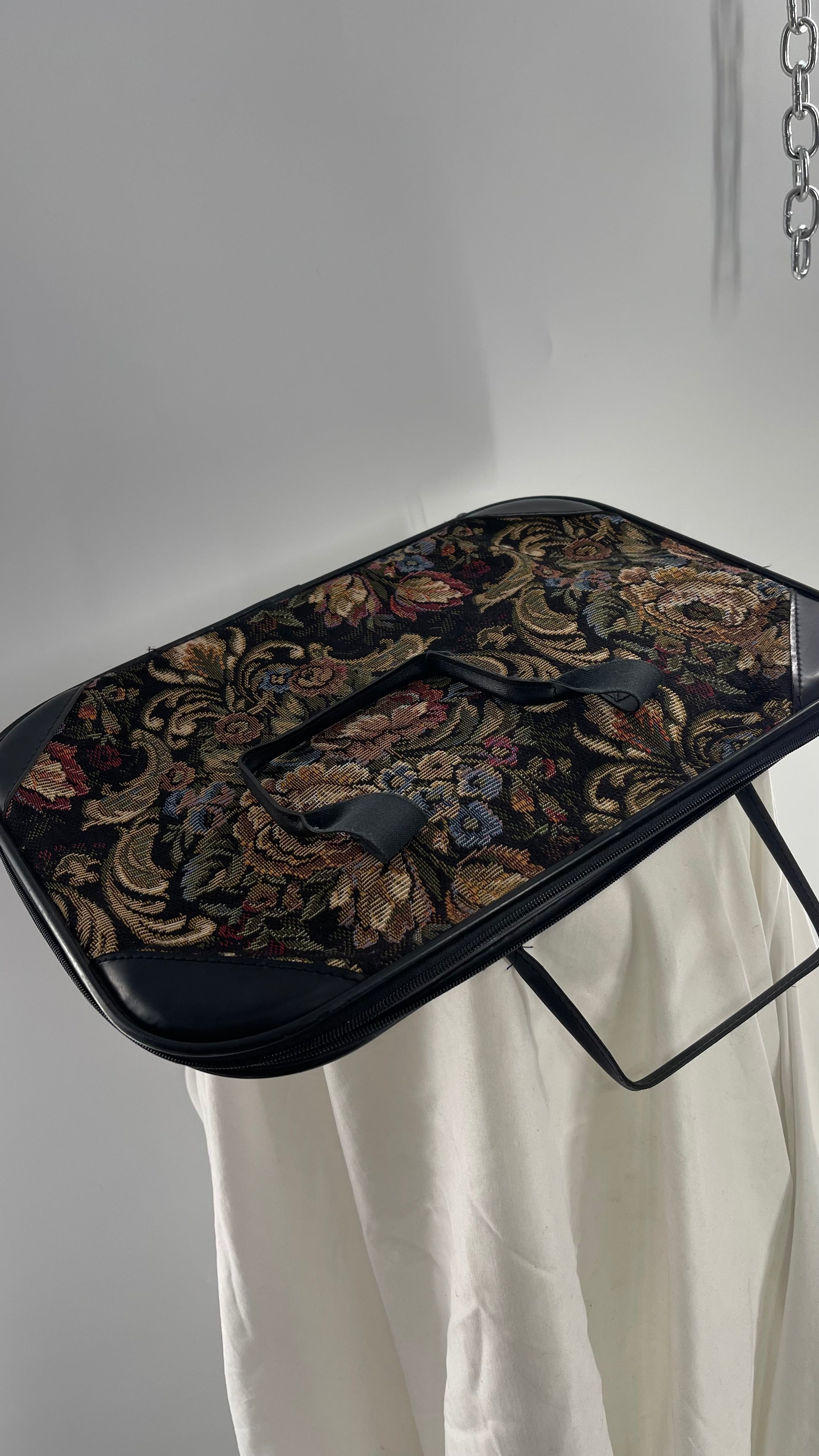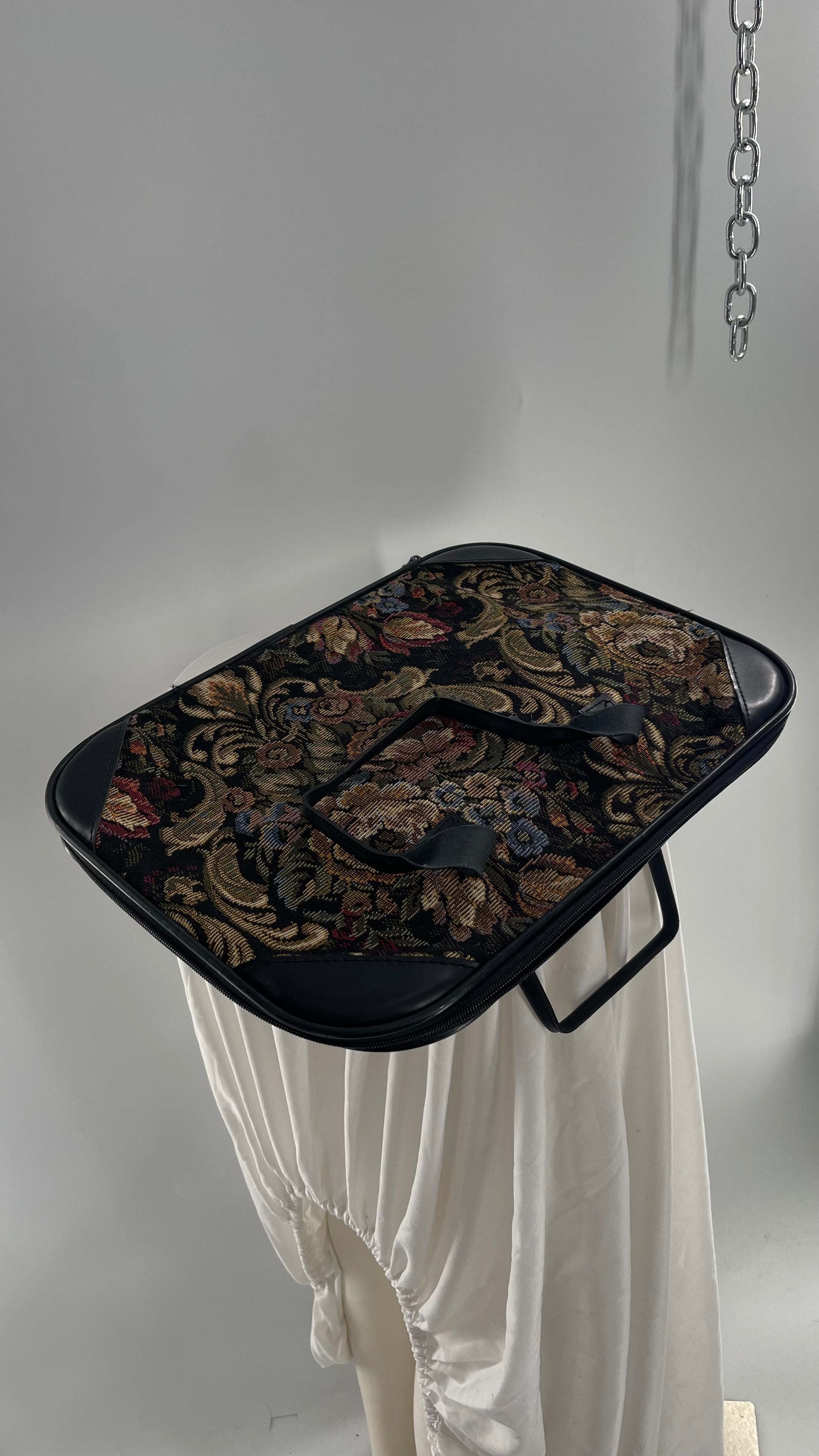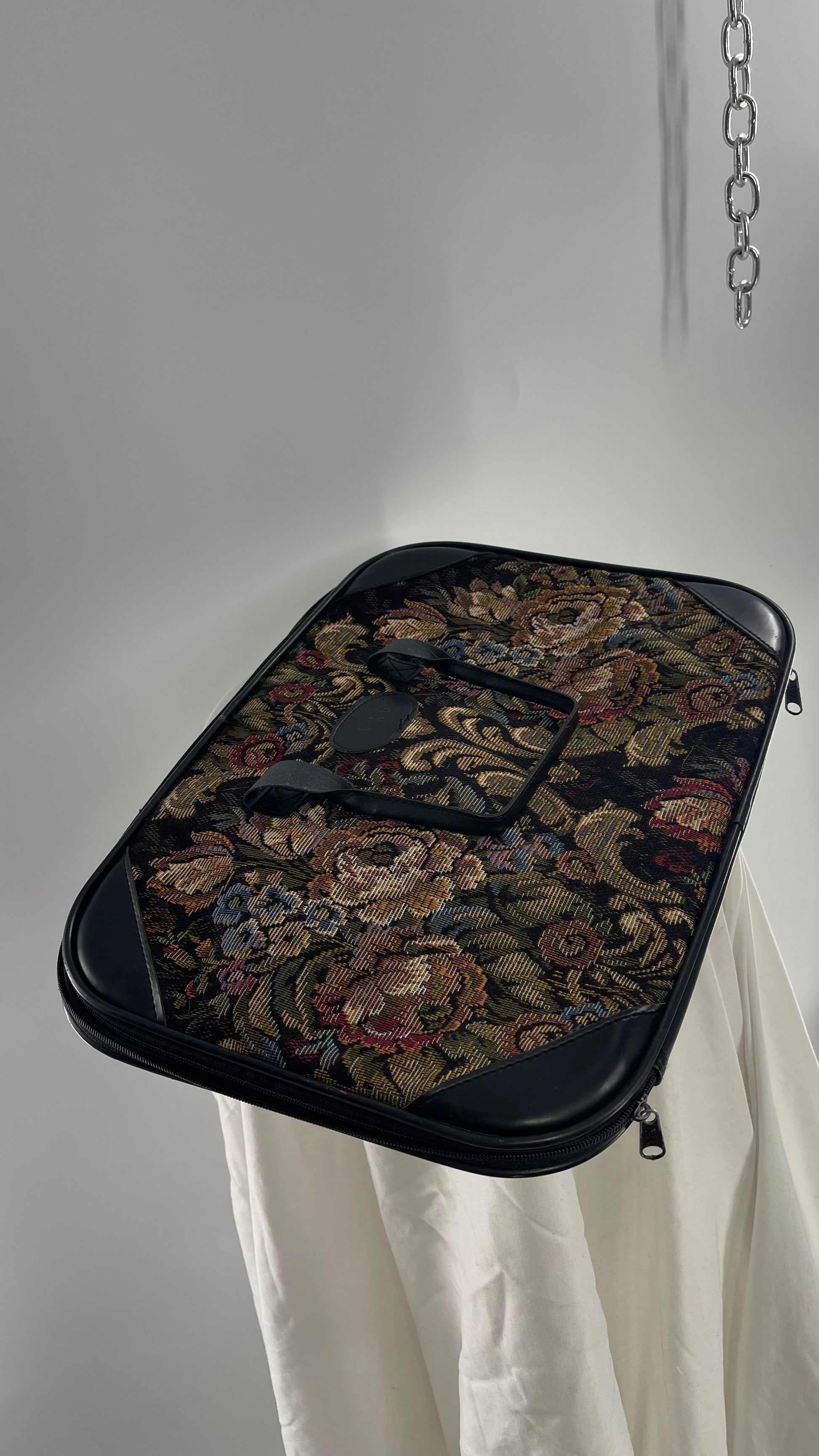 VINTAGE Black Leather Tapestry Laptop Case