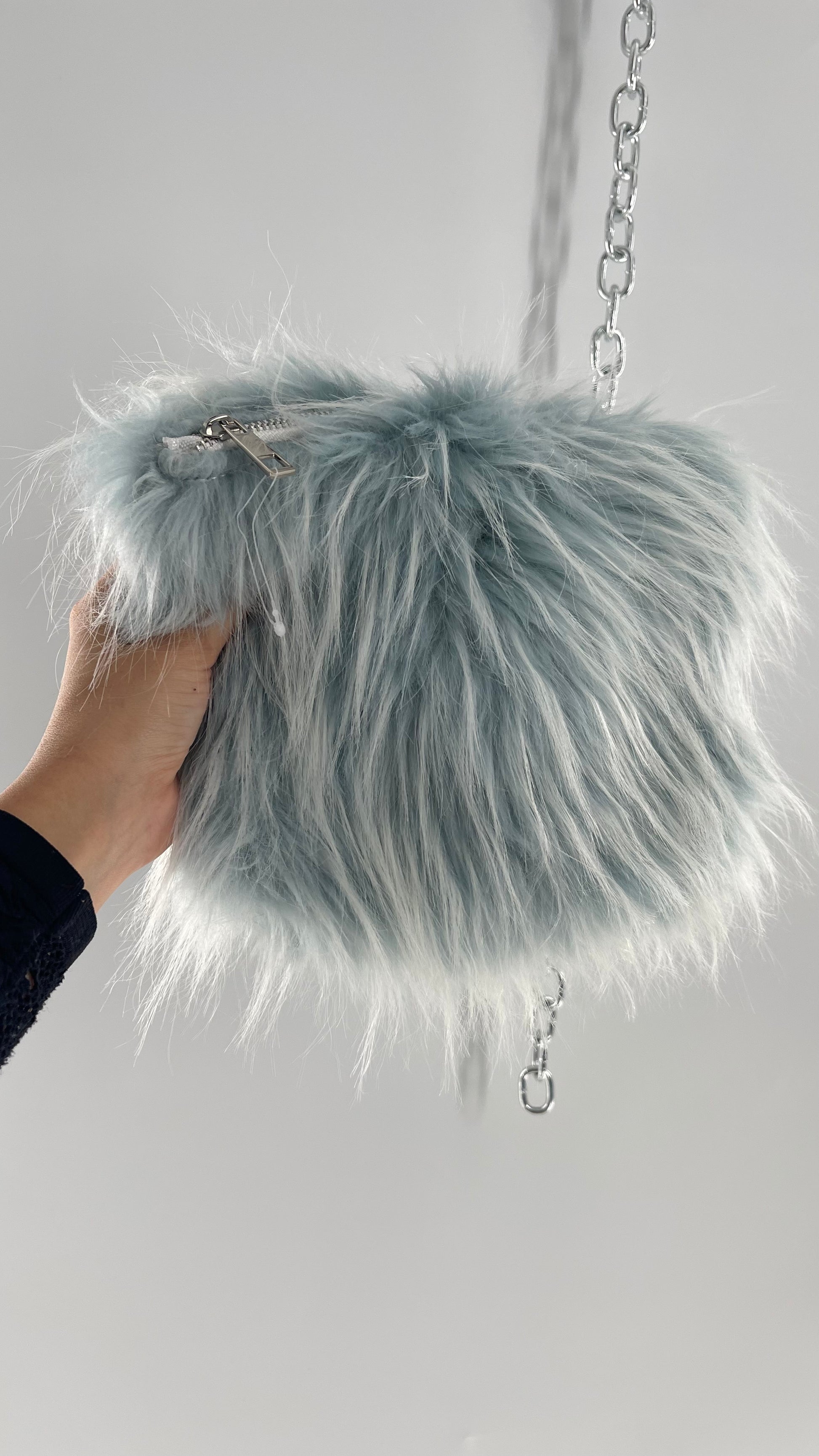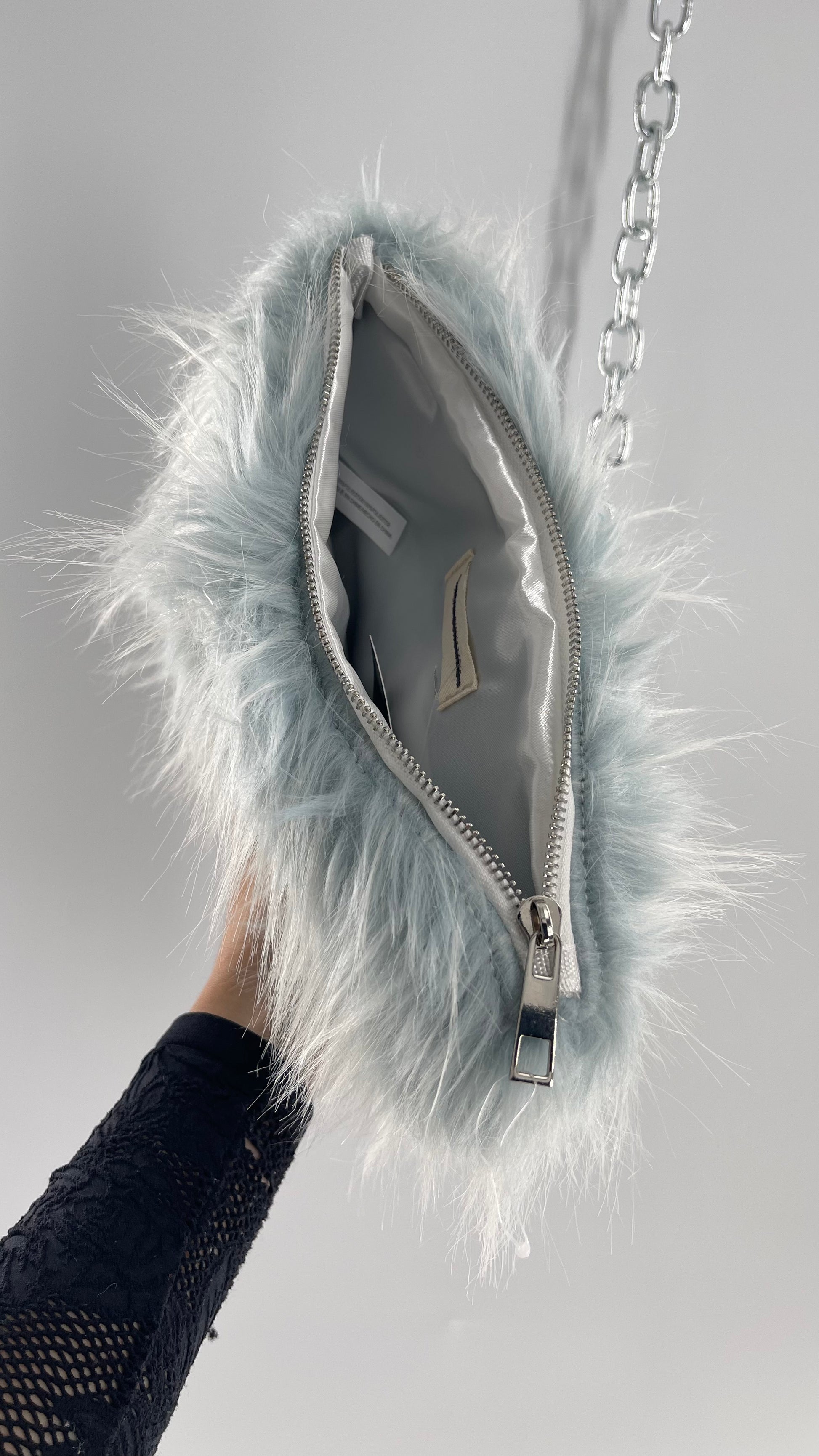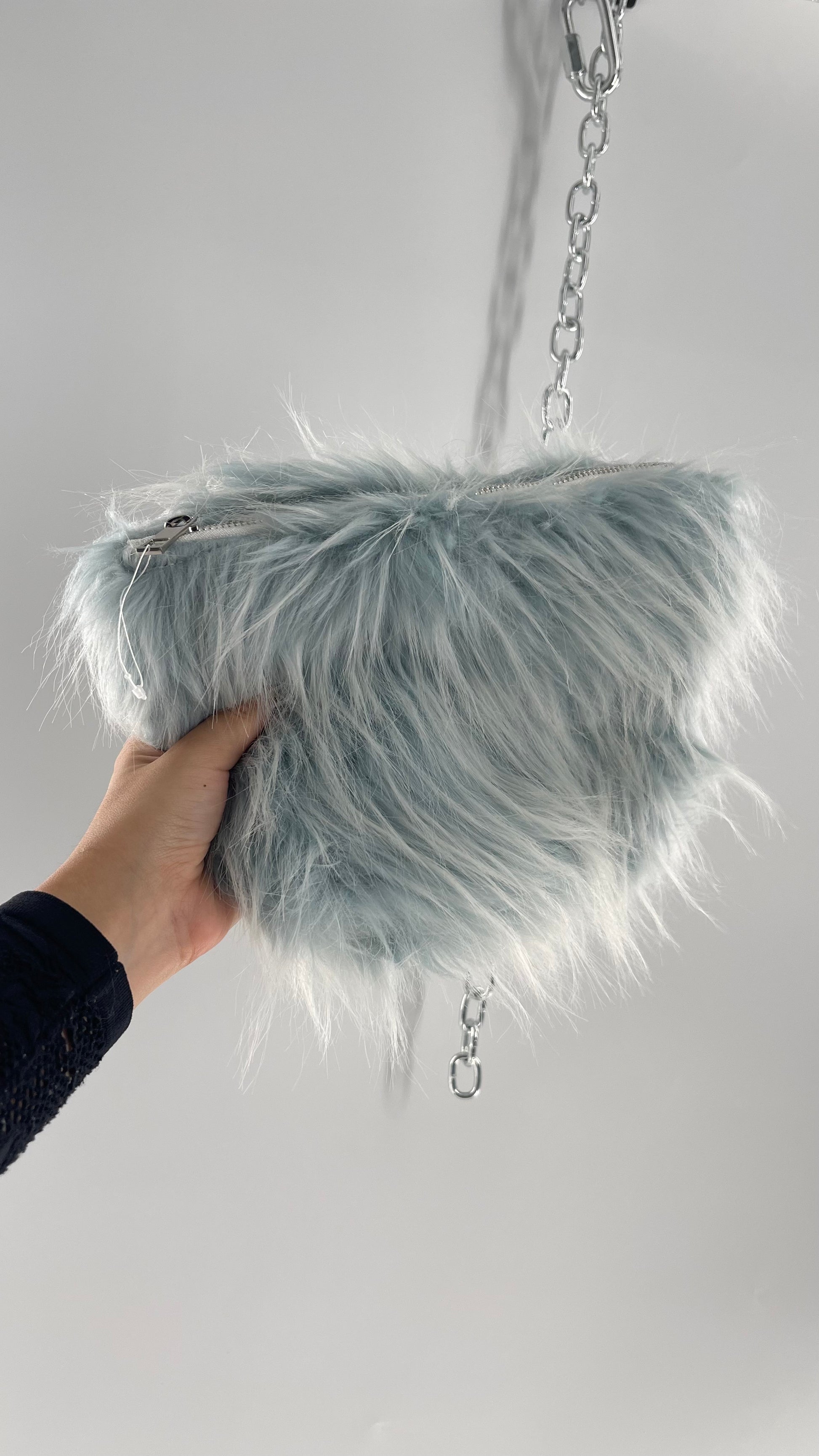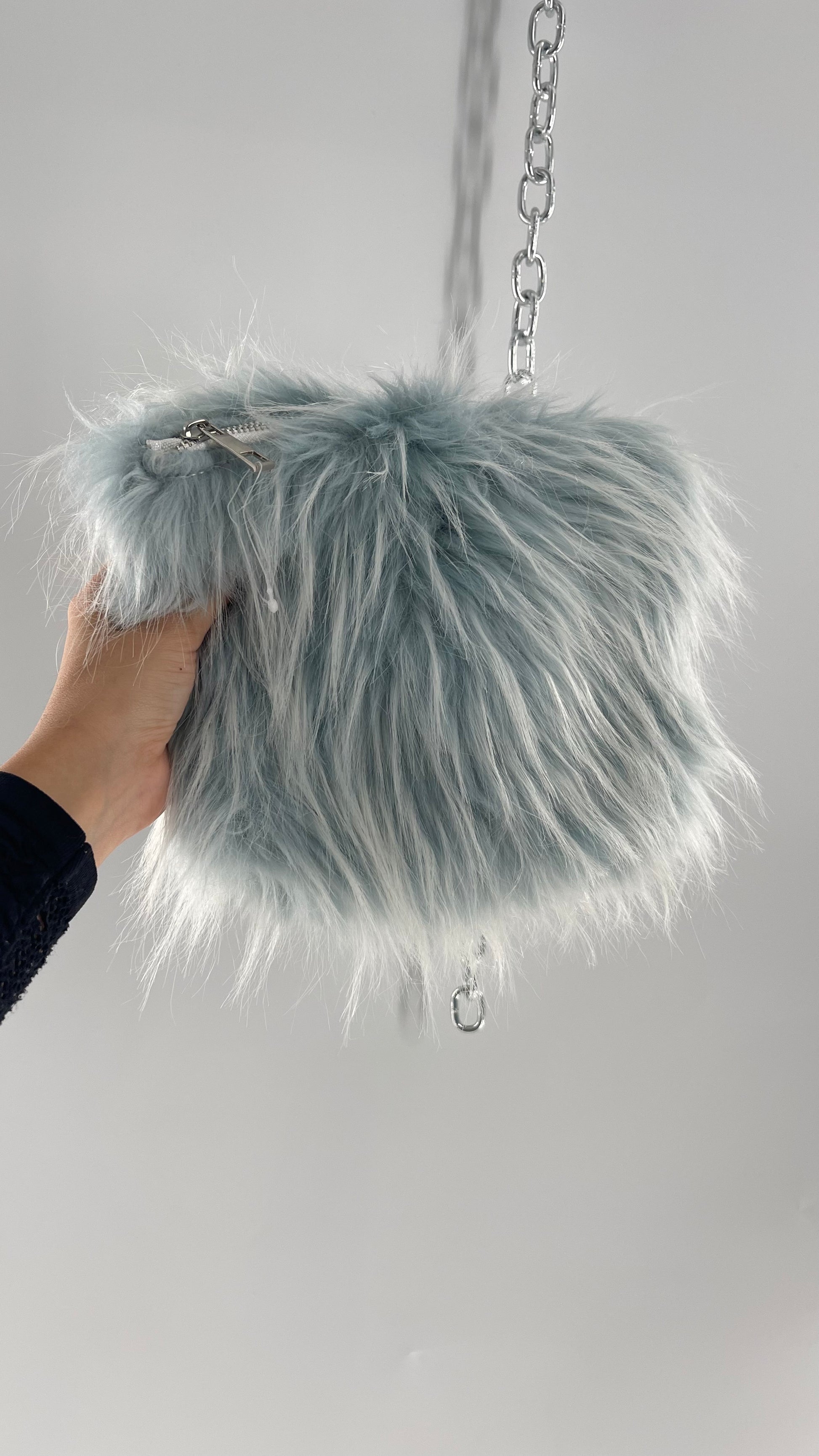 Urban Outfitters Baby Blue Troll Hair Fuzzy Makeup Bag