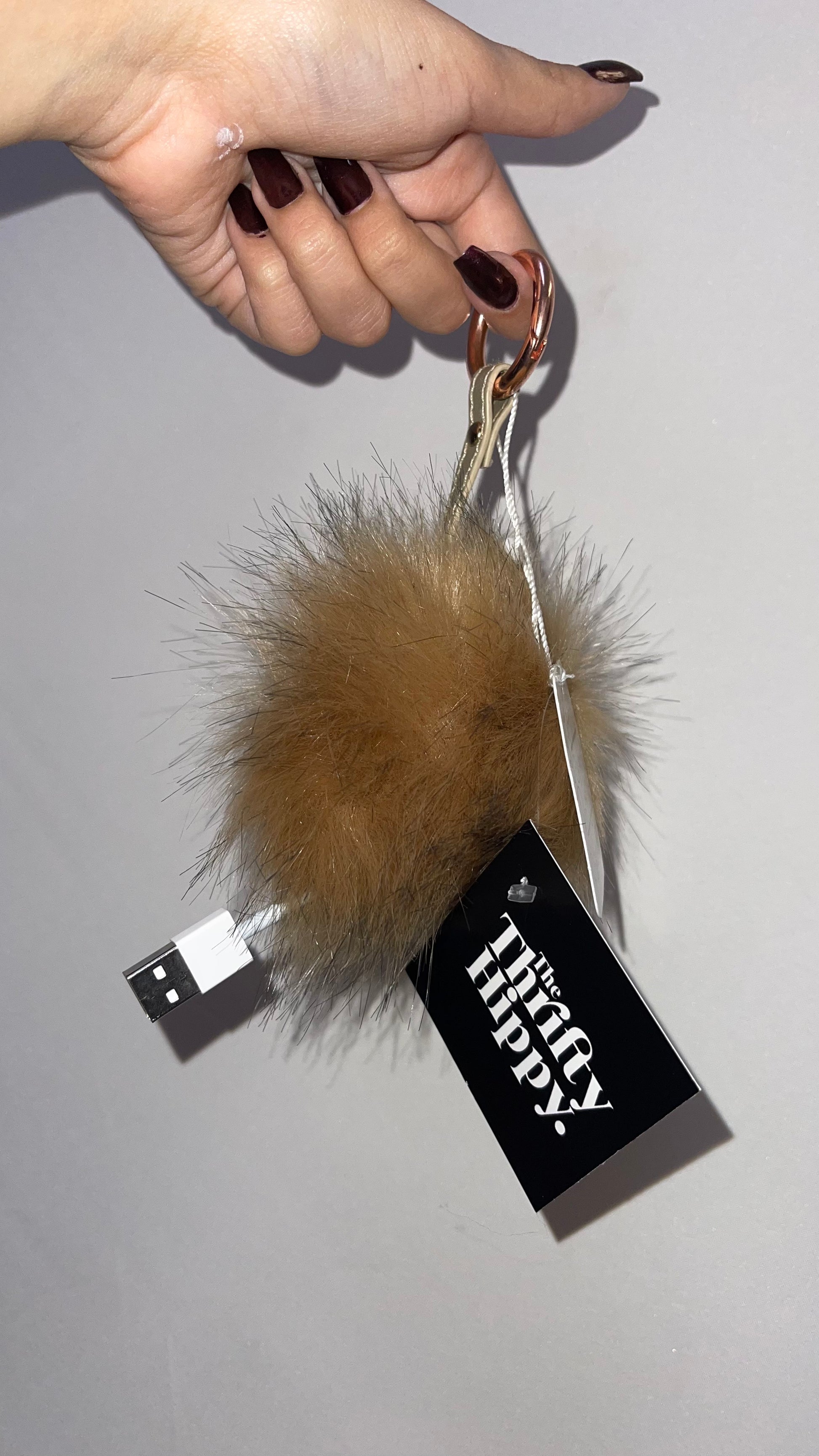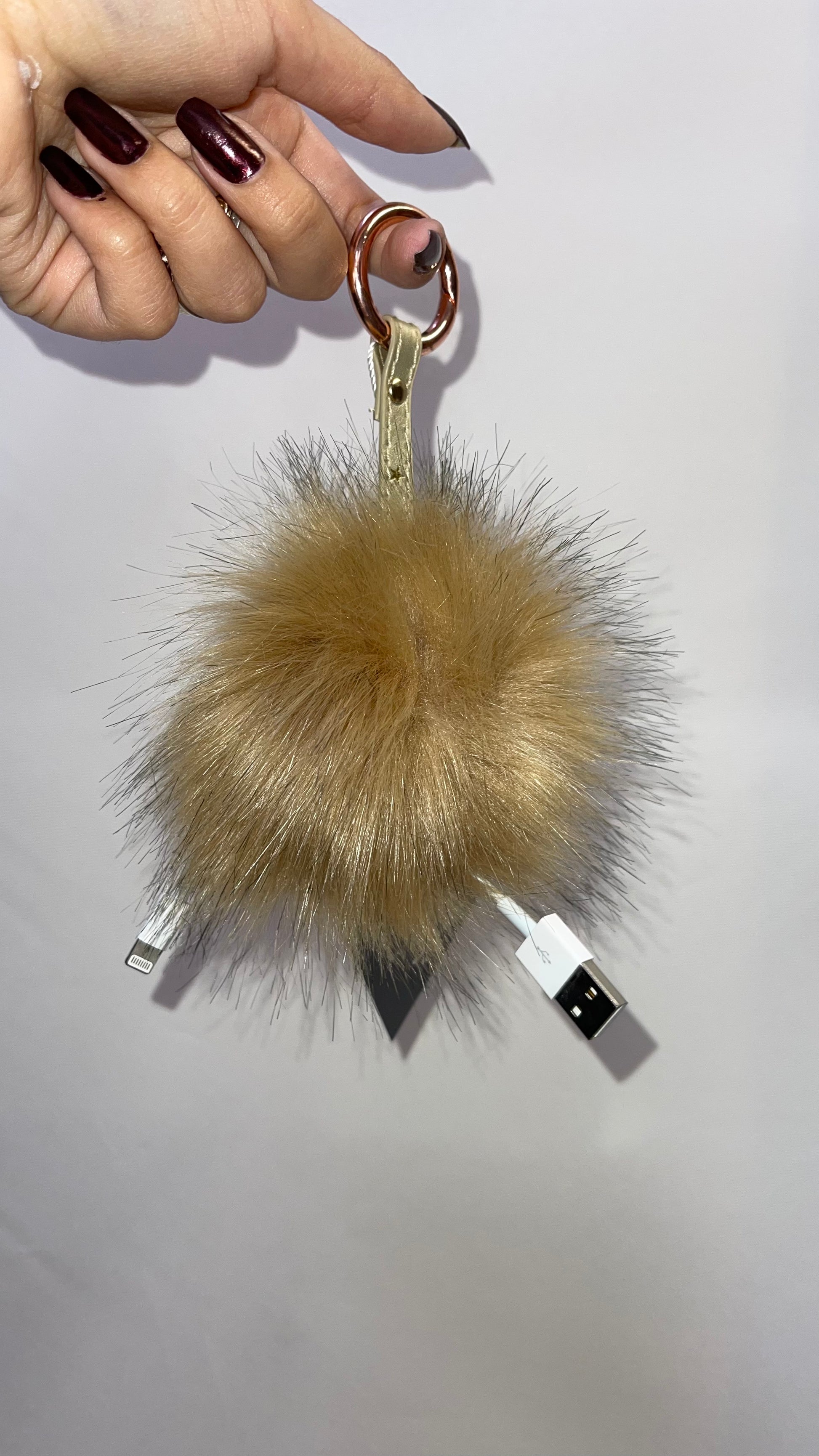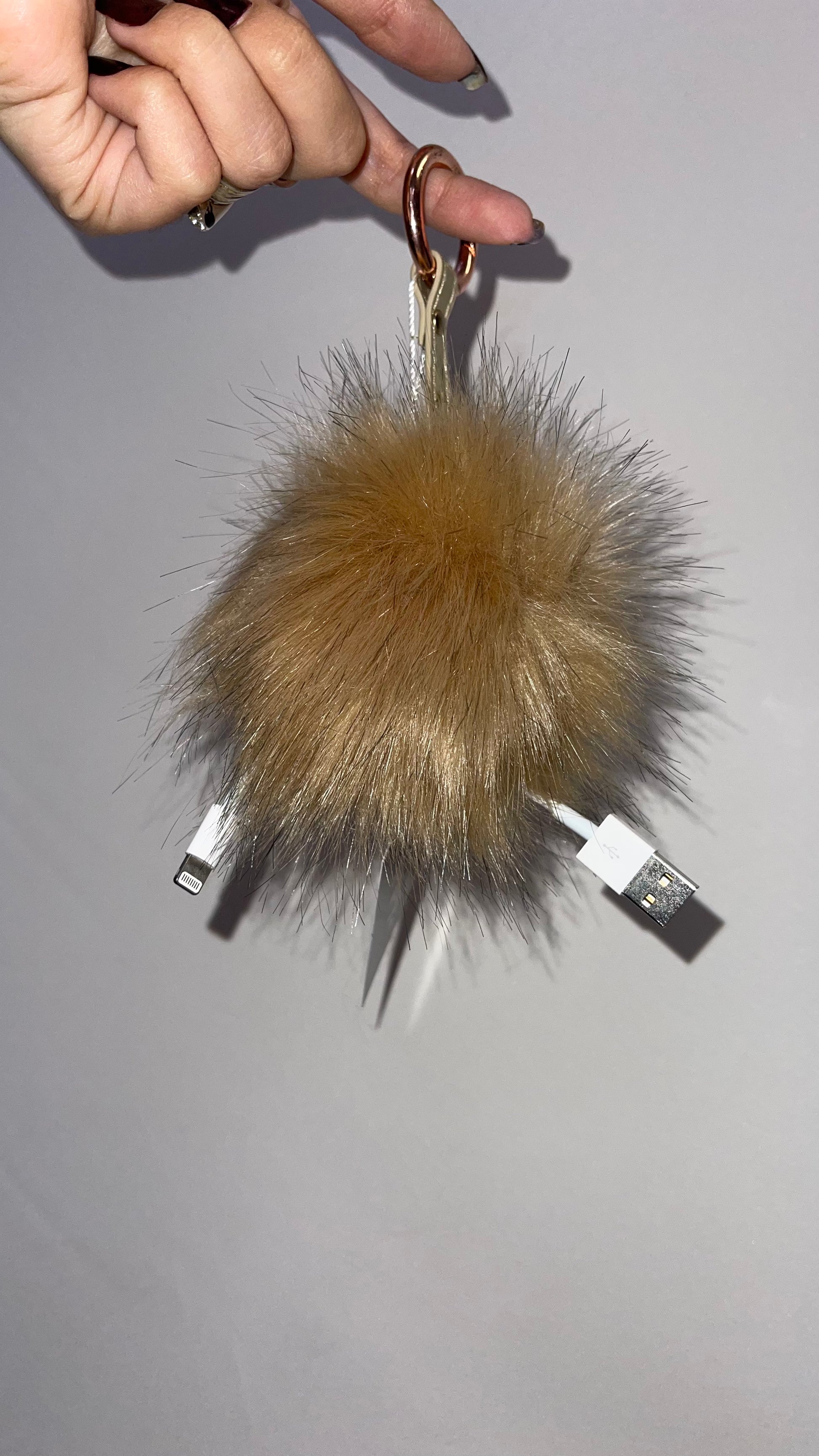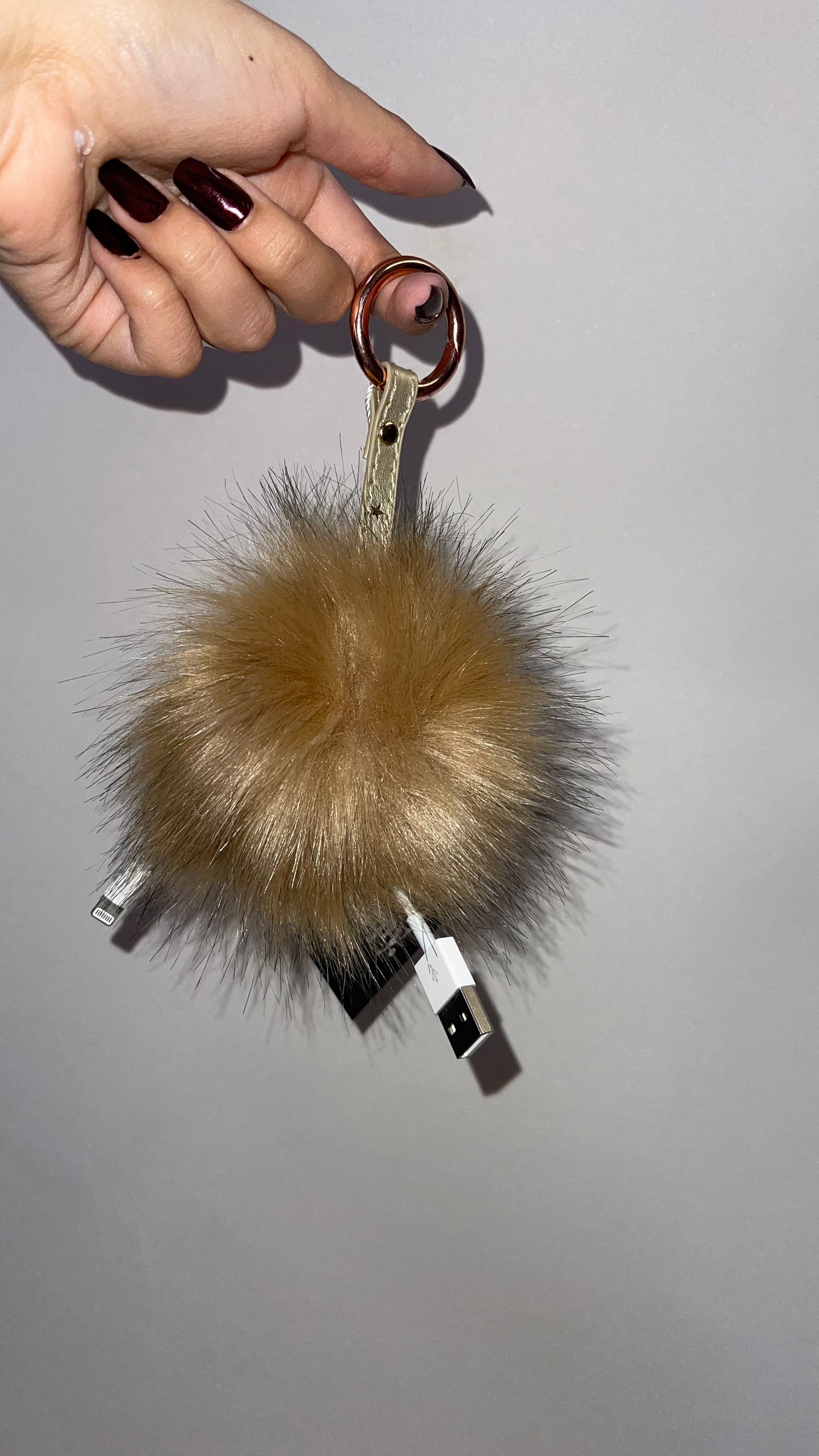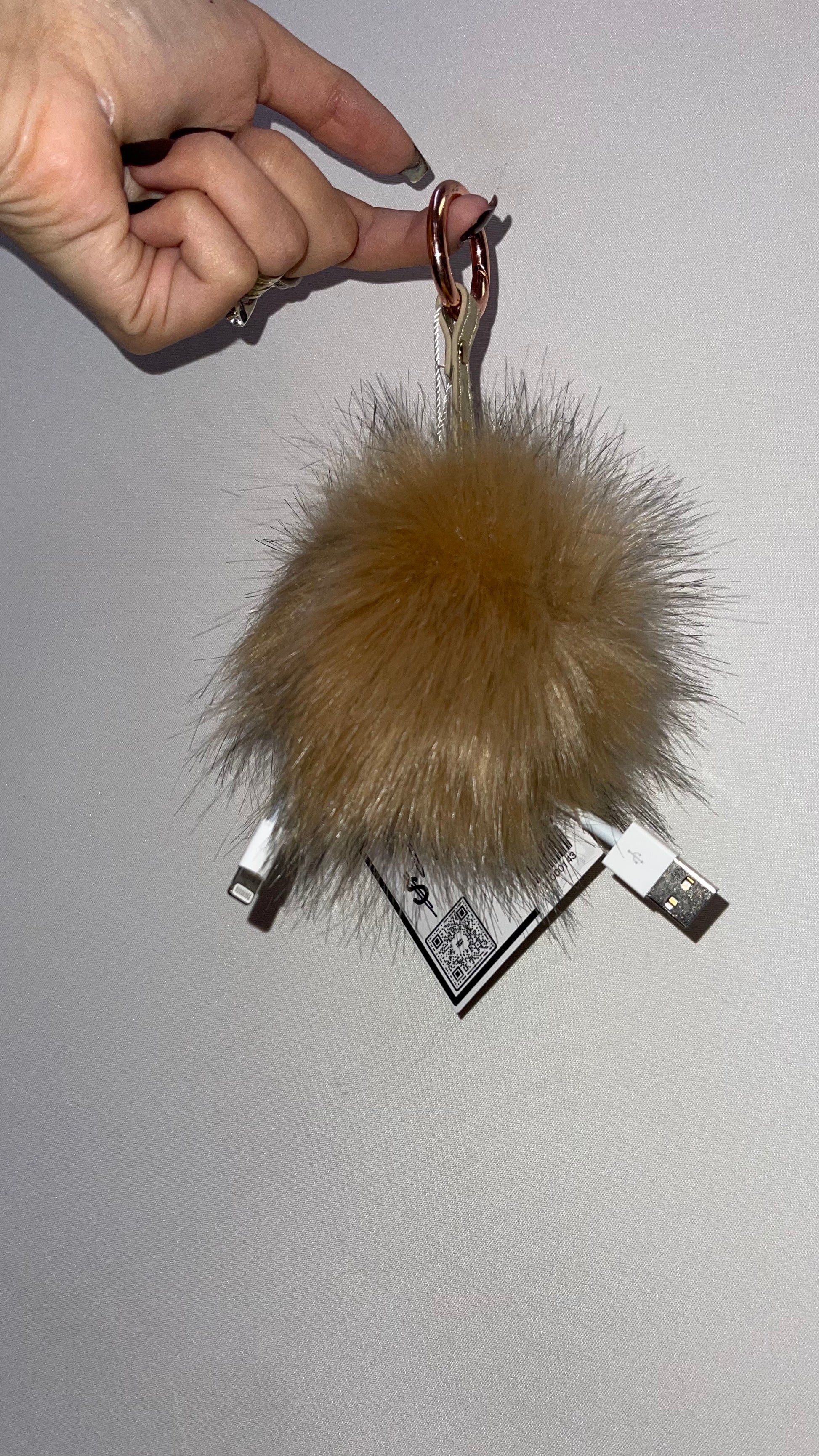 Free People Tan Fur Pom Pom Keychain with Charging Port