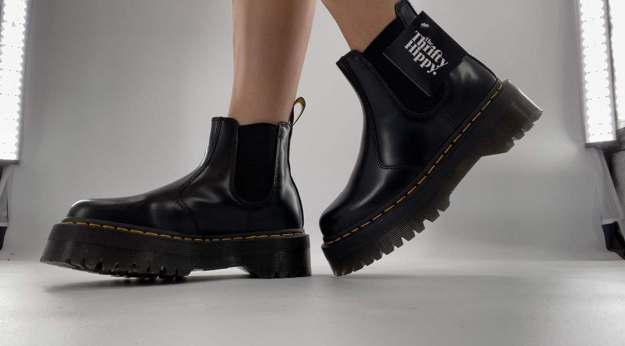 Dr. Martens 2976 Platform Chelsea Boot Black Polished in Size 7 Ladies and 6 Men - Not Used
