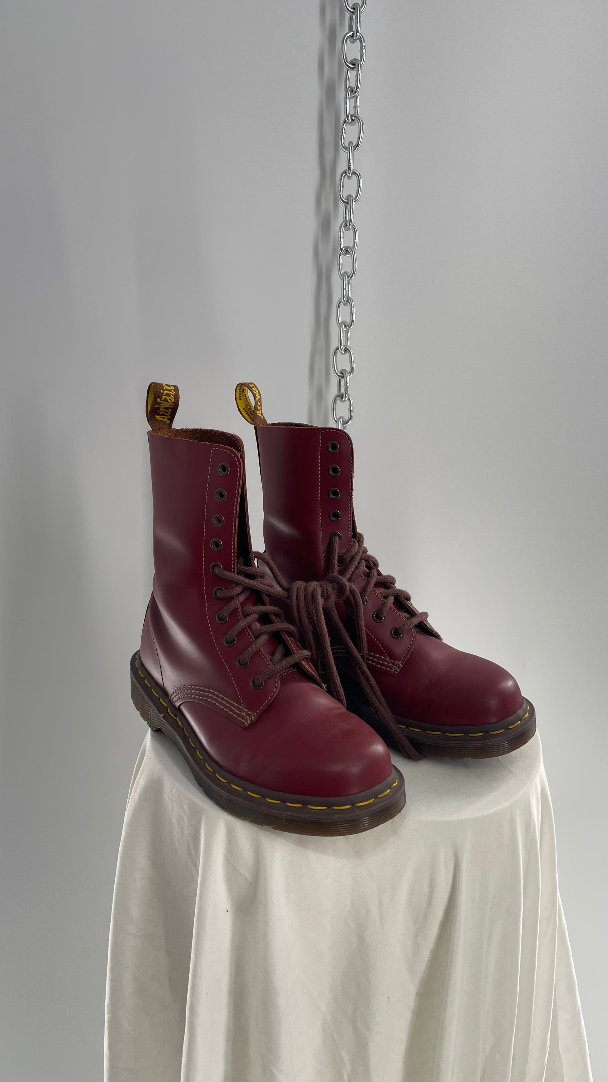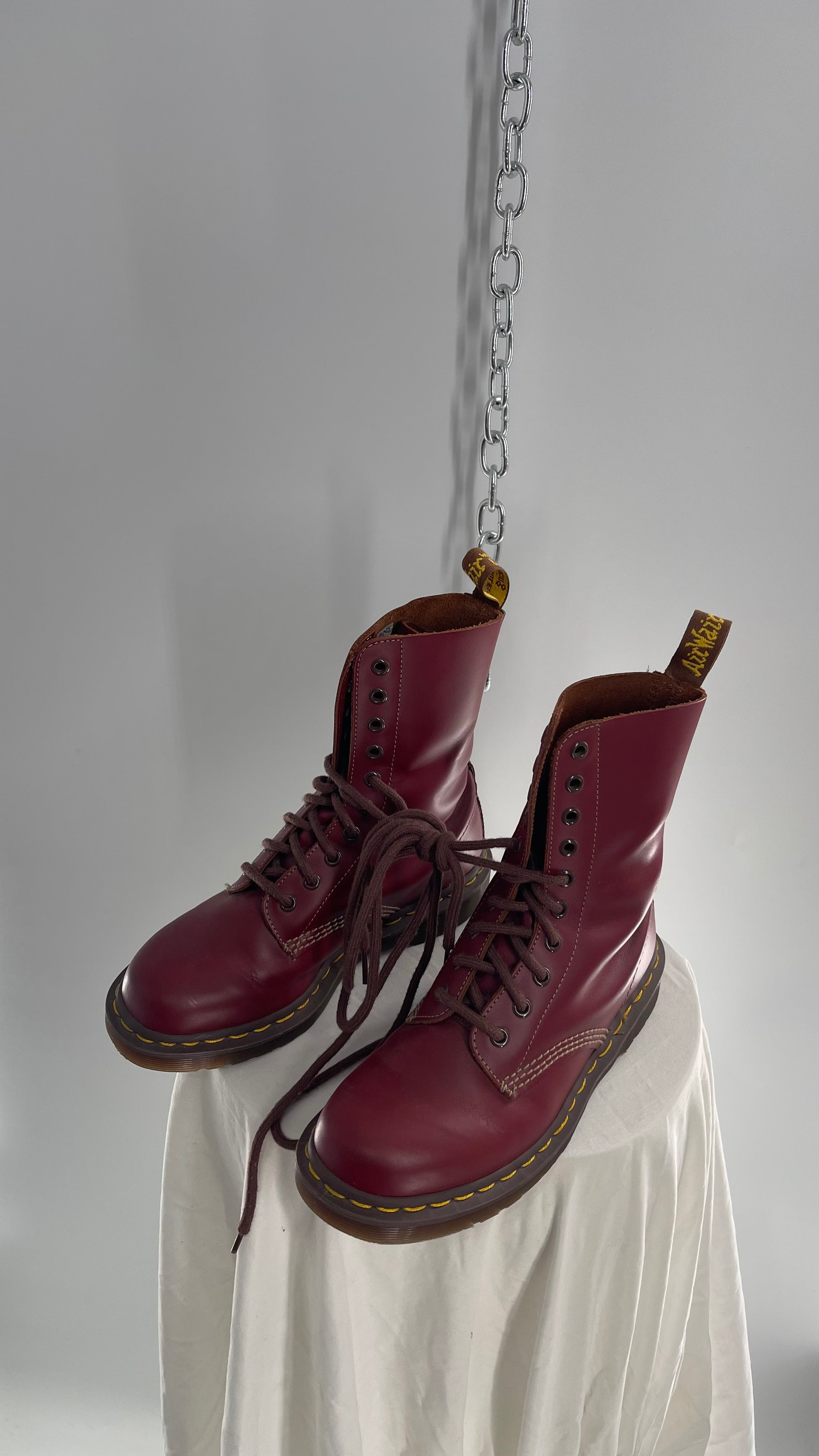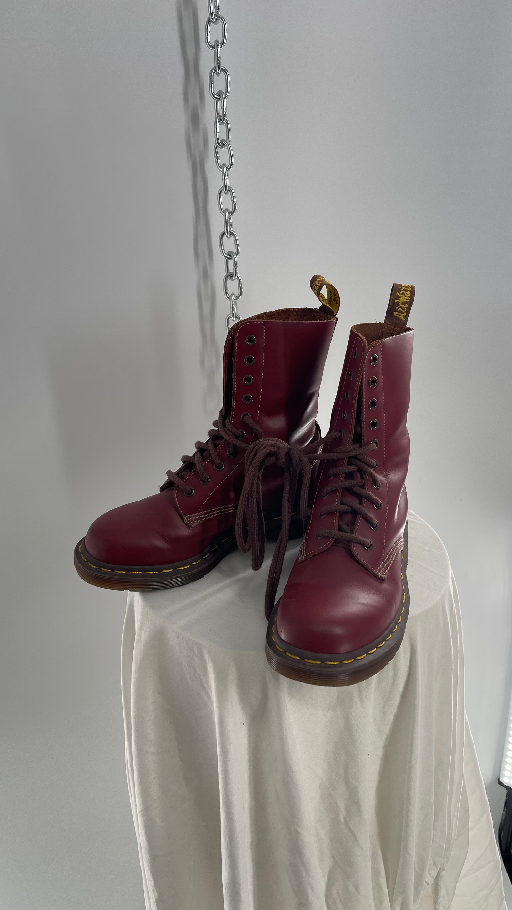 Vintage Dr. Martens 1490 10 Eyelet Burgundy/Maroon Red English Boots
