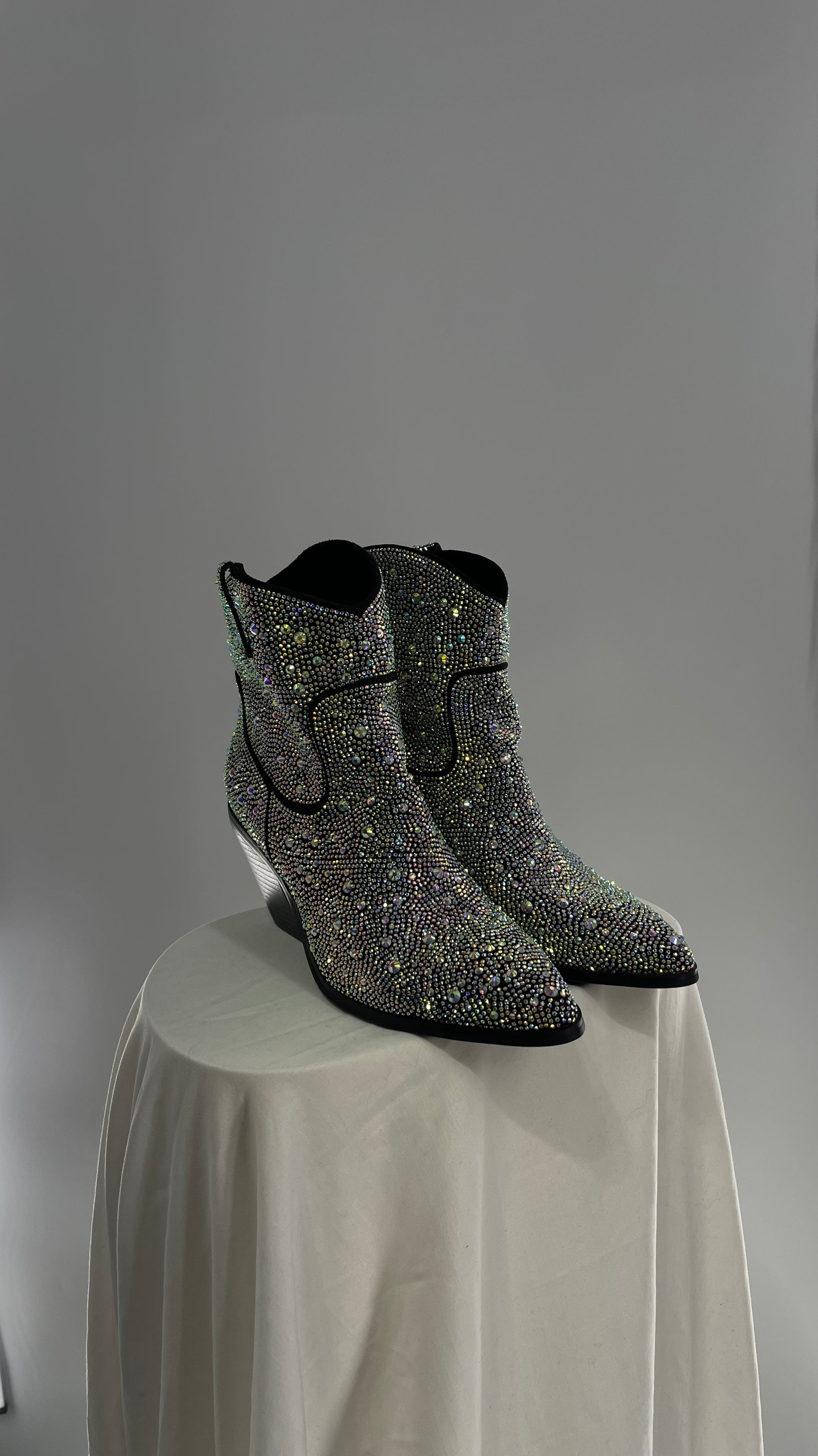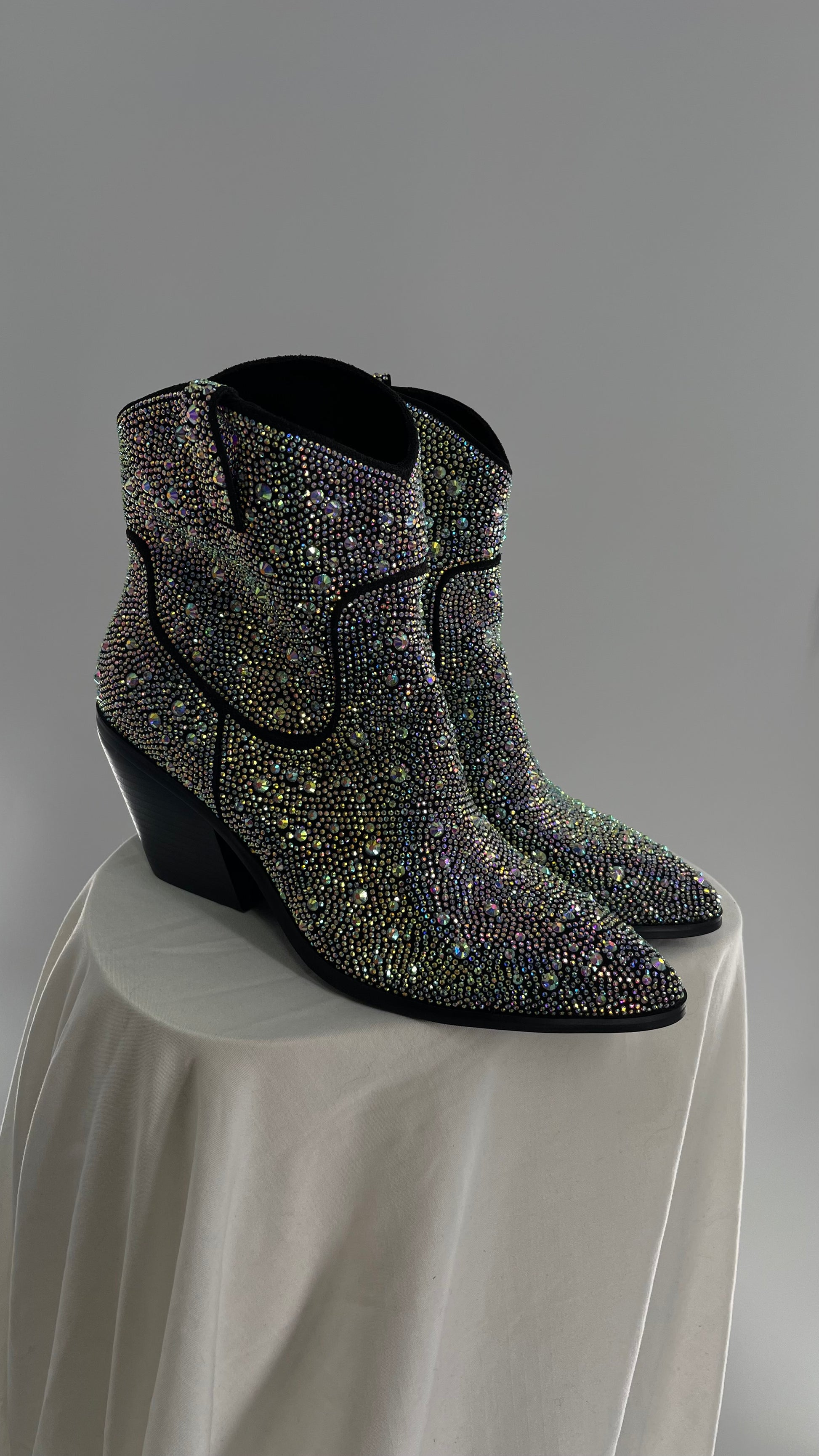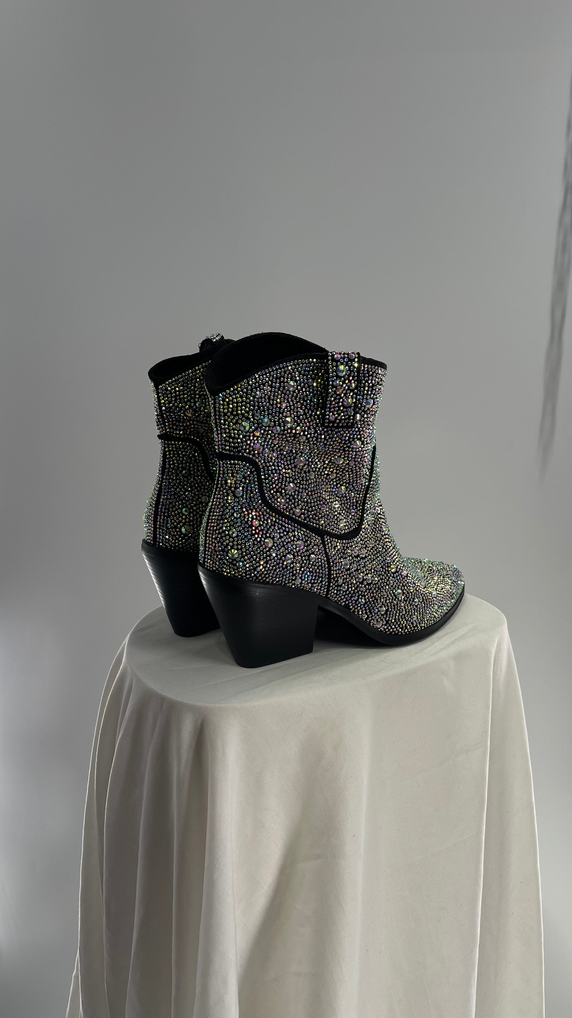Black Iridescent All Over Rhinestone Cowboy Boots